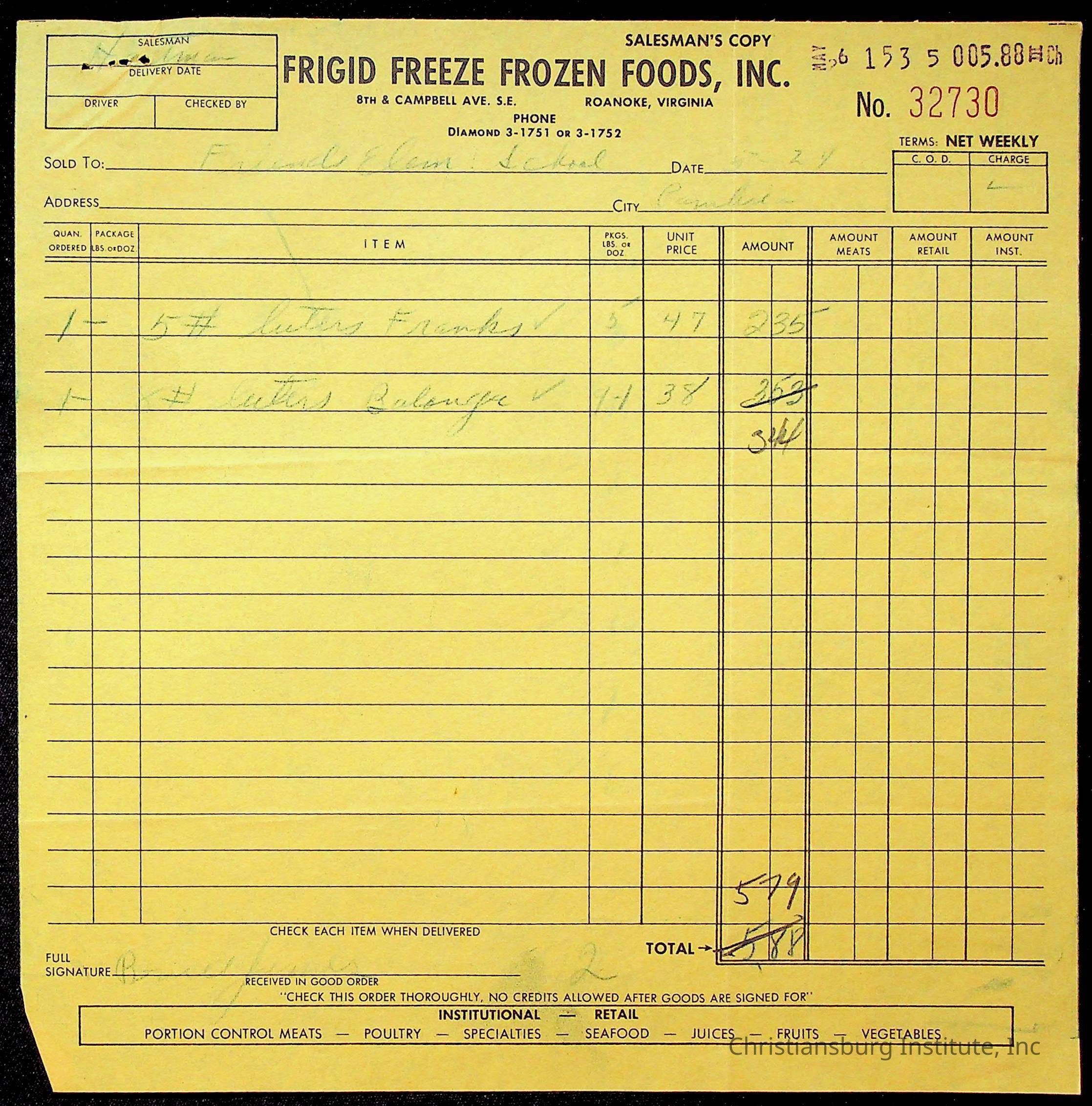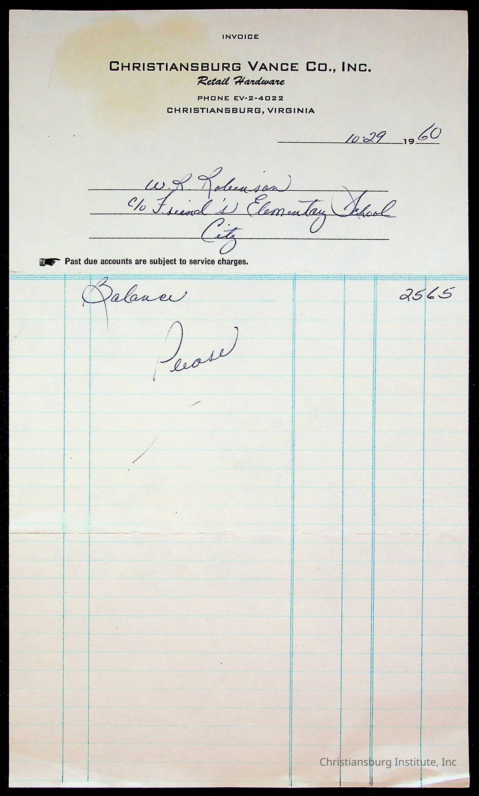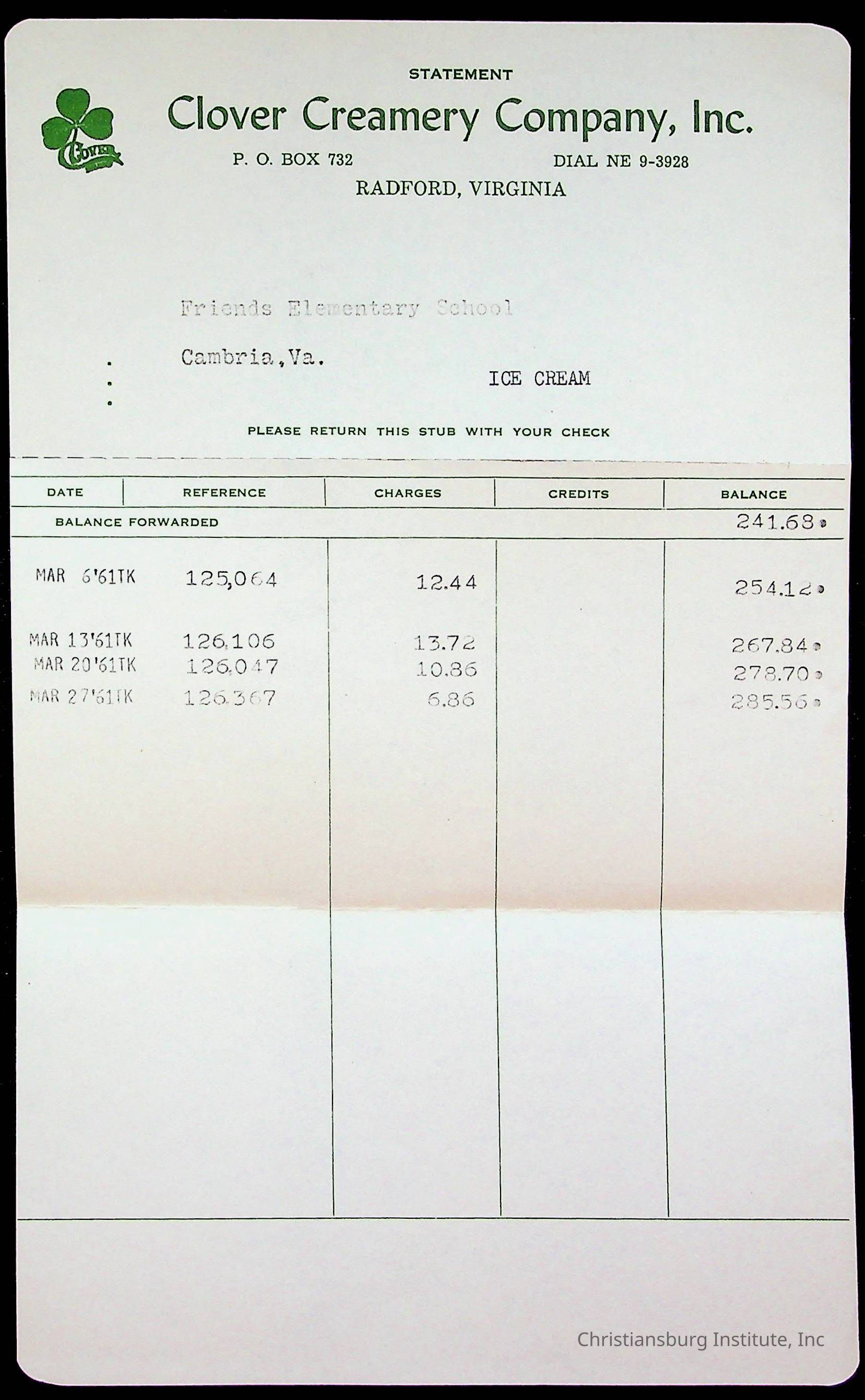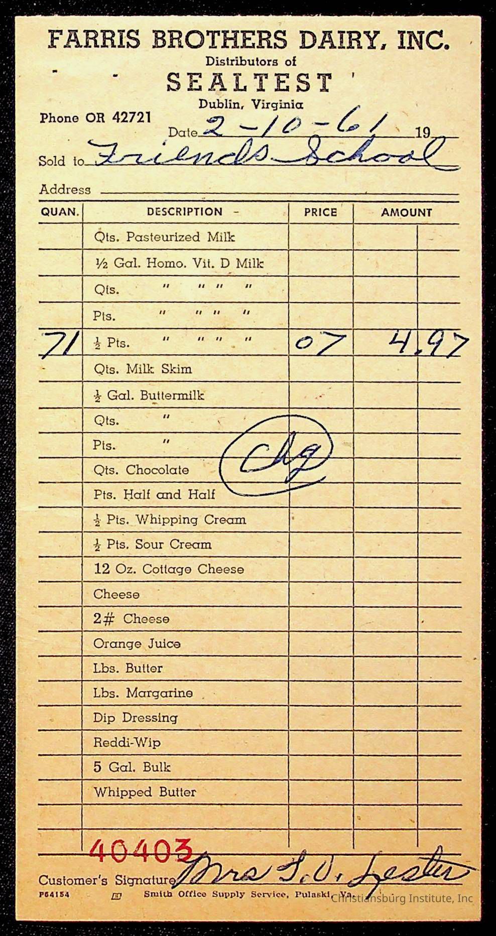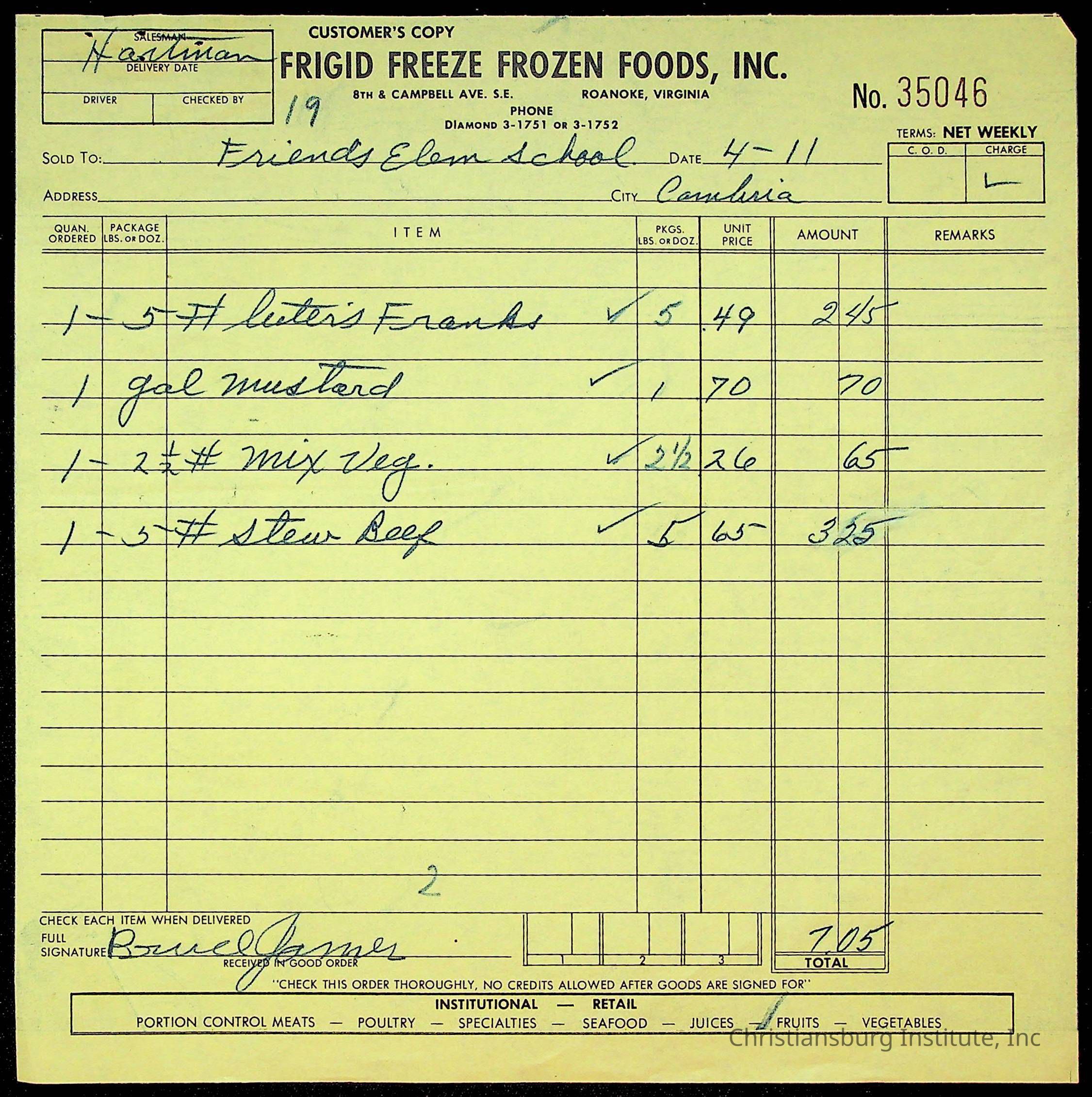 An archive of bills and receipts for Friends Elementary School from the 1959-1960 school year.Collection