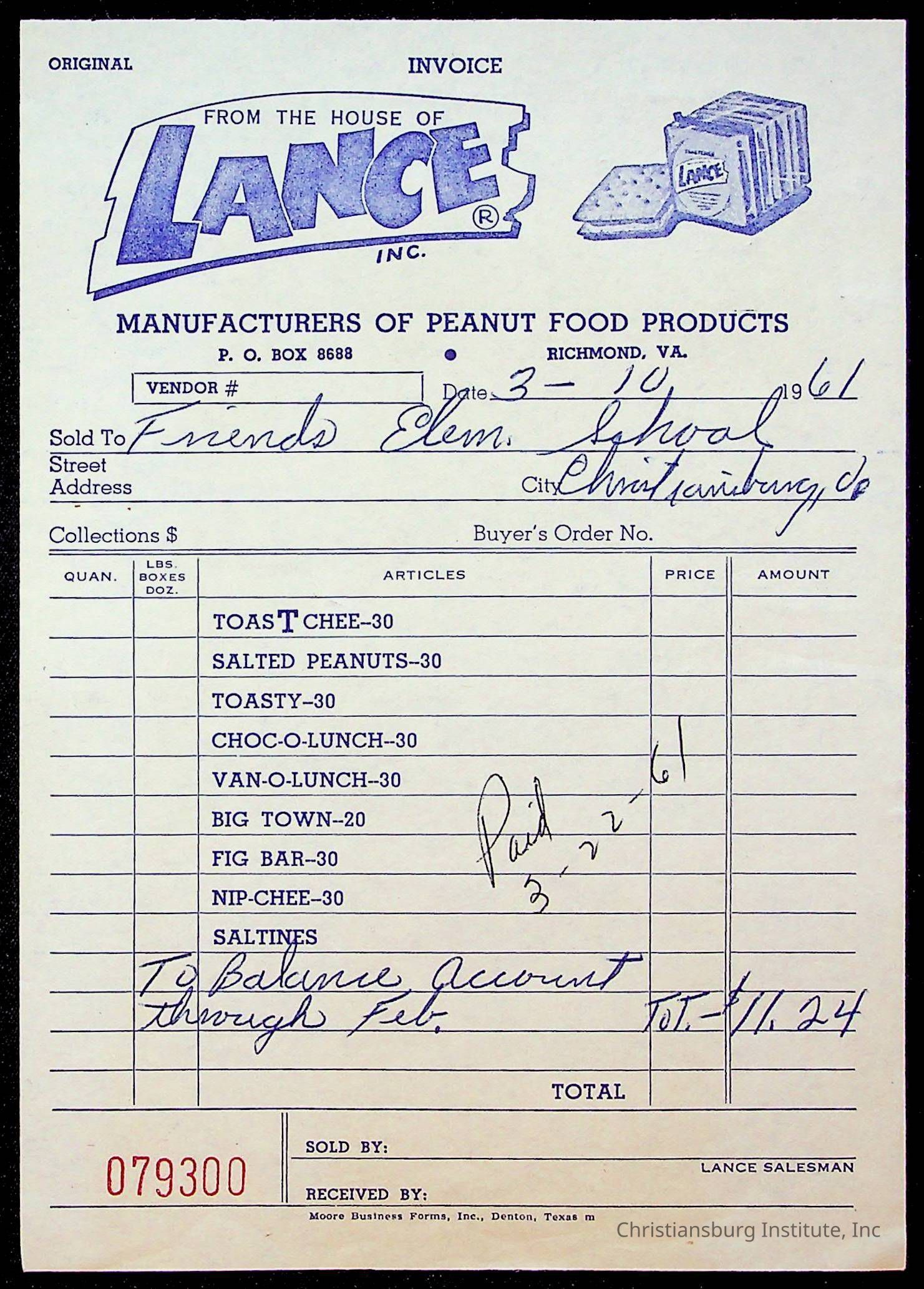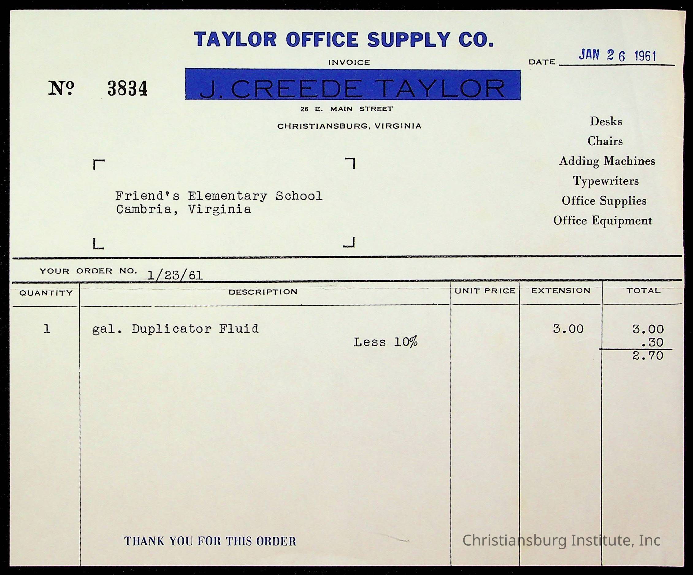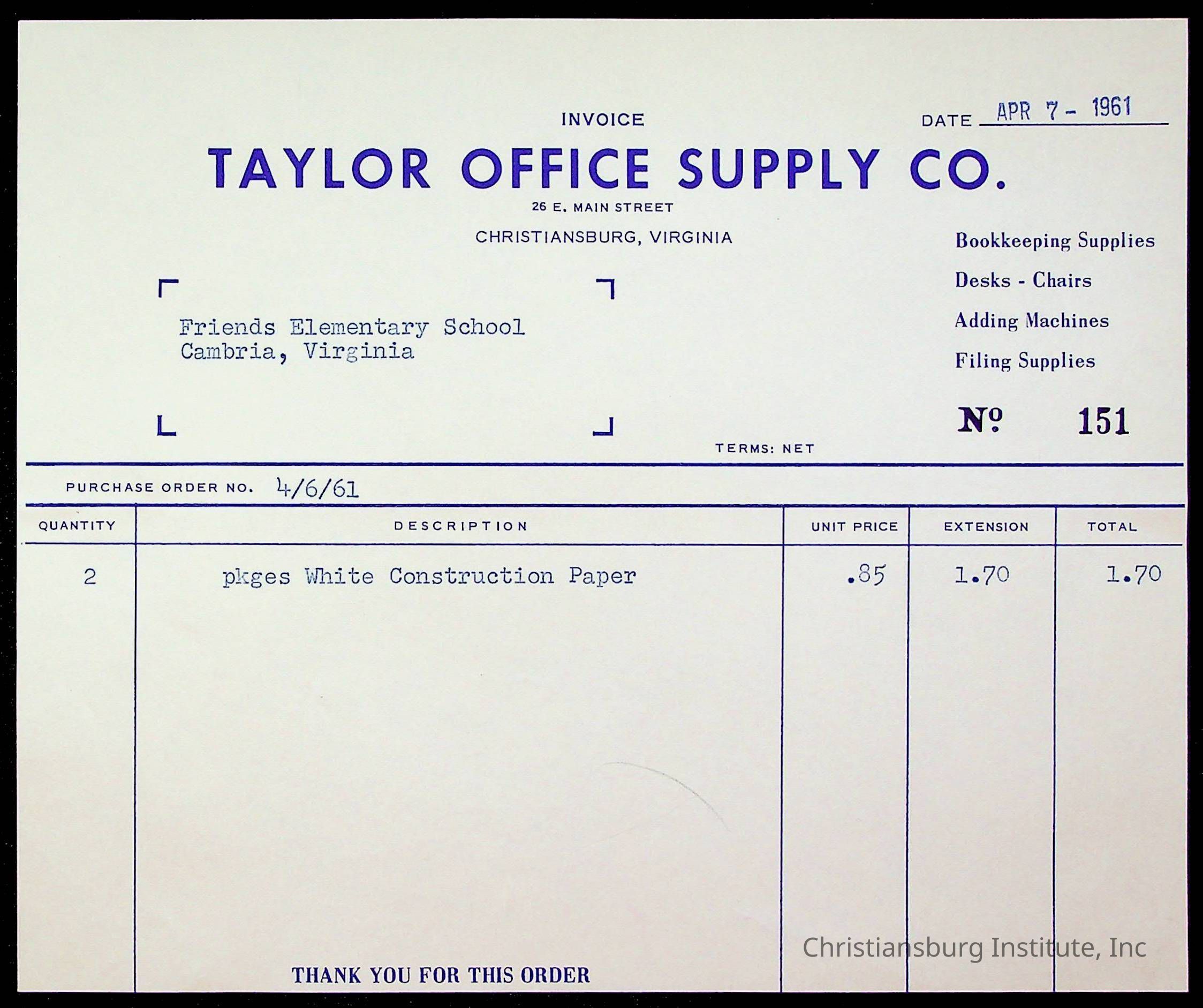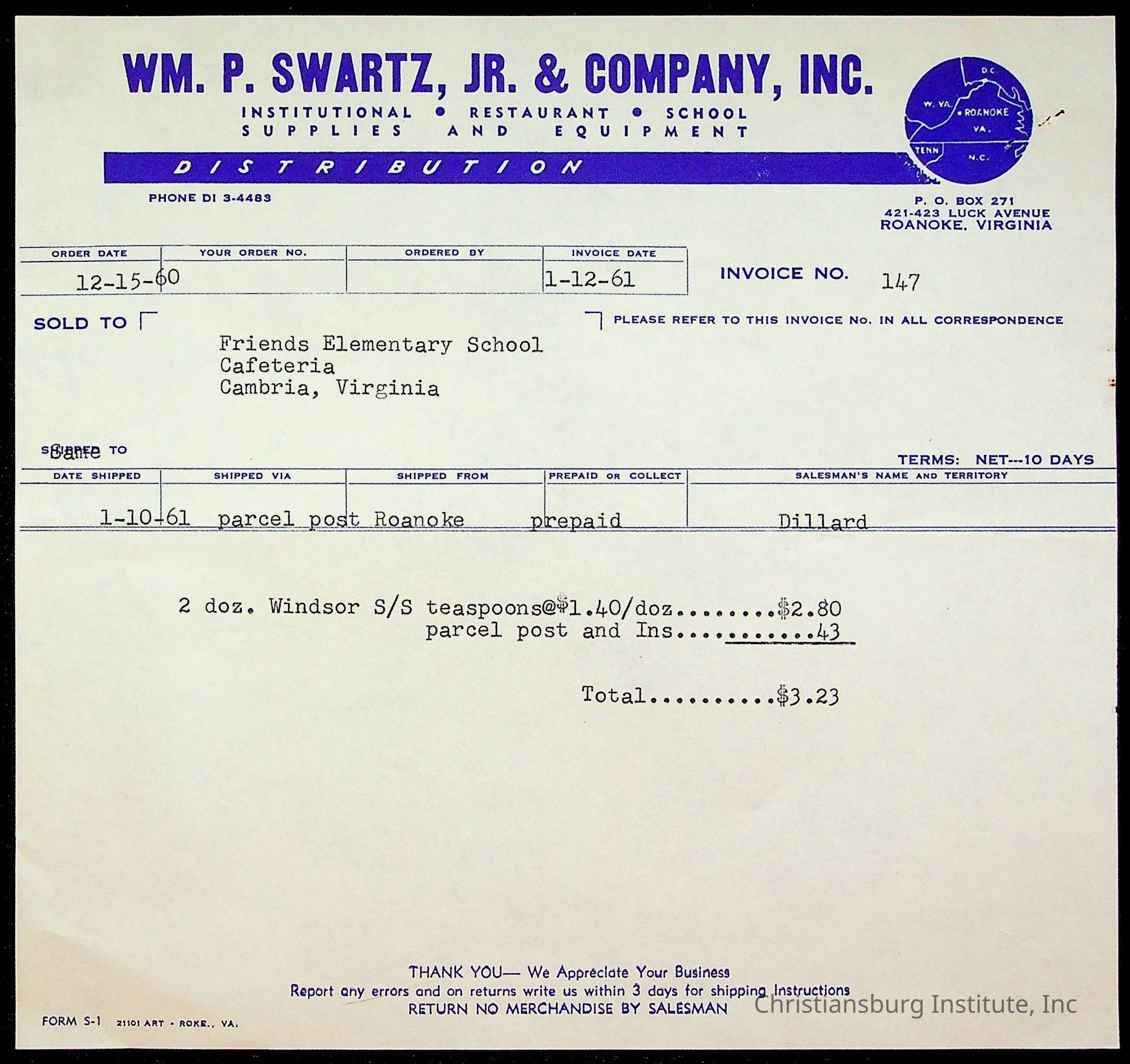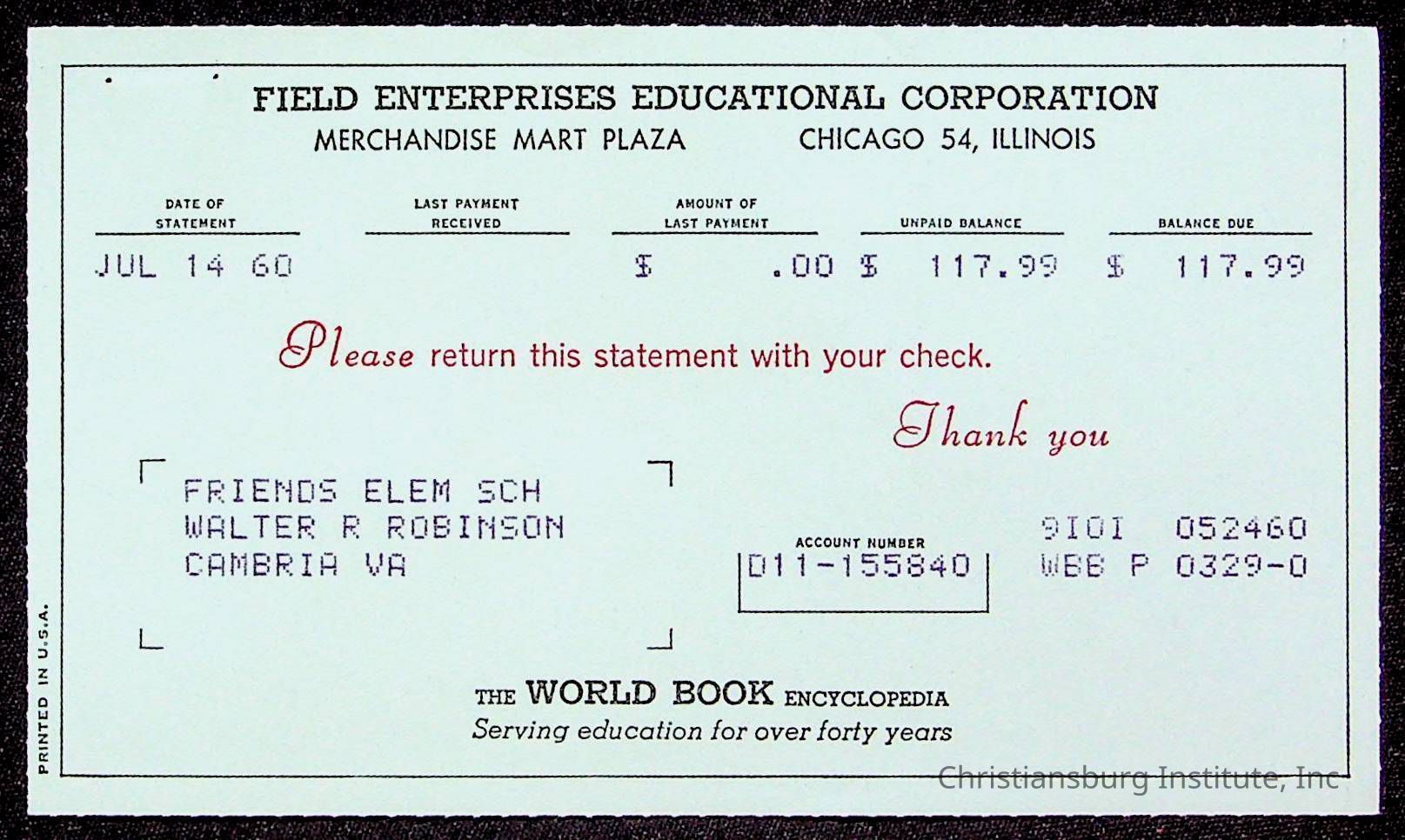 An archive of bills and receipts for Friends Elementary School from the 1959-1960 school year.Collection