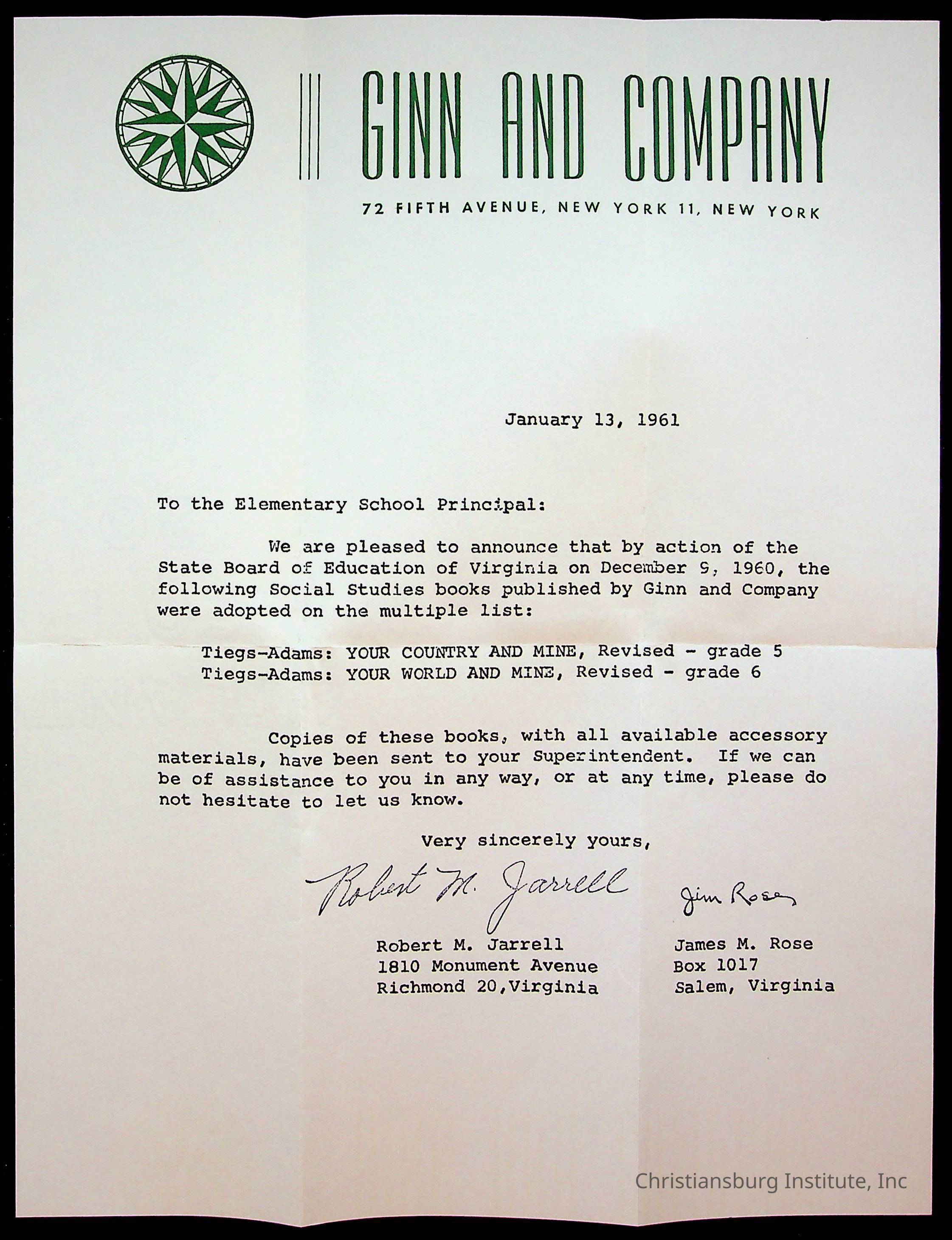 Copyright has been assigned to Christiansburg Institute Museum & Archives by Montgomery County Public Schools. For permission to publish materials created by the donor, contact CIMA@christiansburginstitute.com. Materials not created by Christiansburg Industrial Institute may still be under copyright.