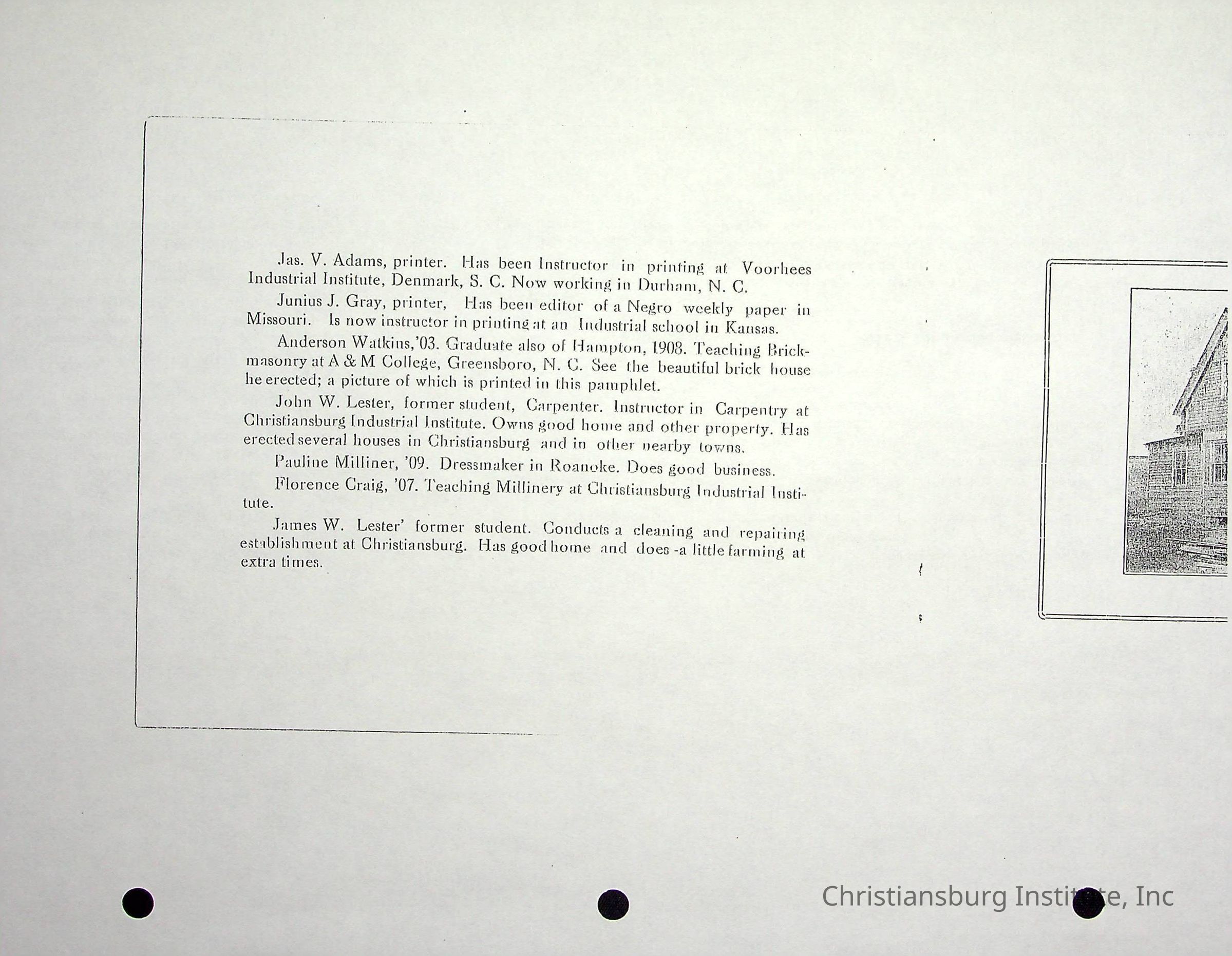 Christiansburg Industrial InstitutePlace Printed