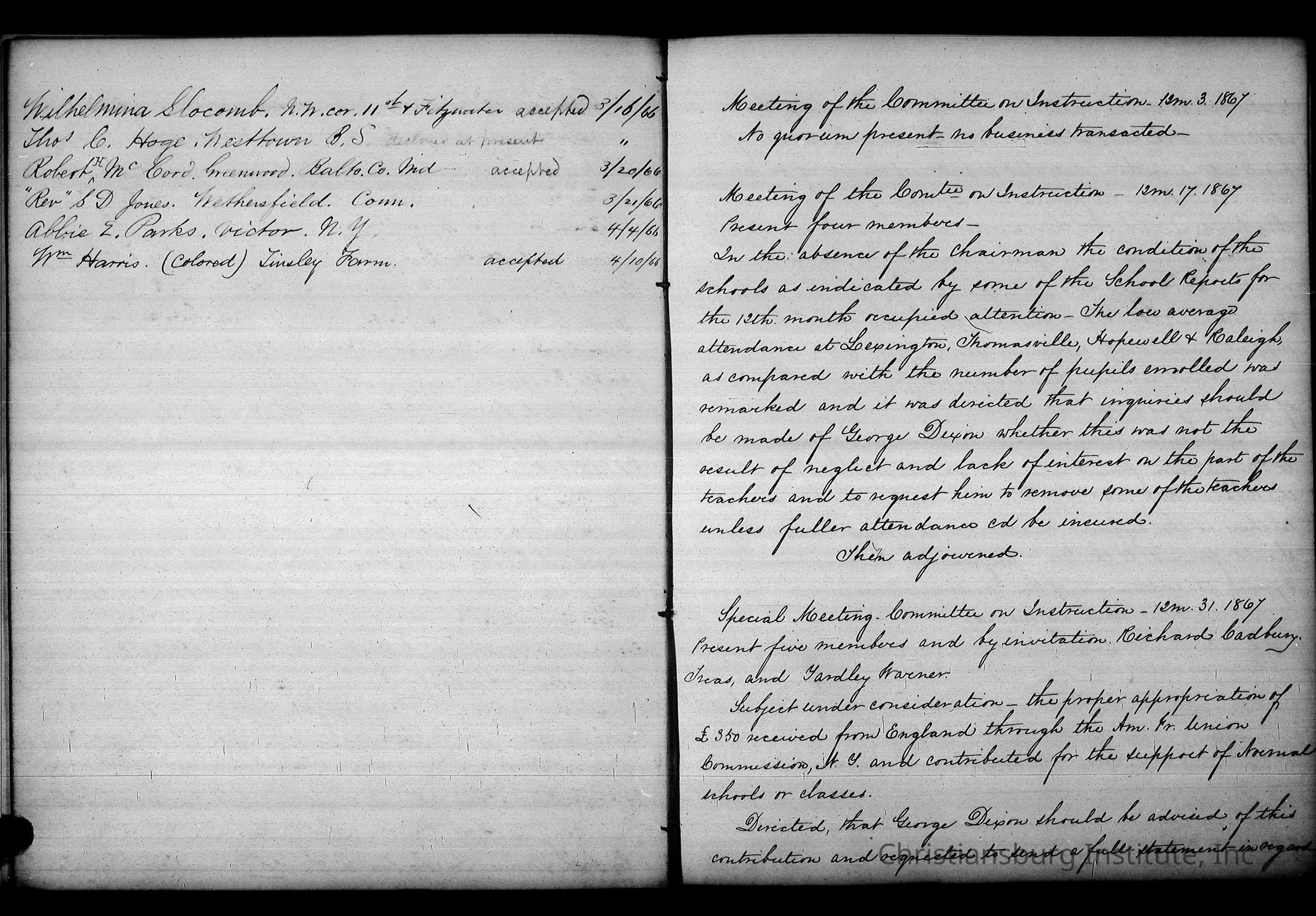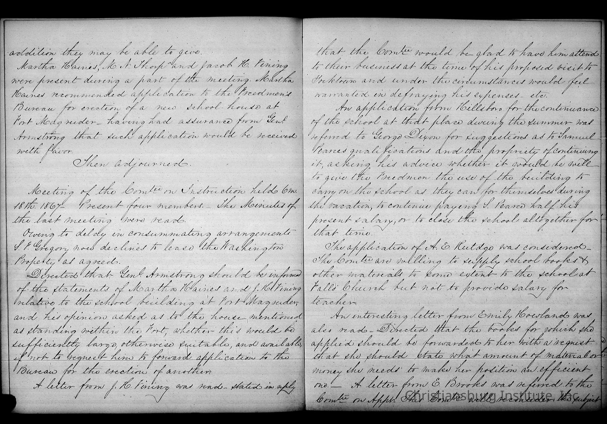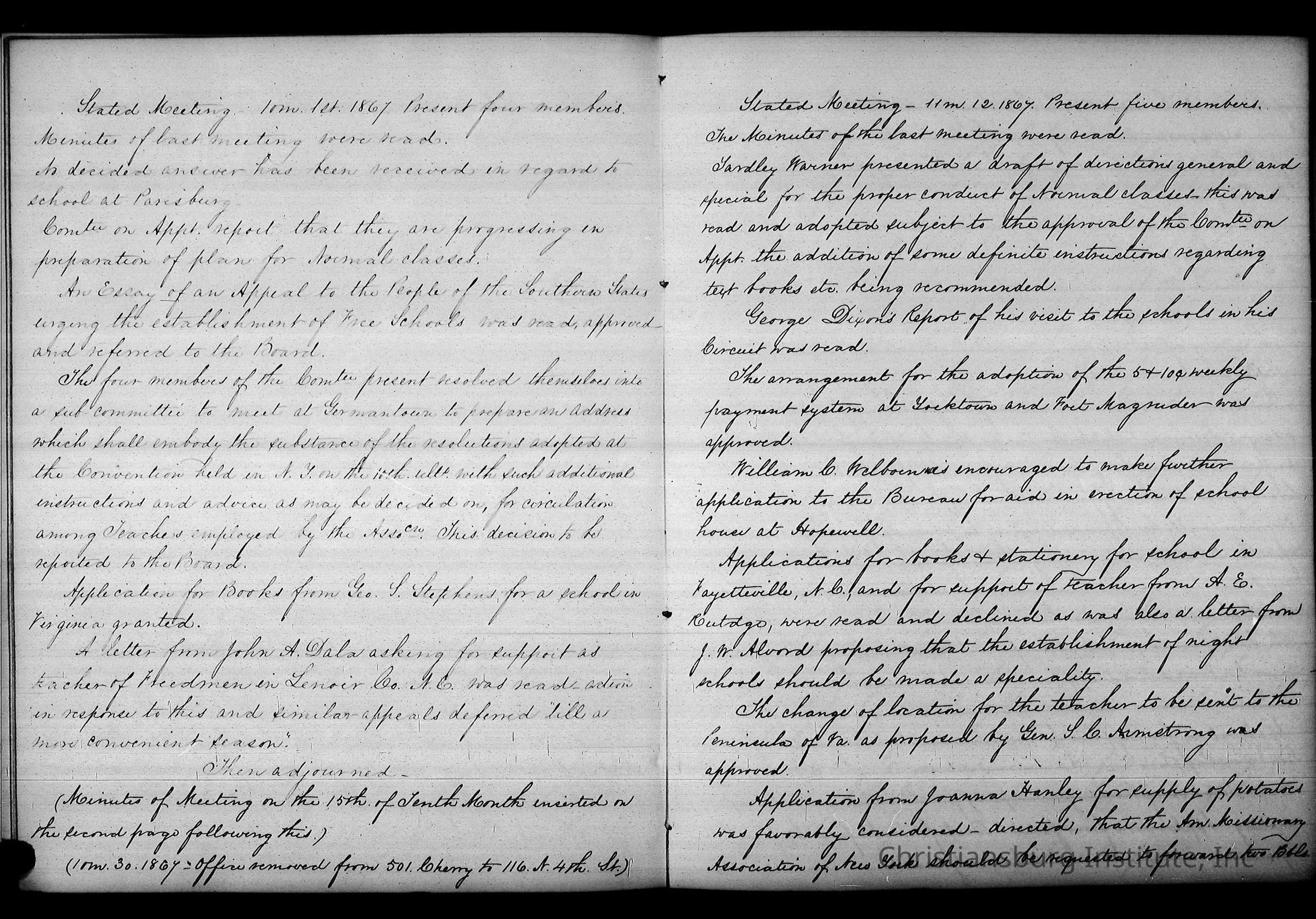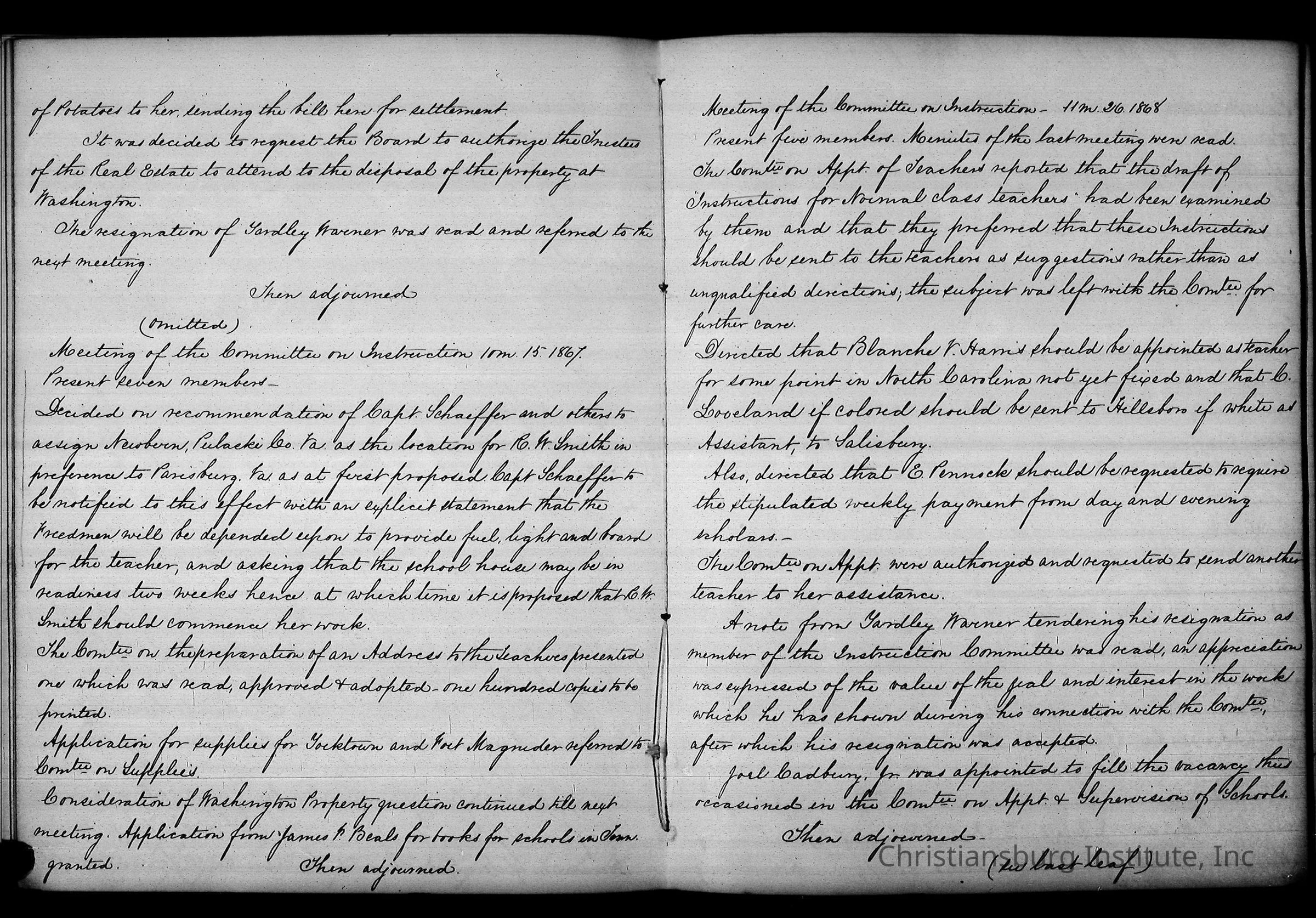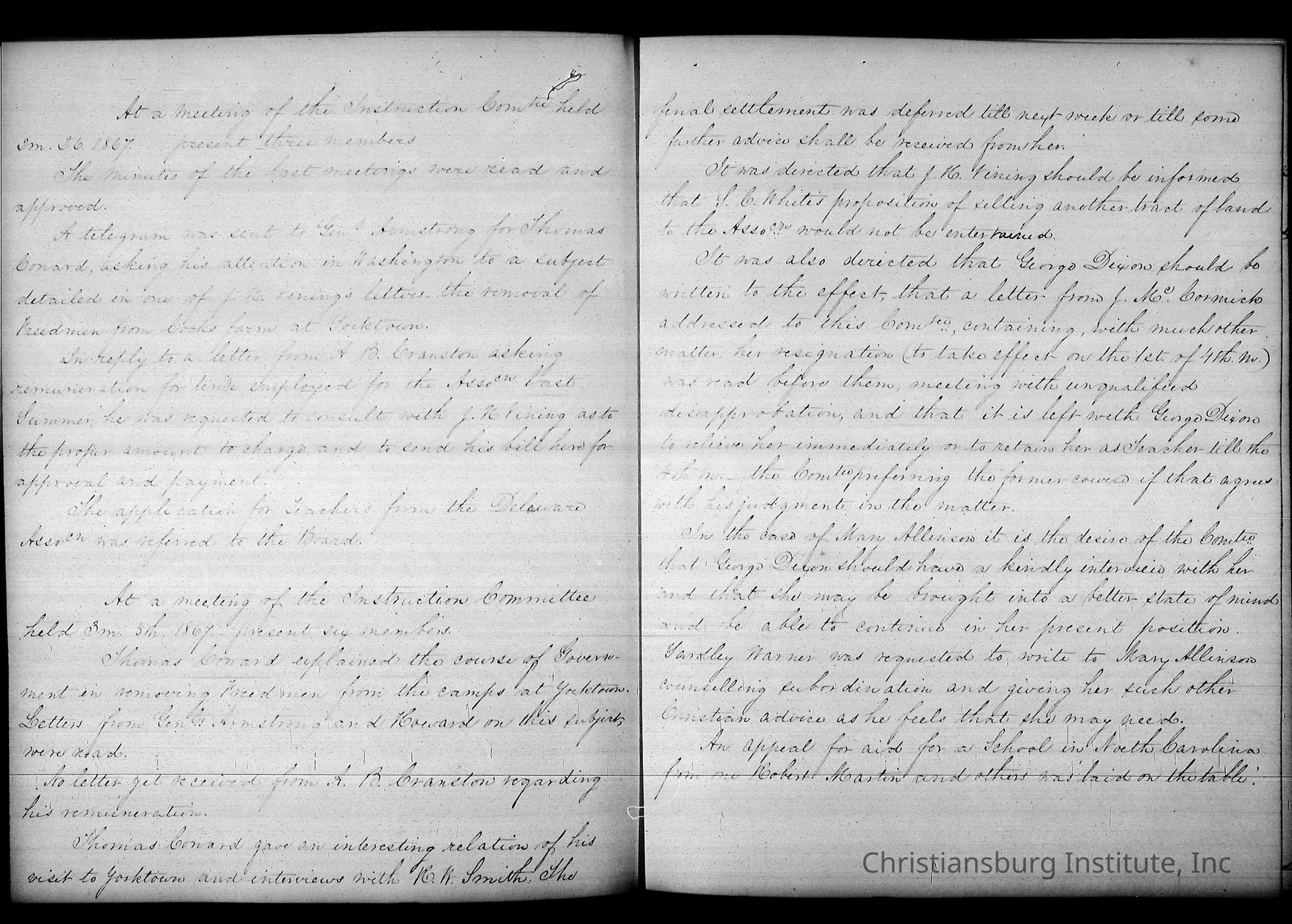 Friends Freedman's Association Reel Five Disk Two: Women's Aid Committee 1862-1864 and Instruction Committee Minutes 1864-1867 & 1875-1882Description