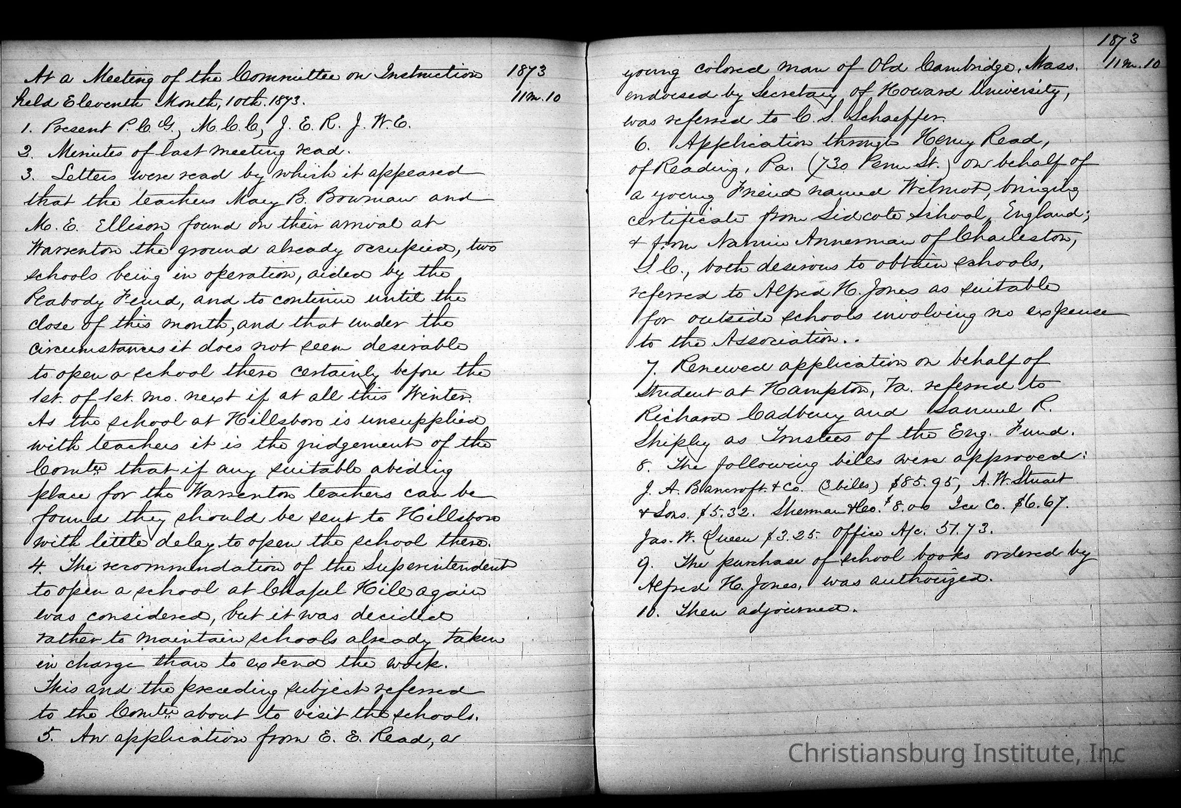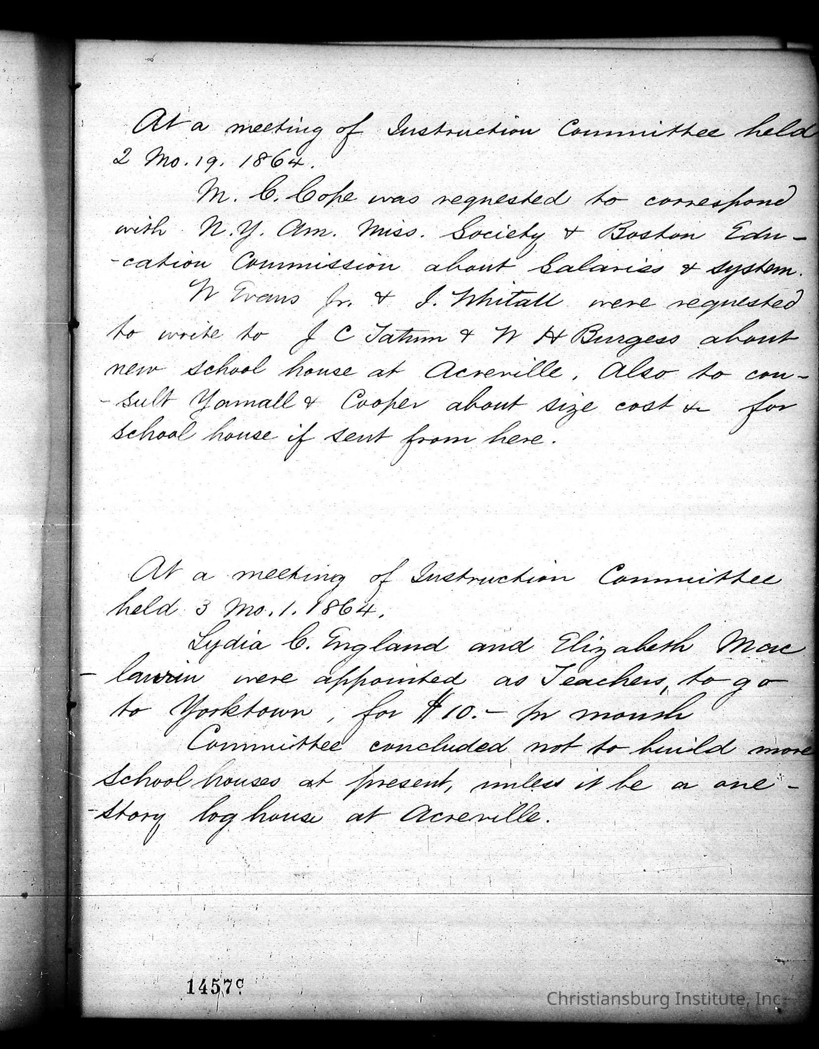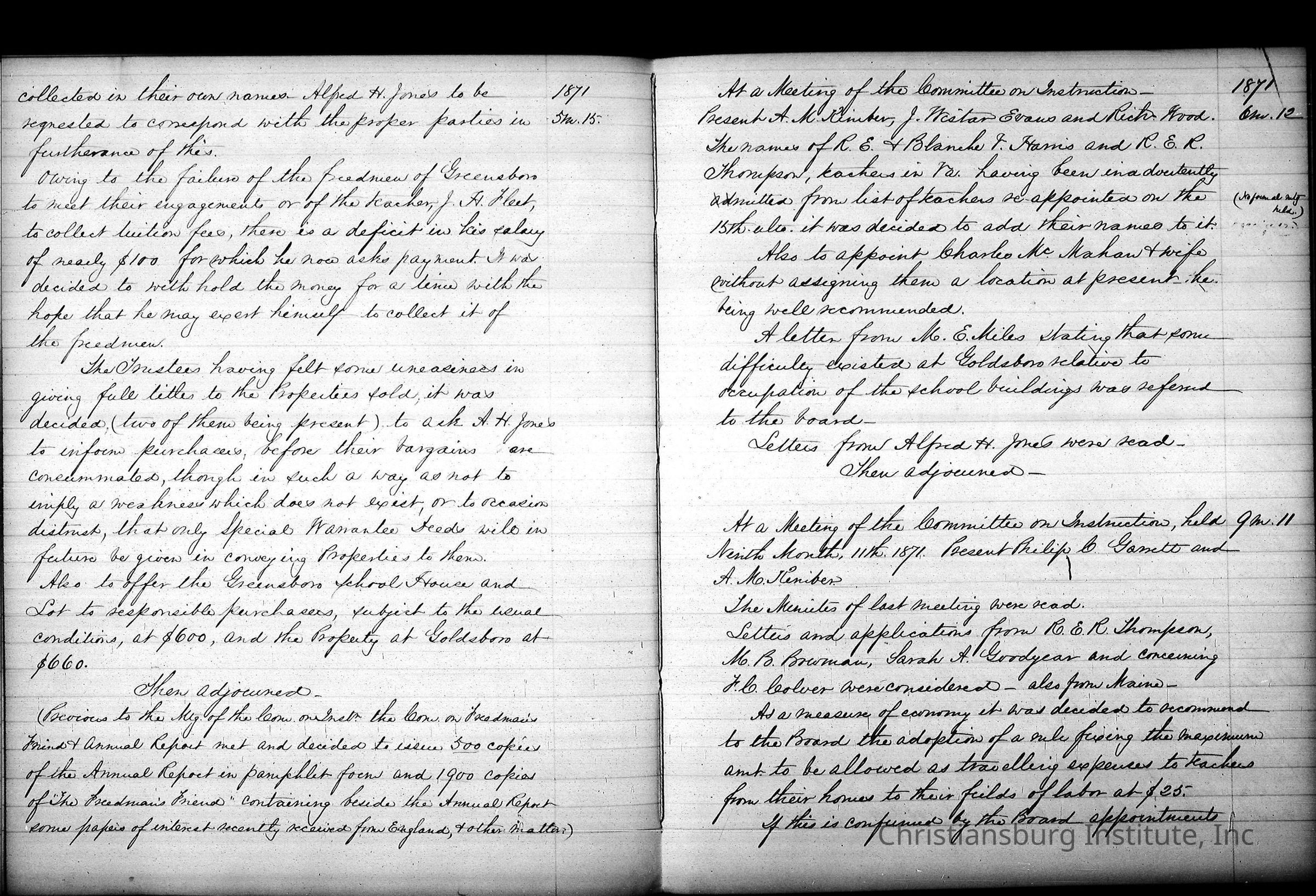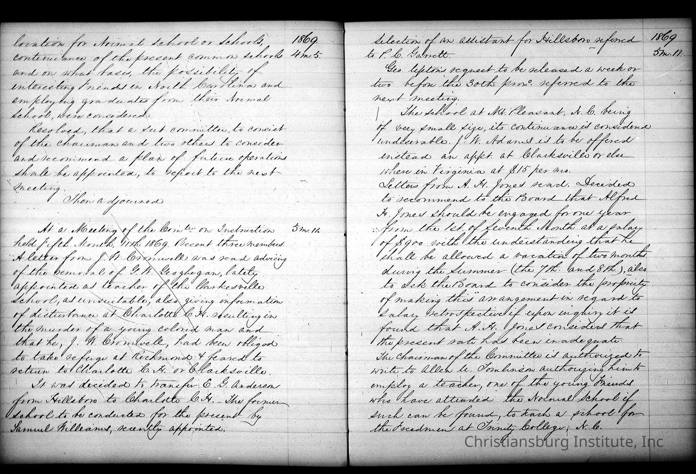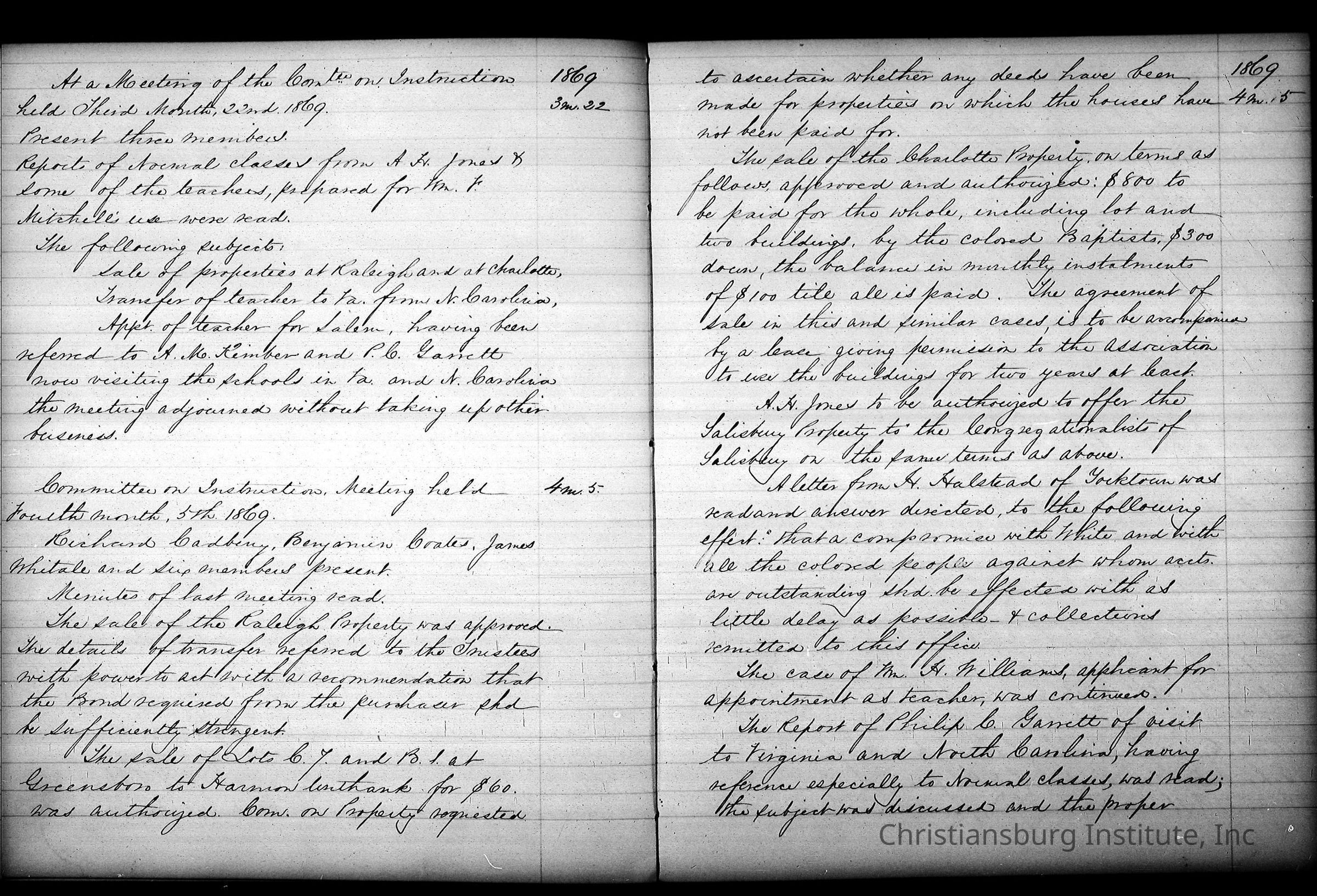 Friends Freedman's Association Reel Five Disk Two: Women's Aid Committee 1862-1864 and Instruction Committee Minutes 1864-1867 & 1875-1882Description