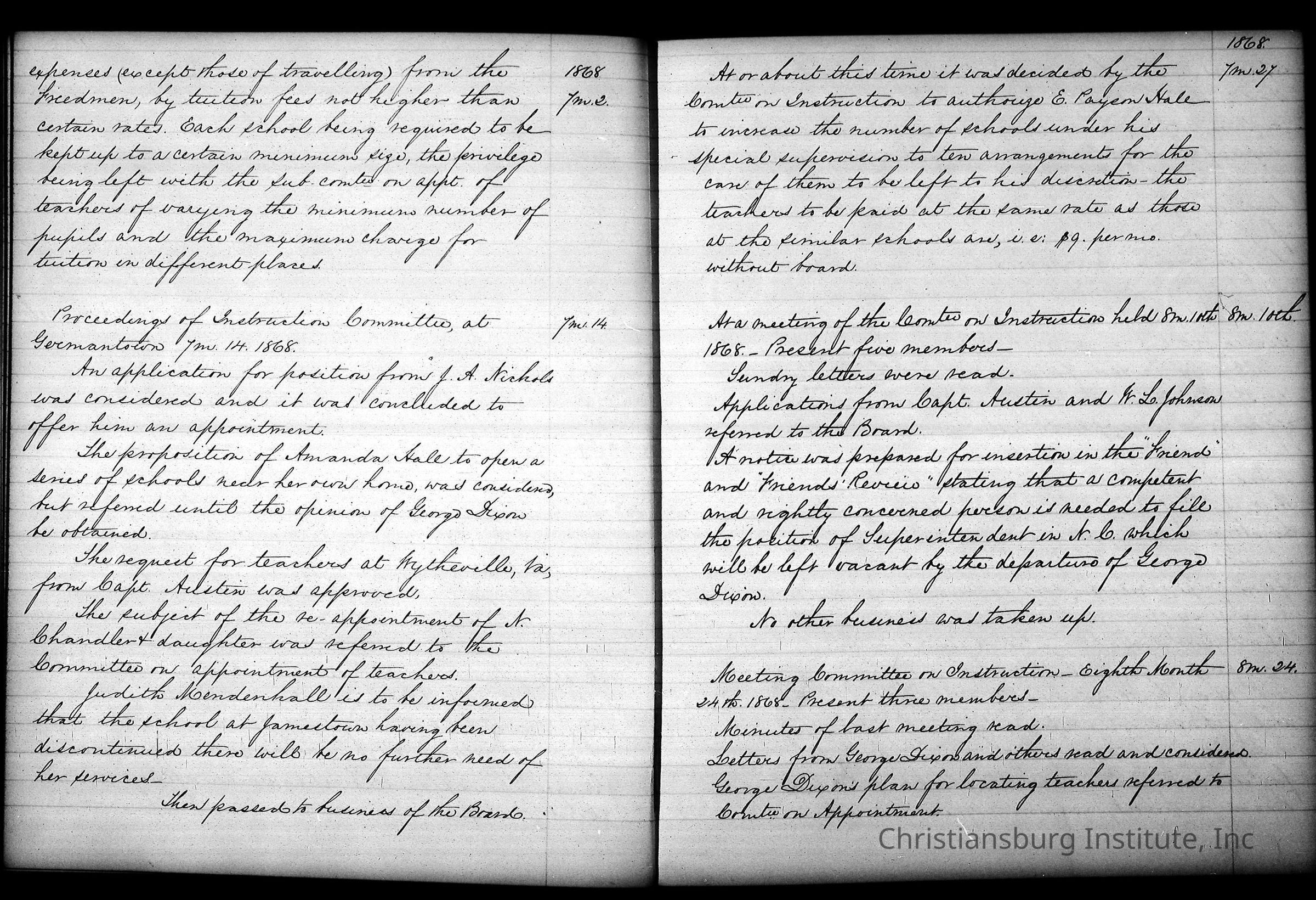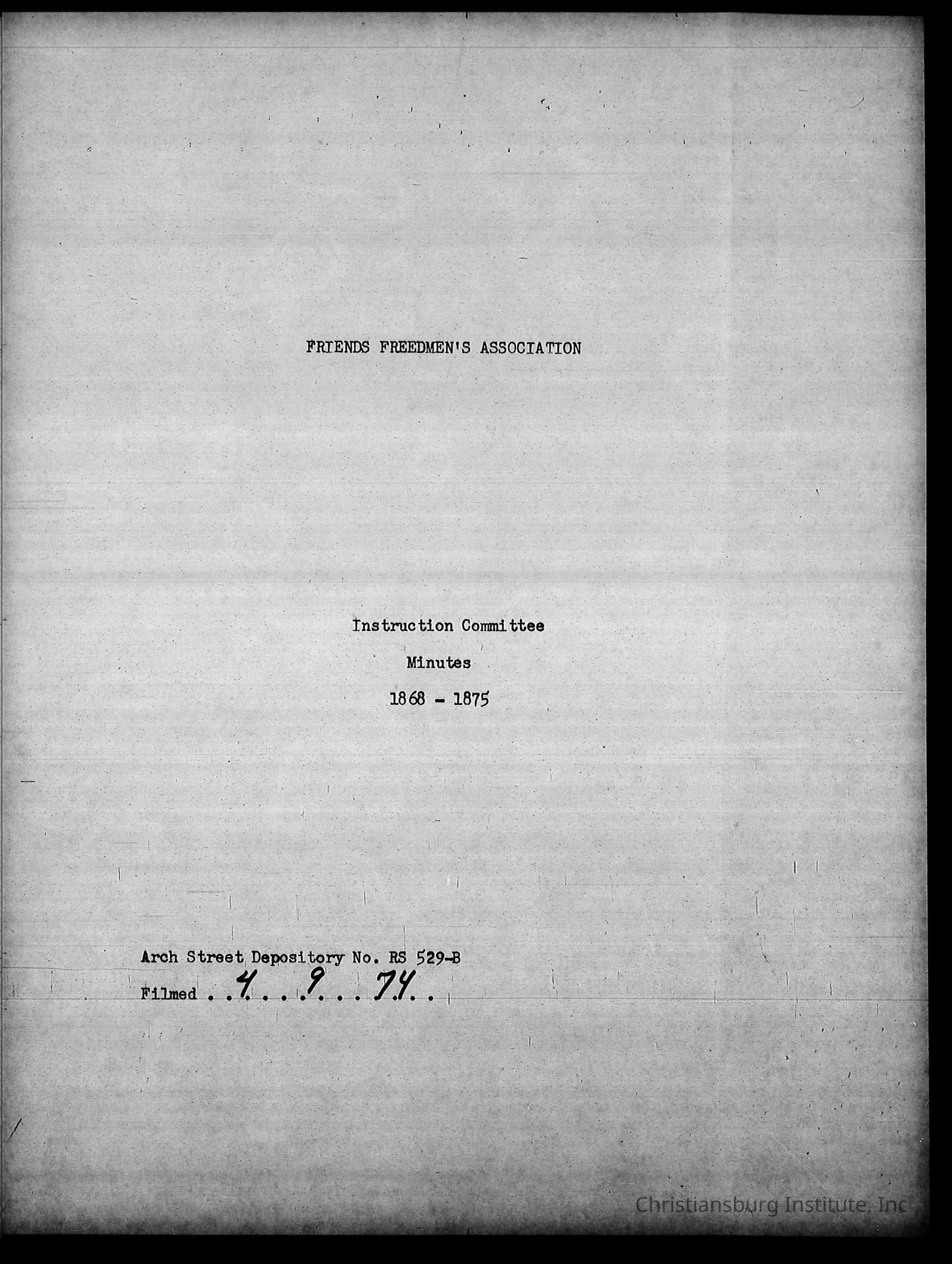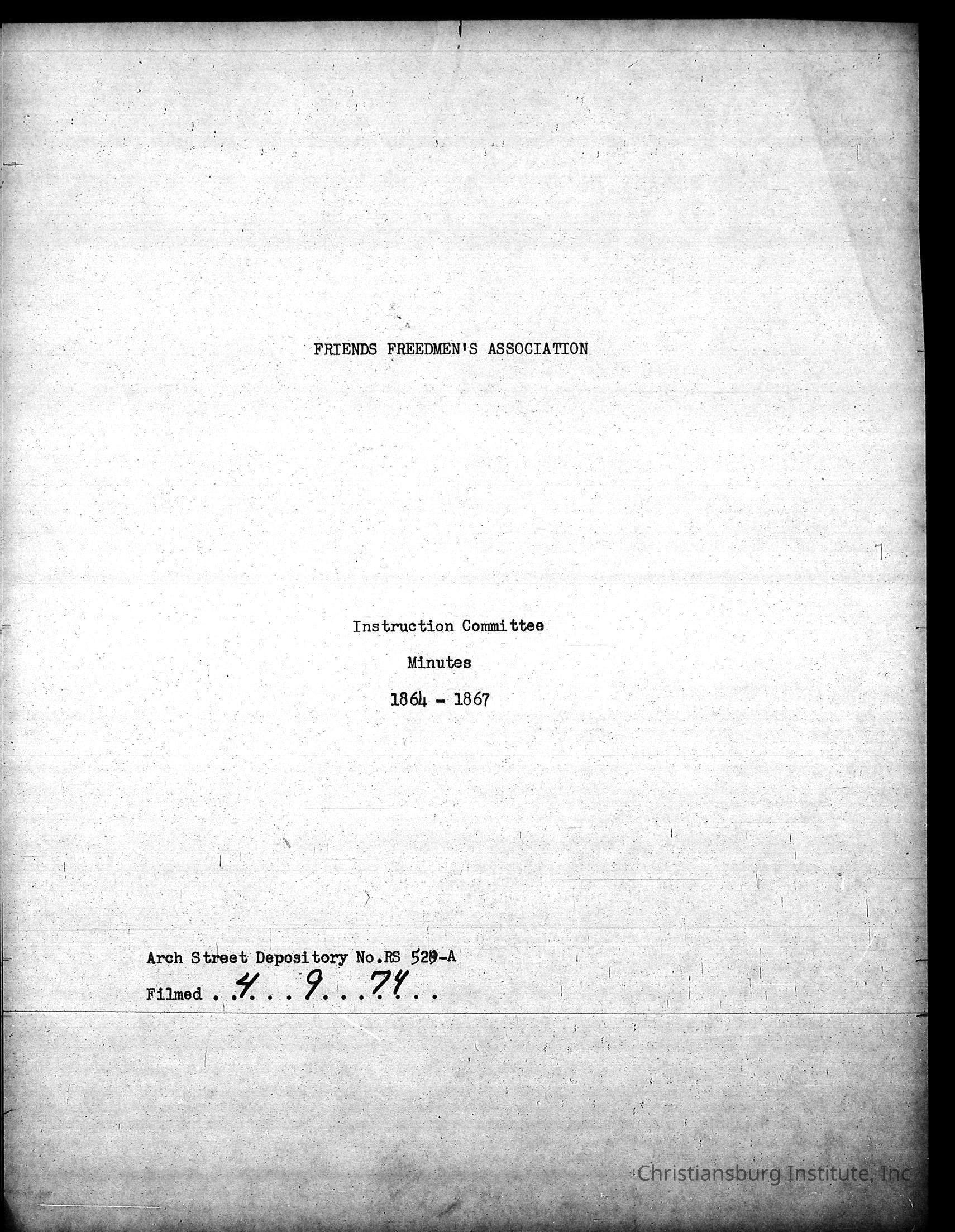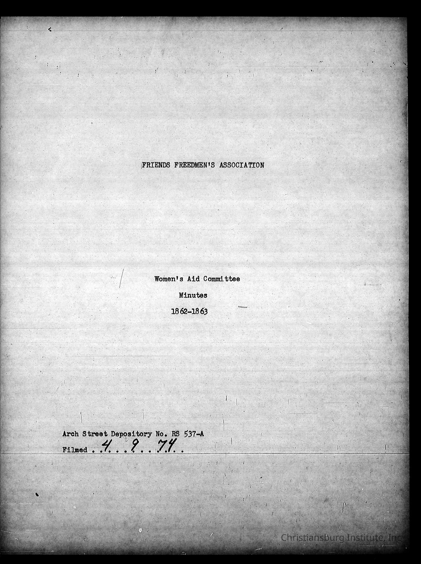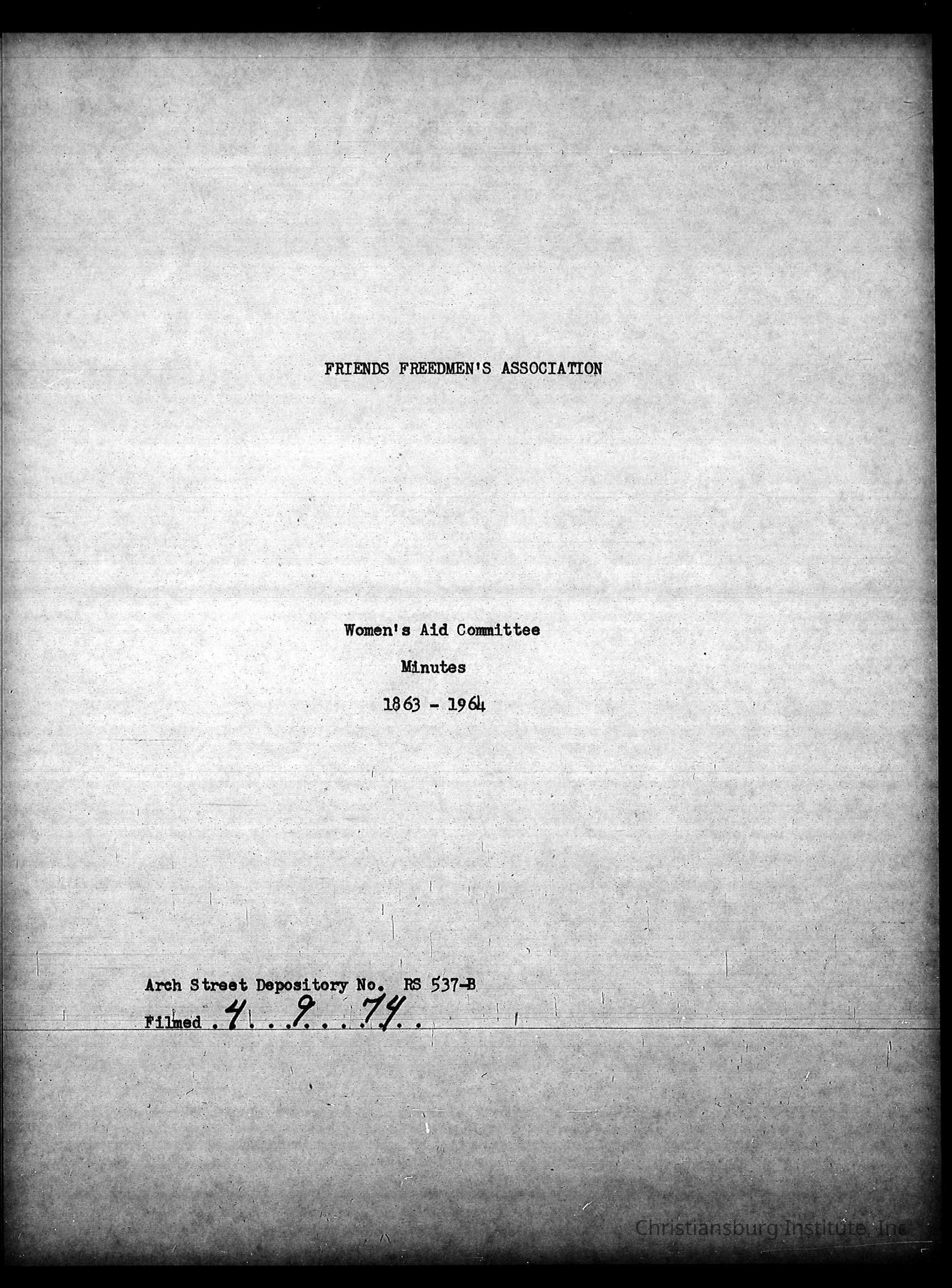 A series of digitally scanned photocopies of Friends Freedman's Association Women's Aid Committee 1862-1864 and Instruction Committee Minutes 1864-1867 & 1875-1882 on a DVD disk. Originally scanned on April 9th, 1974 by Princeton Datafilm Inc.Creator