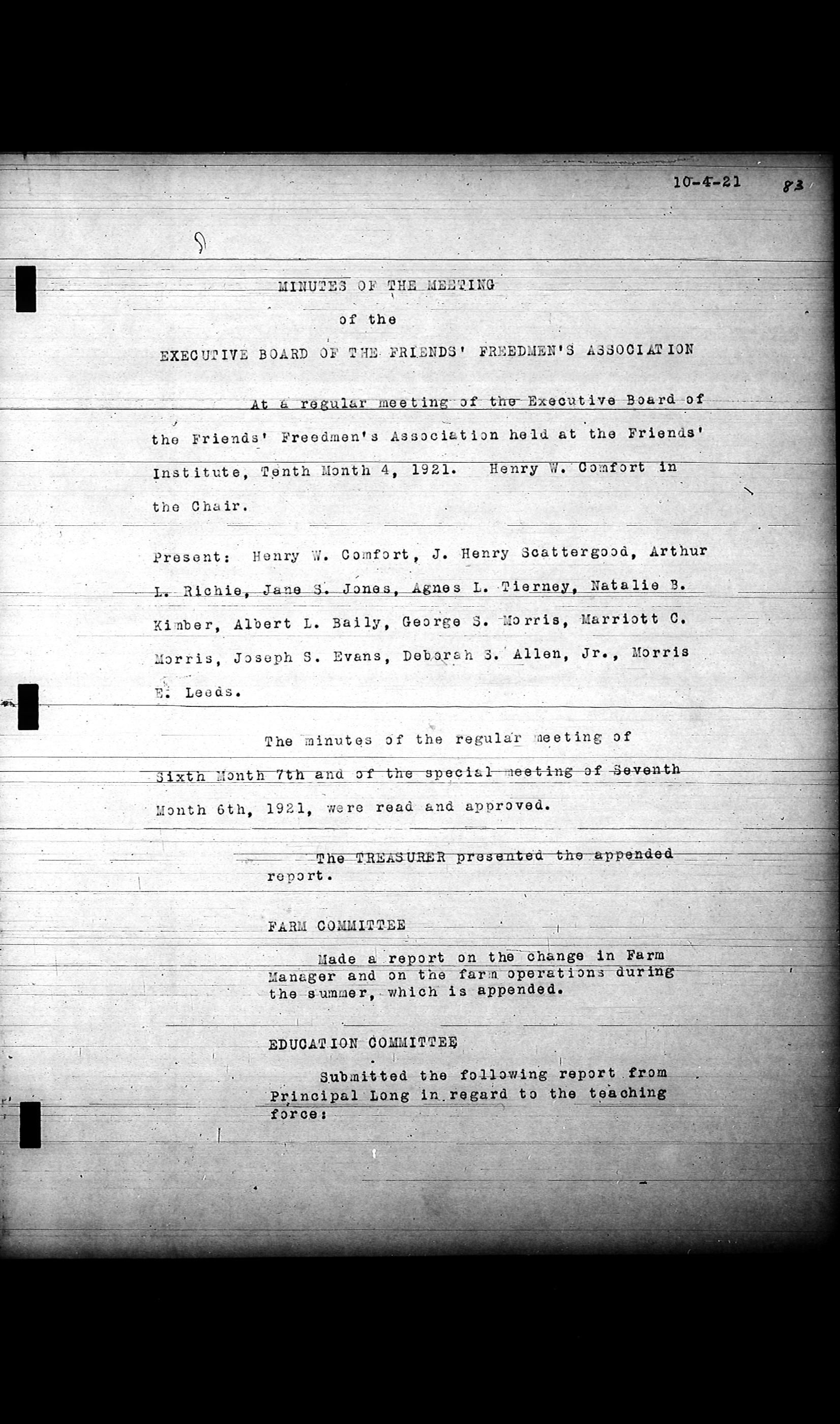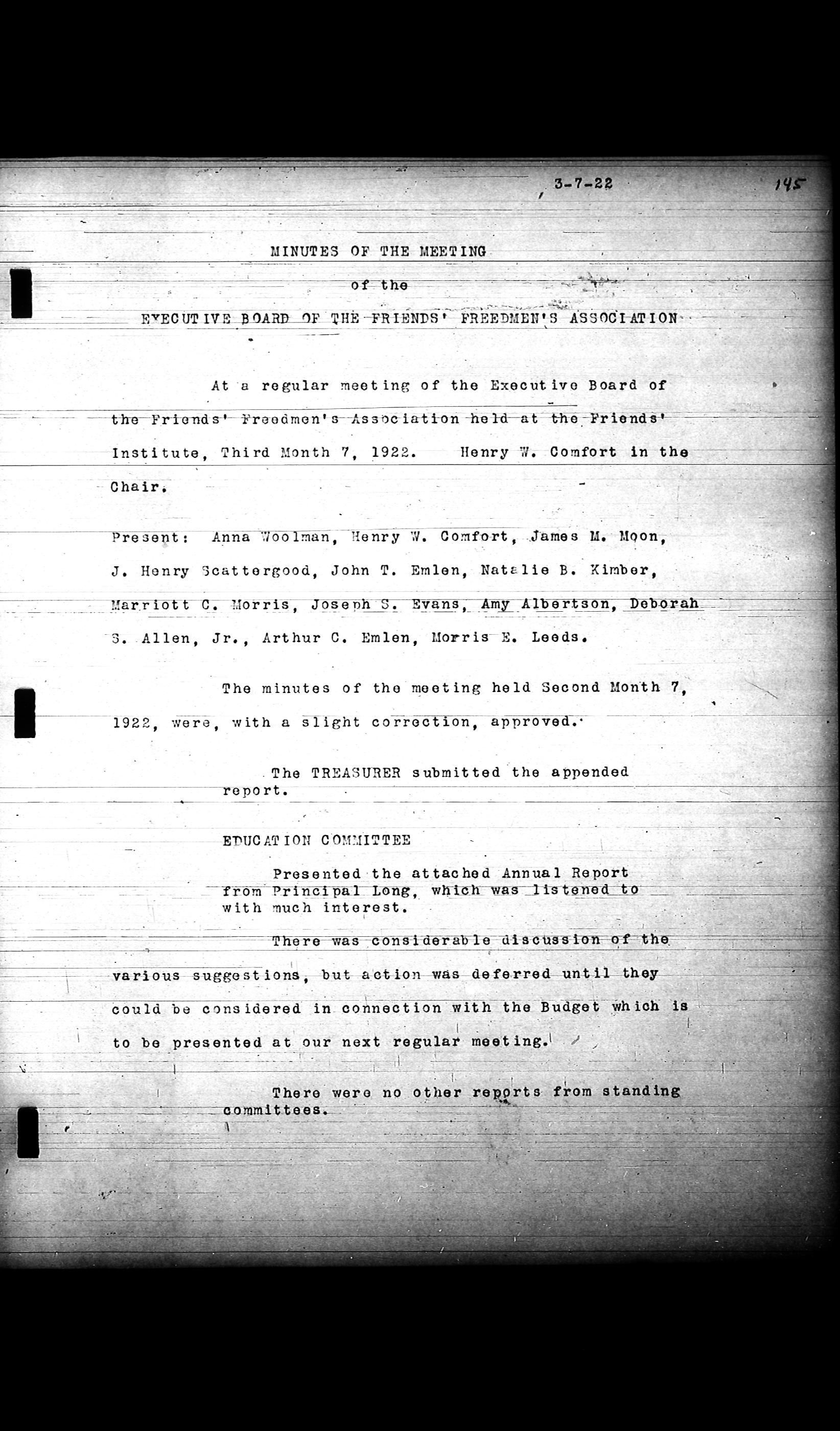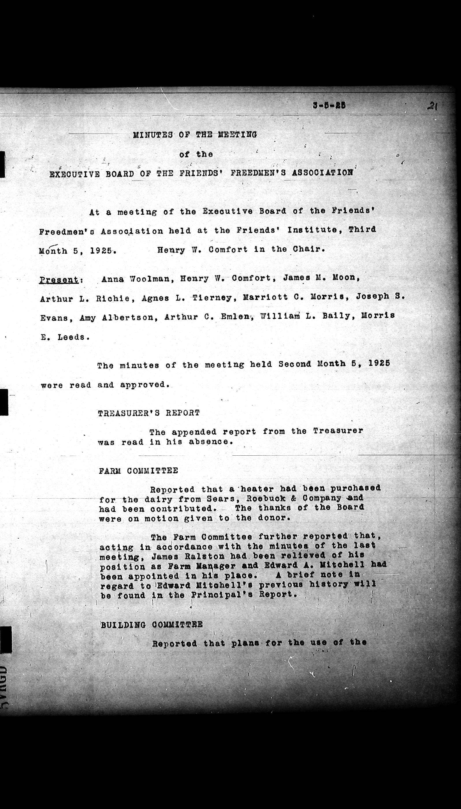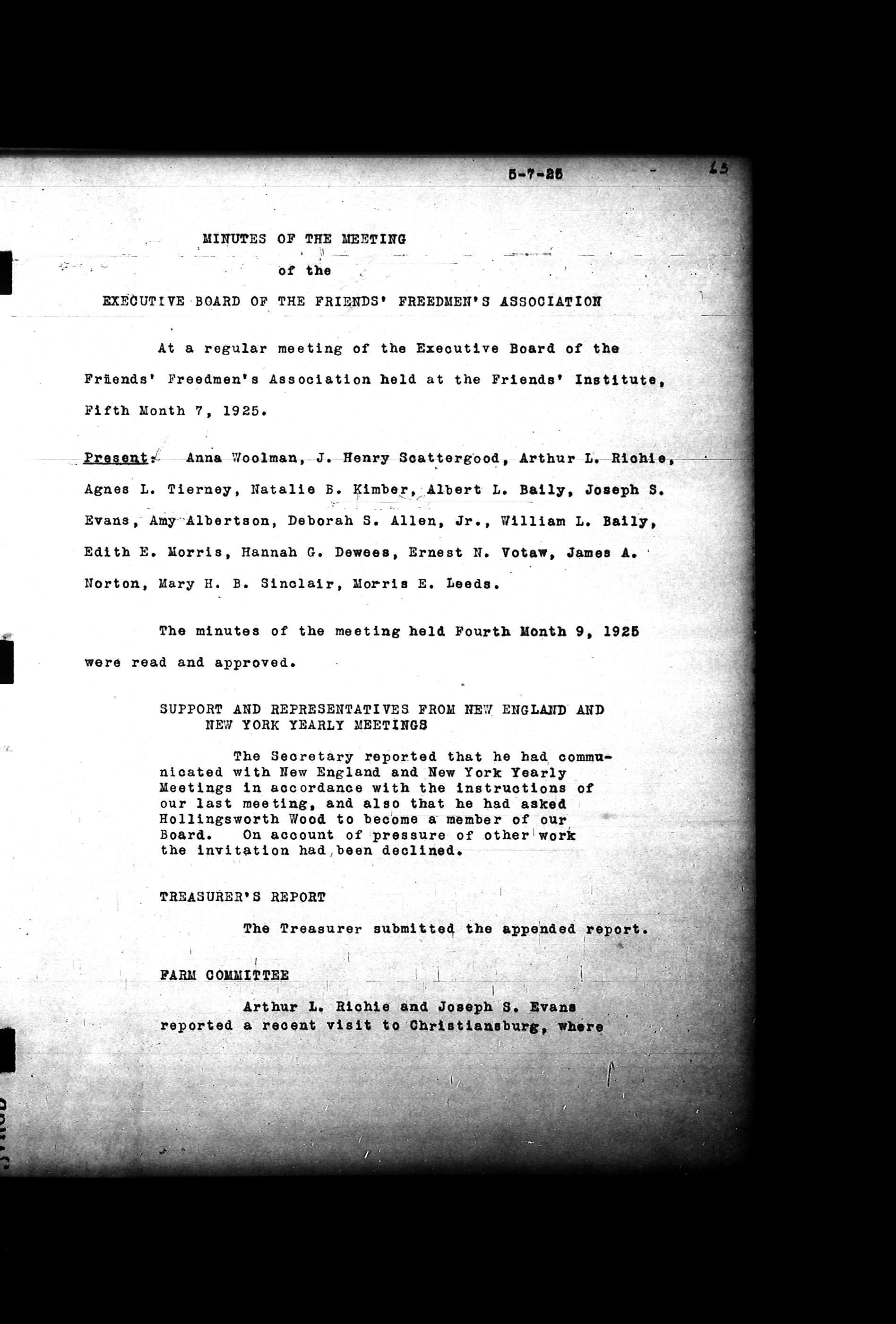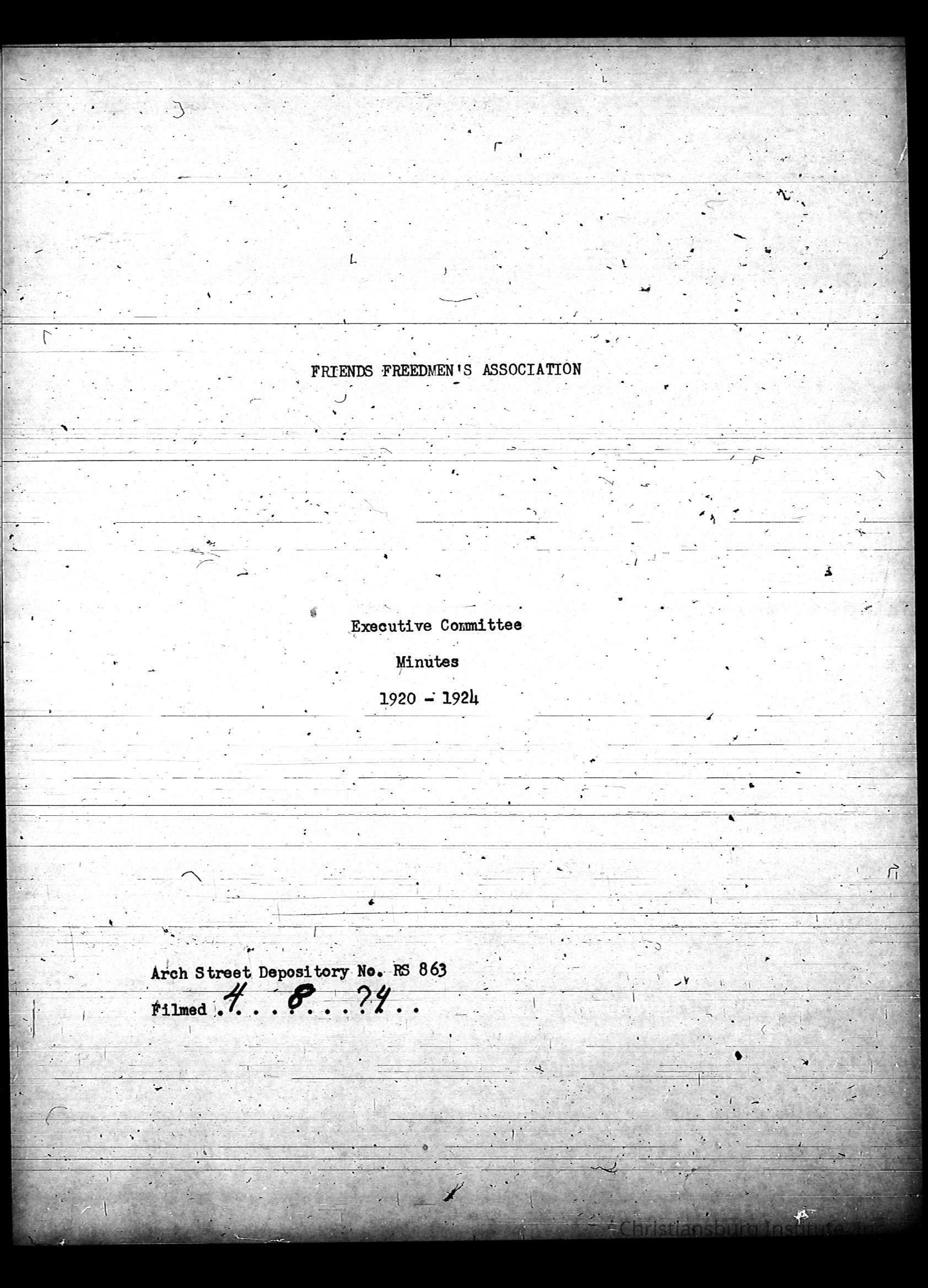 Friends Freedman's Association Reel Four: Executive Committee Minutes 1920-1932Scope and Content