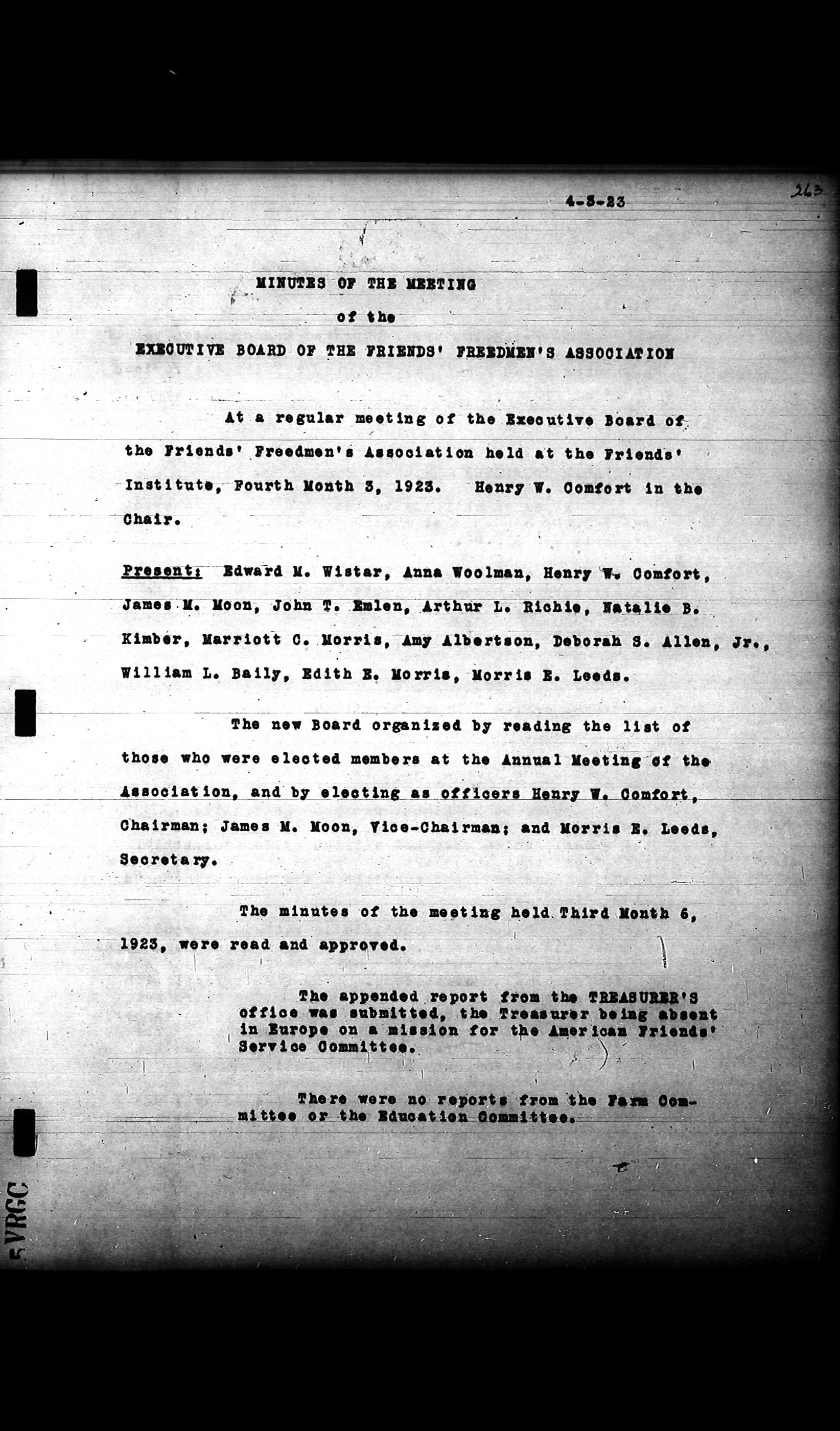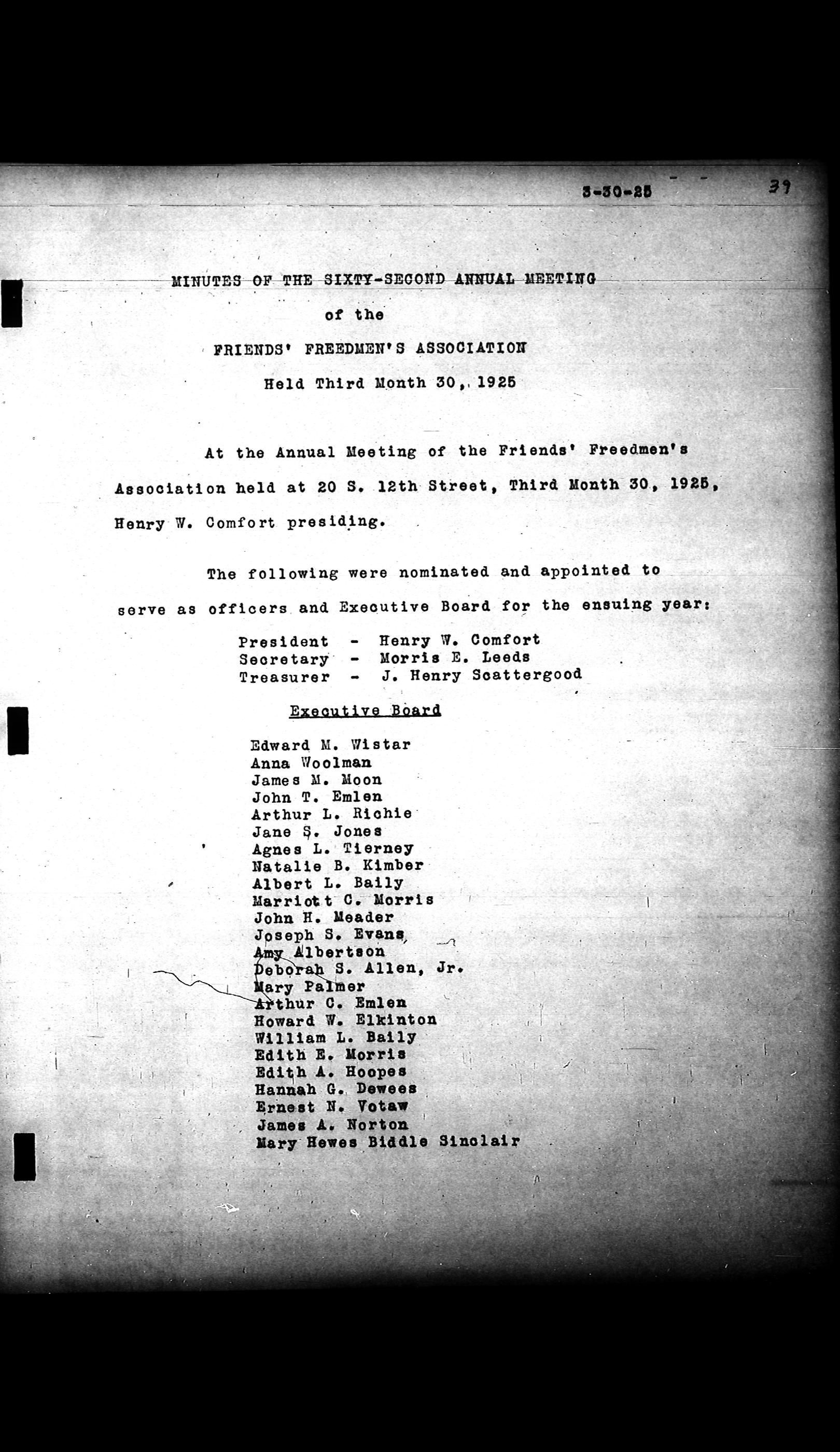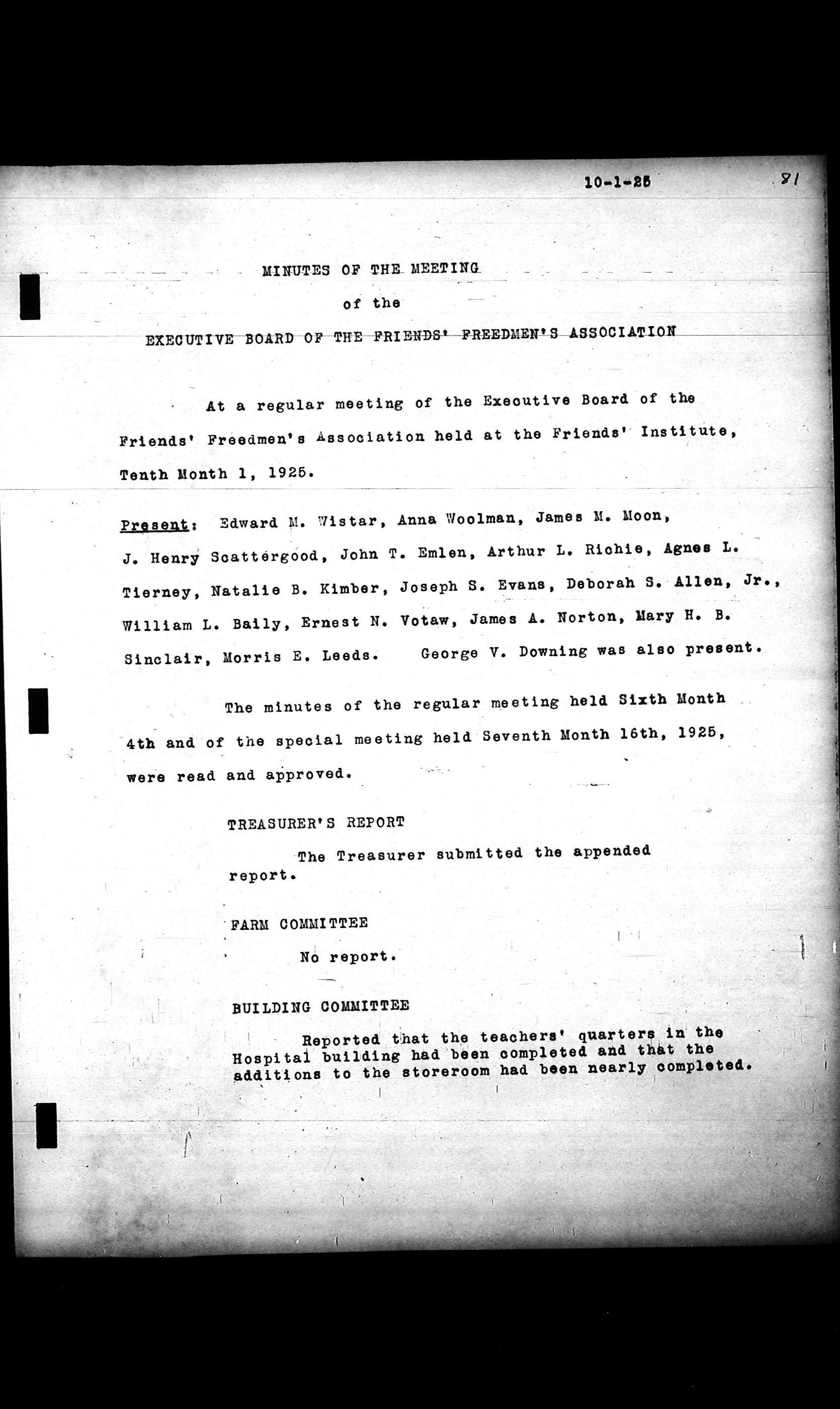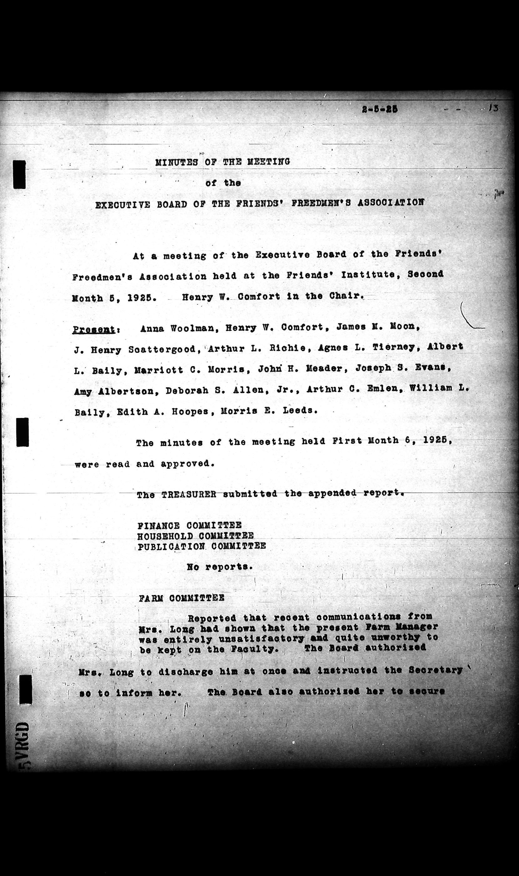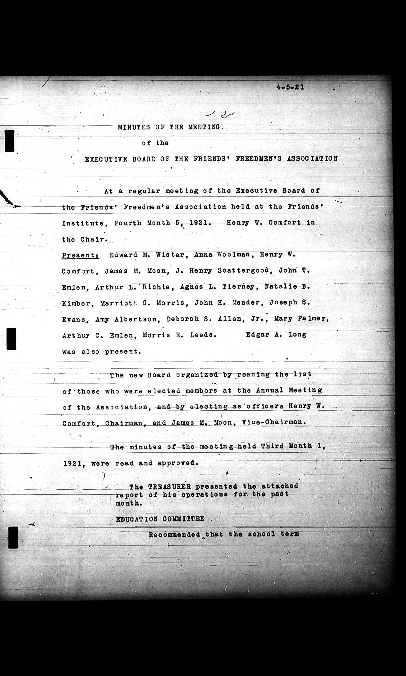 Friends Freedman's Association Reel Four: Executive Committee Minutes 1920-1932Scope and Content