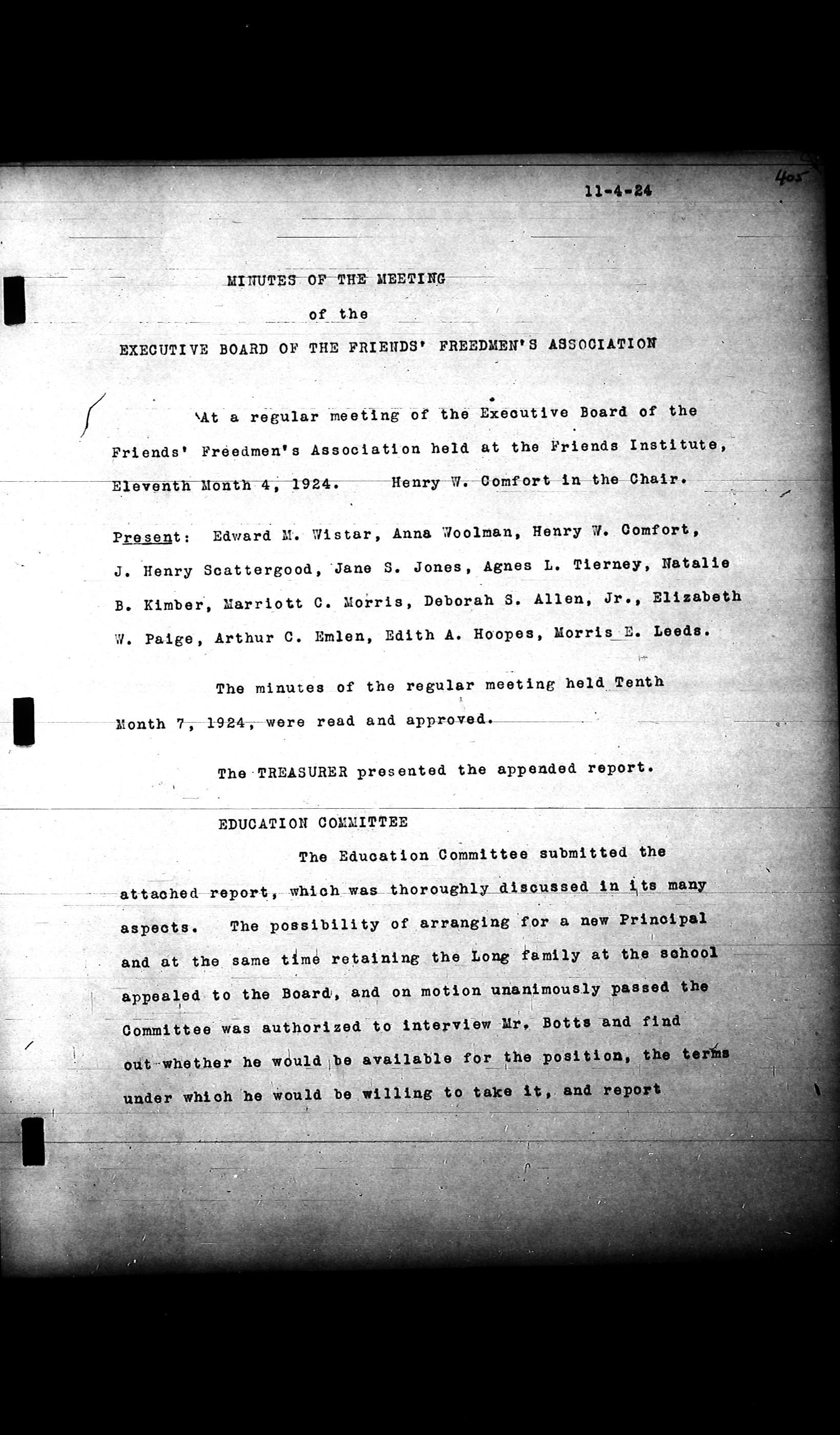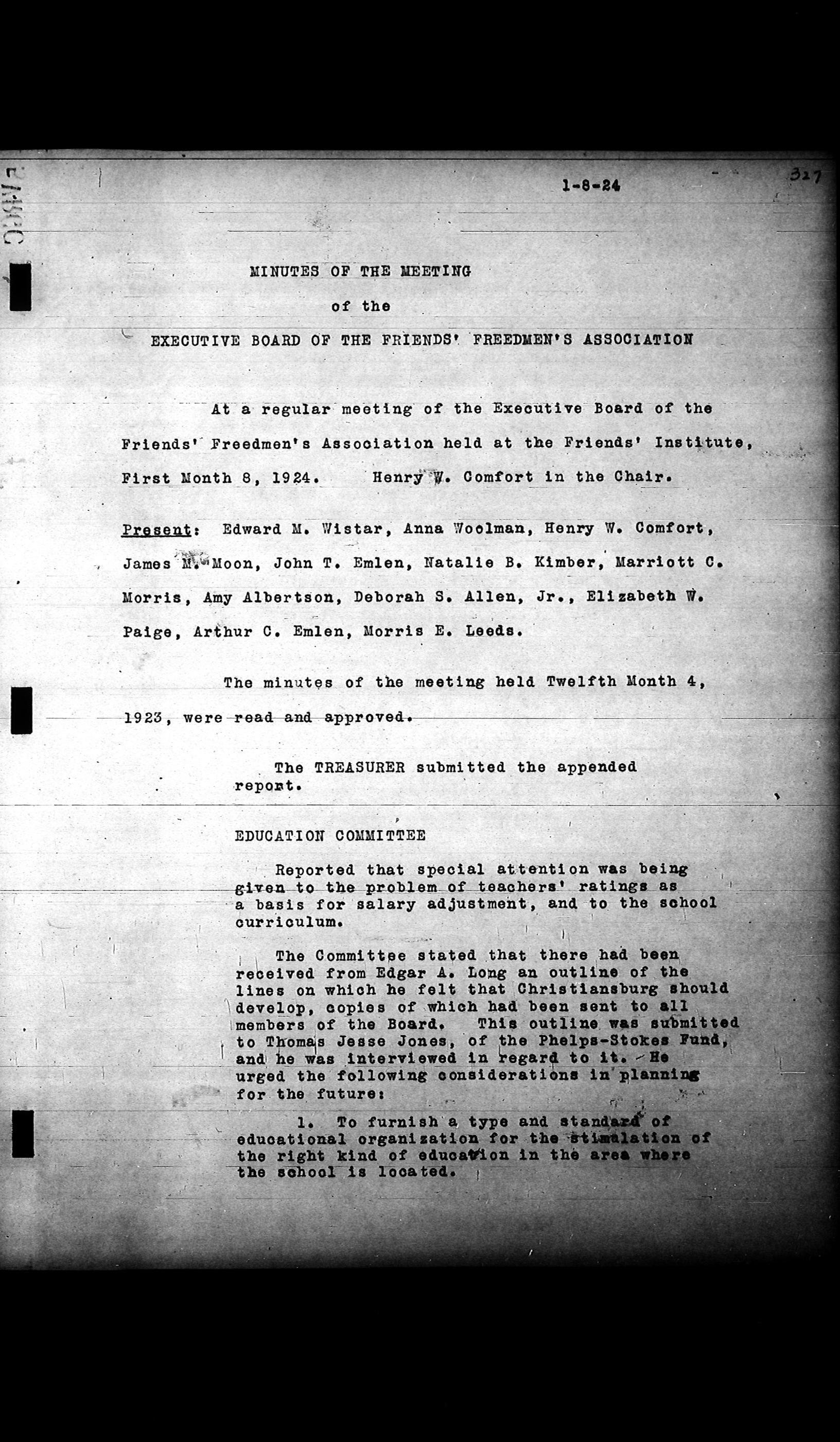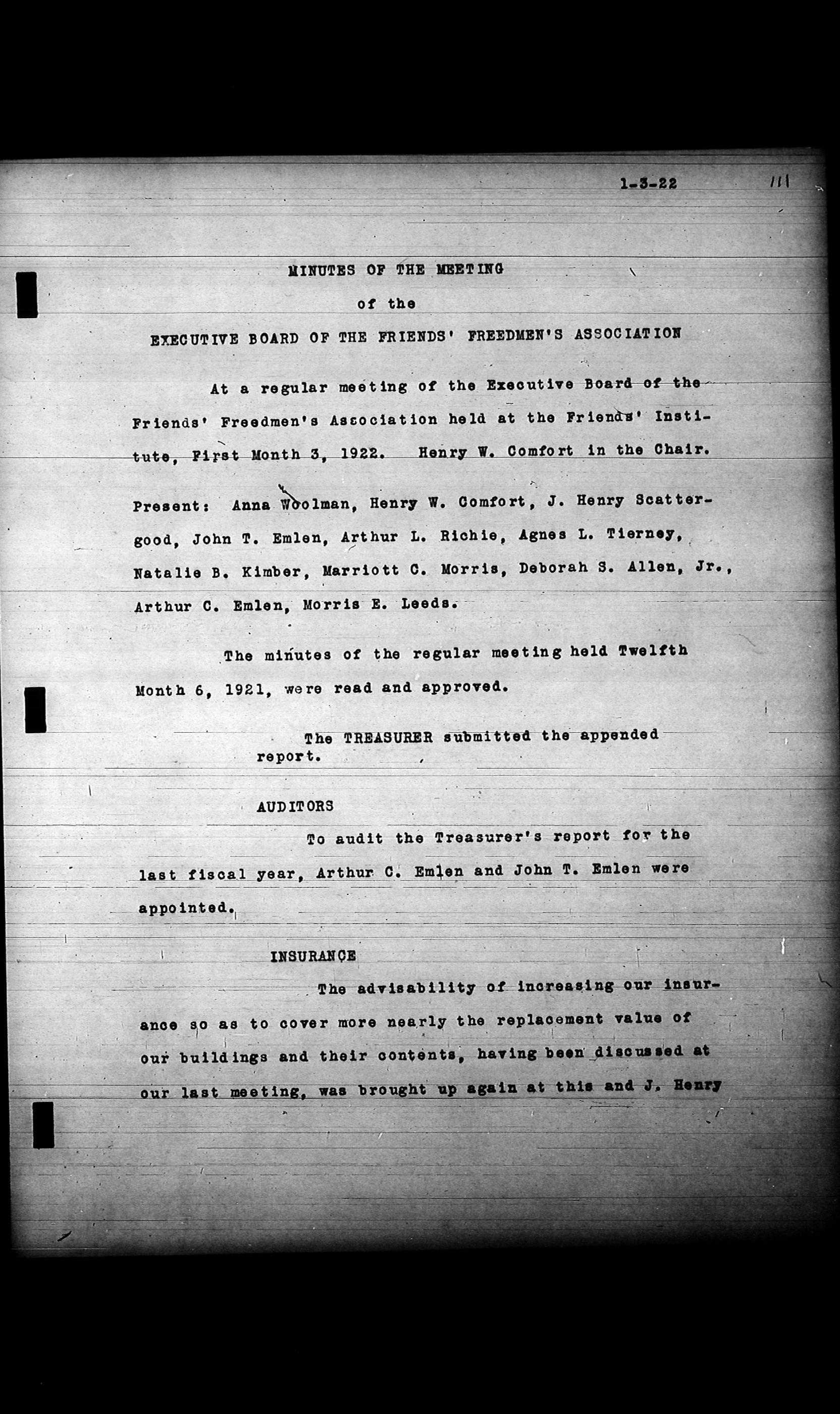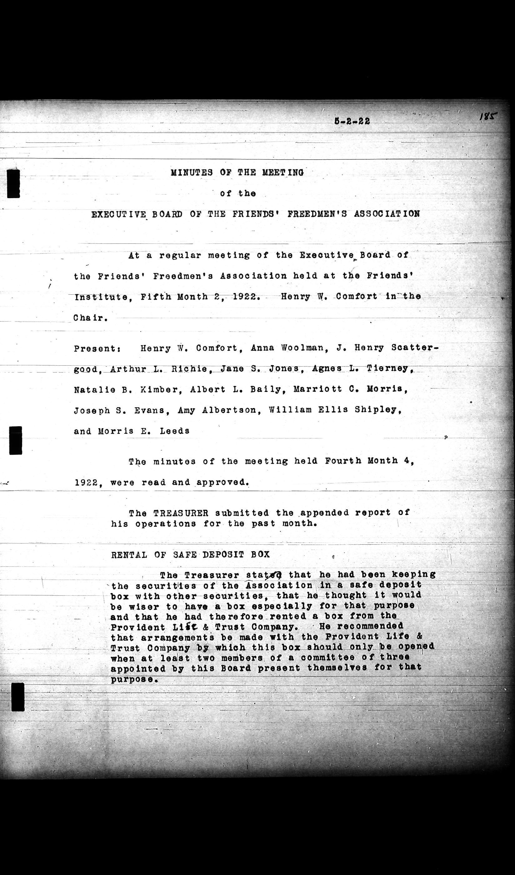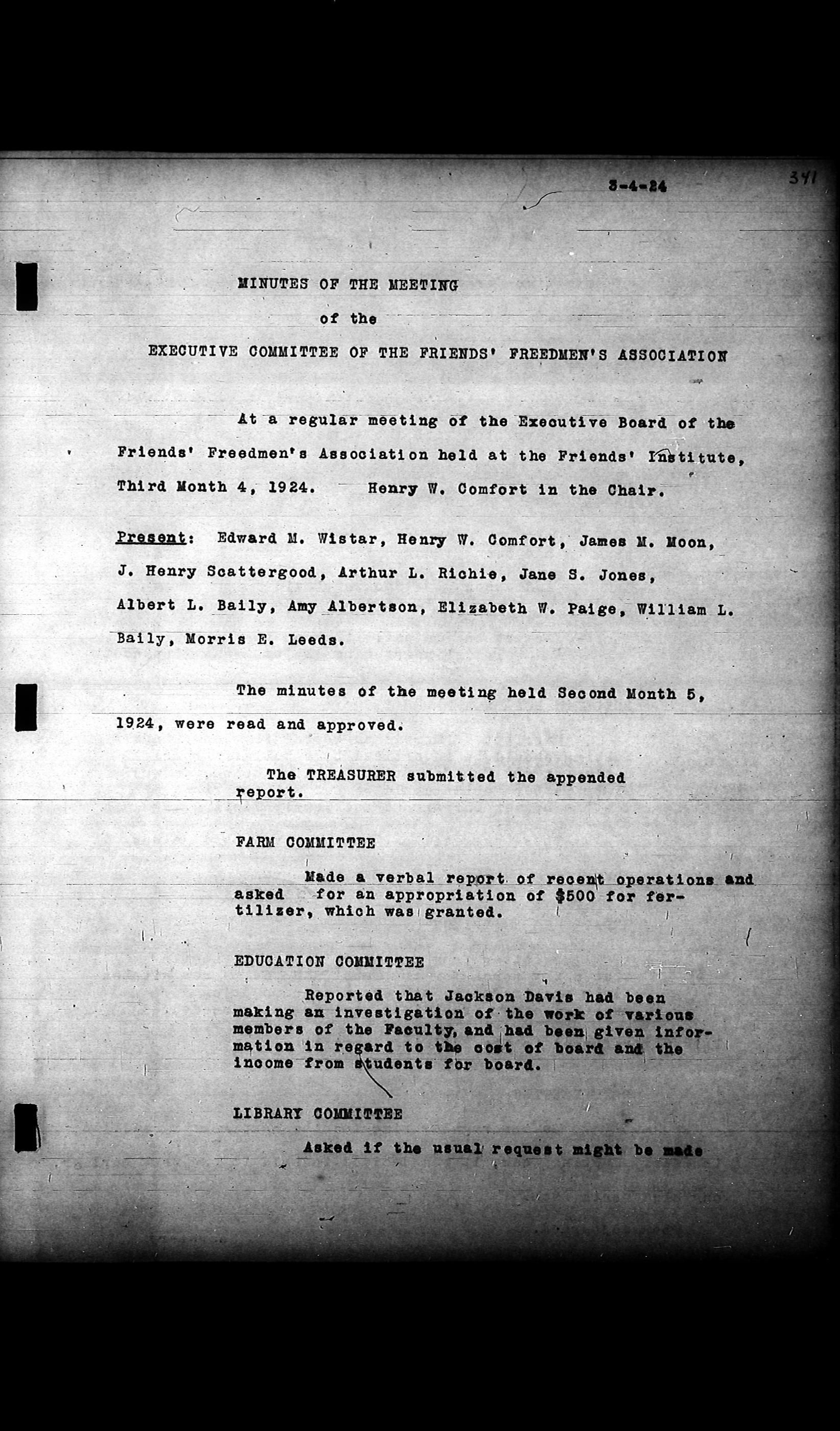 Friends Freedman's Association Reel Four: Executive Committee Minutes 1920-1932Scope and Content