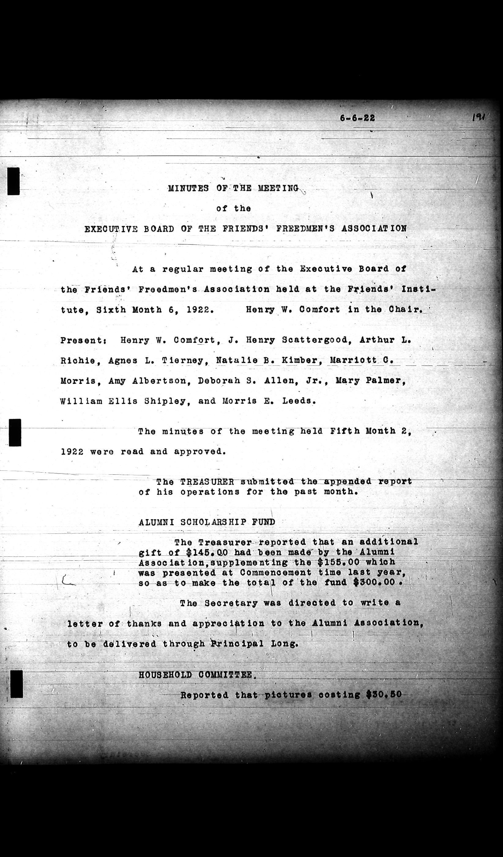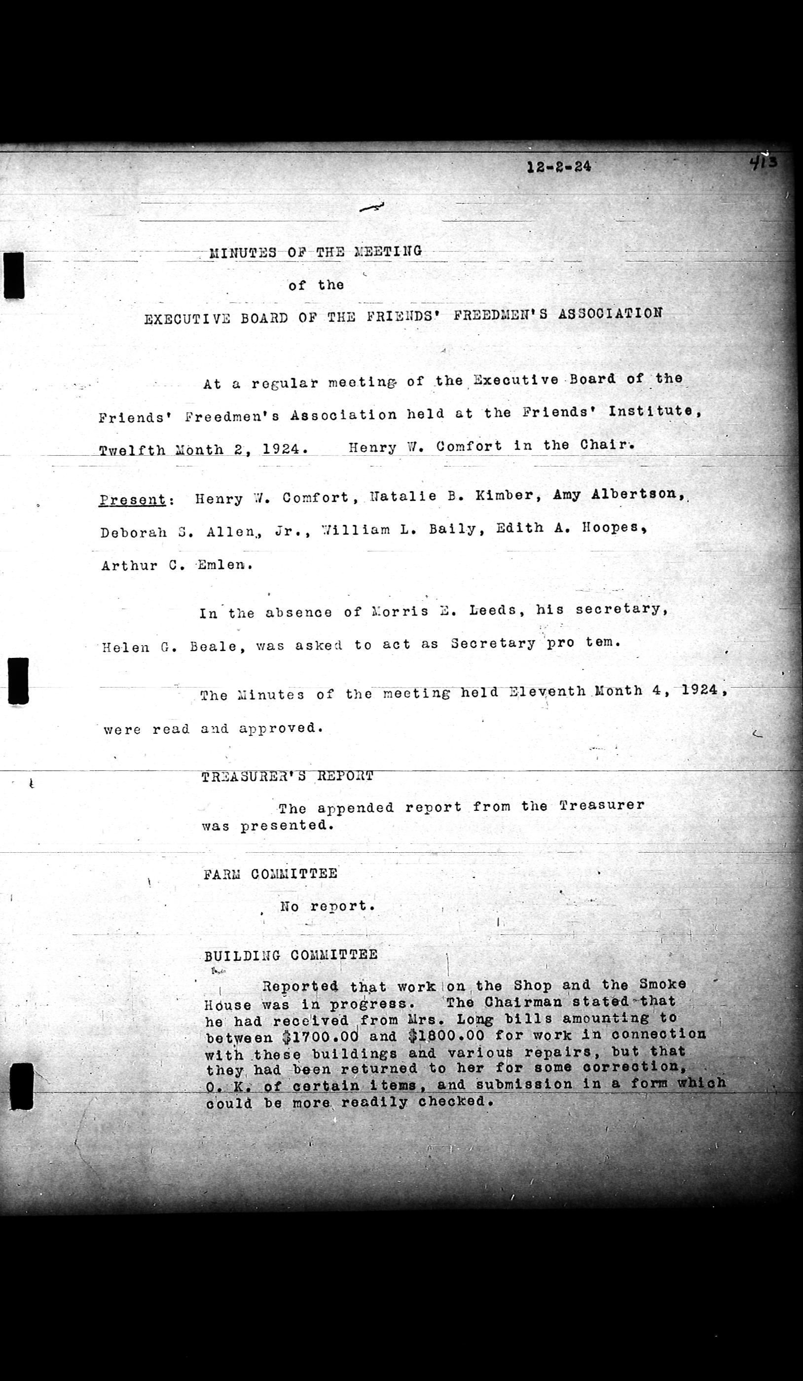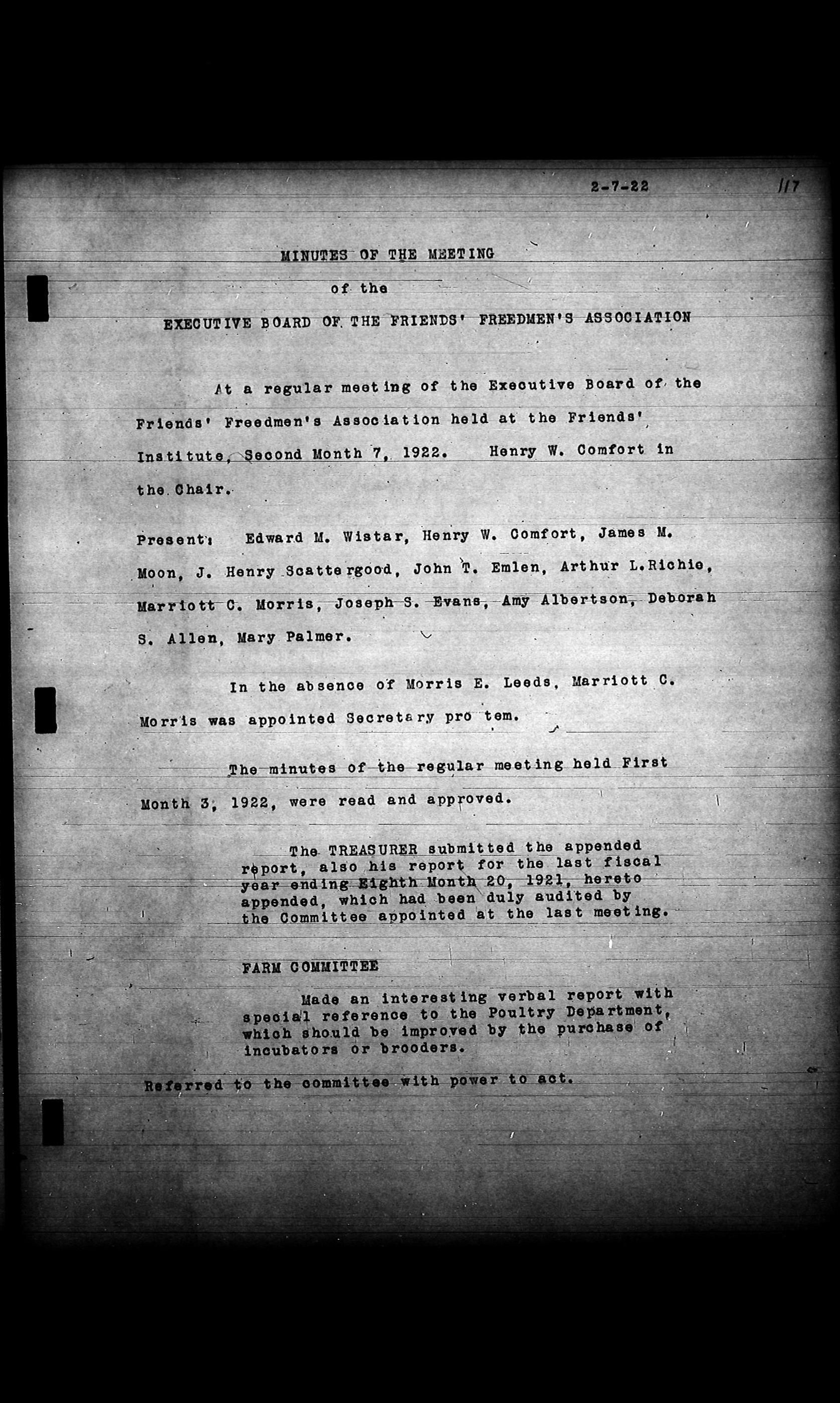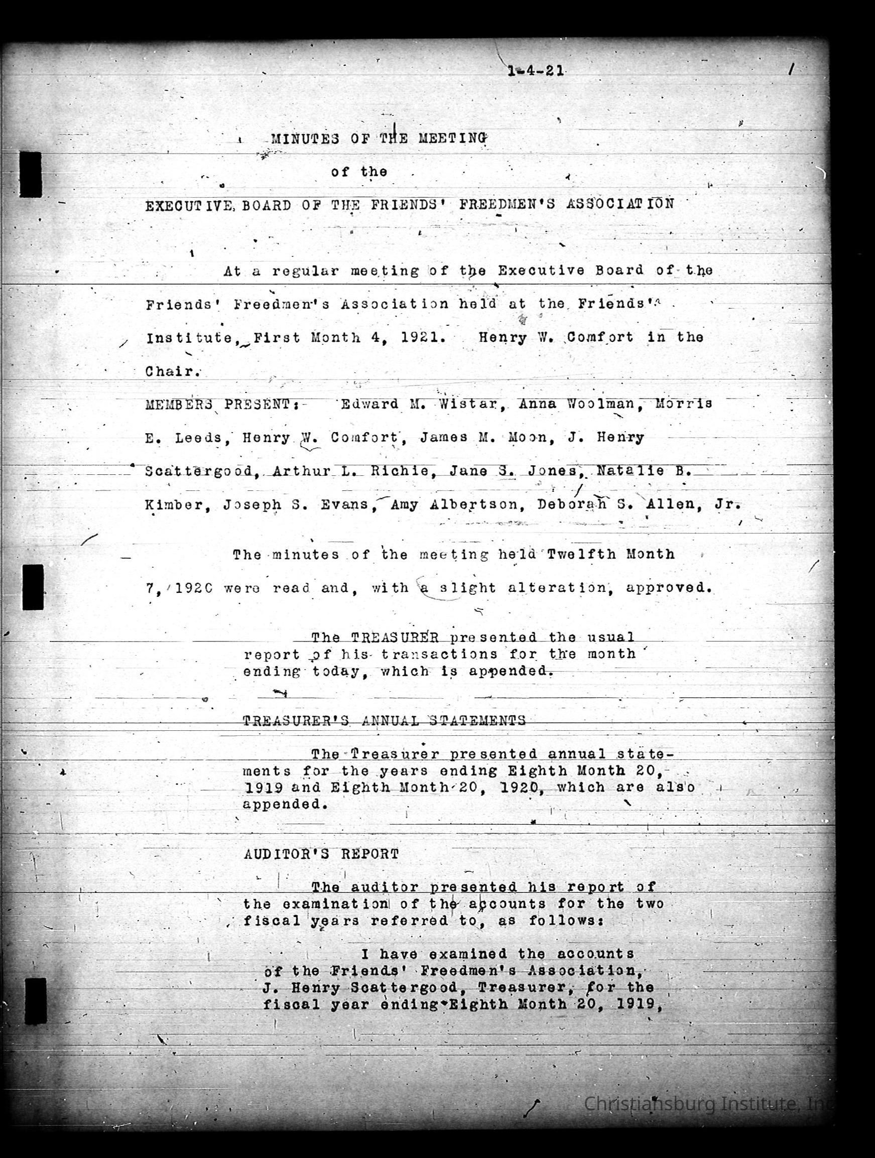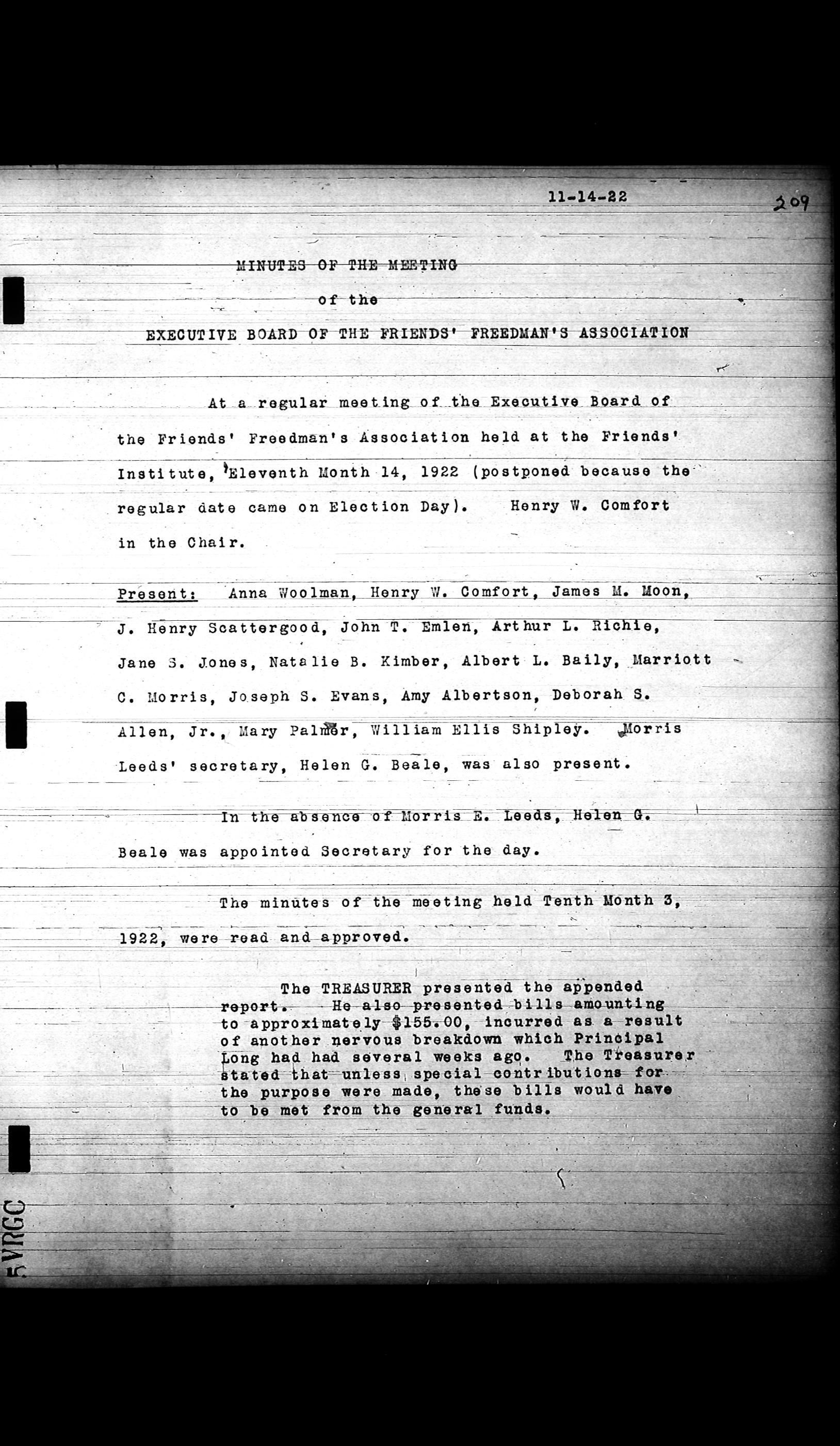 Friends Freedman's Association Reel Four: Executive Committee Minutes 1920-1932Scope and Content