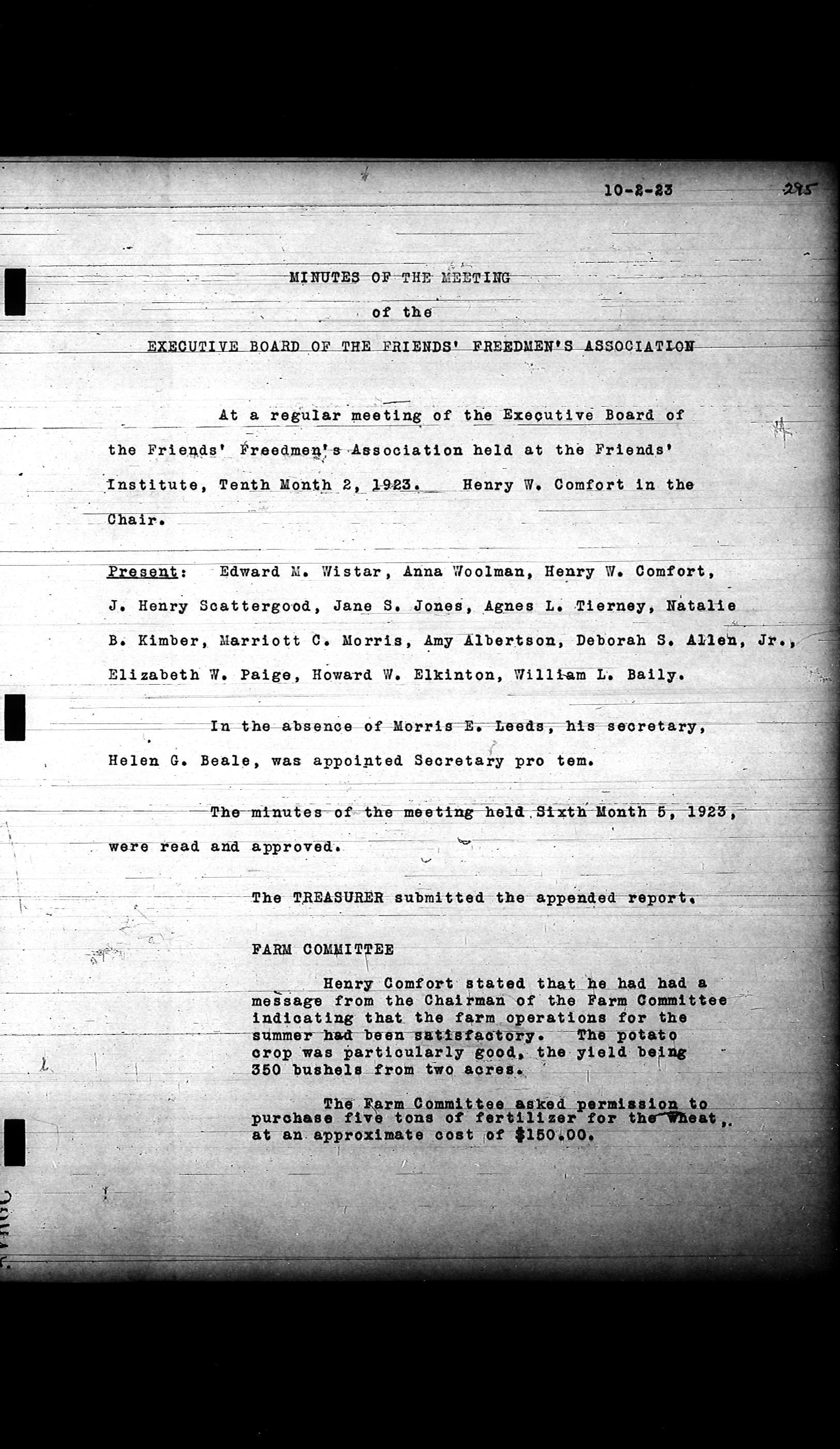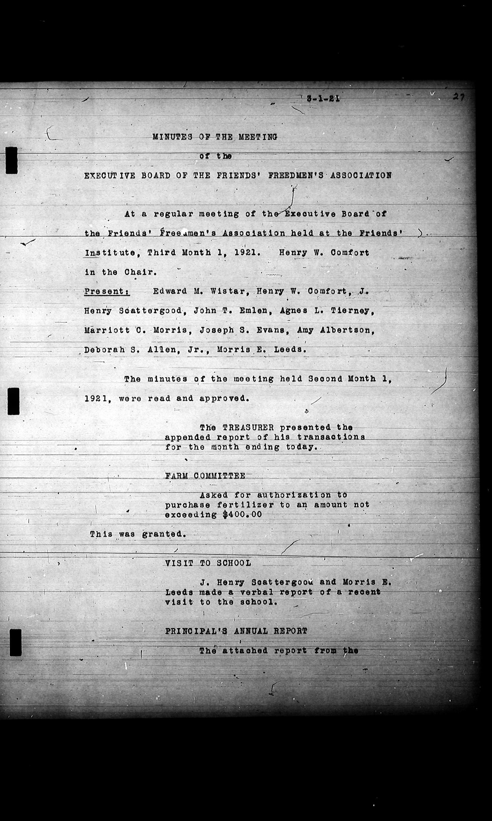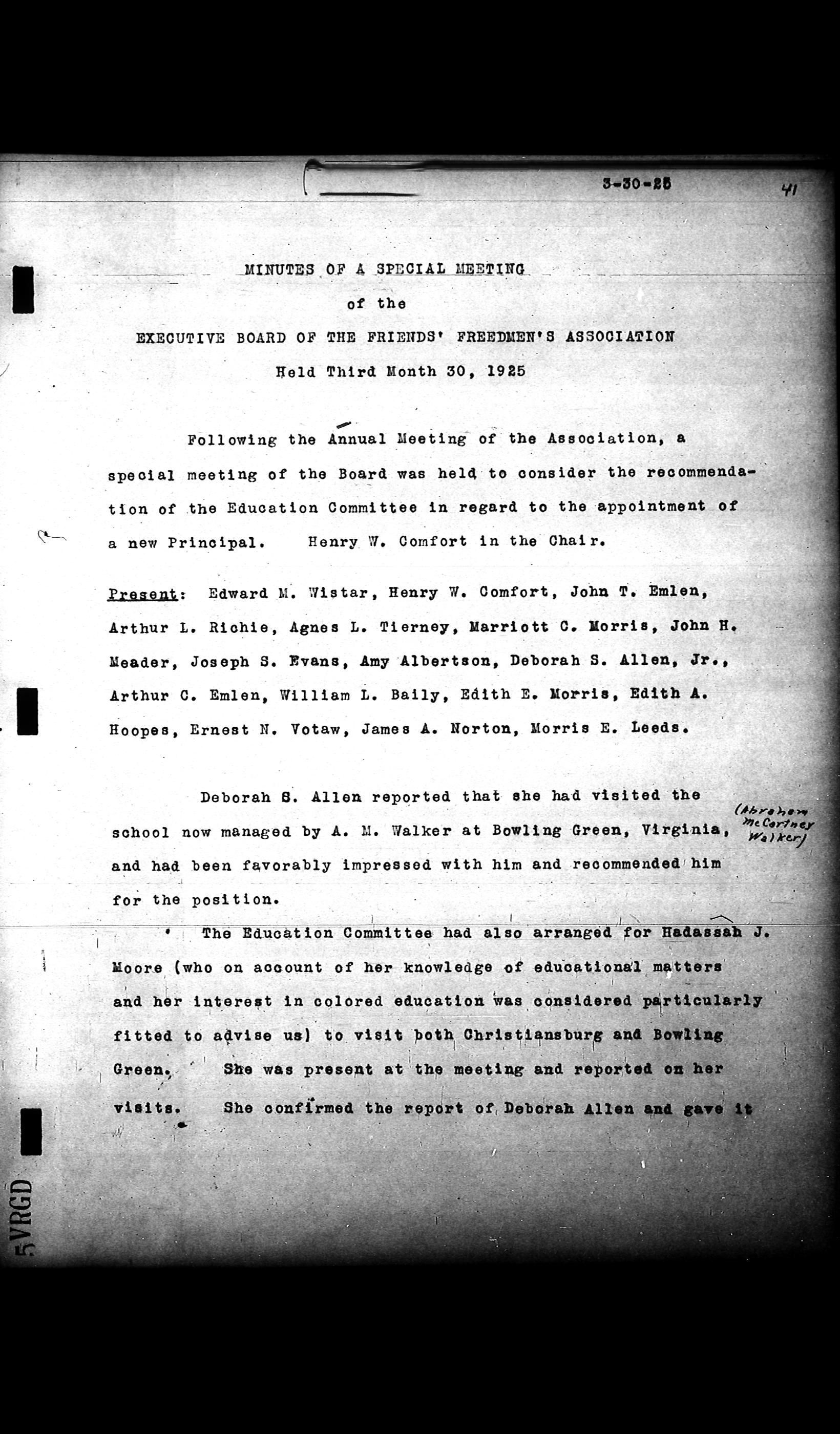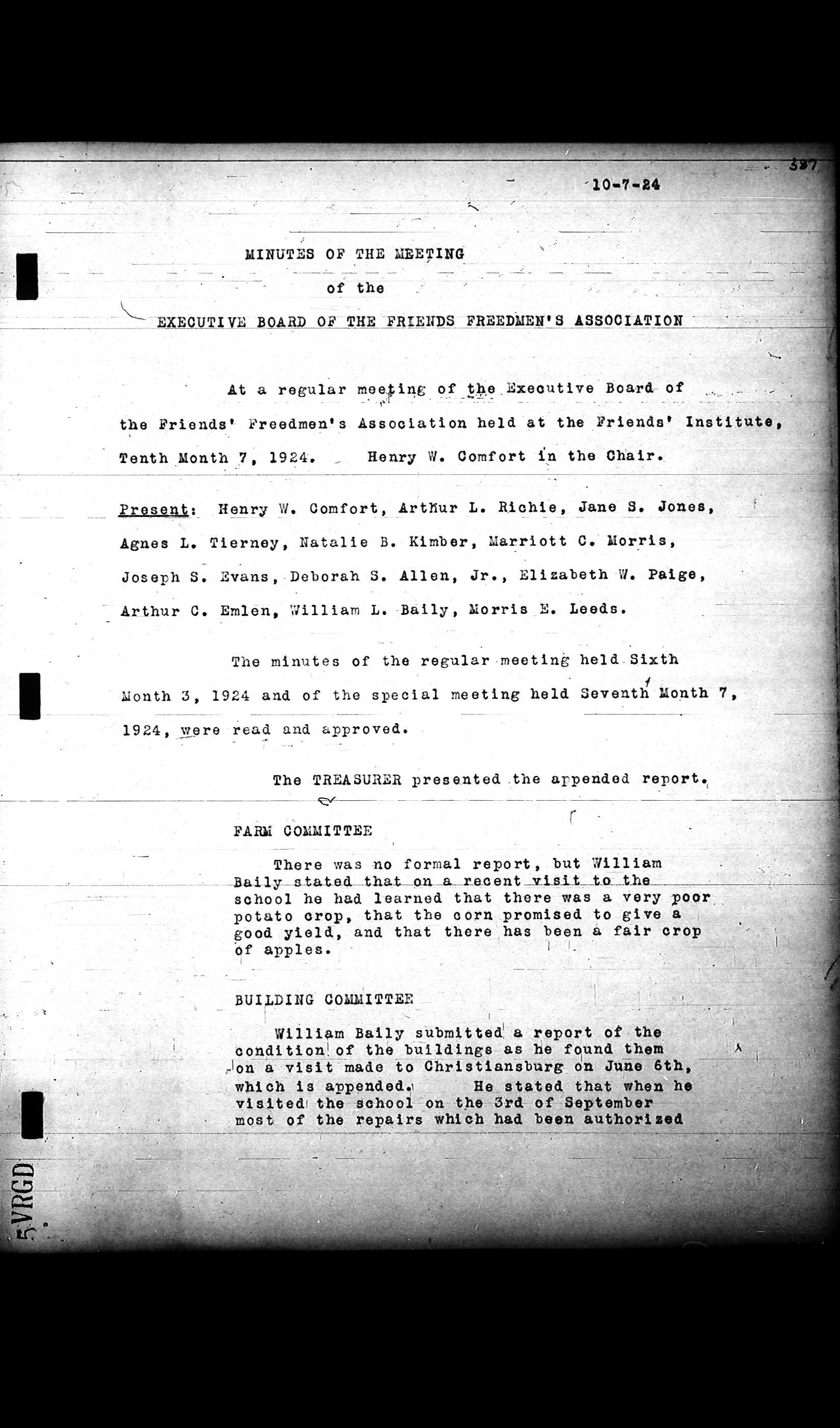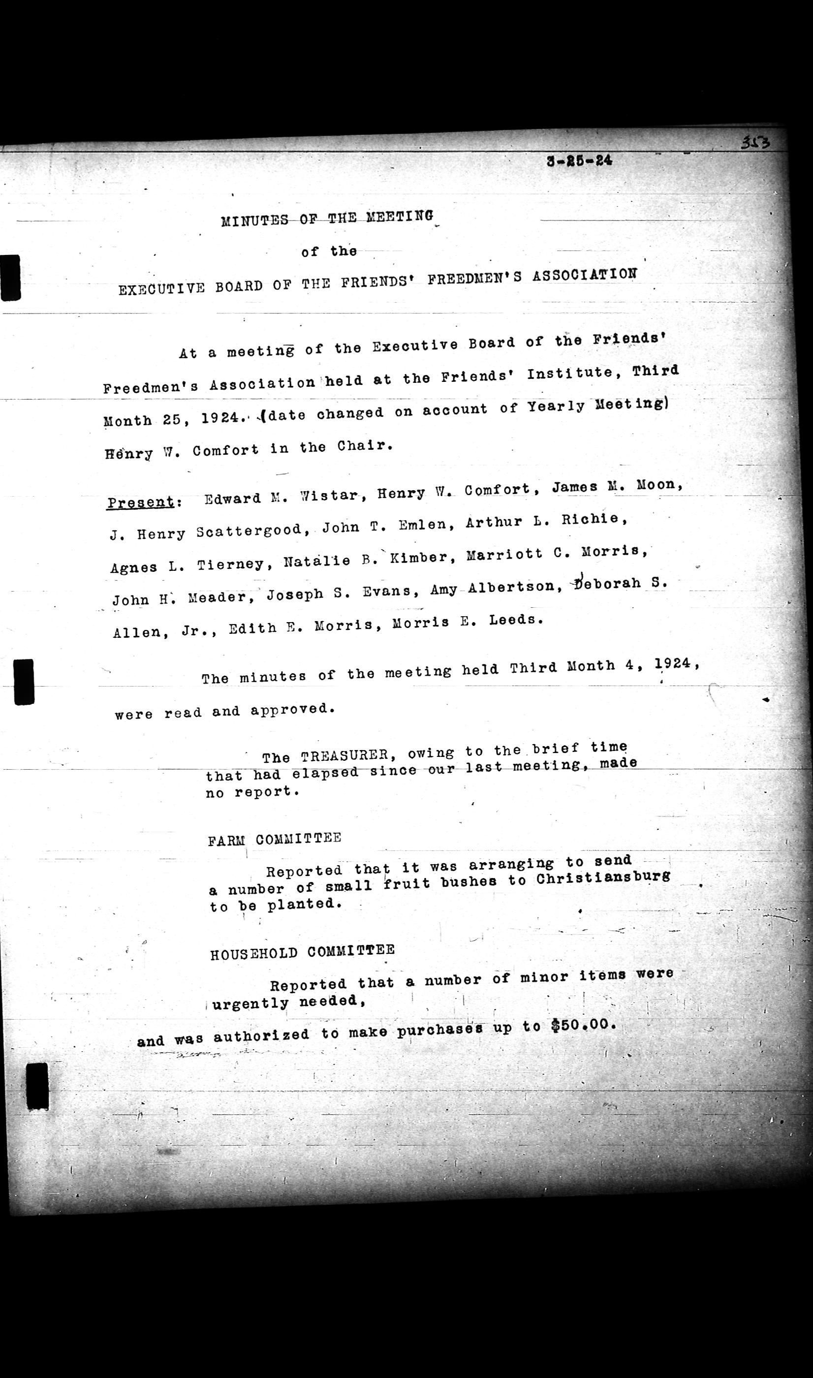 Friends Freedman's Association Reel Four: Executive Committee Minutes 1920-1932Scope and Content