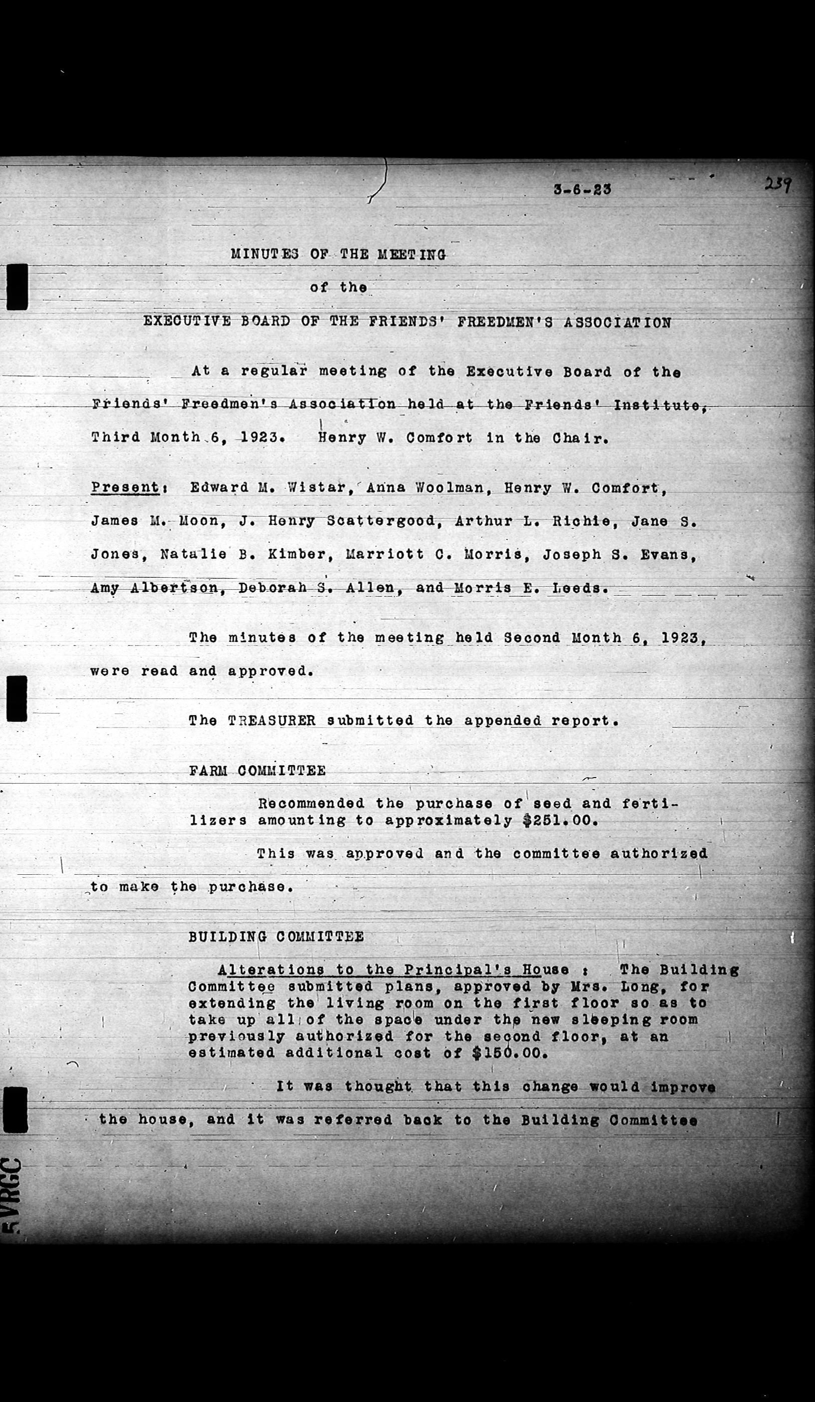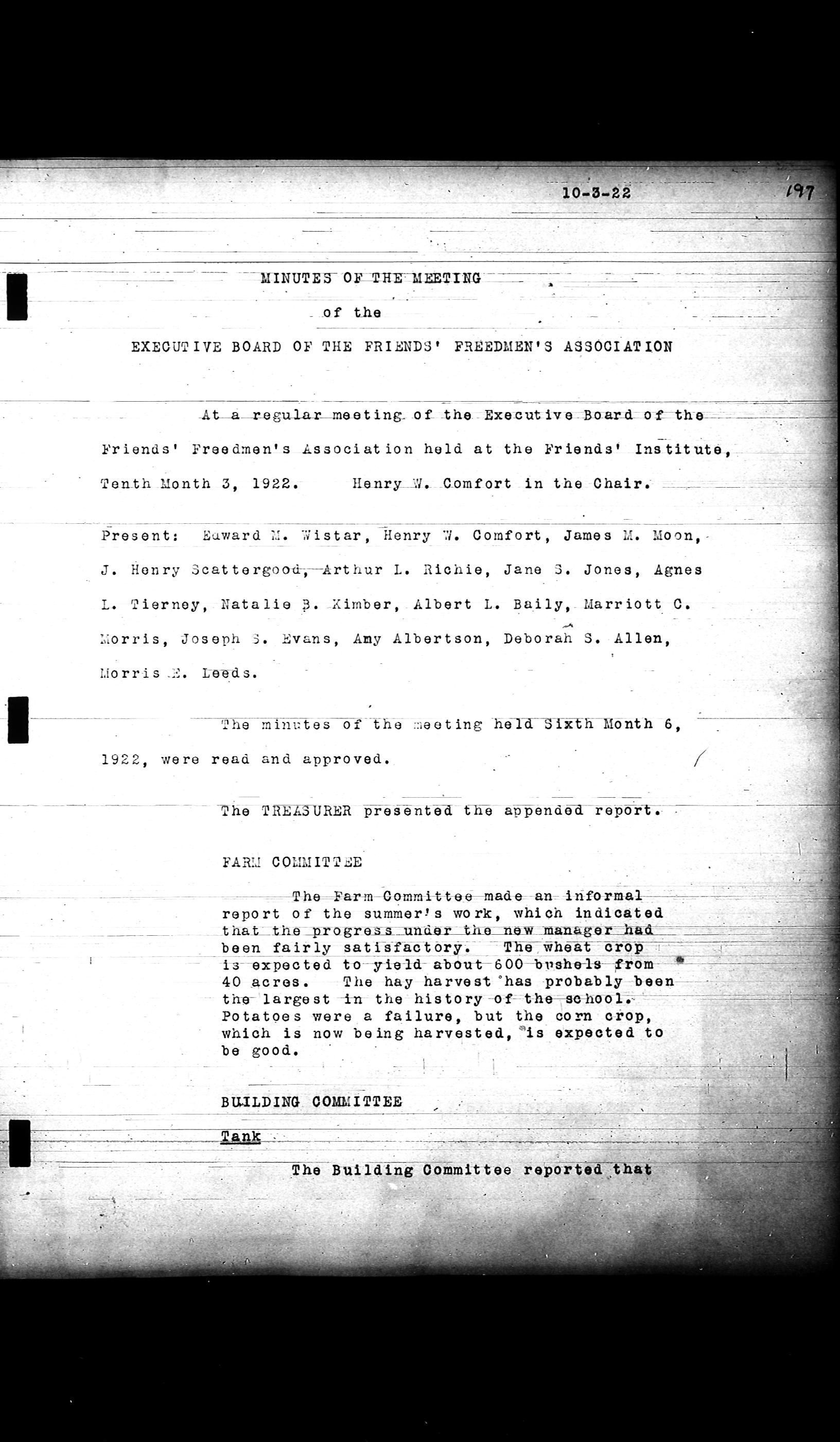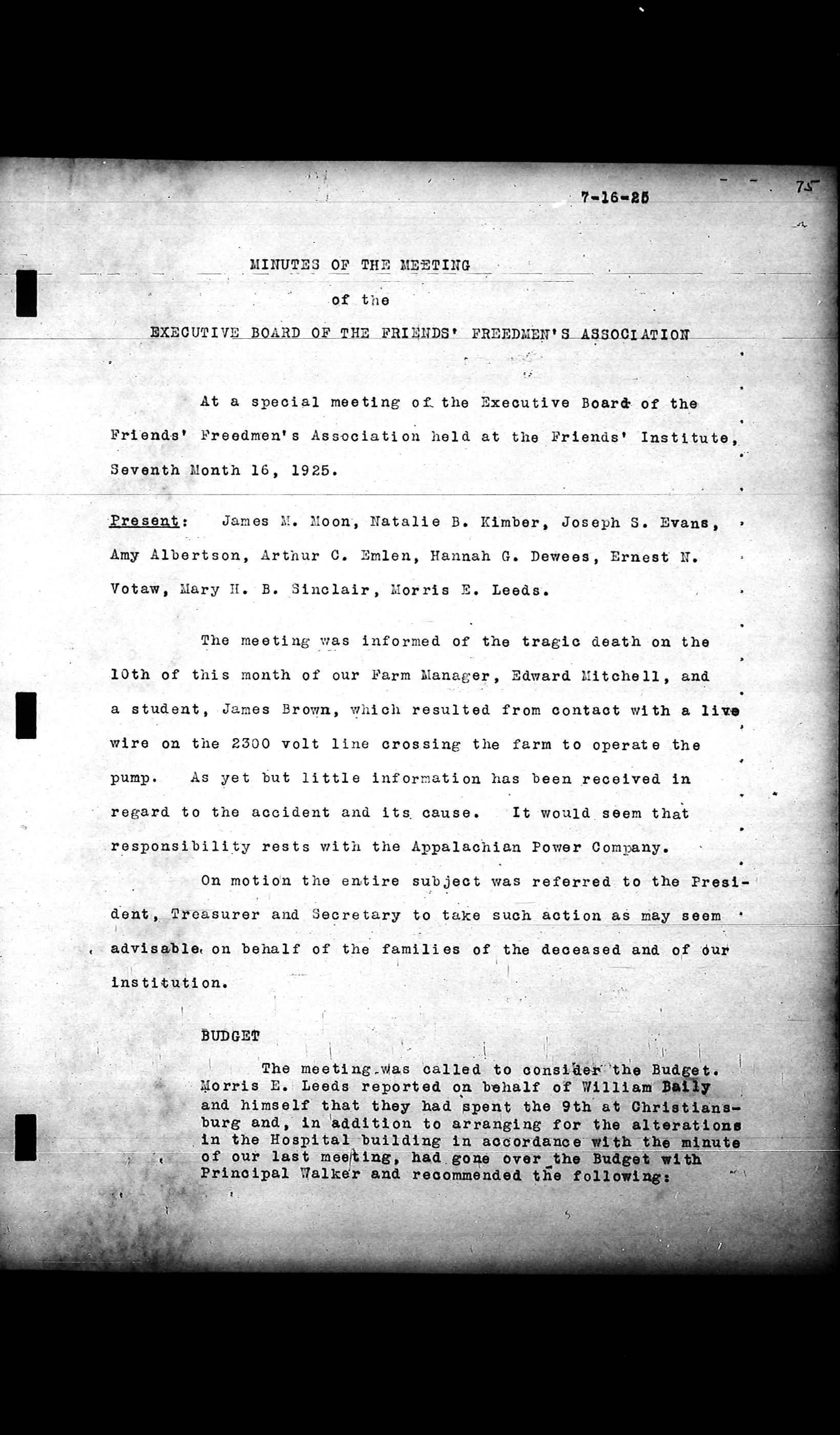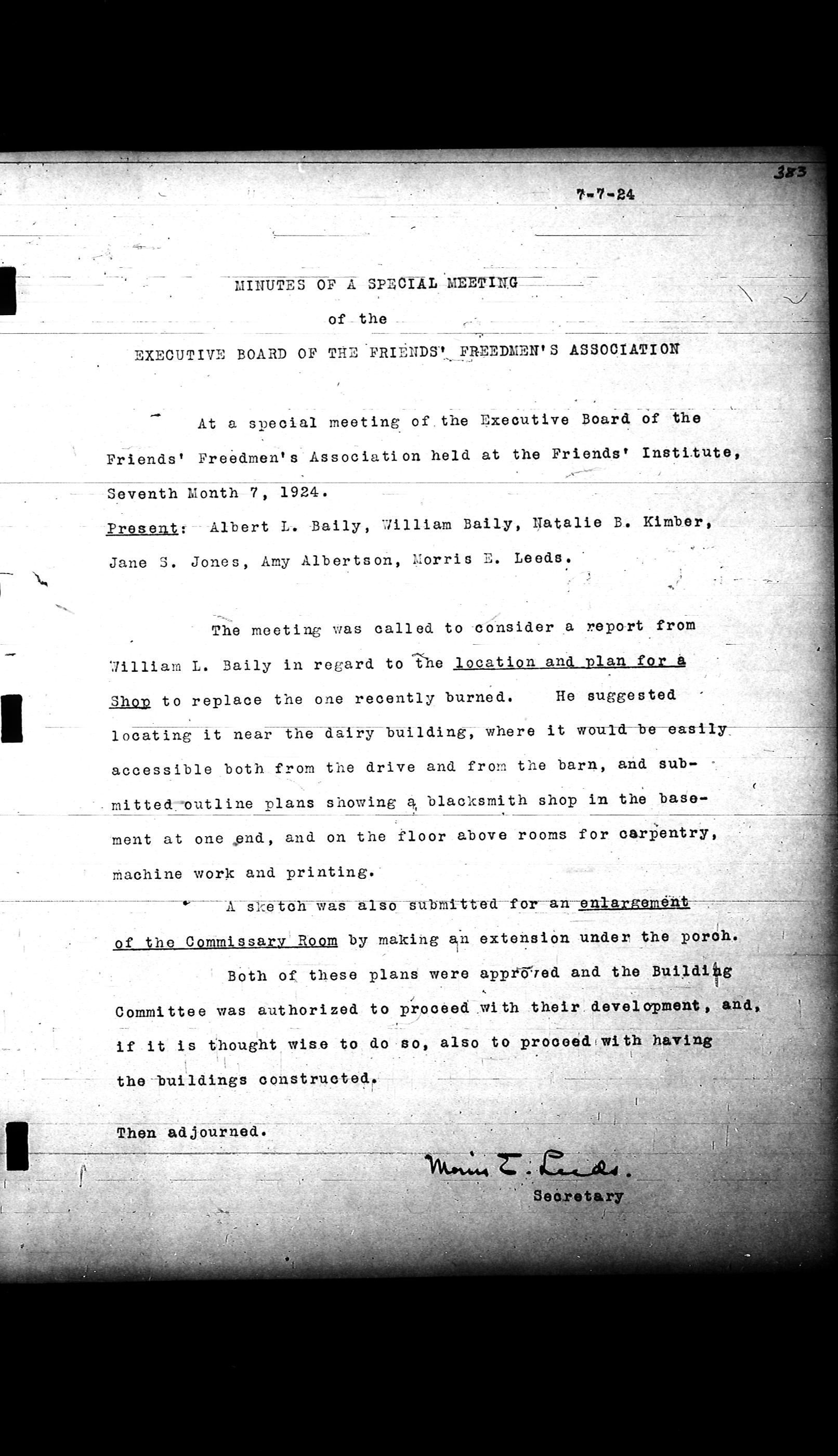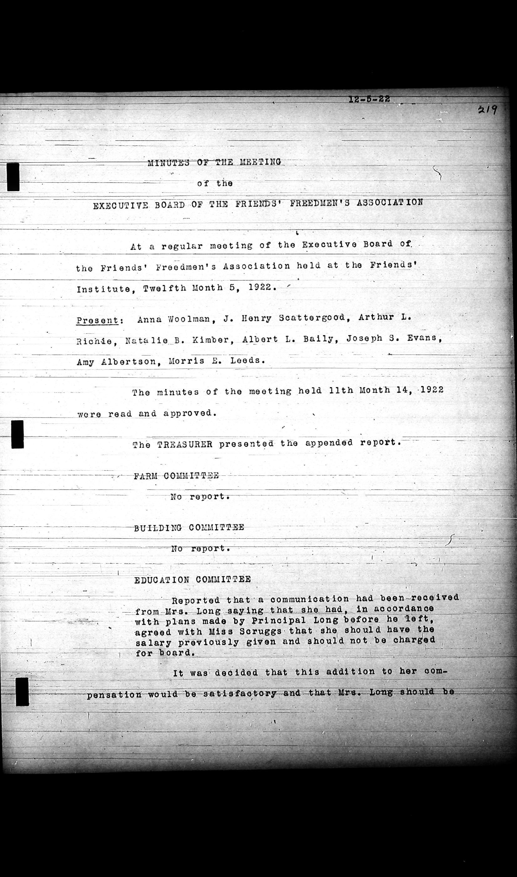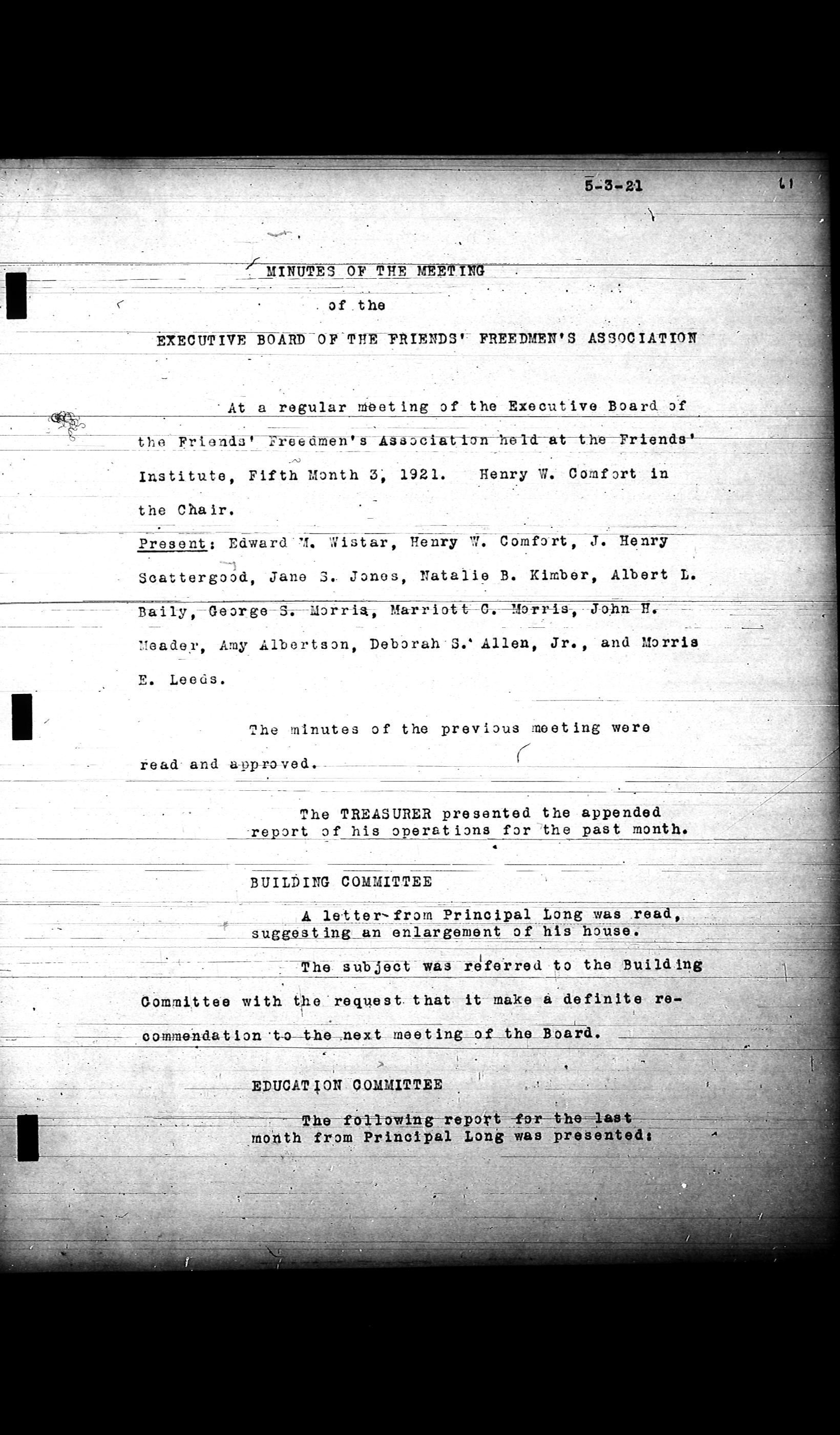 Friends Freedman's Association Reel Four: Executive Committee Minutes 1920-1932Scope and Content