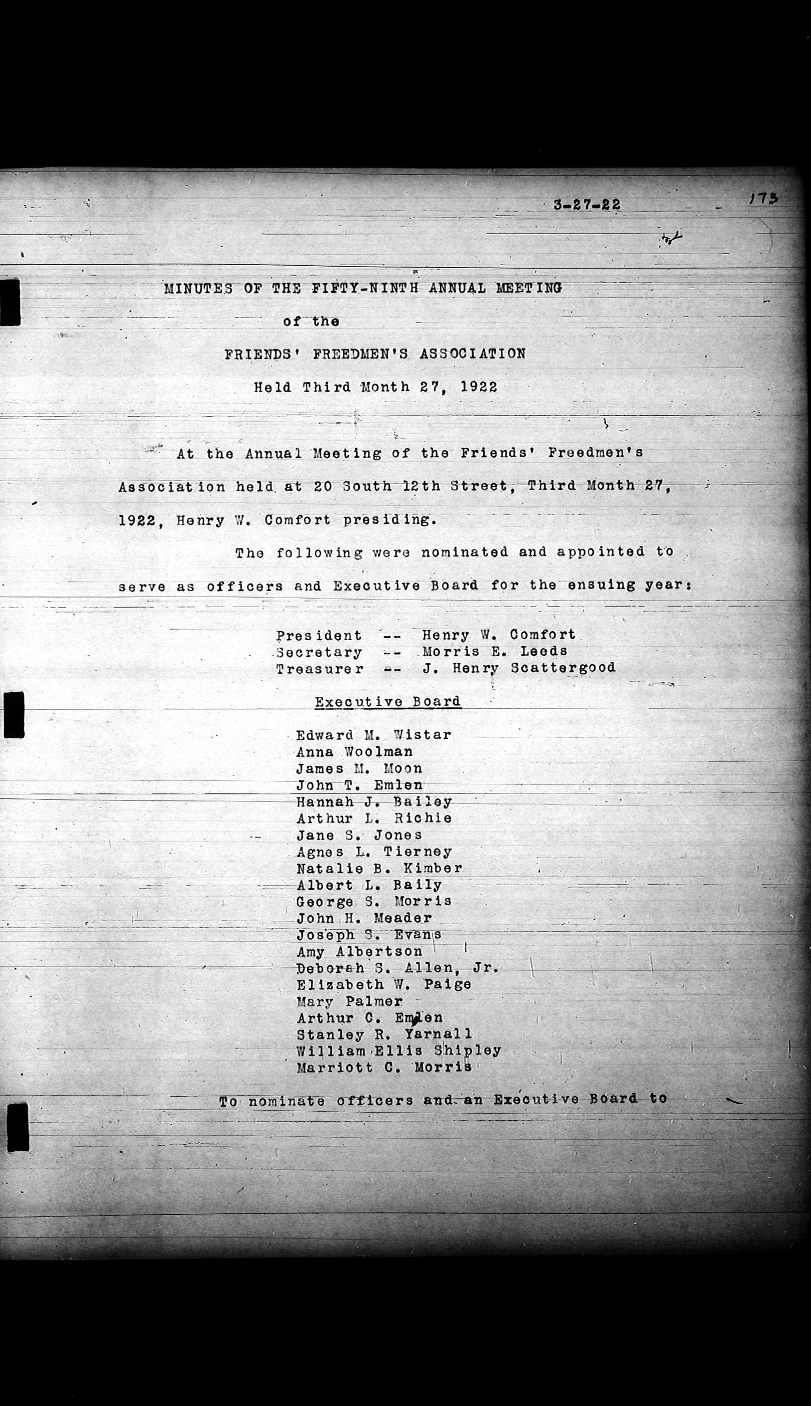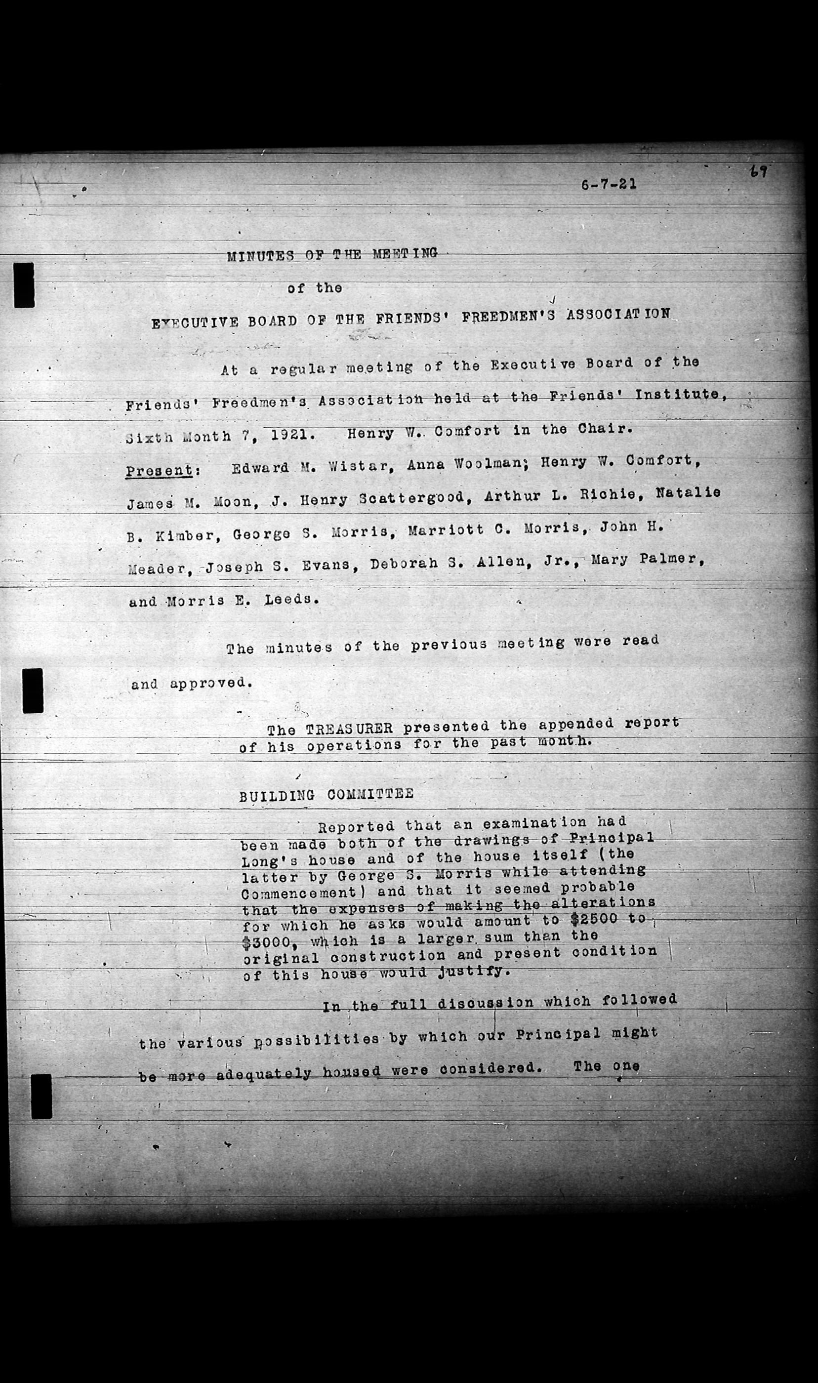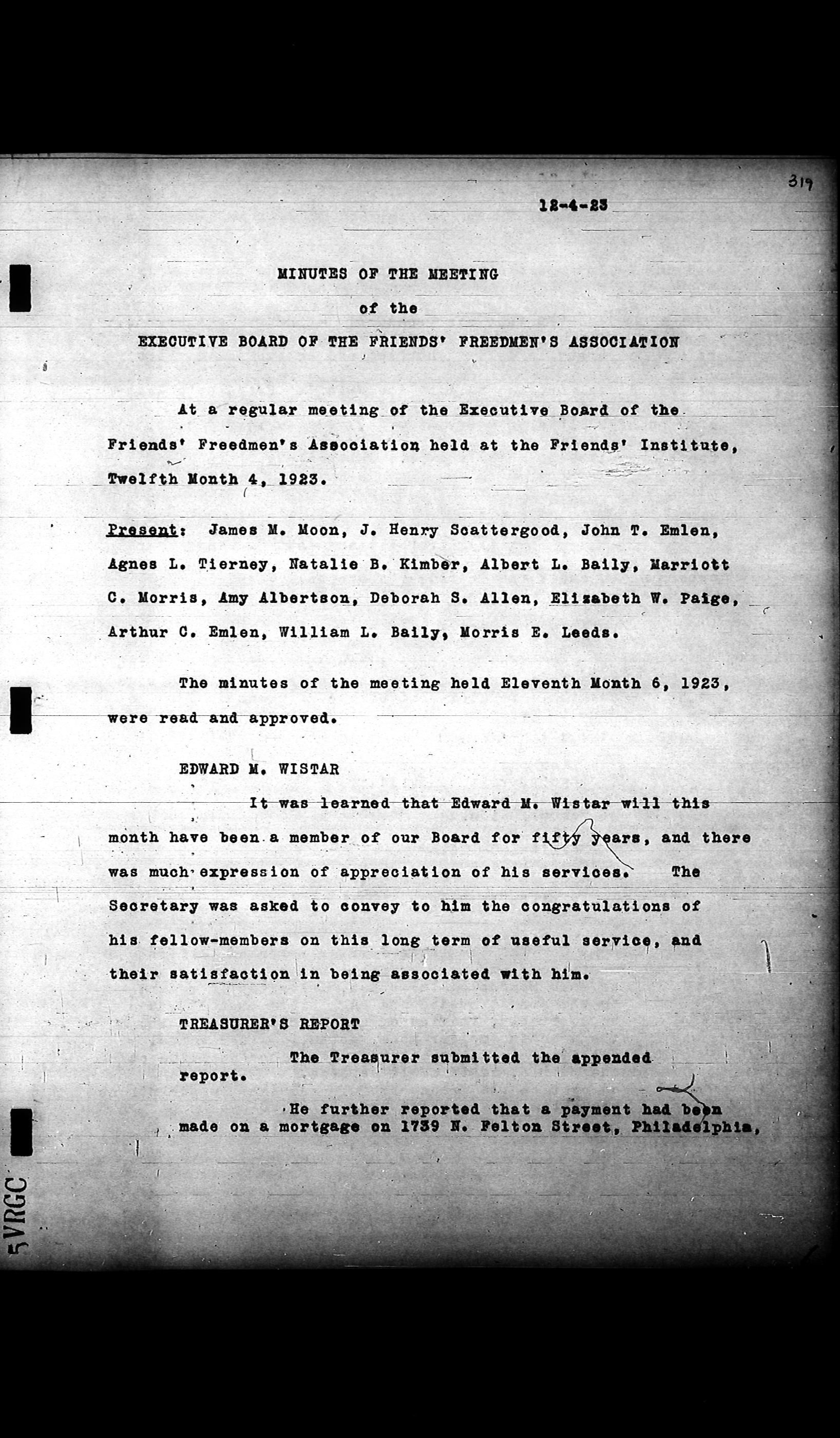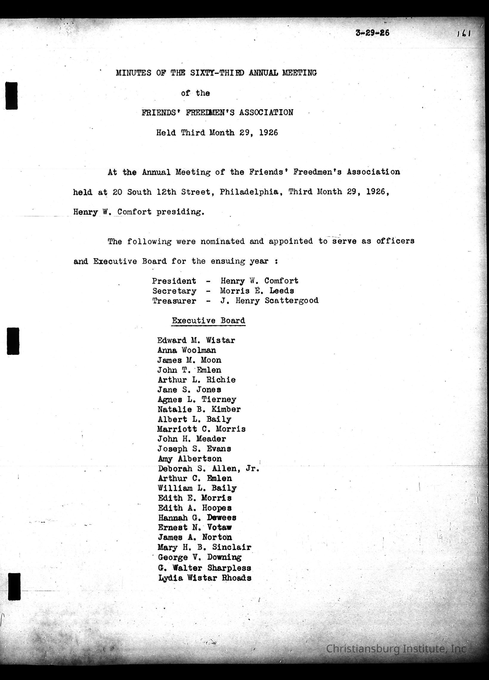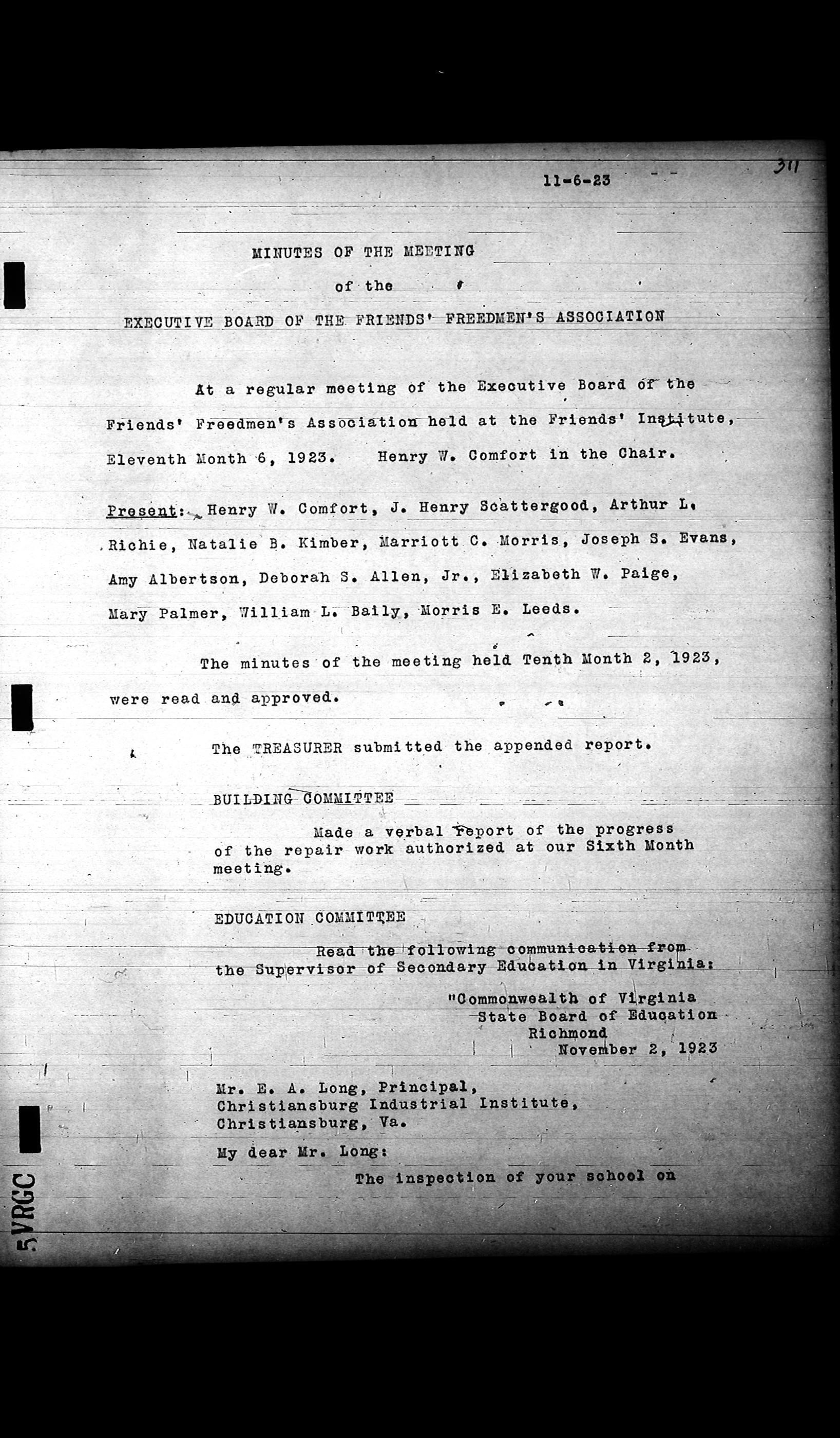 Friends Freedman's Association Reel Four: Executive Committee Minutes 1920-1932Scope and Content