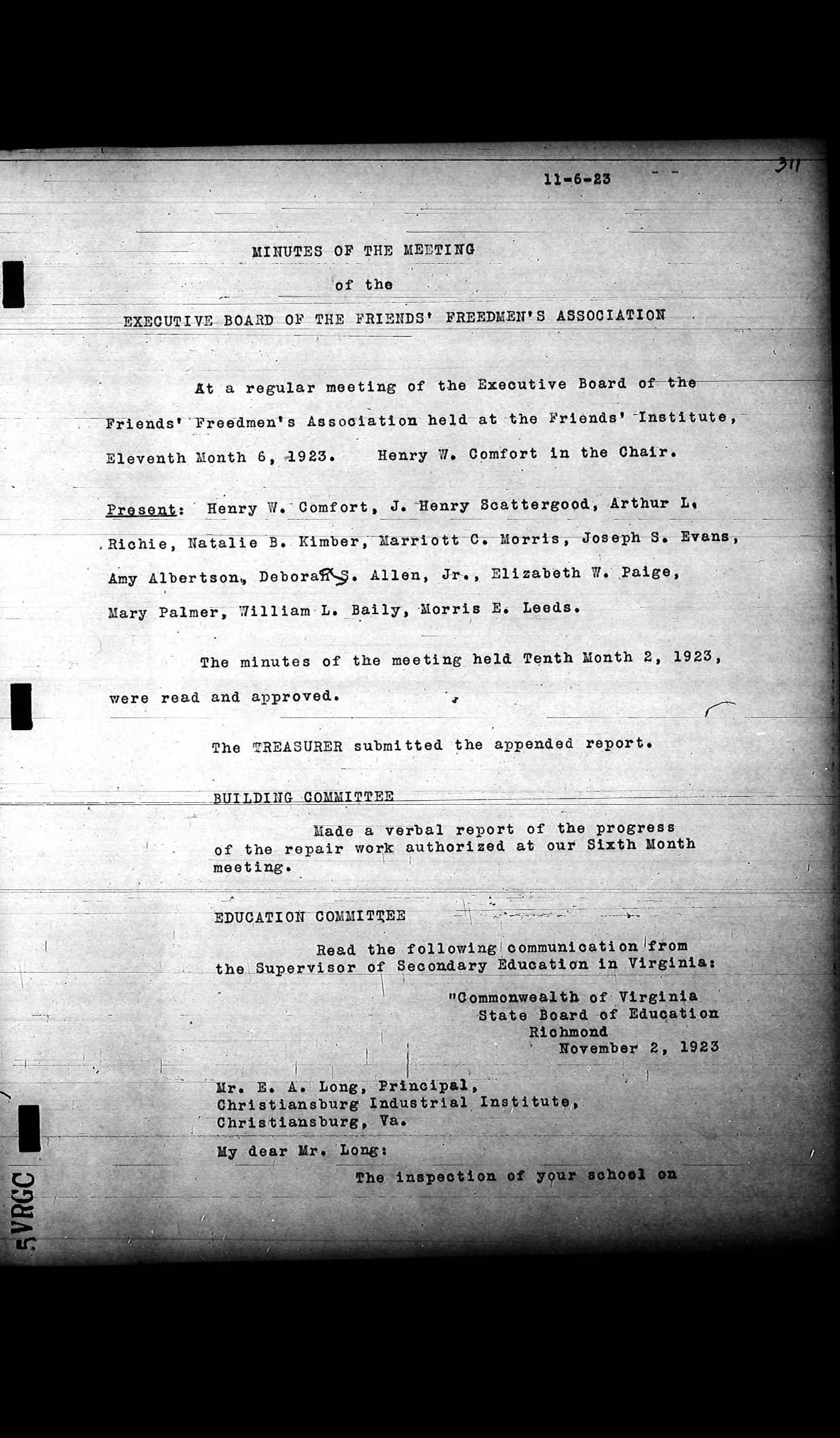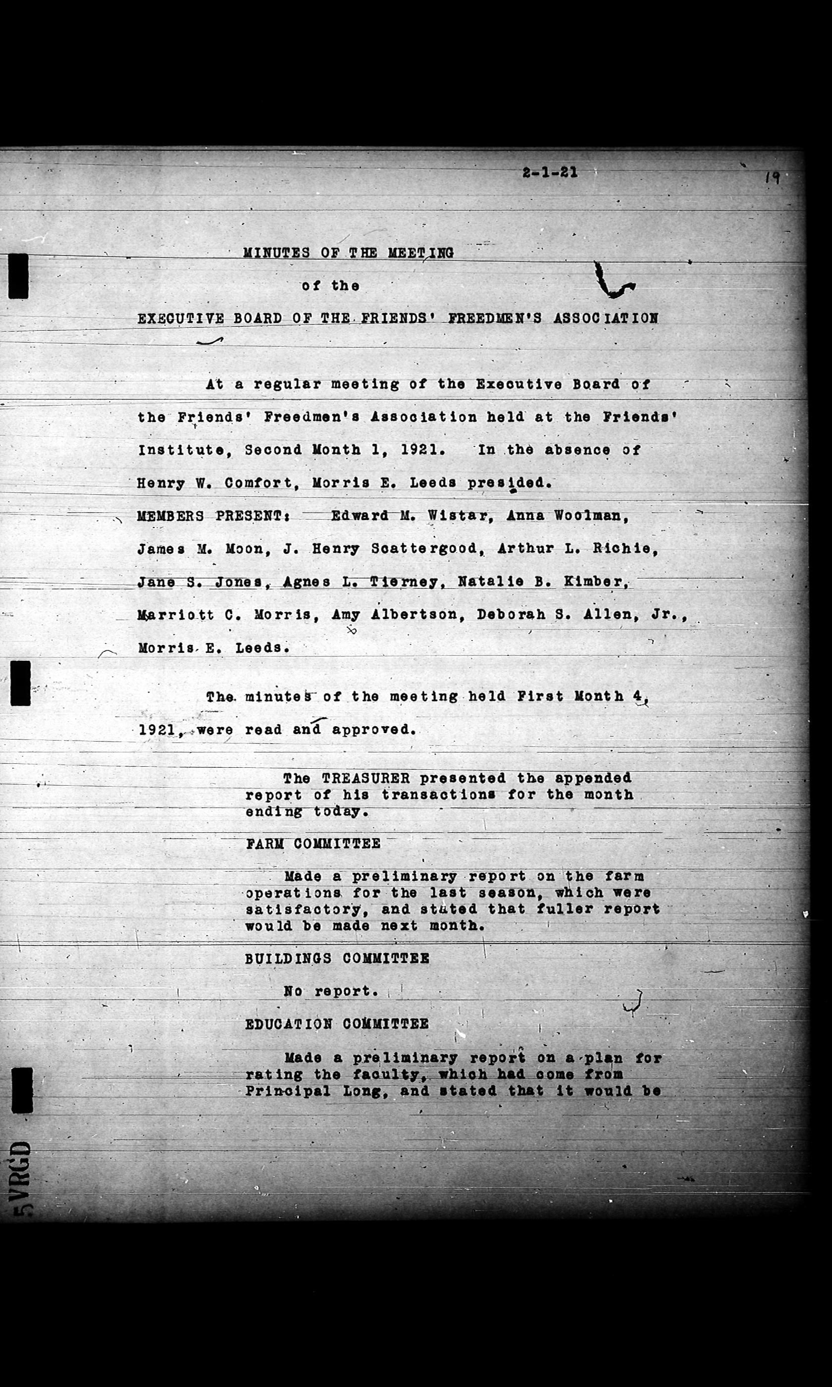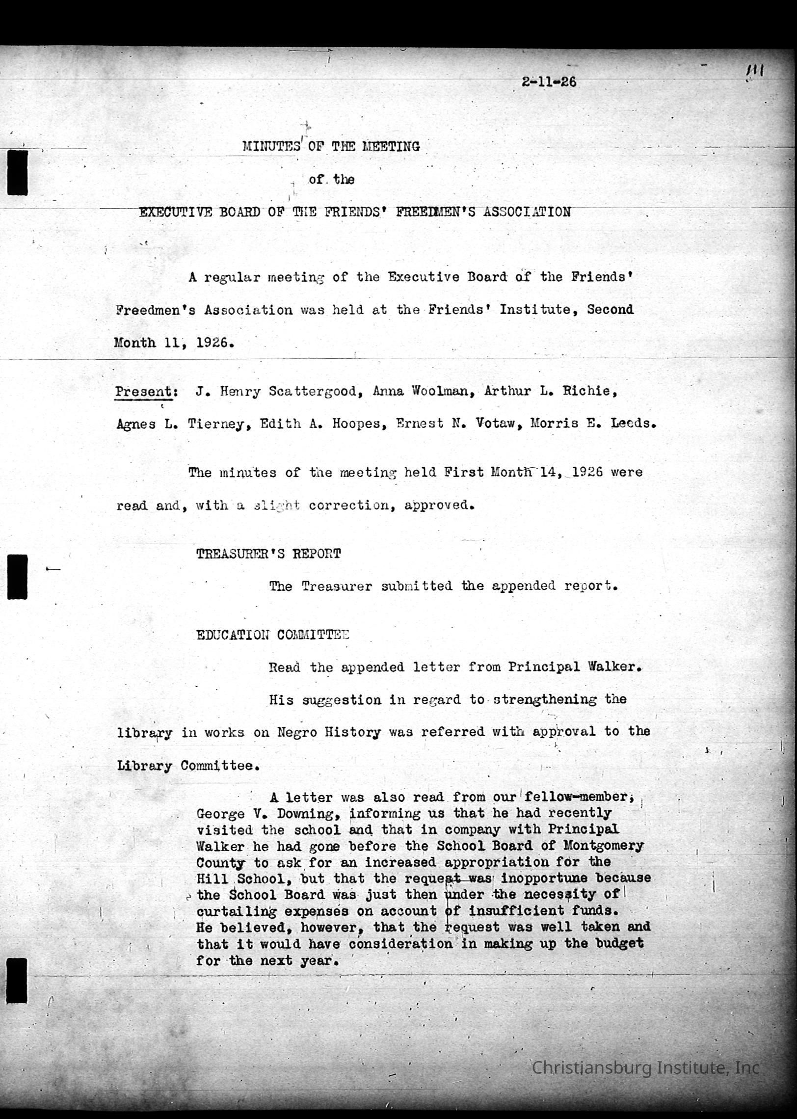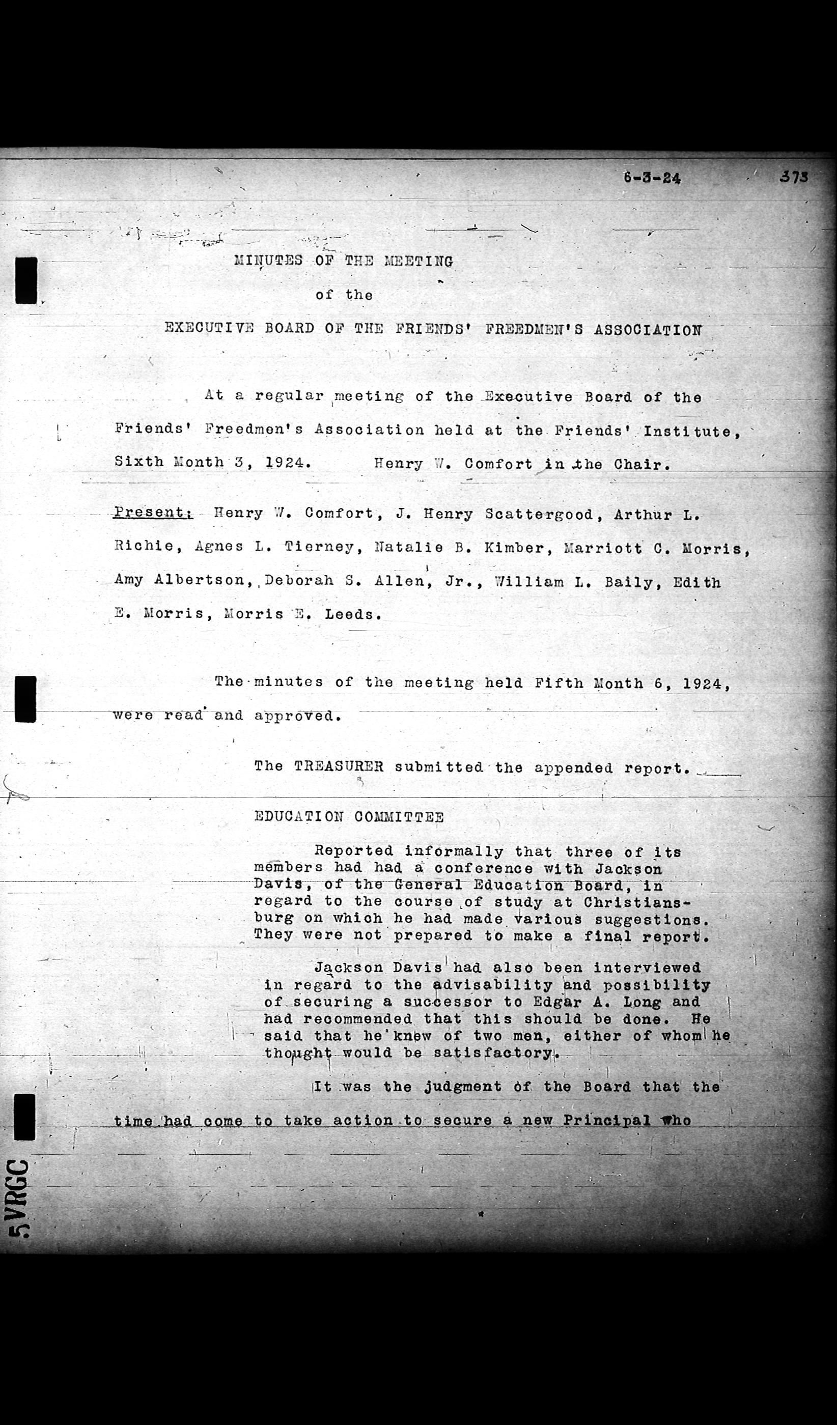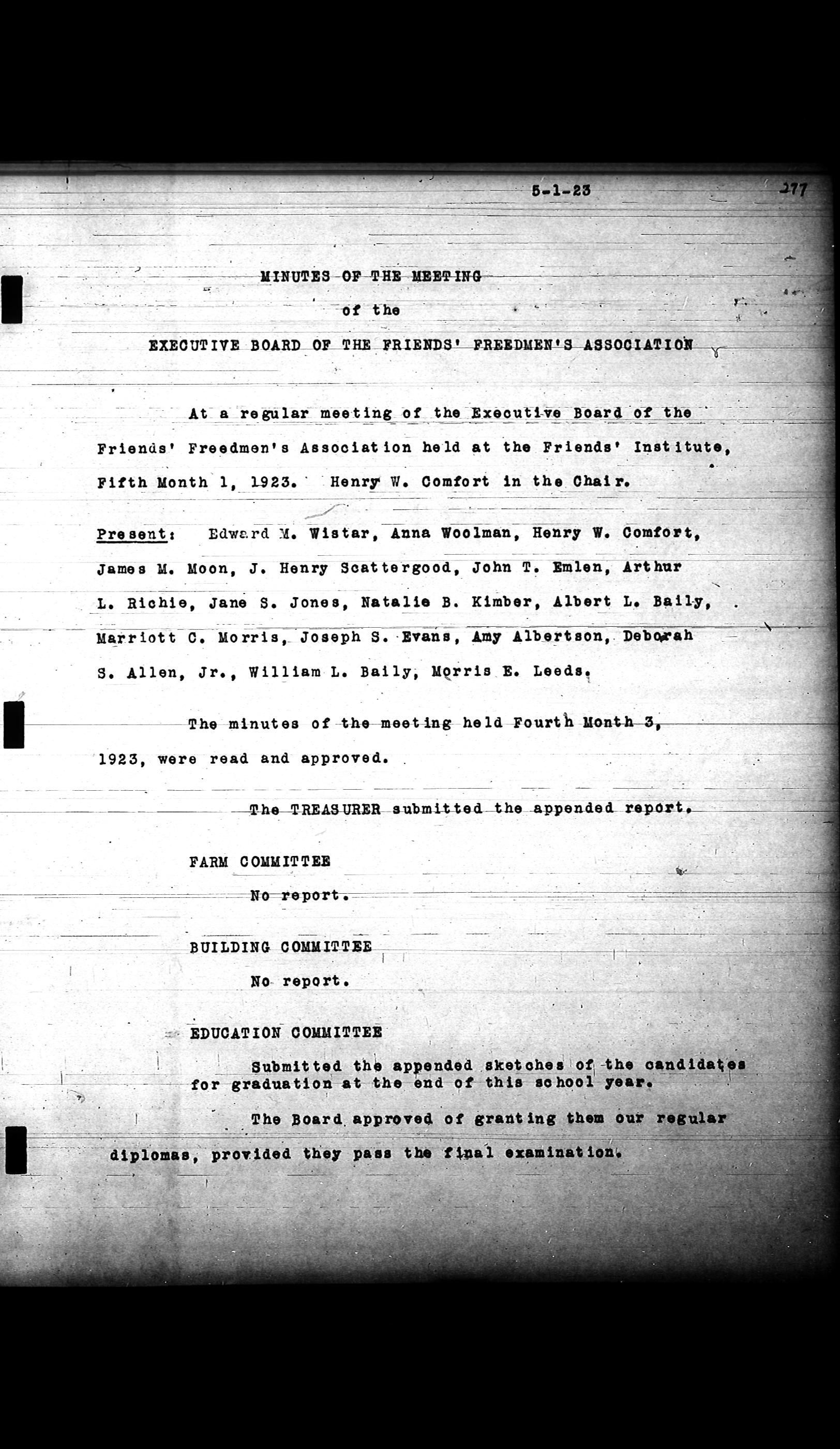Friends Freedman's Association Reel Four: Executive Committee Minutes 1920-1932Scope and Content