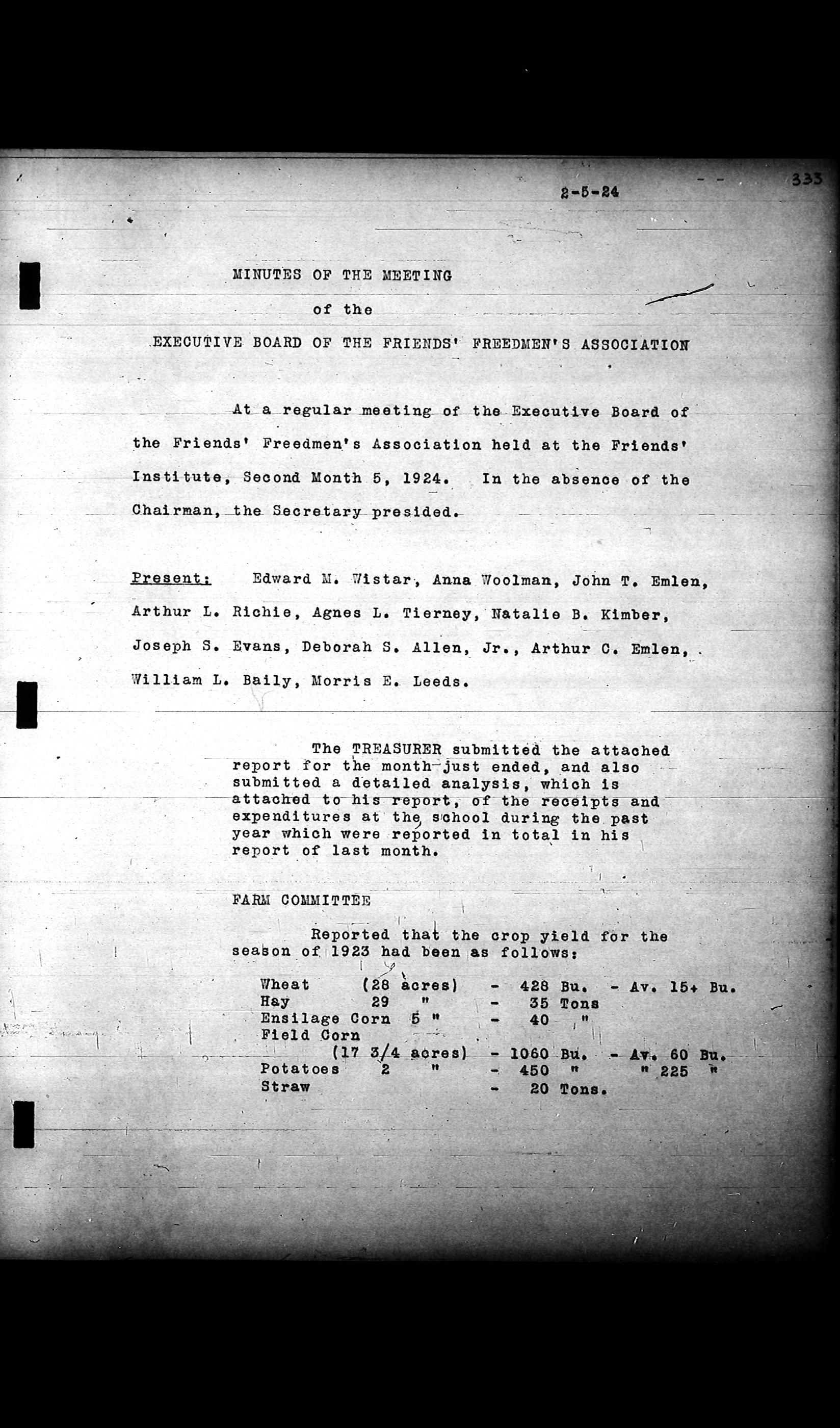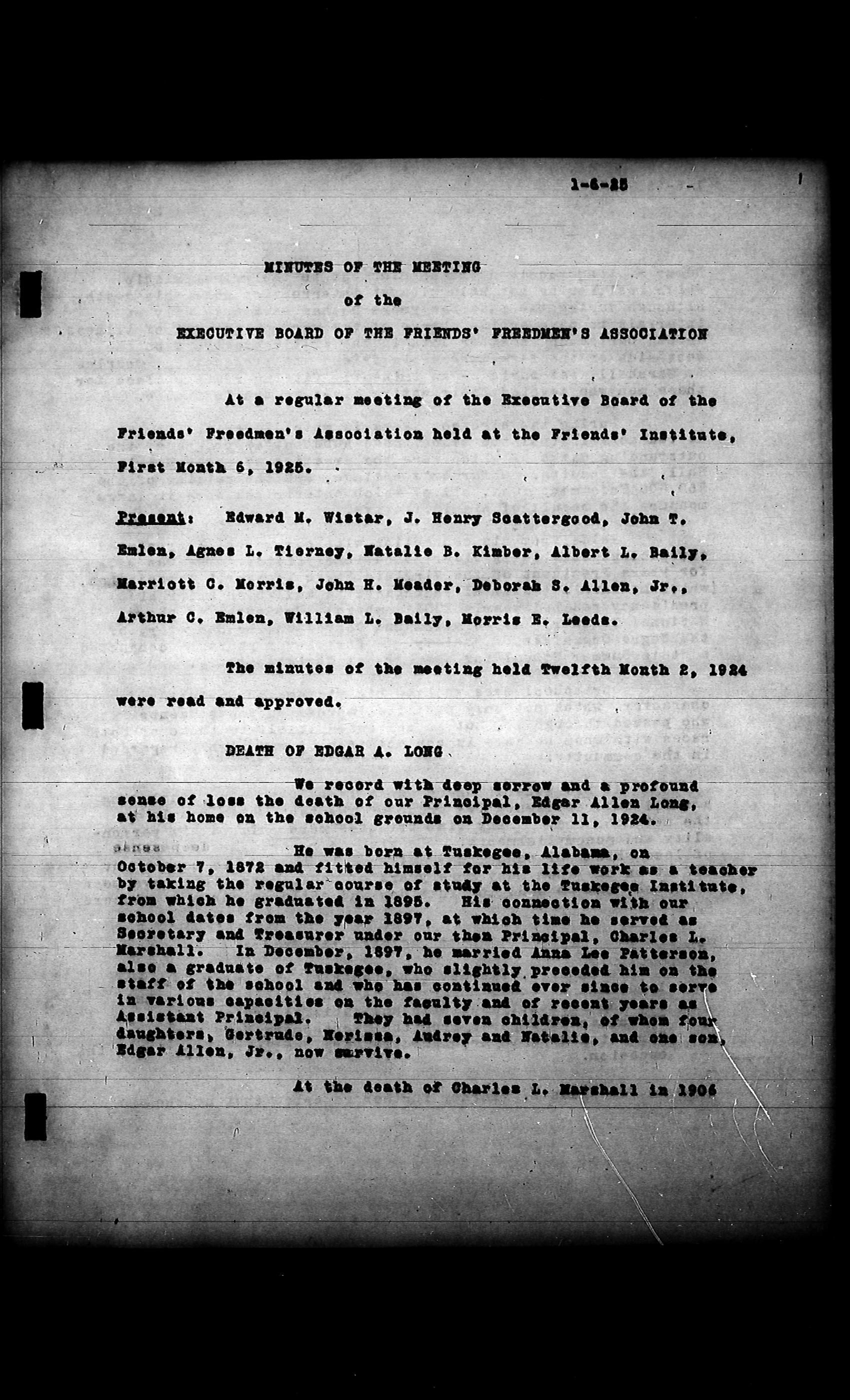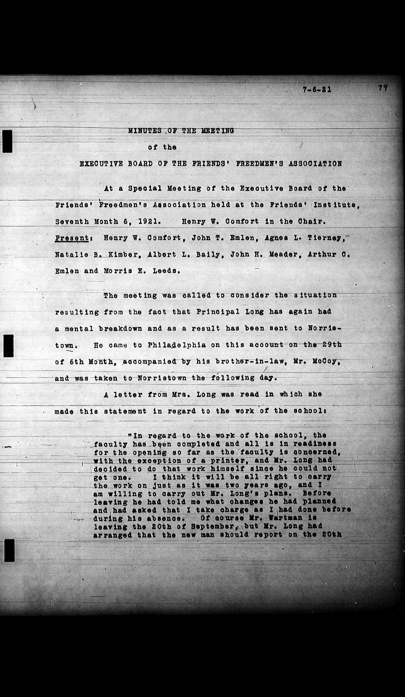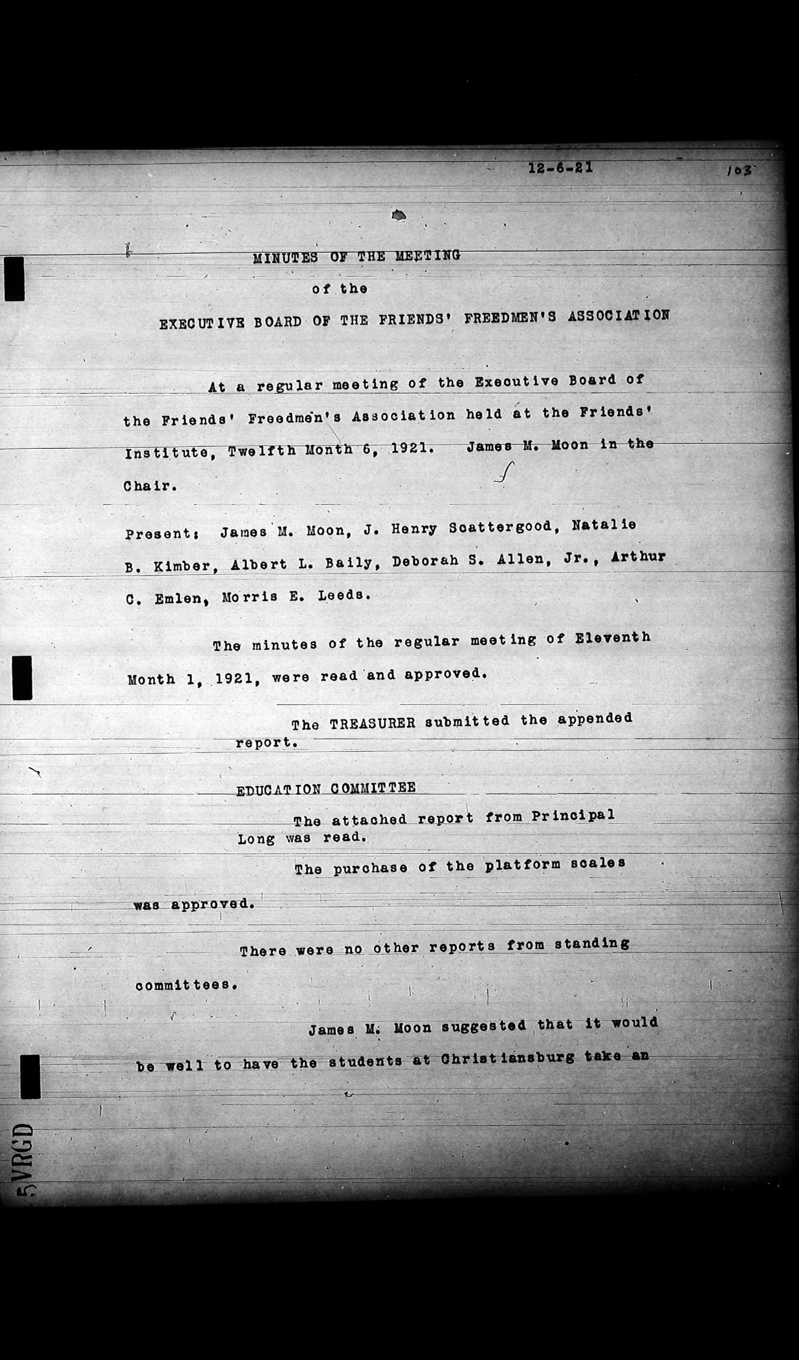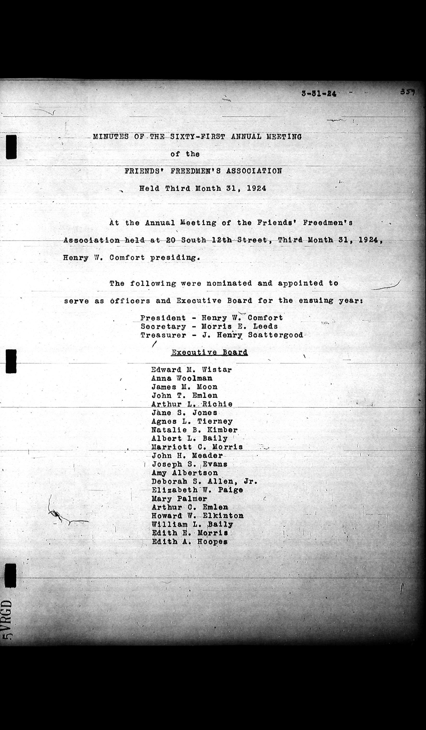 Friends Freedman's Association Reel Four: Executive Committee Minutes 1920-1932Scope and Content