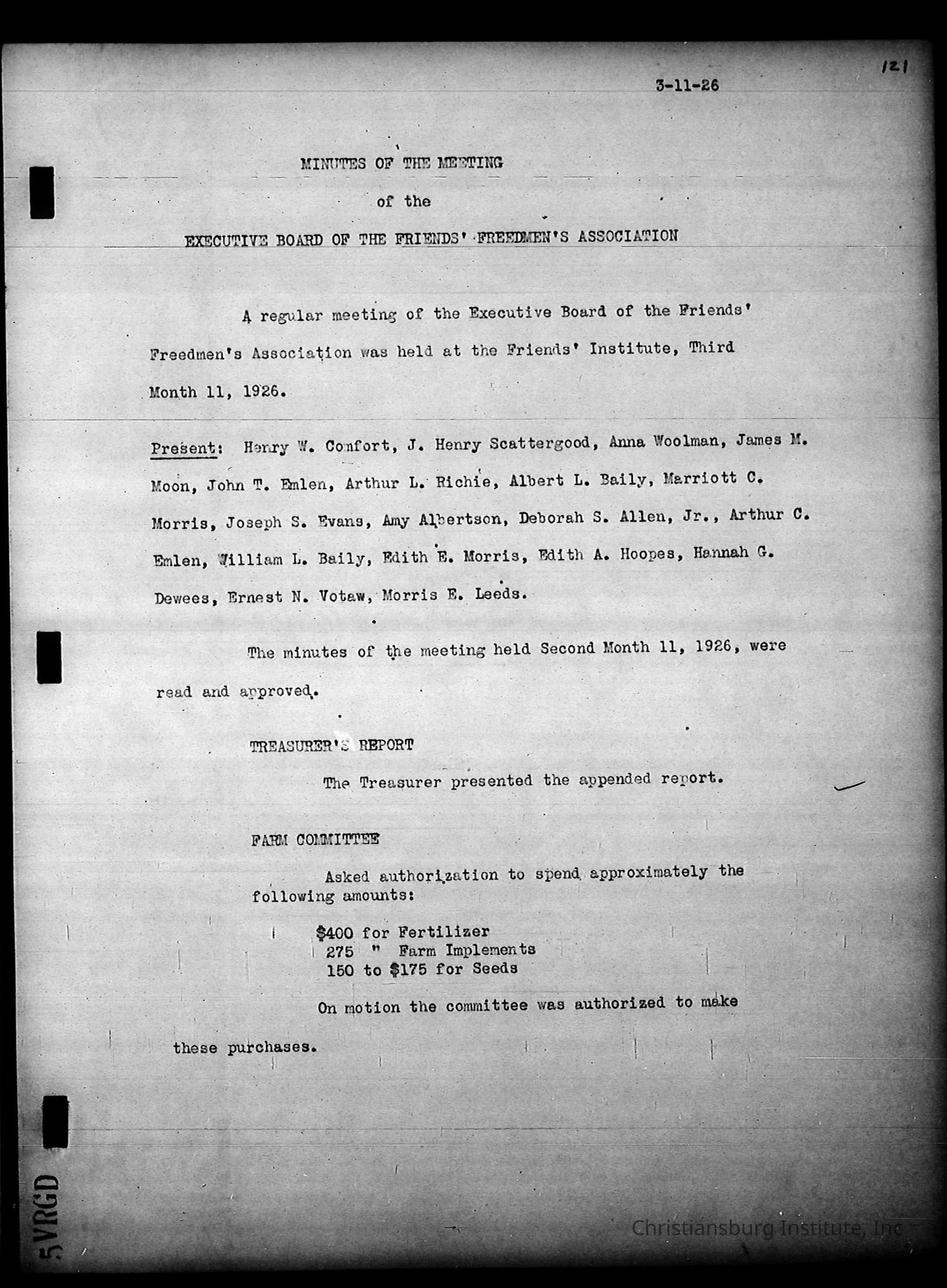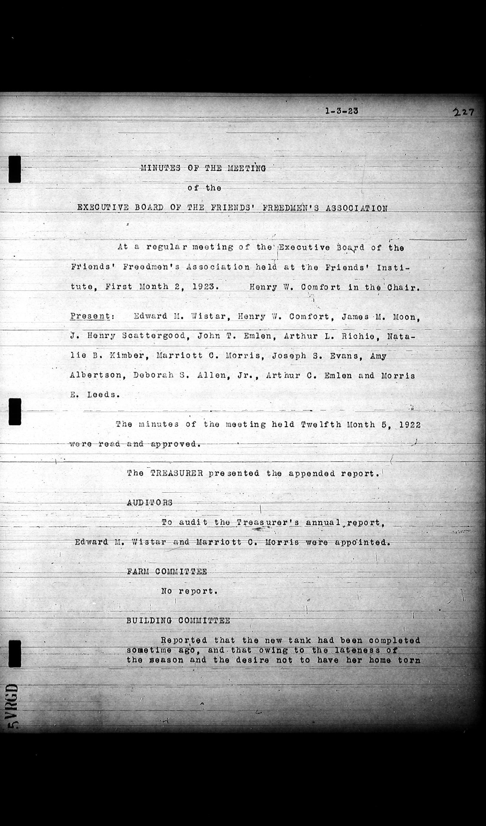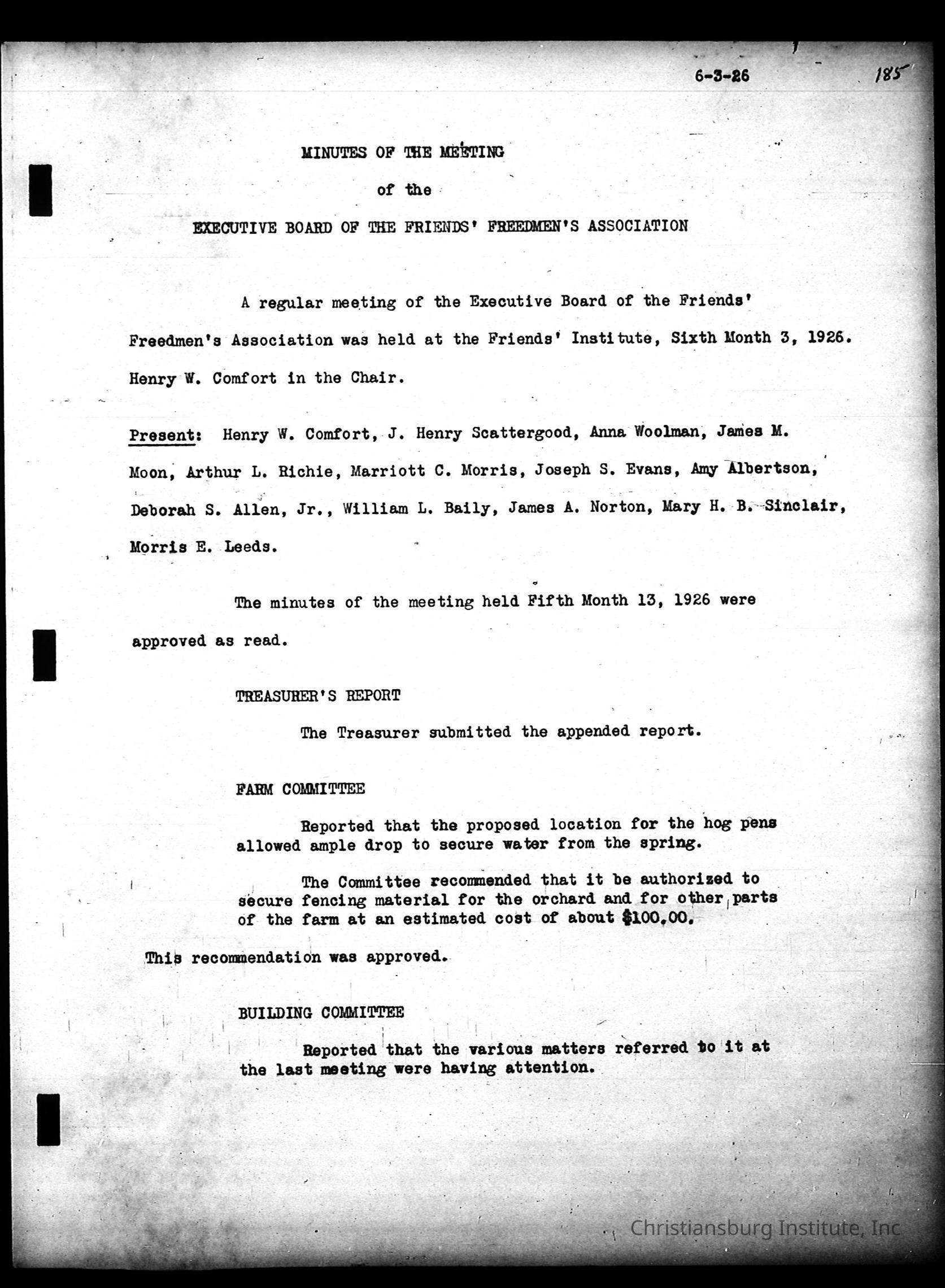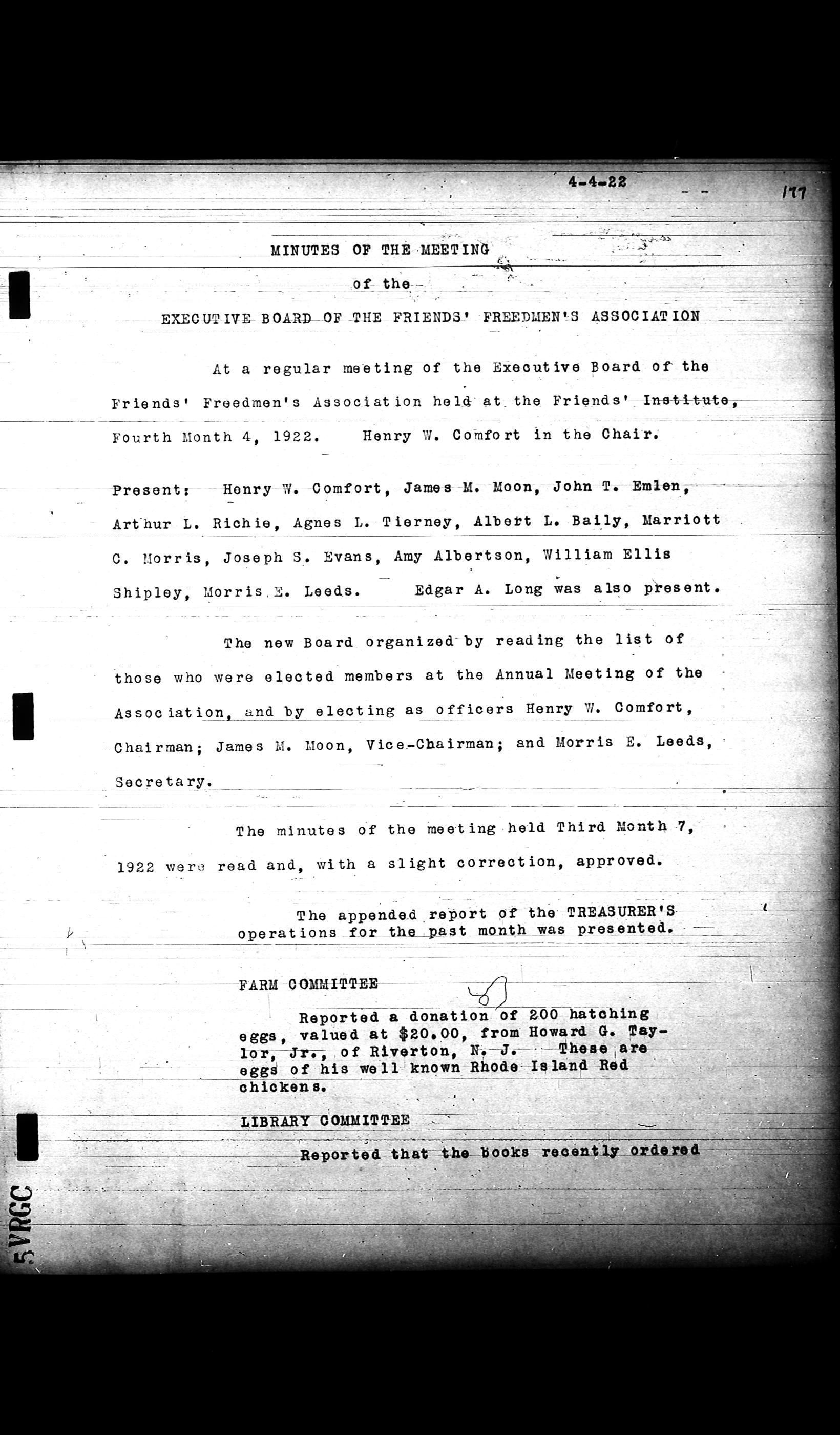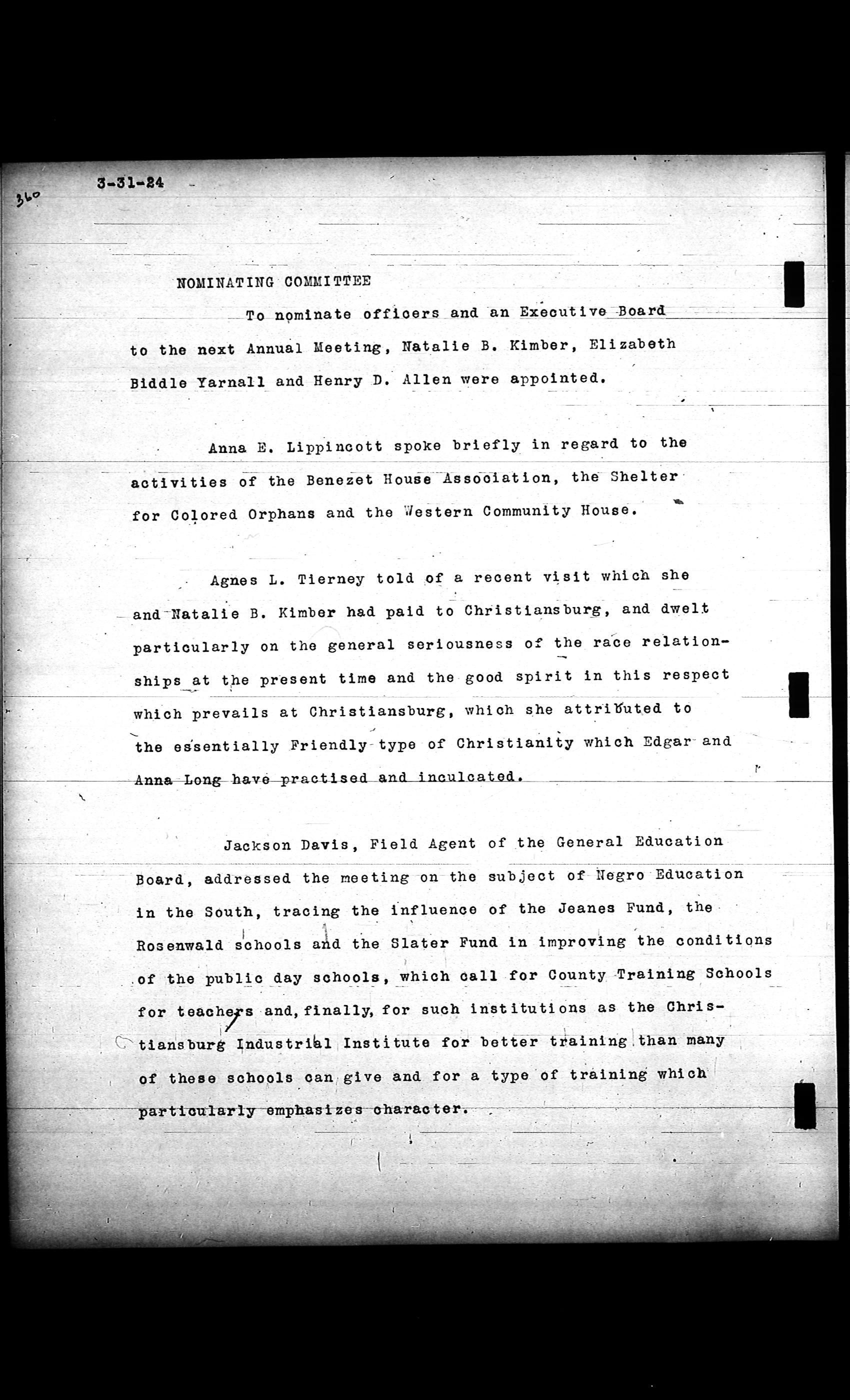 Friends Freedman's Association Reel Four: Executive Committee Minutes 1920-1932Scope and Content