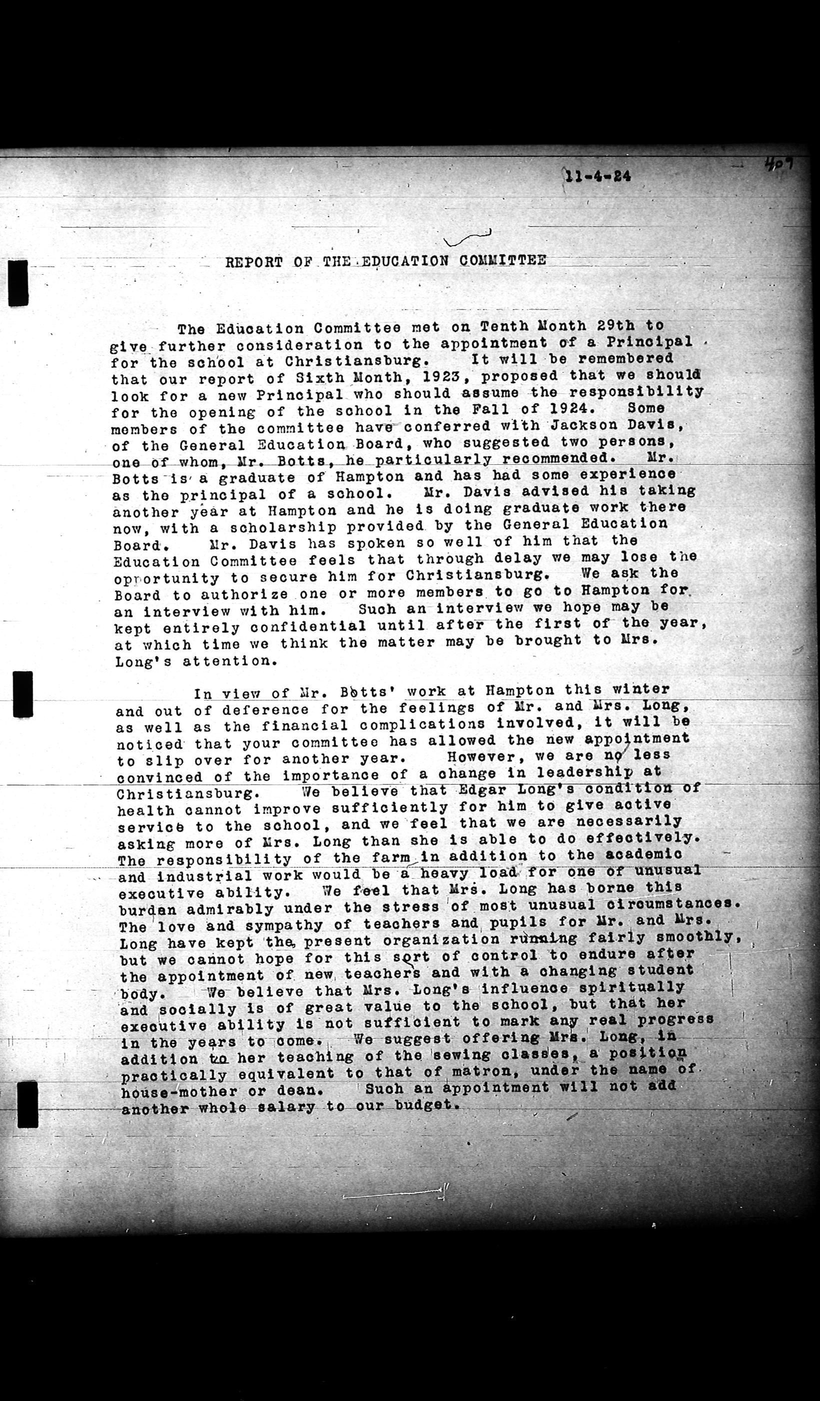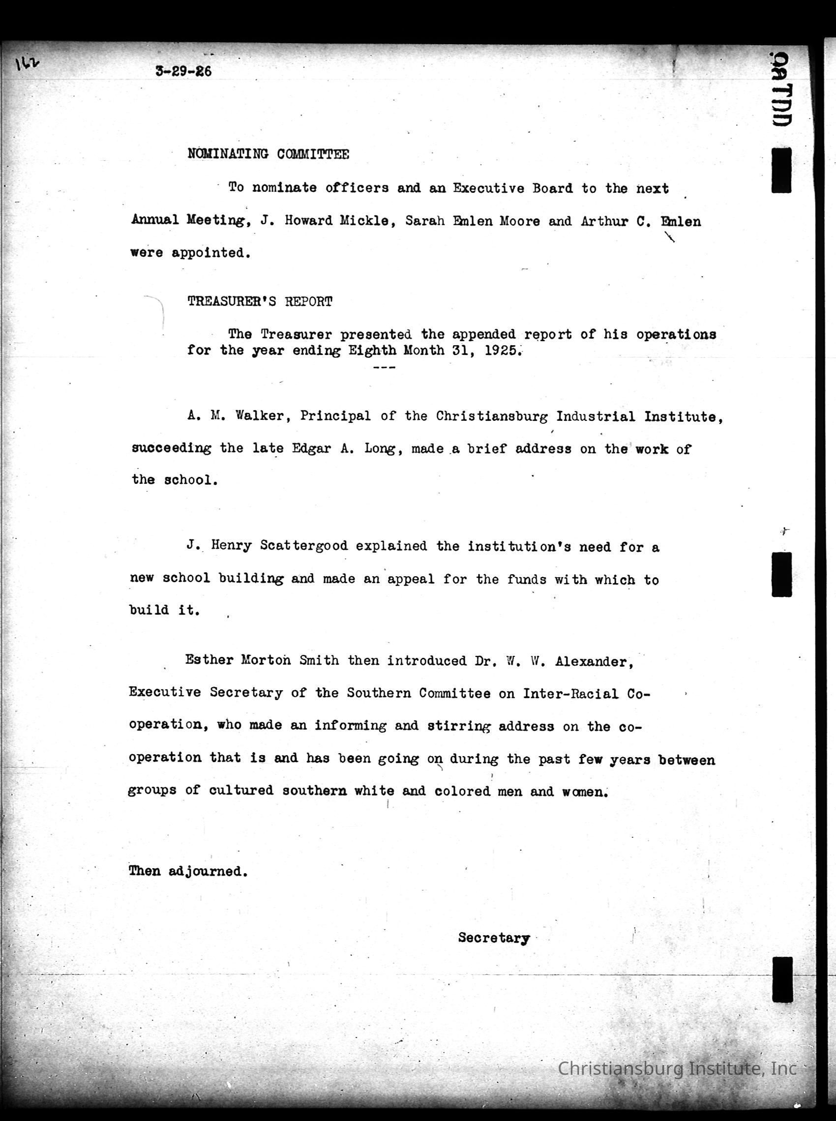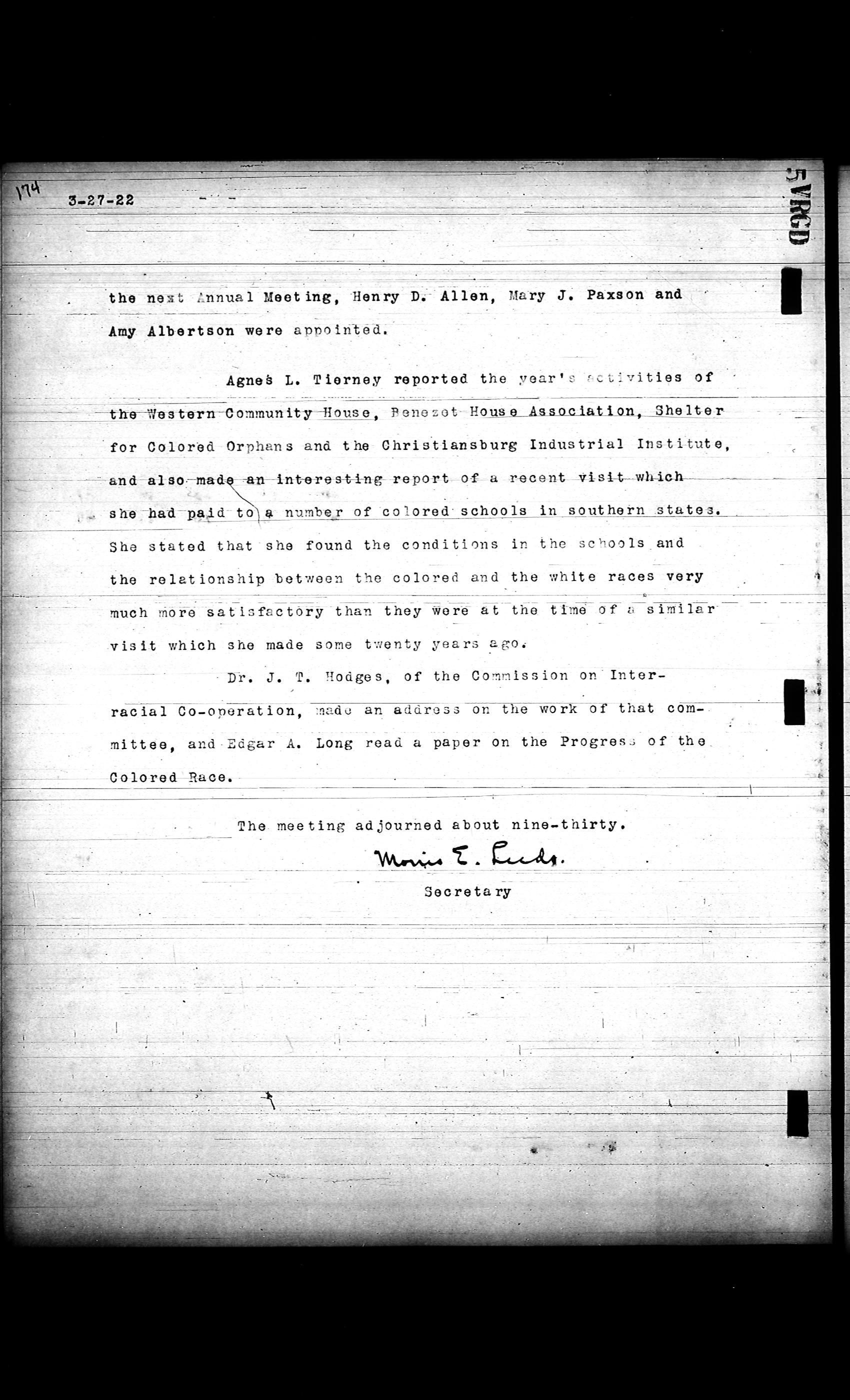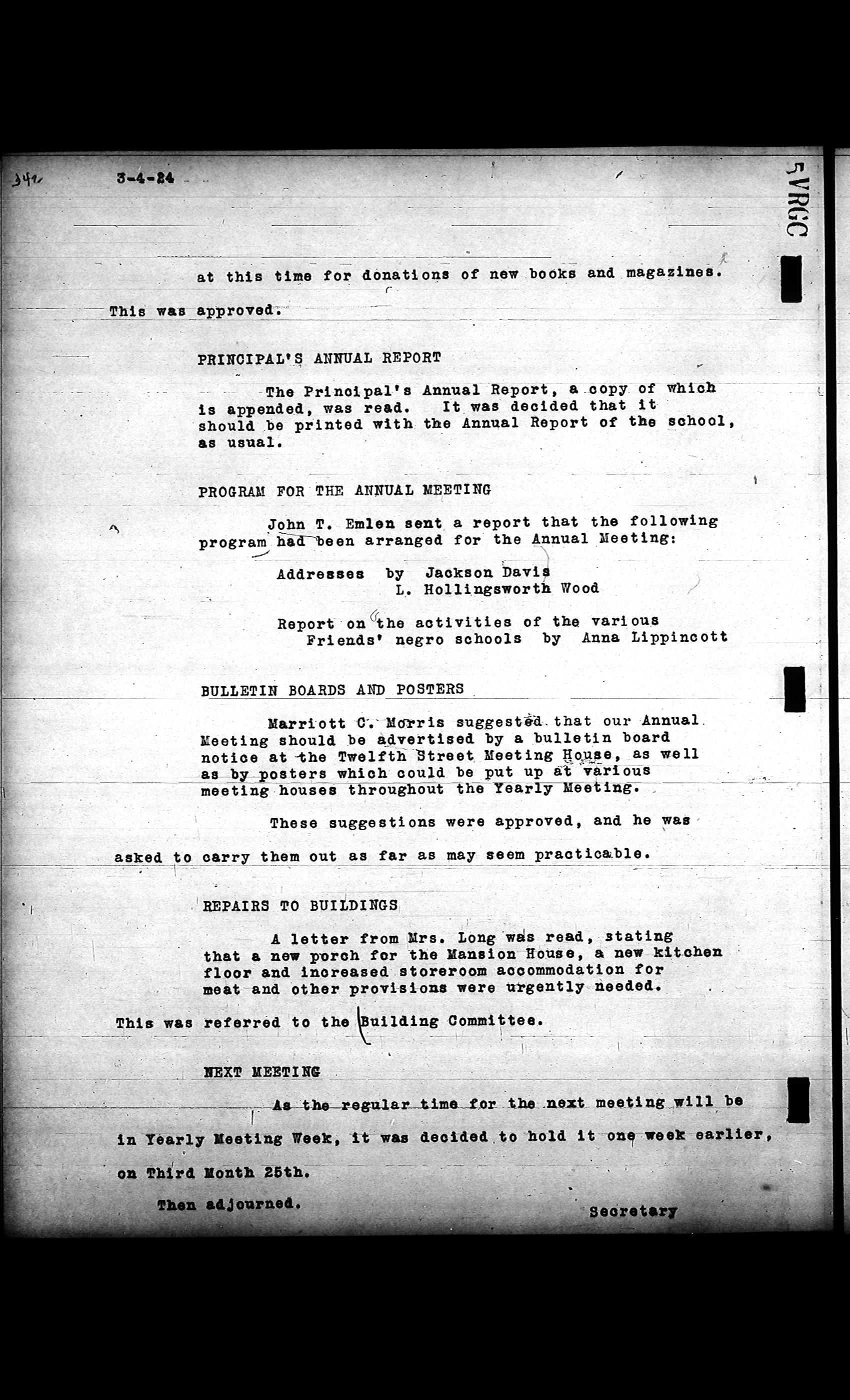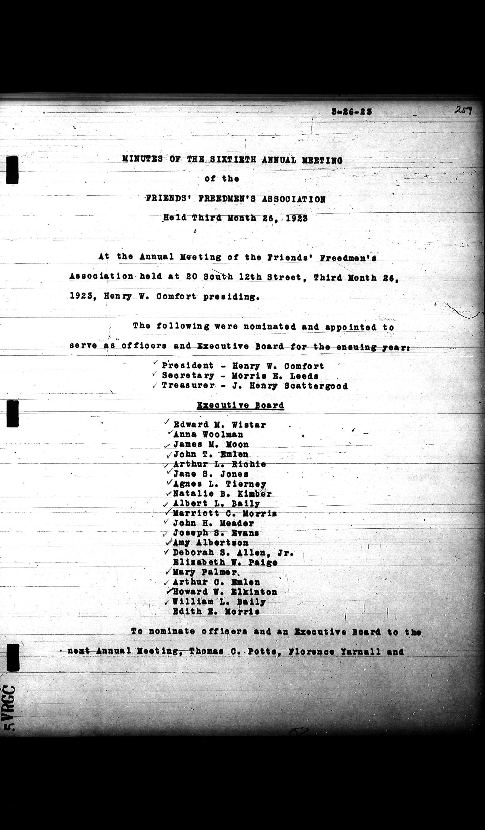 Friends Freedman's Association Reel Four: Executive Committee Minutes 1920-1932Scope and Content