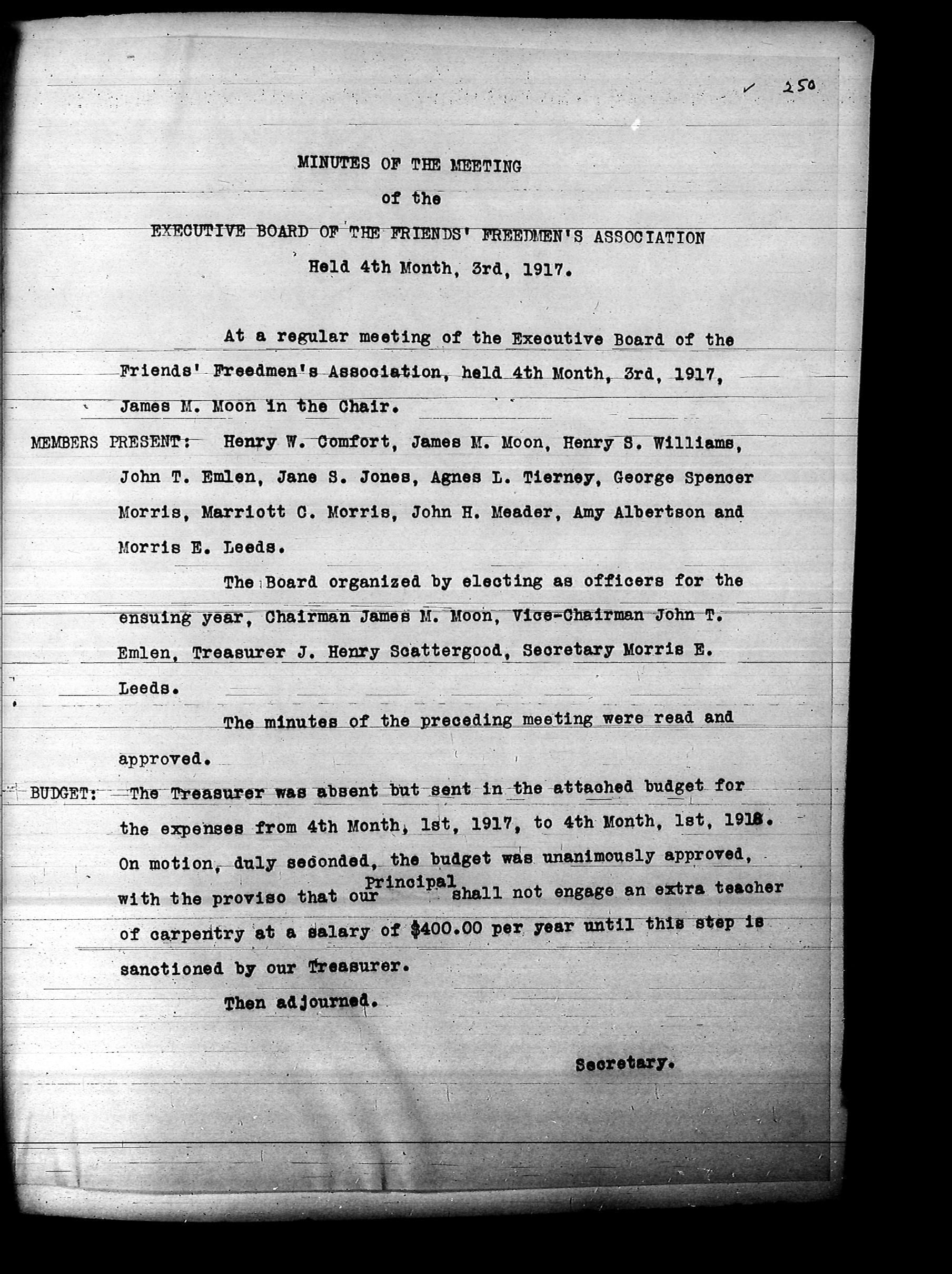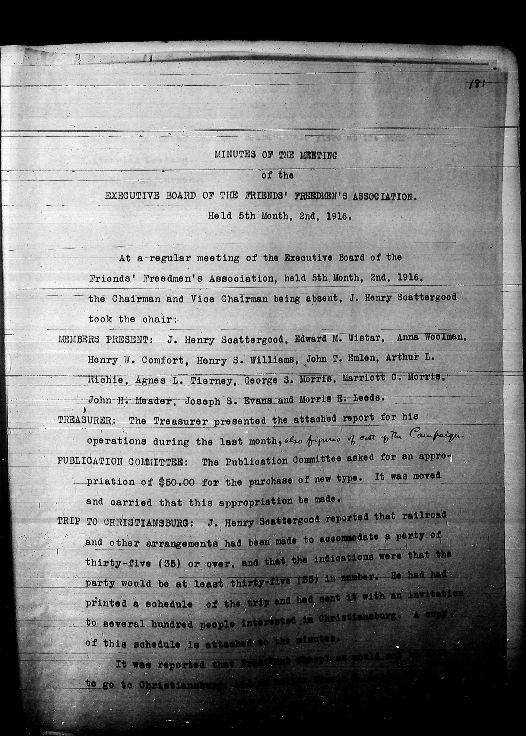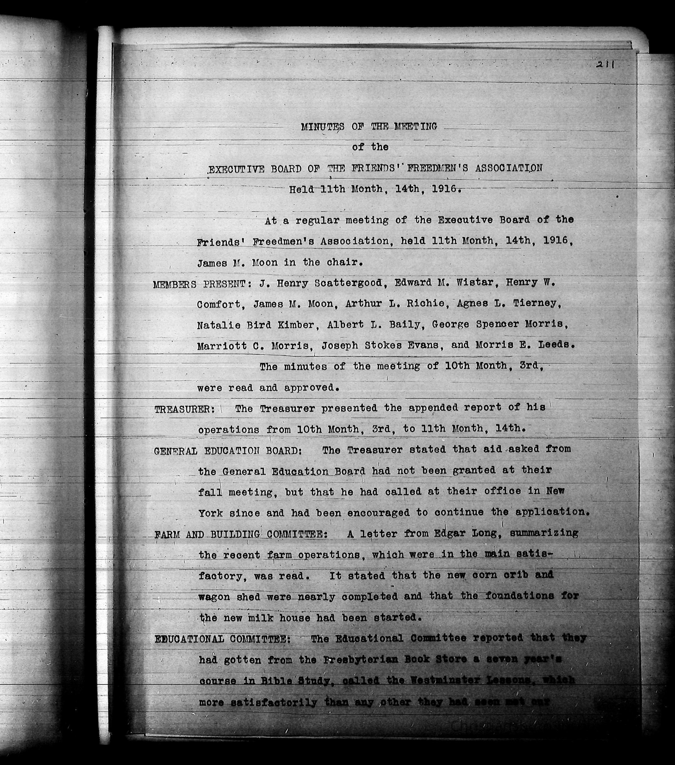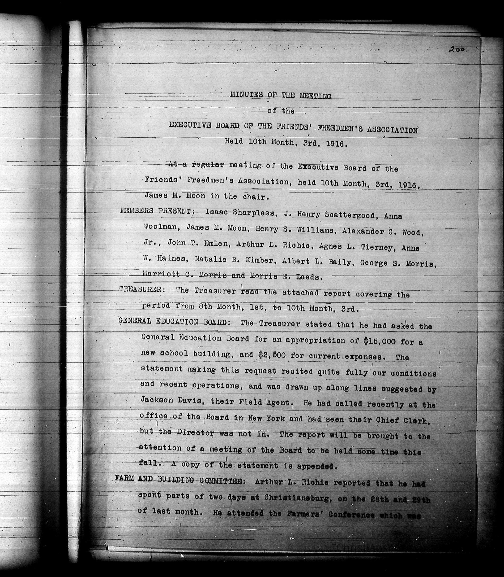 Friends Freedman's Association Reel Three: Executive Committee Minutes 1910-1920 (part 2)Scope and Content