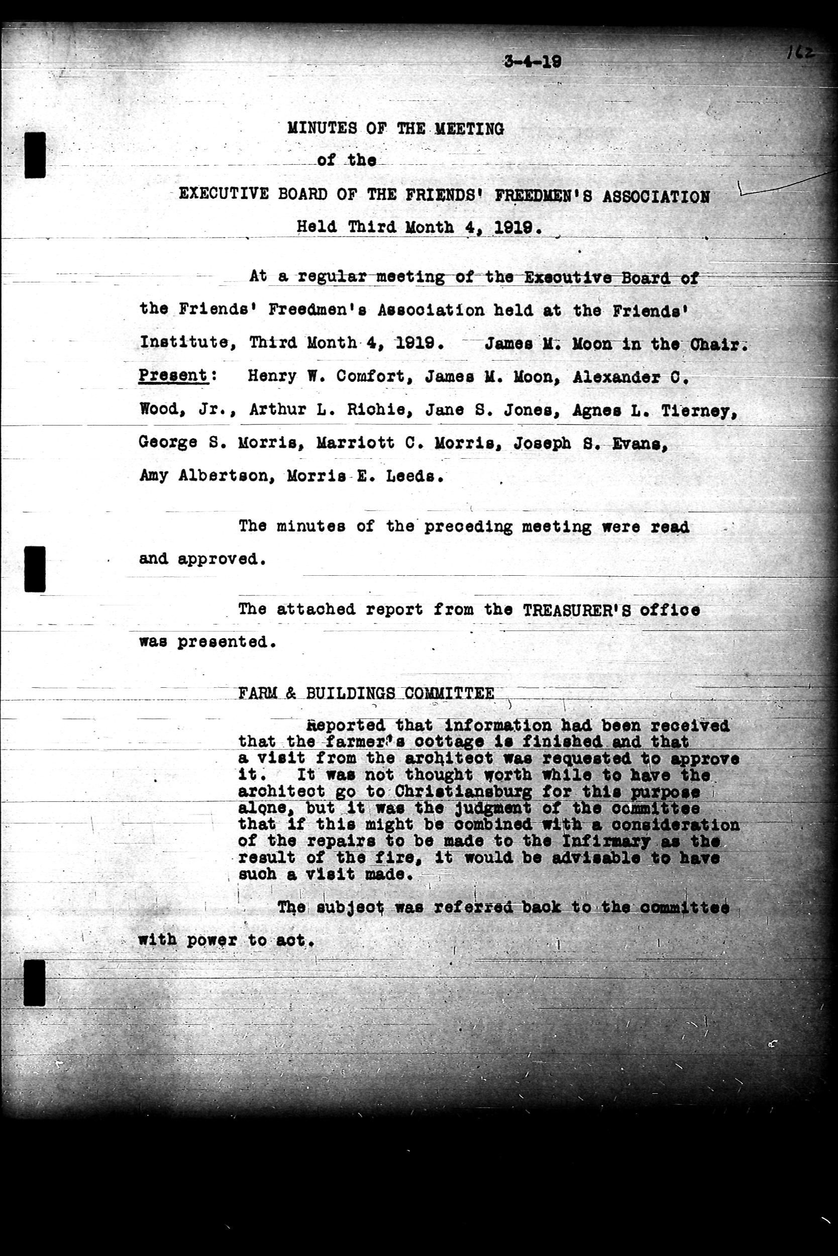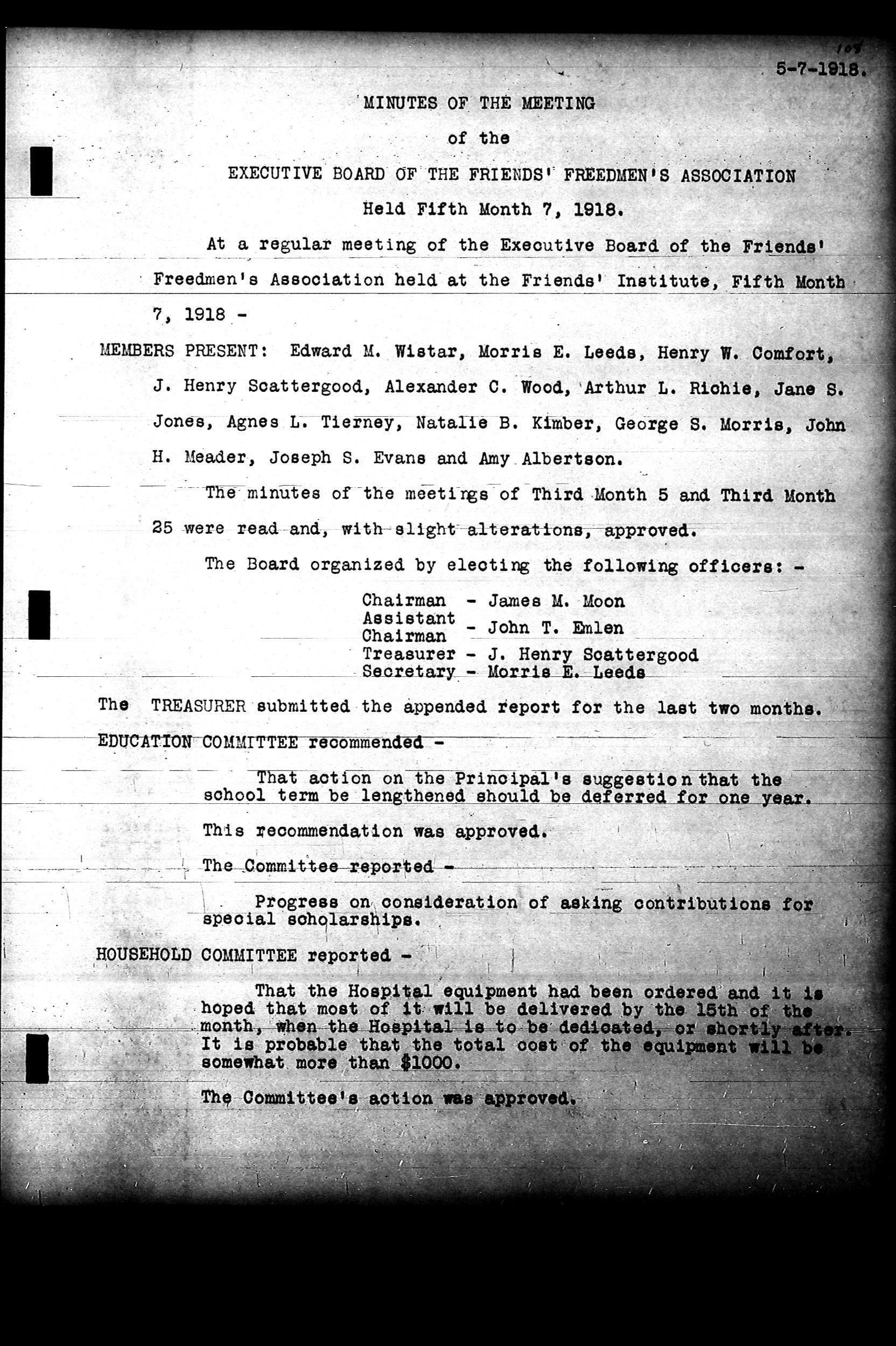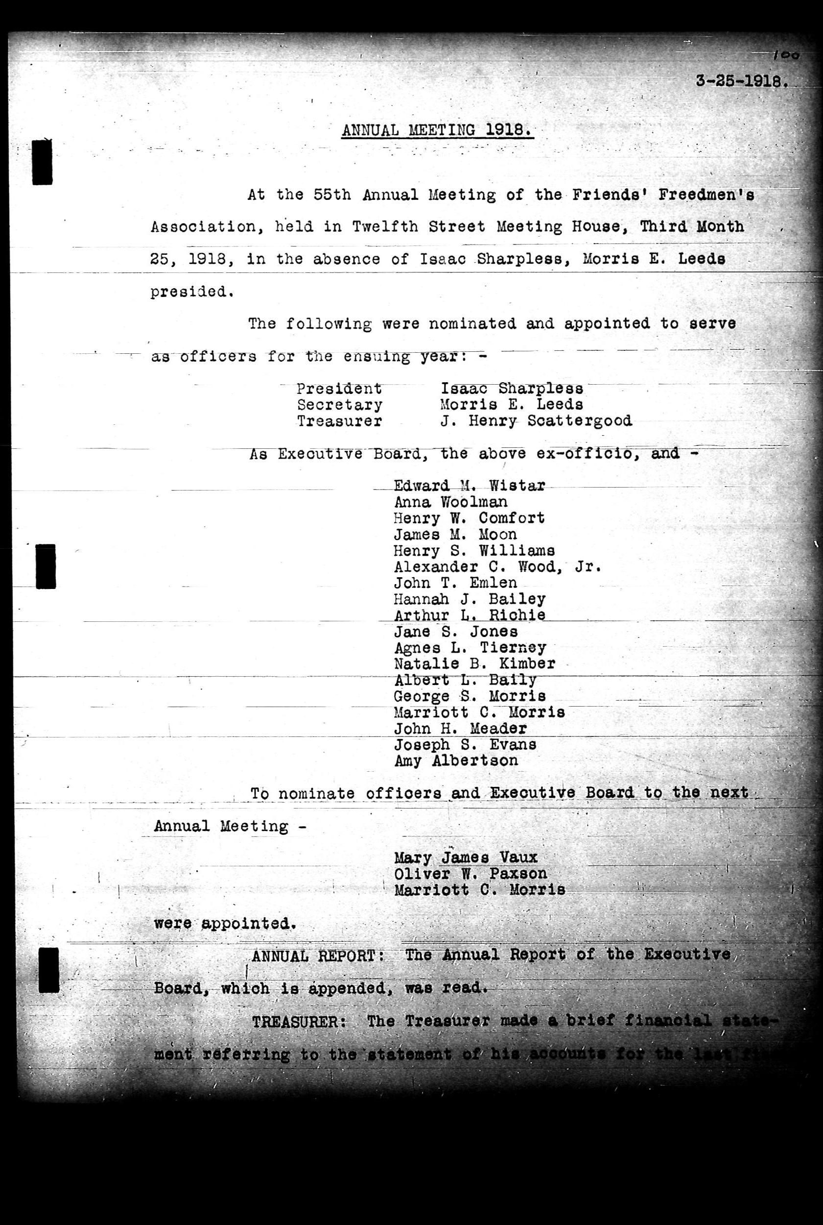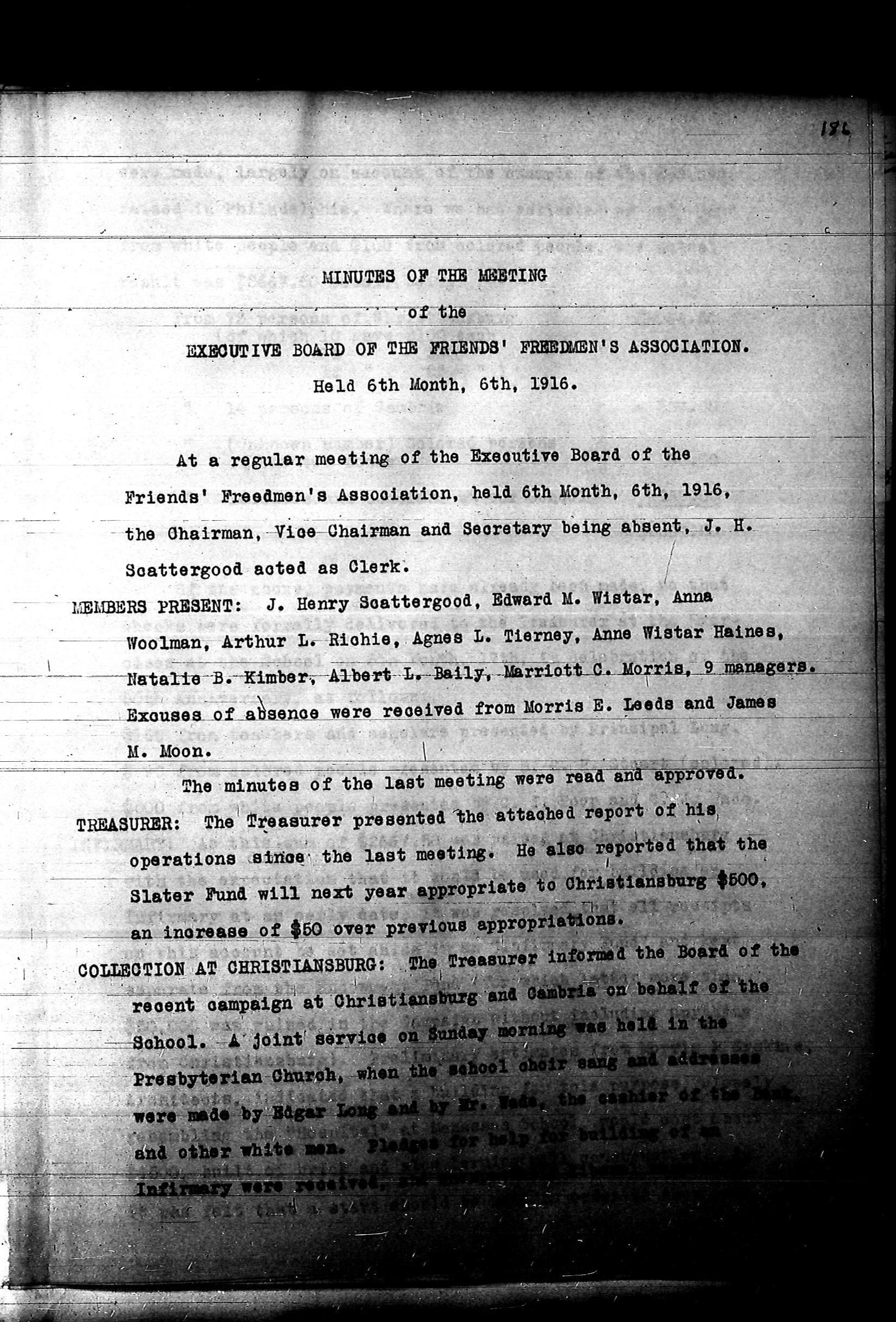 Friends Freedman's Association Reel Three: Executive Committee Minutes 1910-1920 (part 2)Scope and Content
