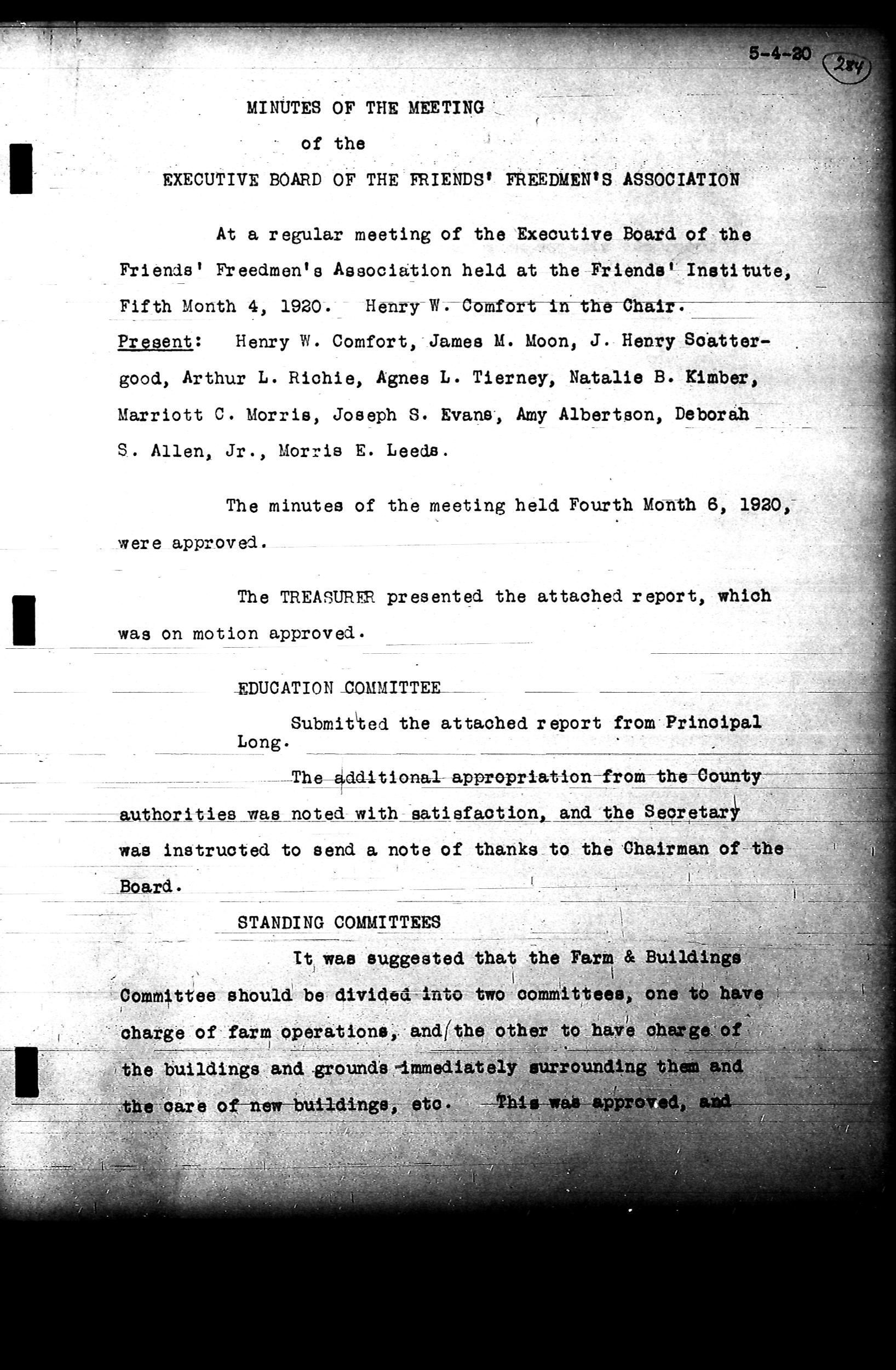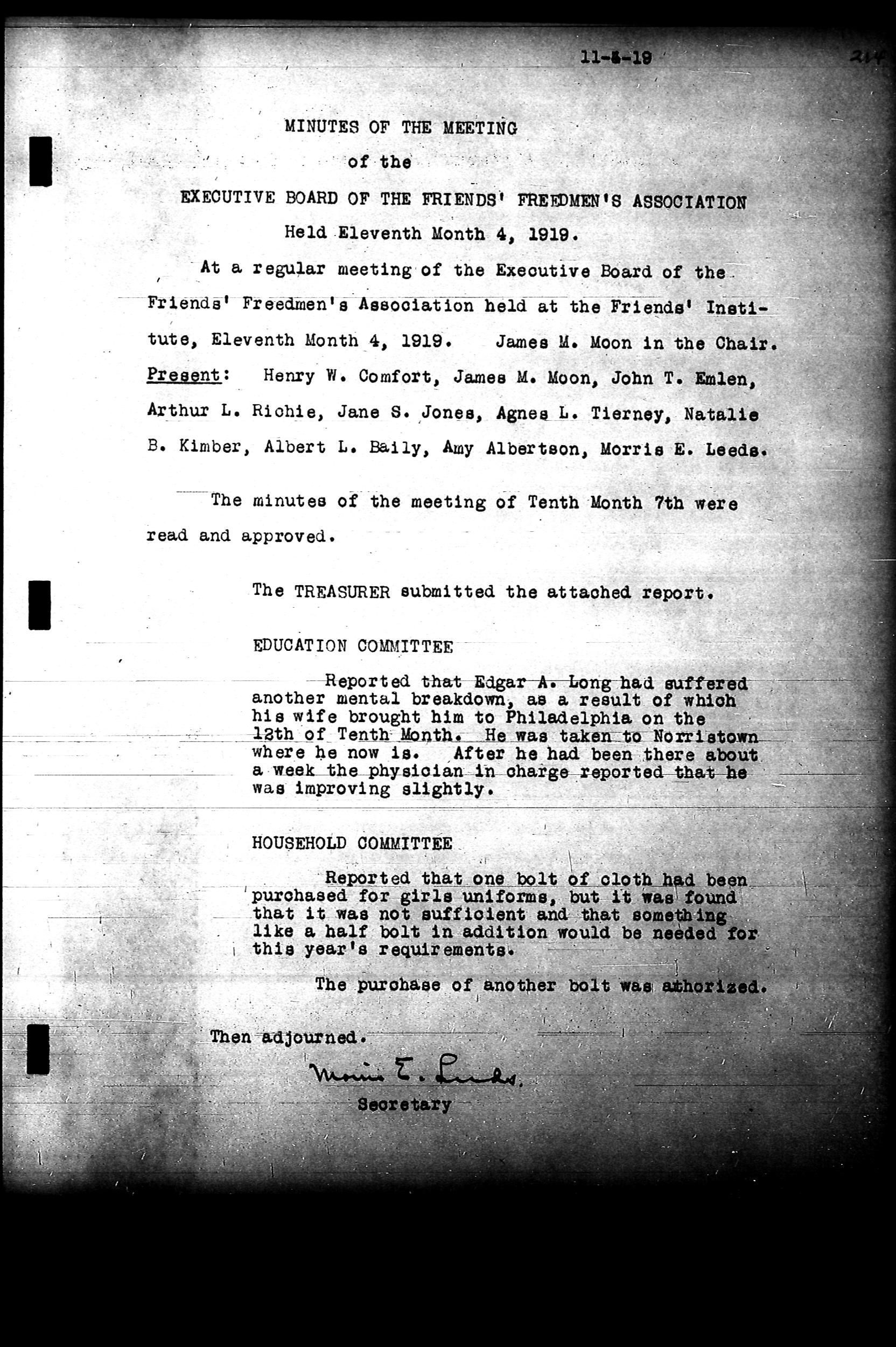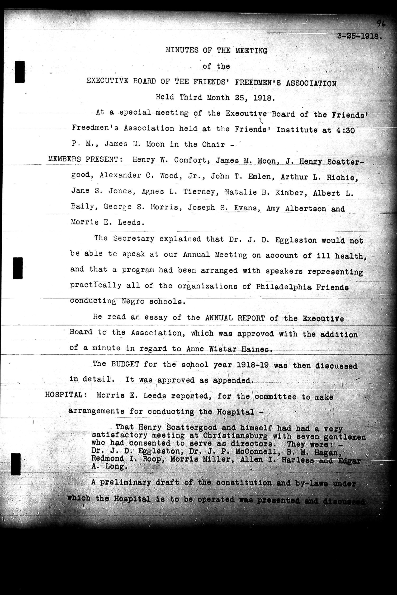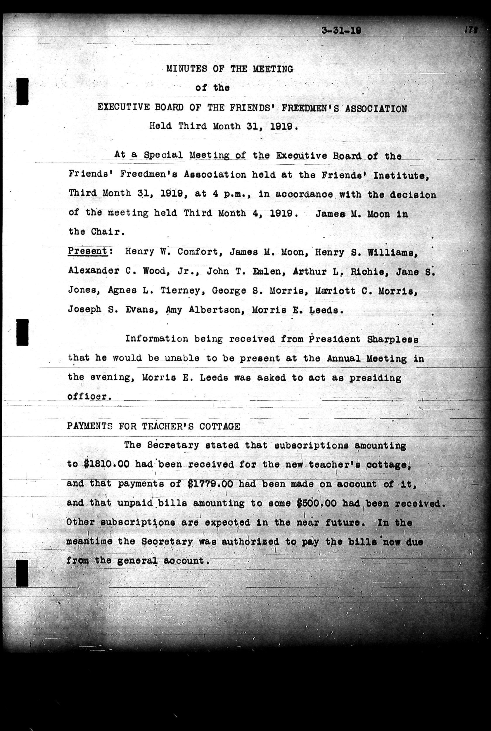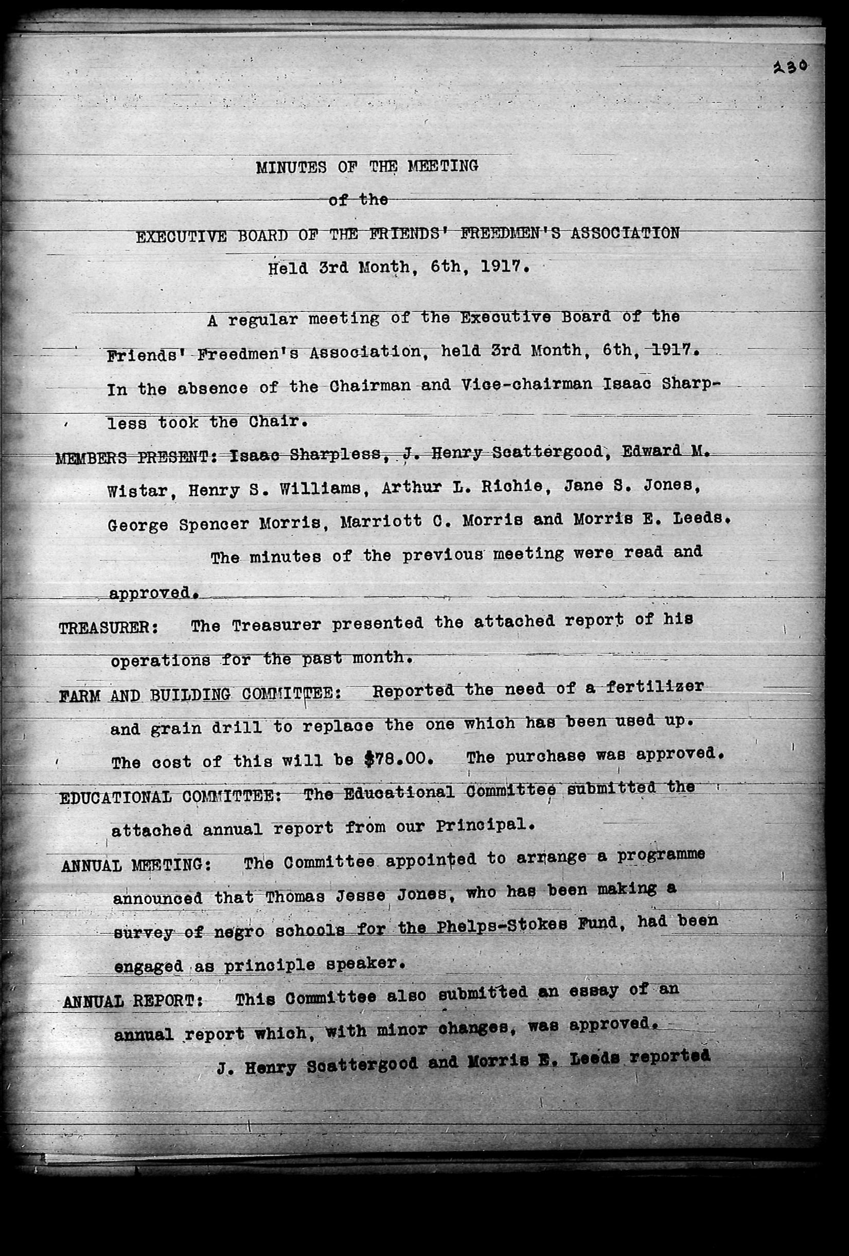 Friends Freedman's Association Reel Three: Executive Committee Minutes 1910-1920 (part 2)Scope and Content