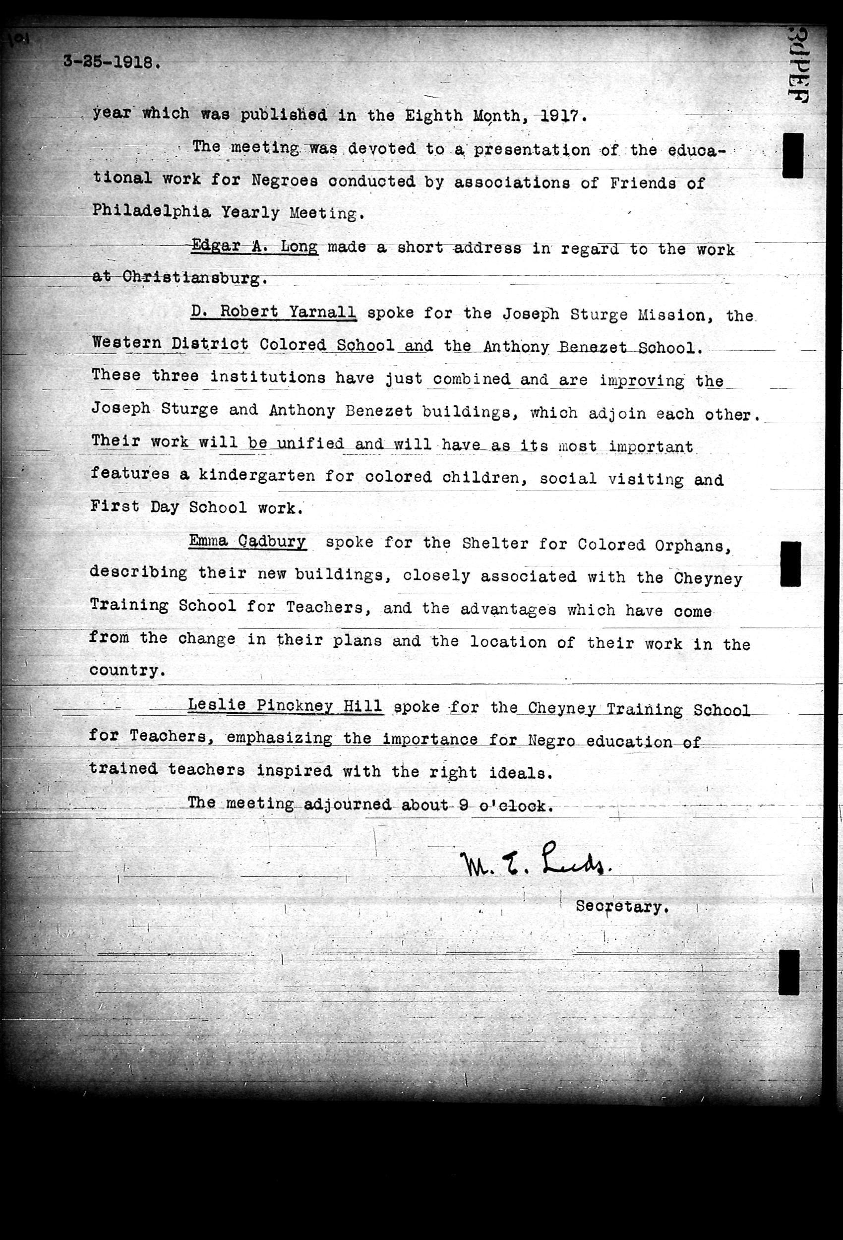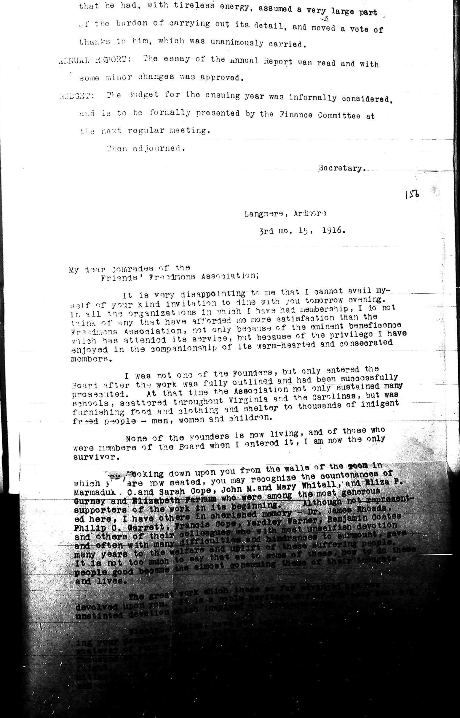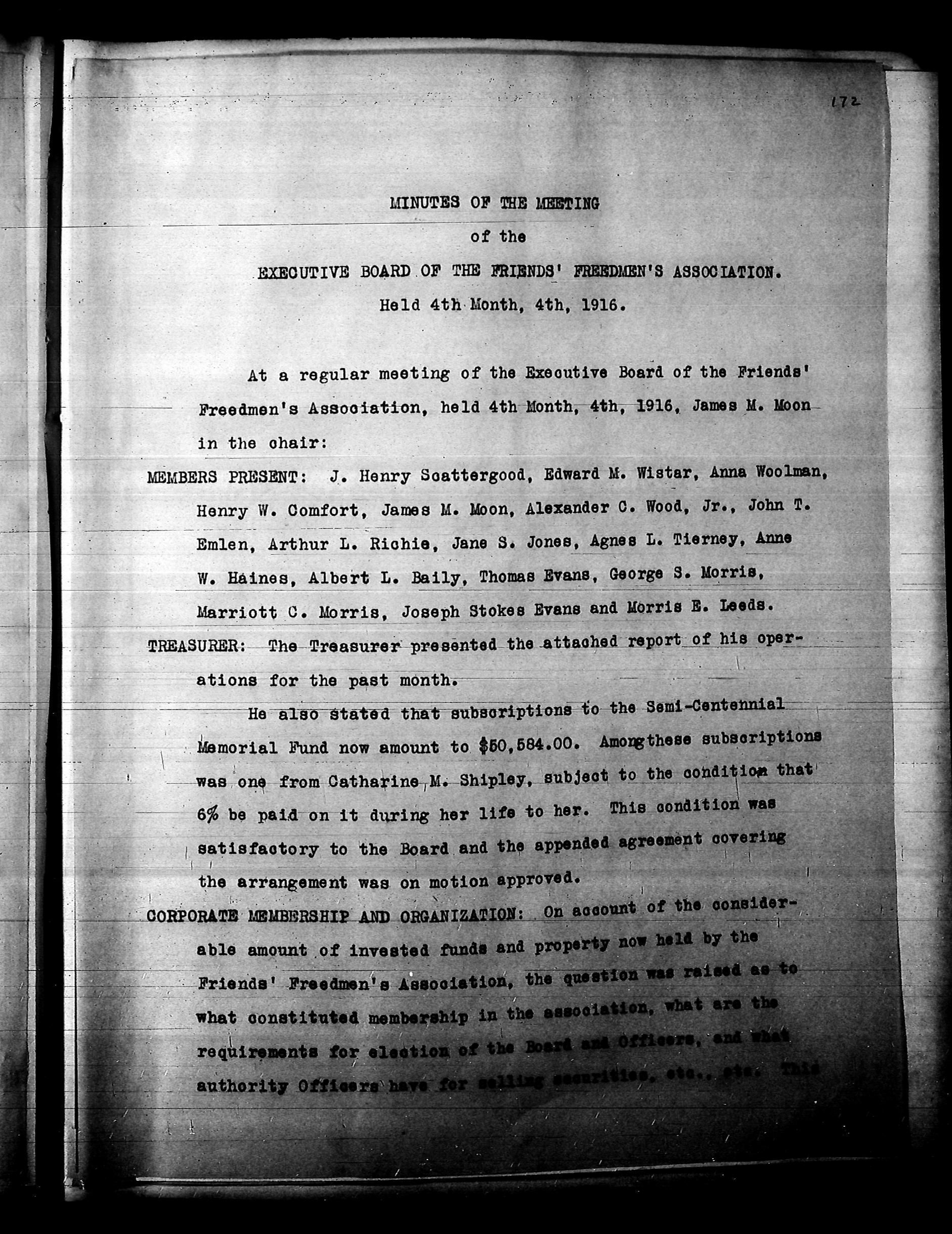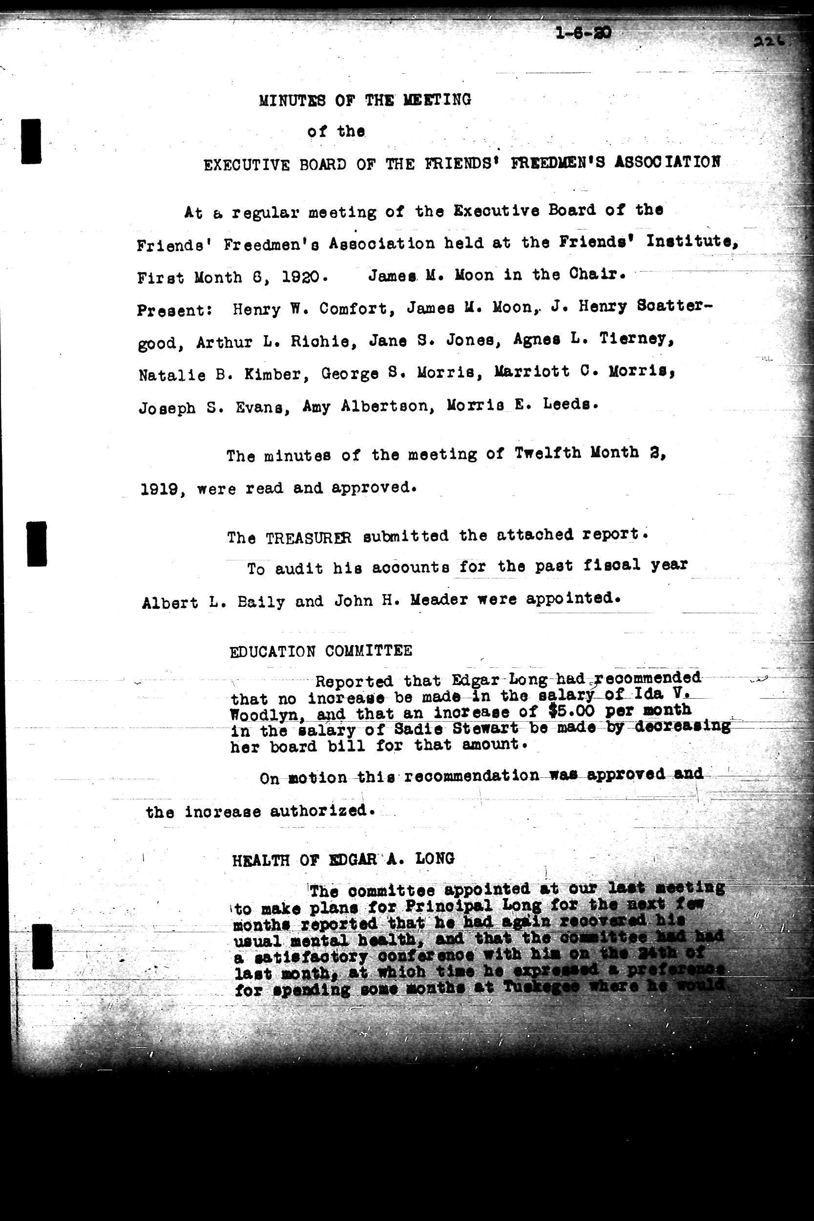 Friends Freedman's Association Reel Three: Executive Committee Minutes 1910-1920 (part 2)Scope and Content