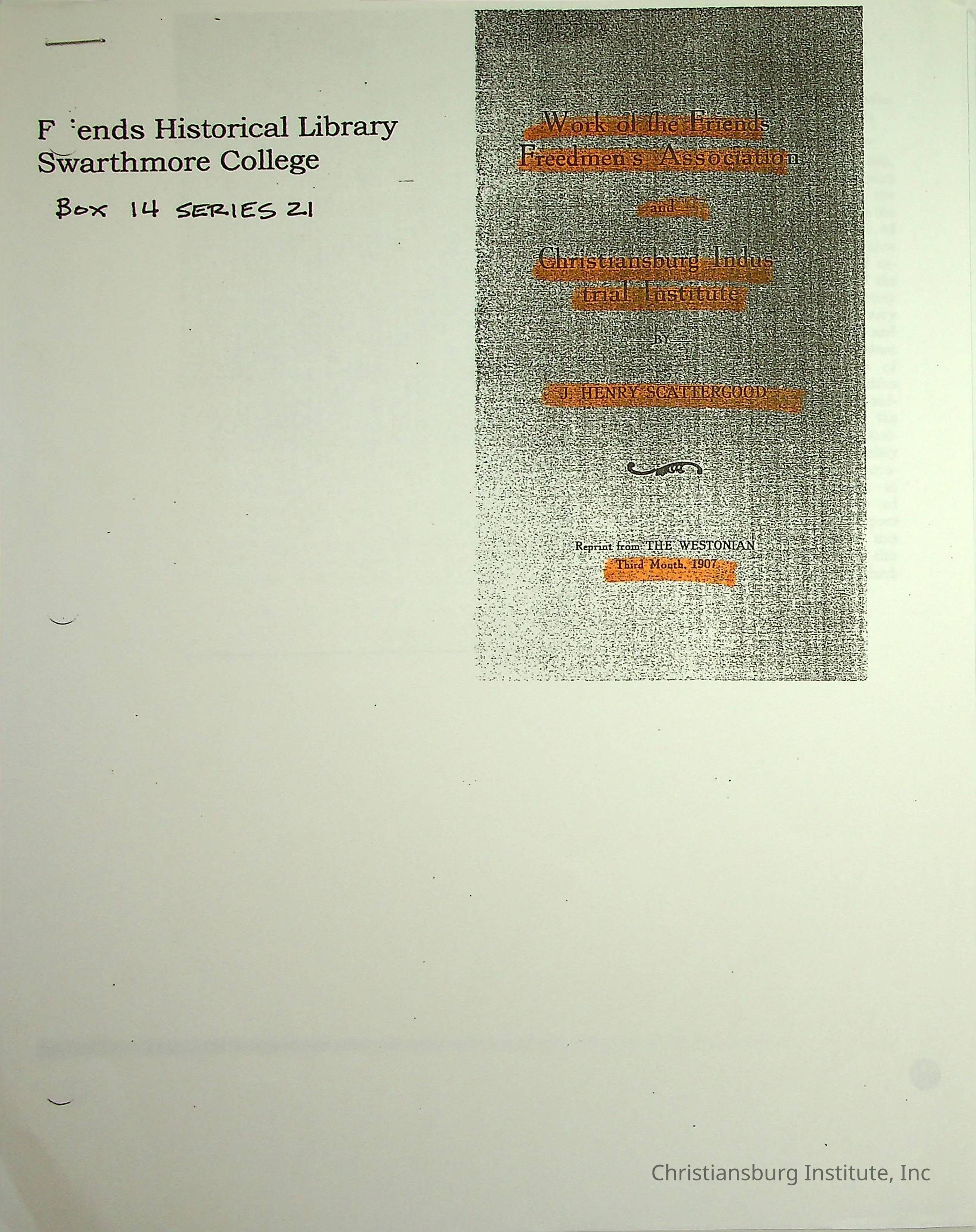 Copyright has been assigned to Christiansburg Institute Museum & Archives. For permission to publish materials created by the donor, contact CIMA@christiansburginstitute.com. Materials not created by Christiansburg Institute Museum and Archives may still be under copyright.