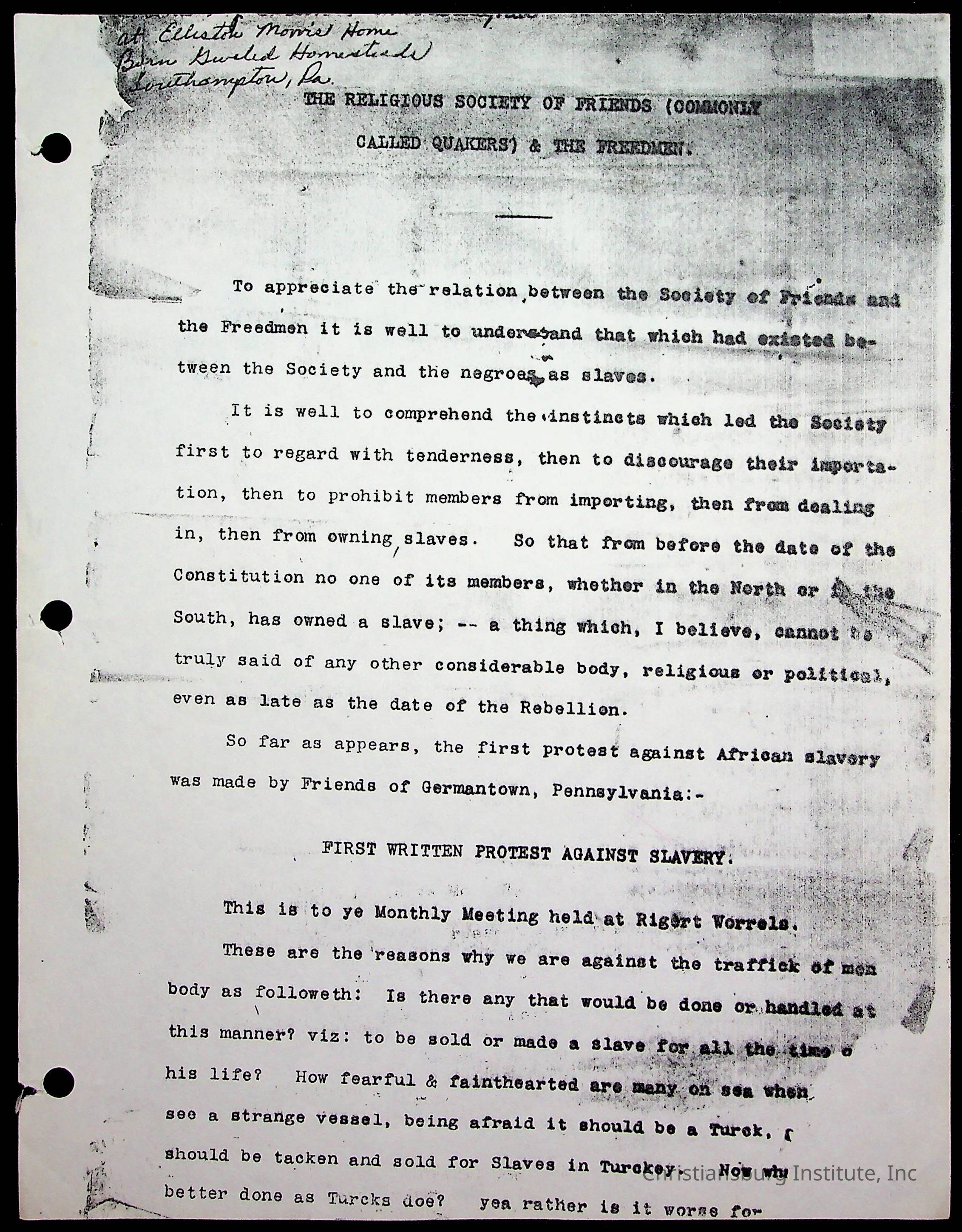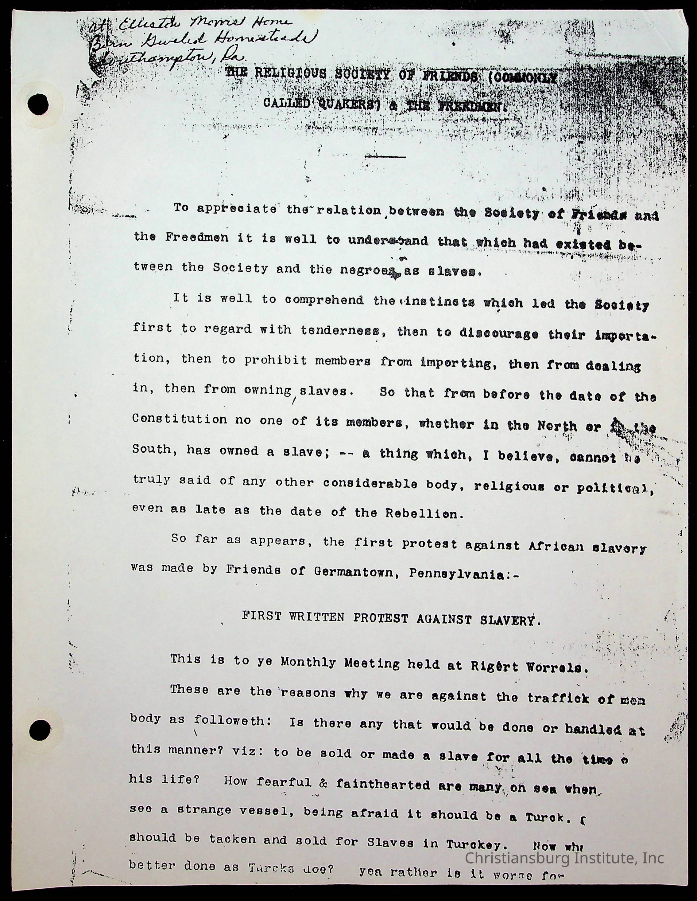 An archive of research material about the Friends' Freedmen's Association dated 1880-1930 complied by Amanda DeHart.