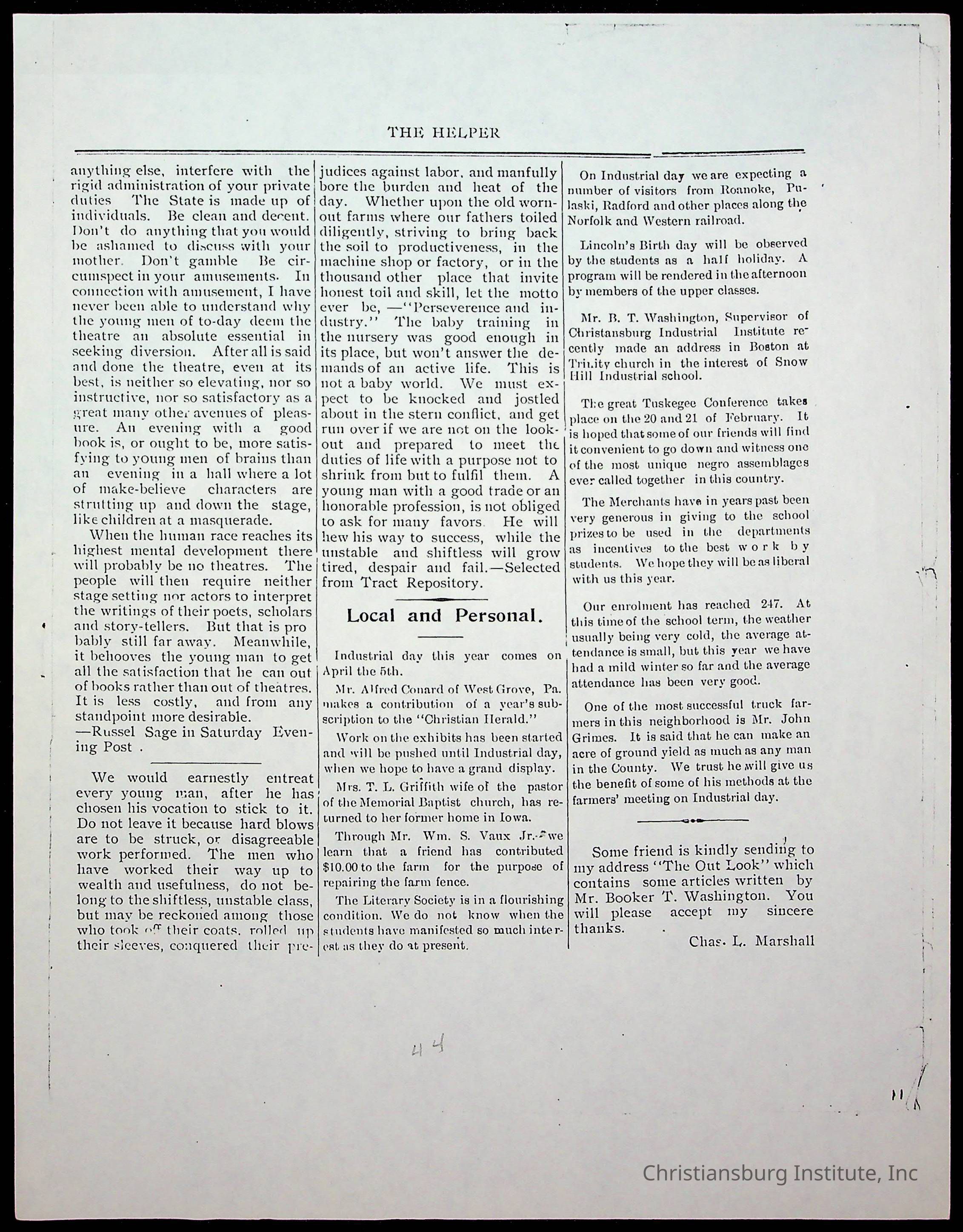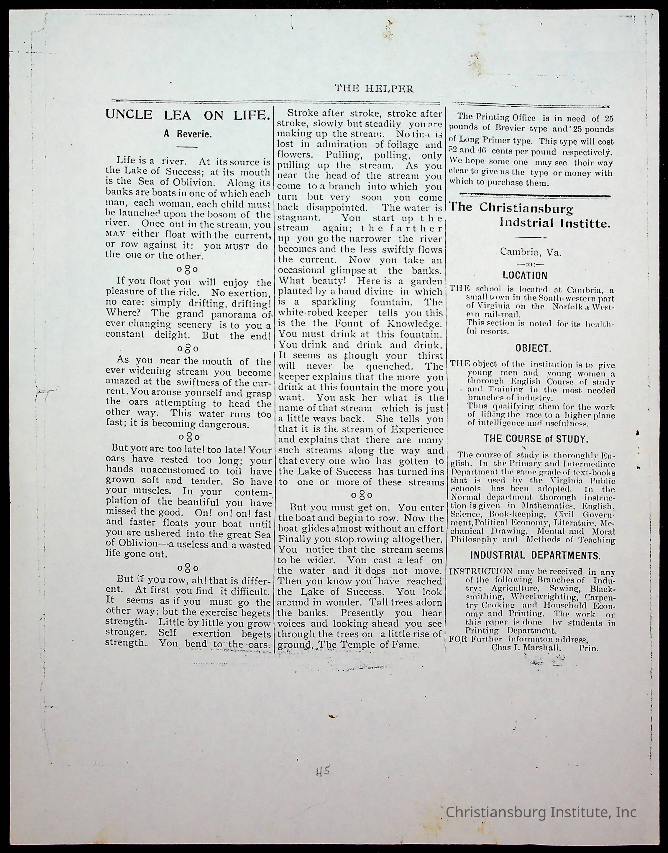 Copyright has been assigned to Christiansburg Institute Museum & Archives by Amanda DeHart. For permission to publish materials created by the donor, contact CIMA@christiansburginstitute.com. Materials not created by Amanda DeHart may still be under copyright.
