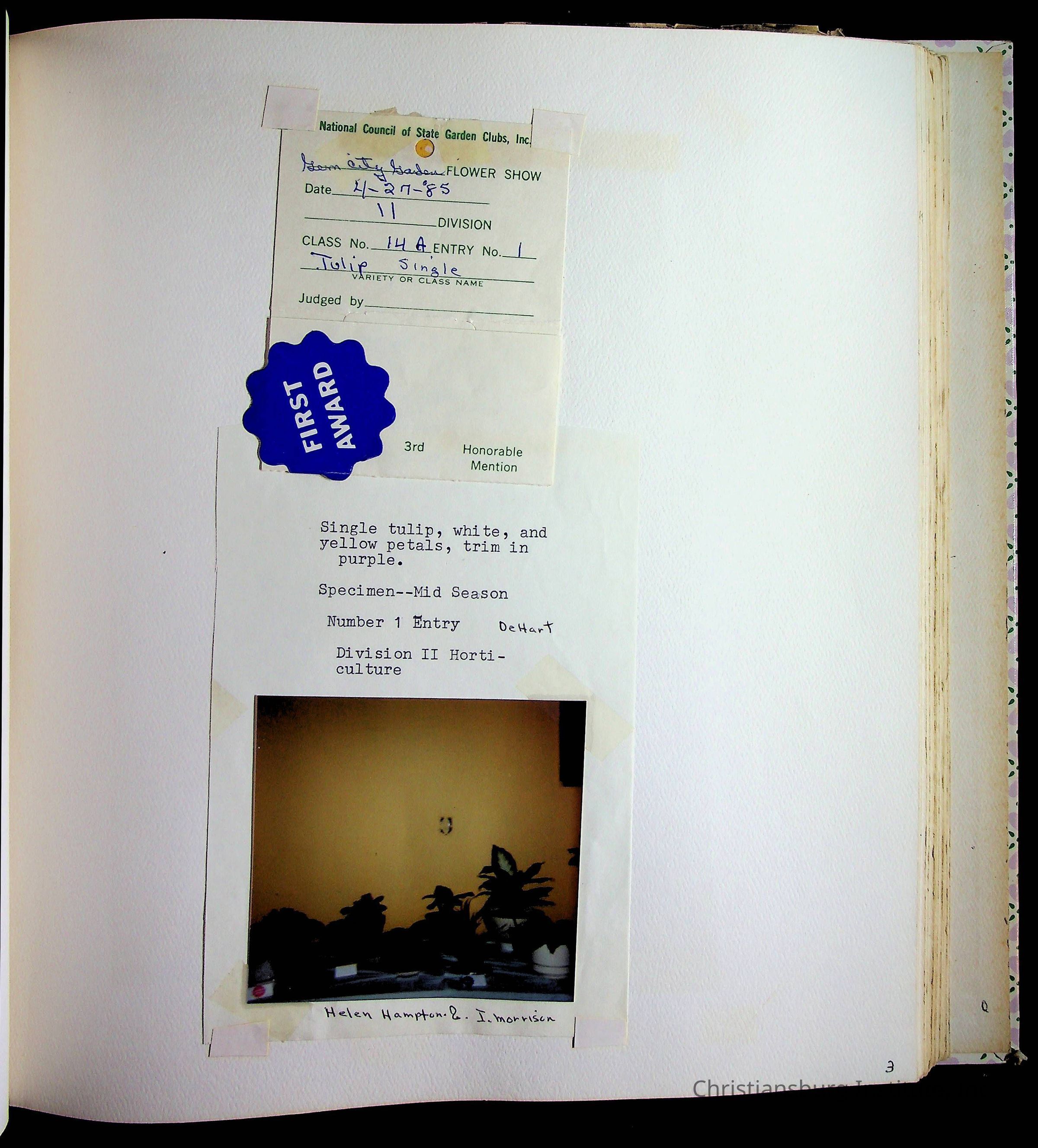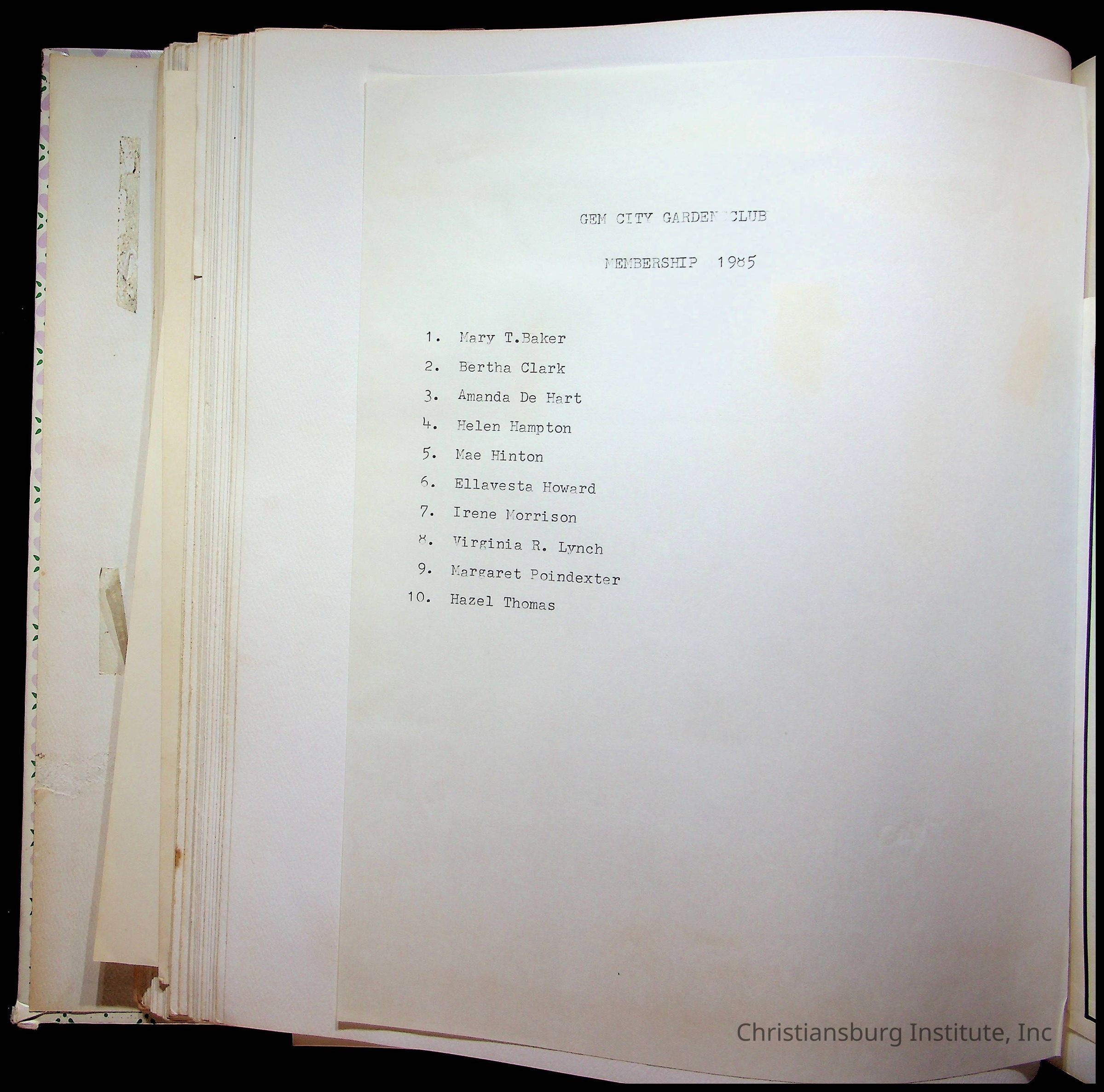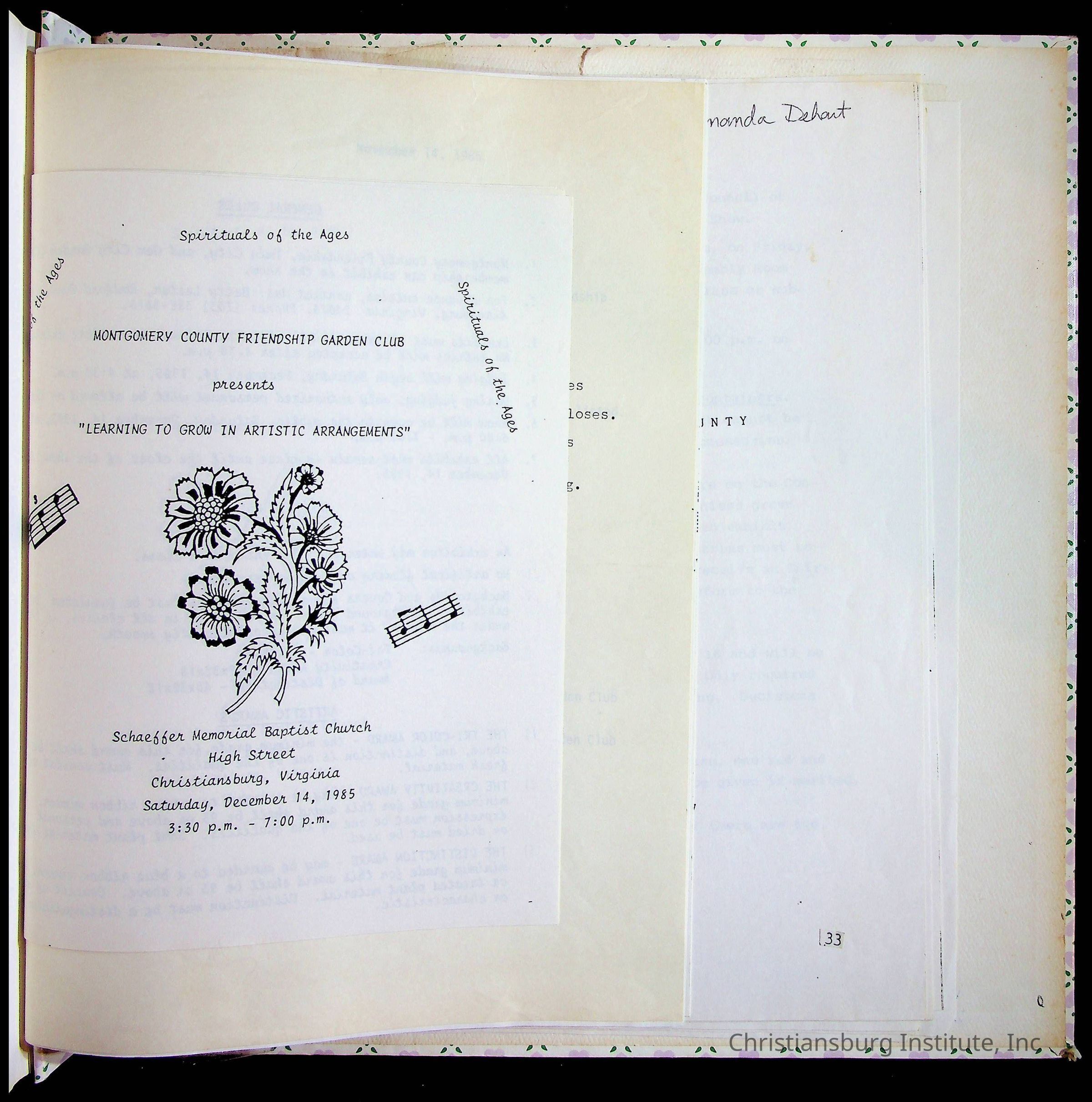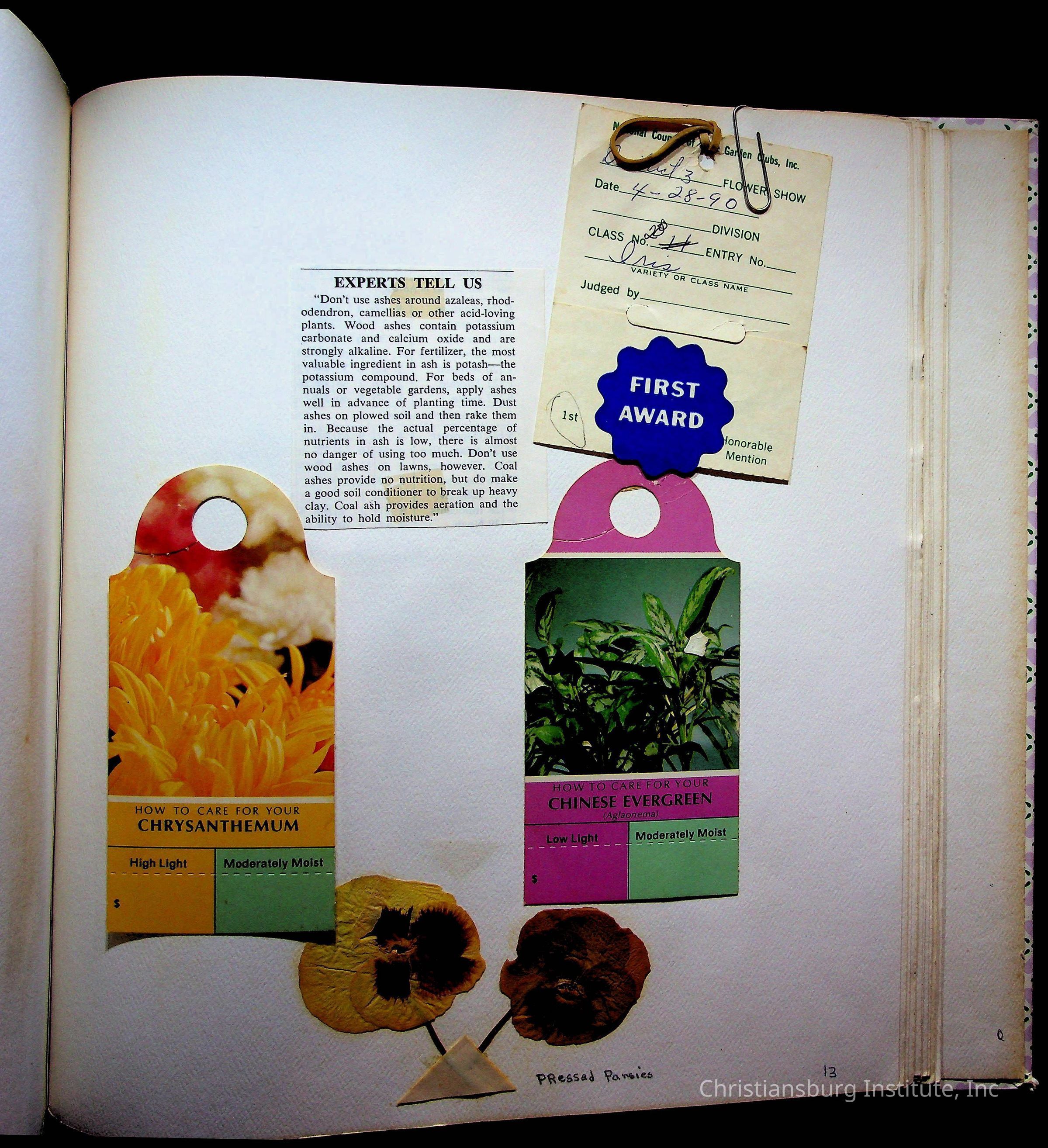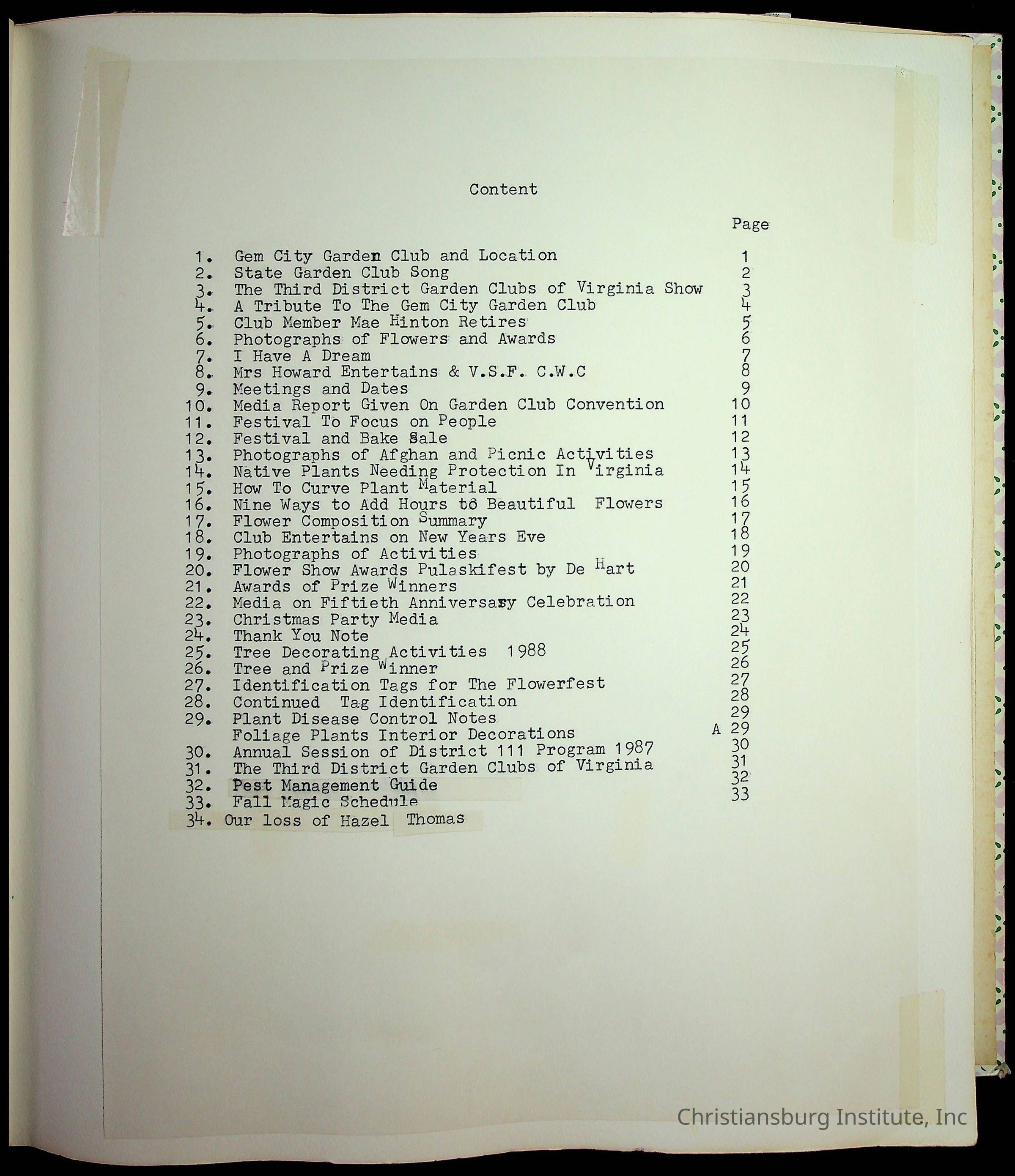 A scrapbook compiled by Amanda DeHart for the Gem City Garden Club of Pulaski, Virginia dated 1985-1989.