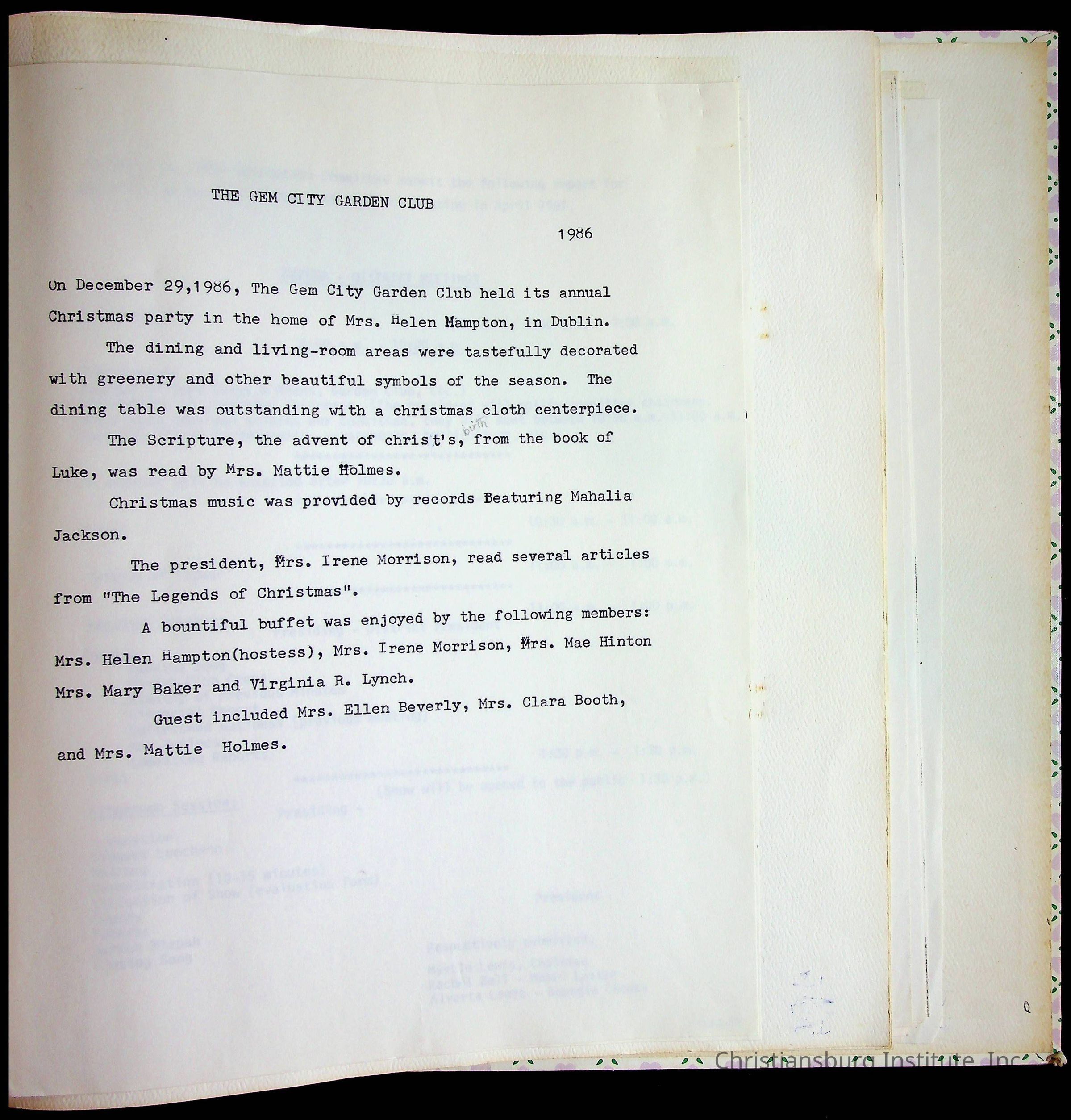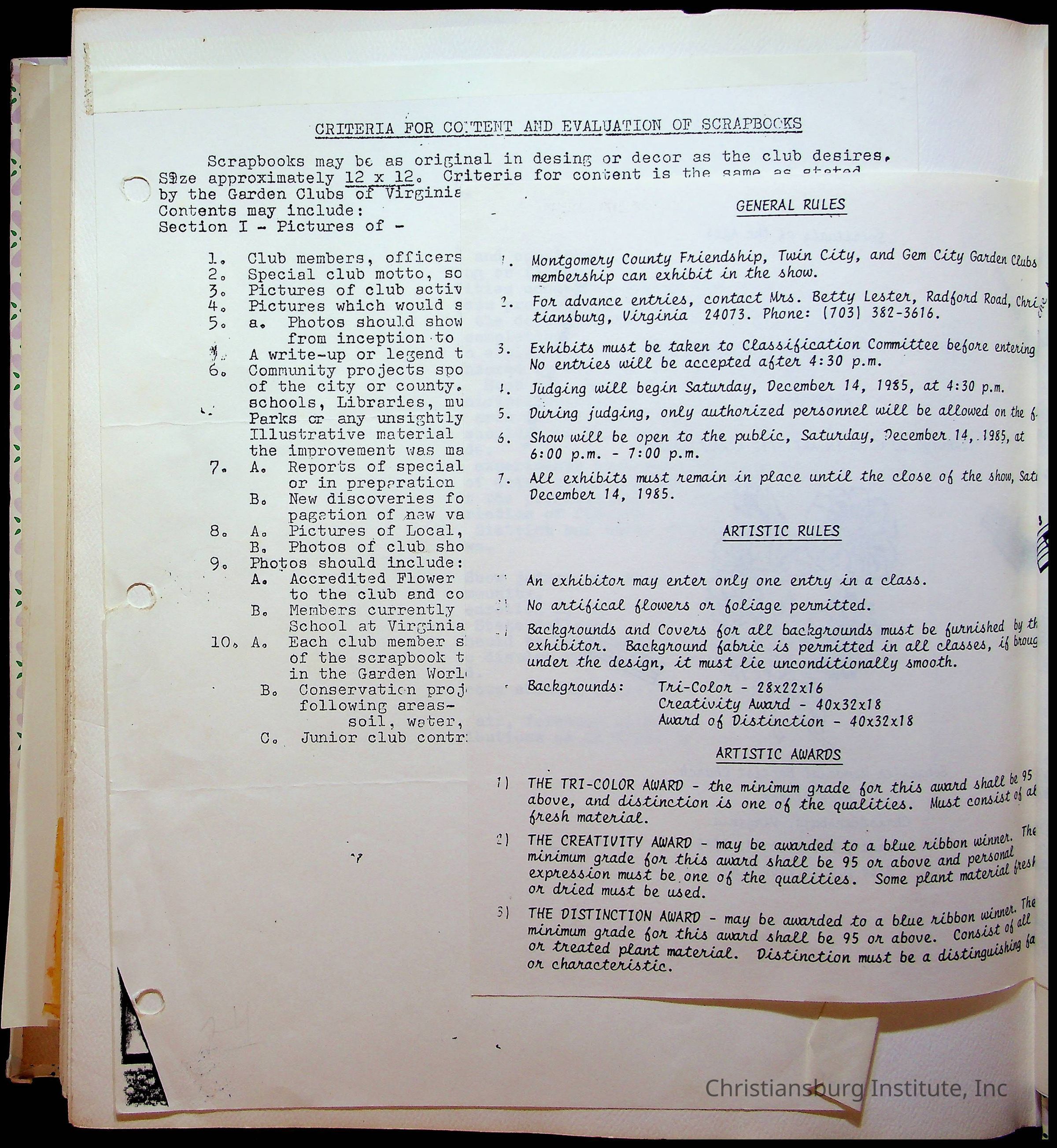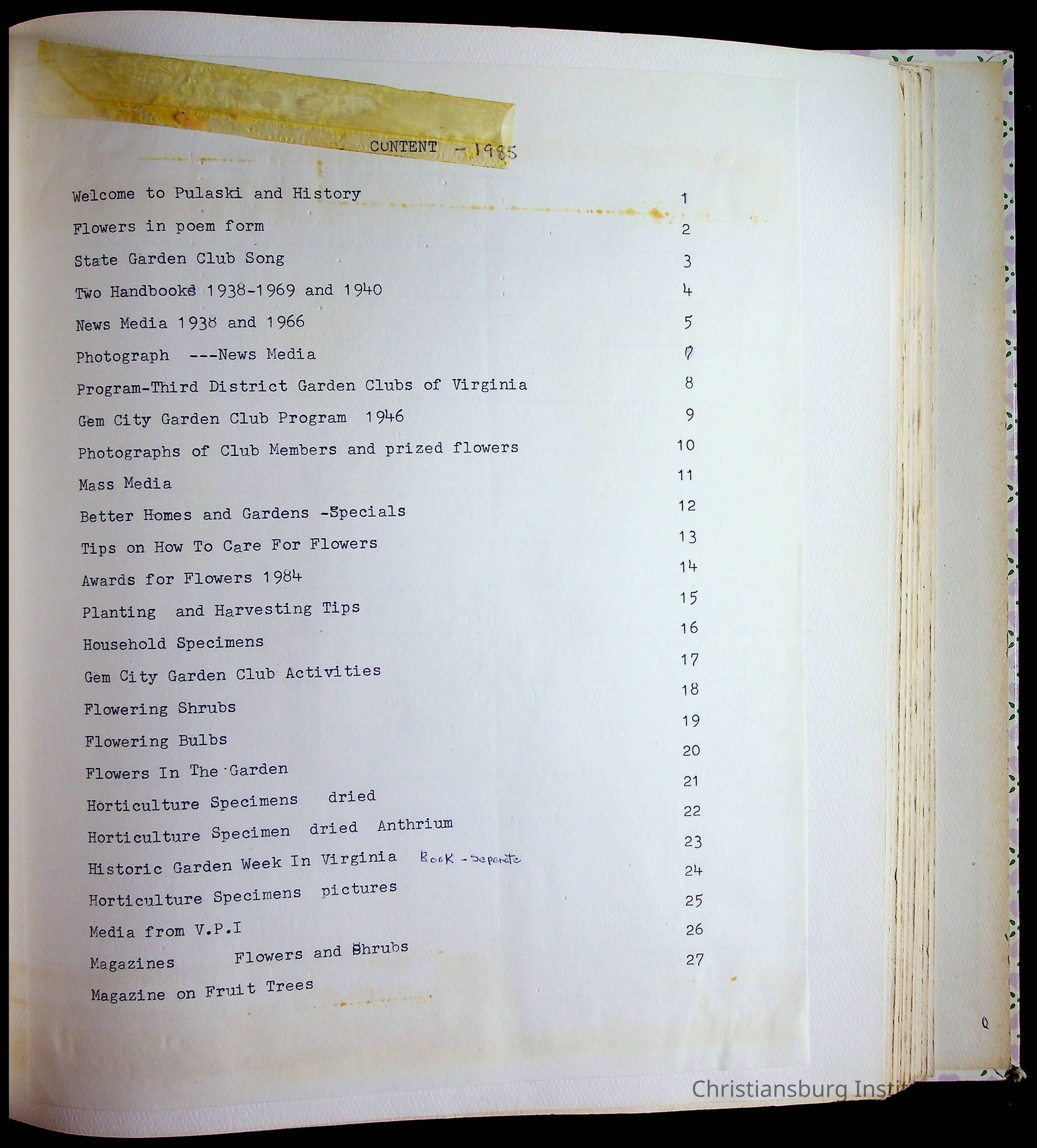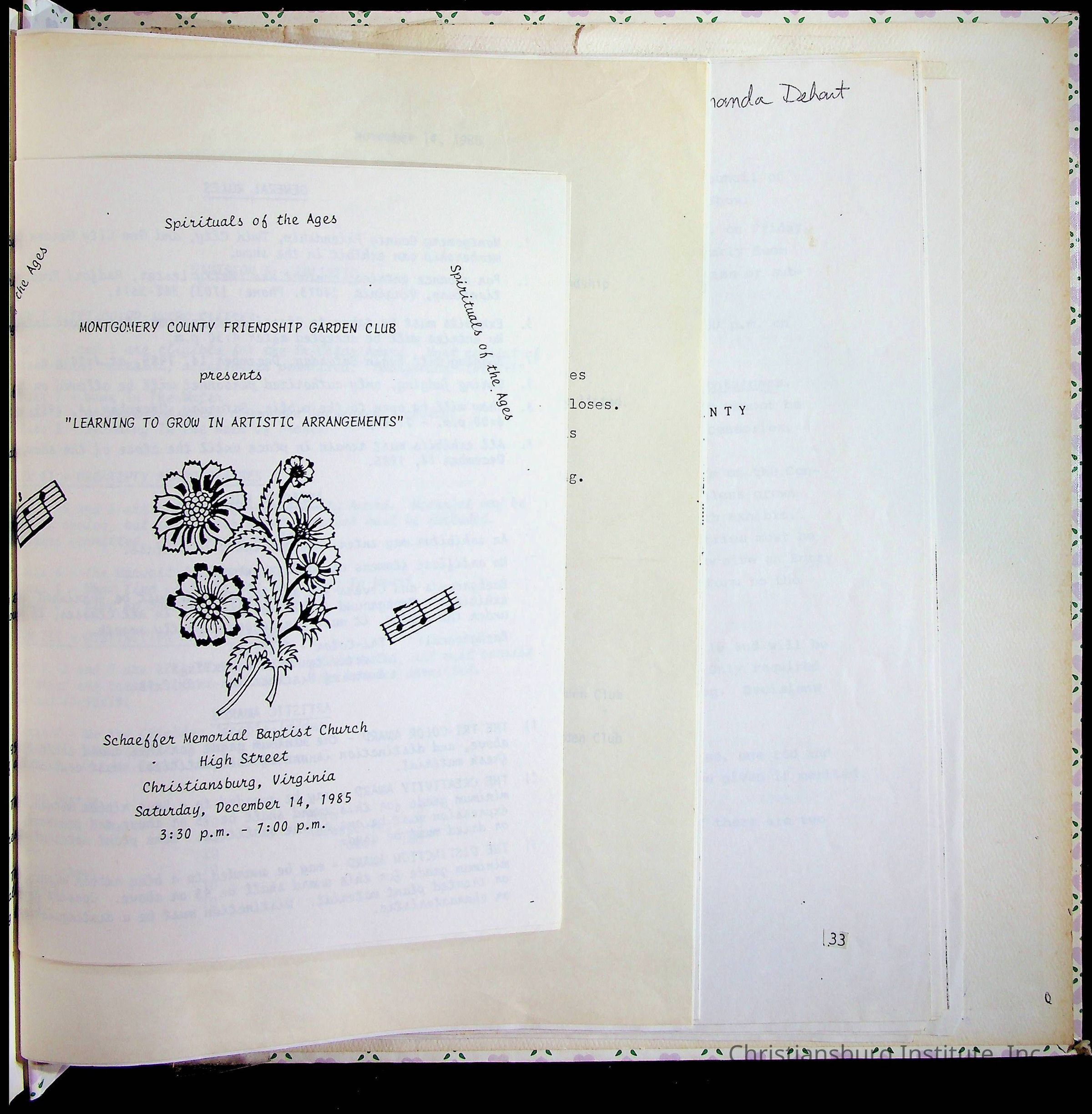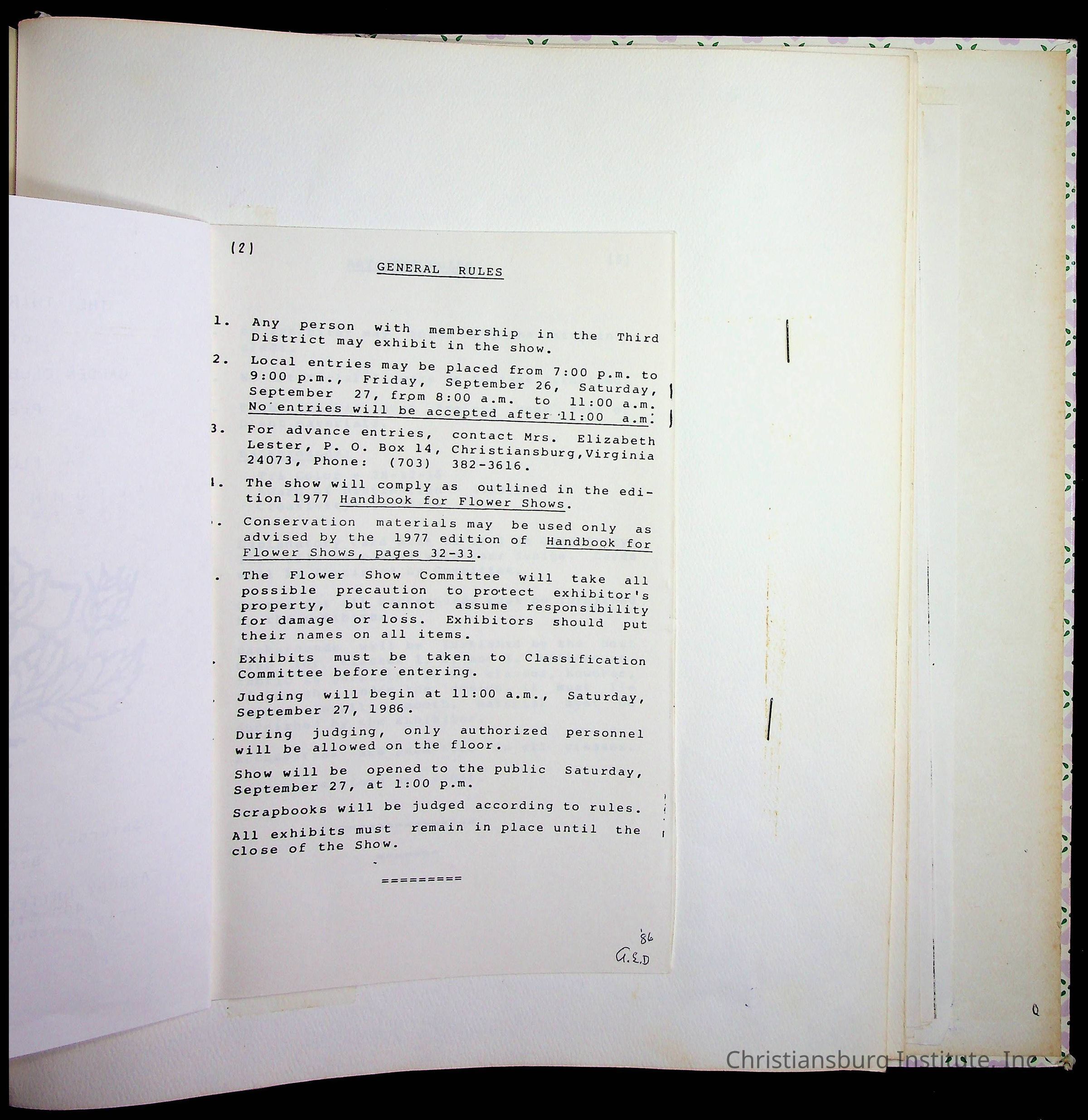 A scrapbook compiled by Amanda DeHart for the Gem City Garden Club of Pulaski, Virginia dated 1985-1989.