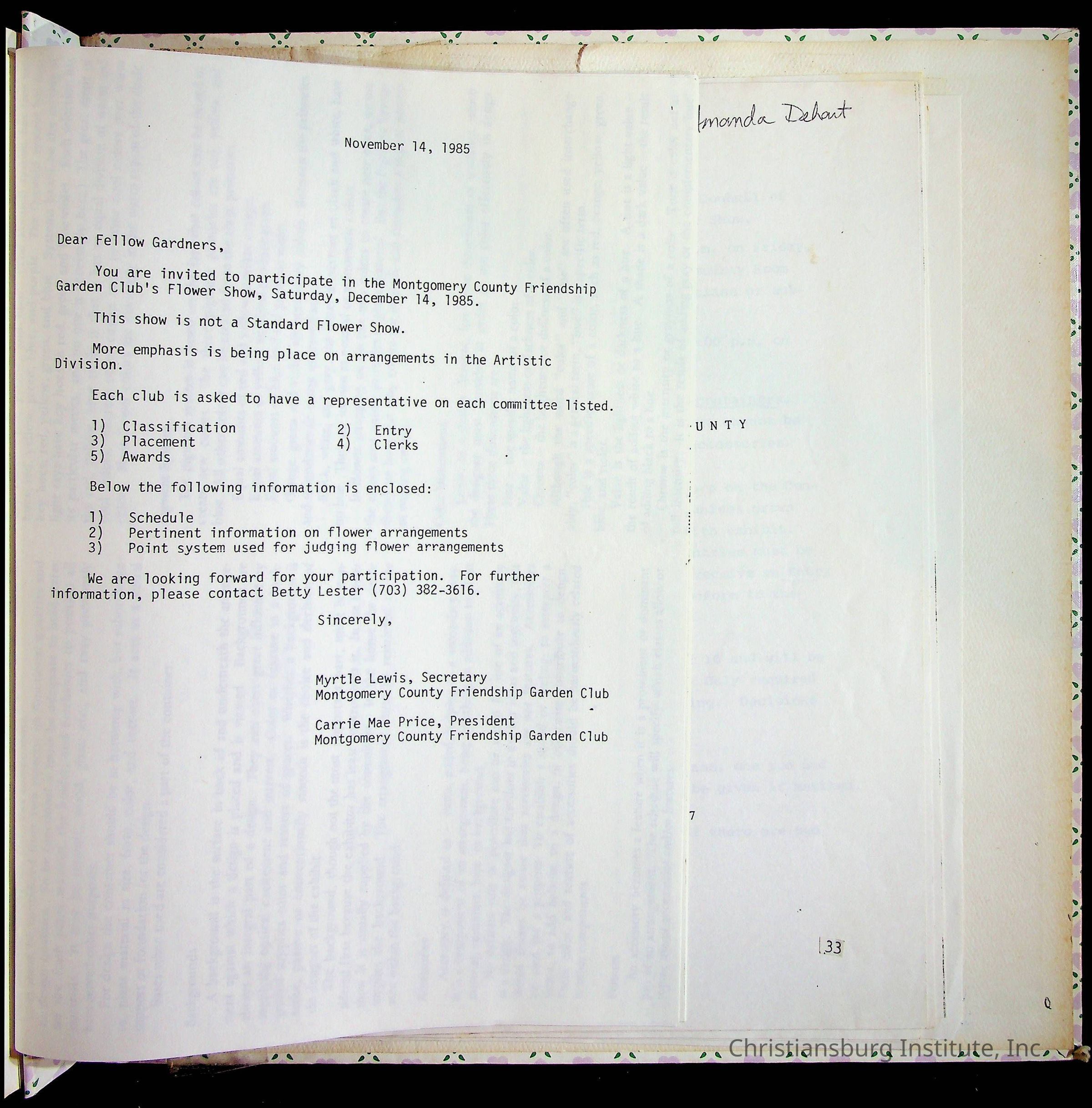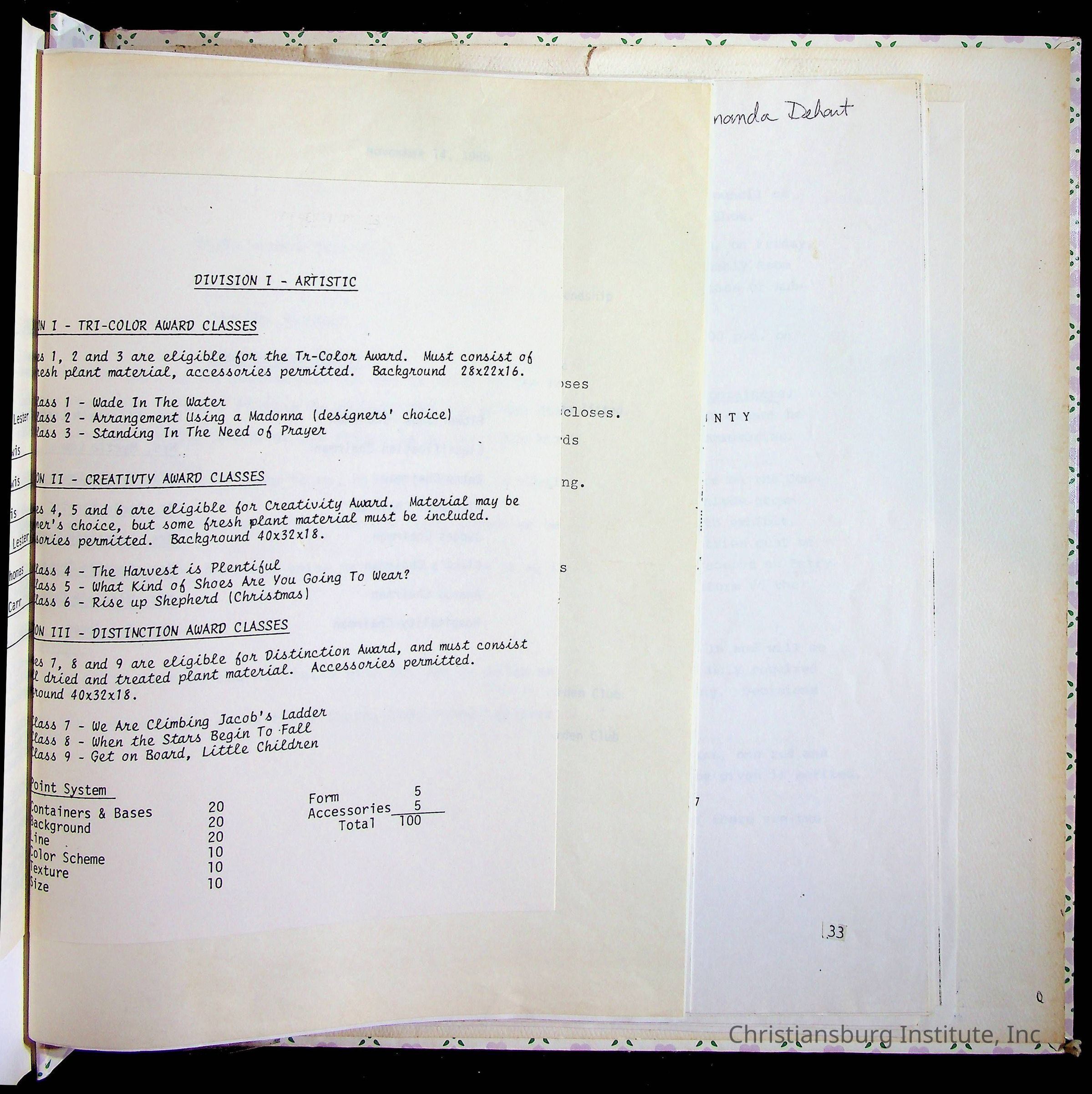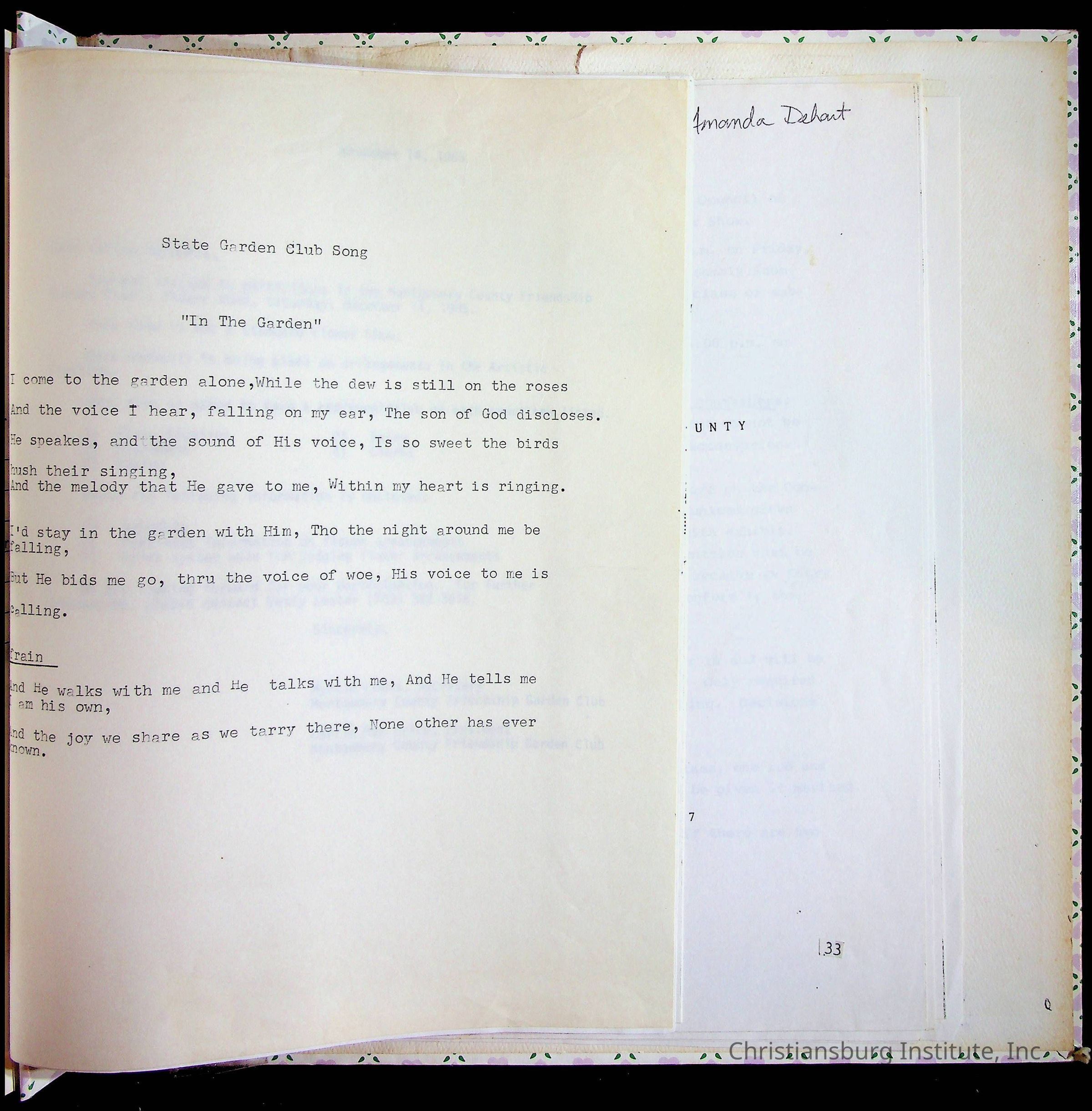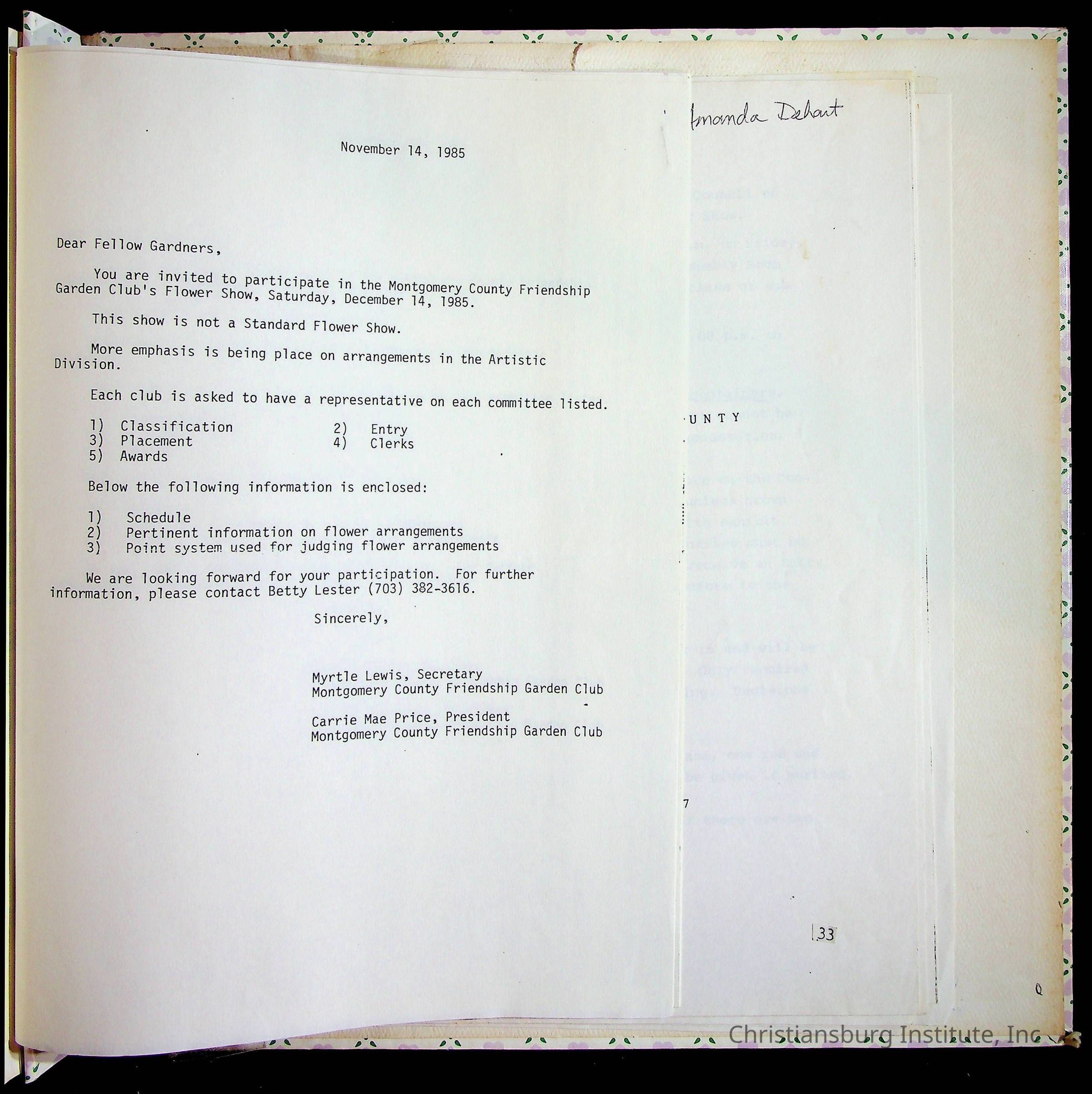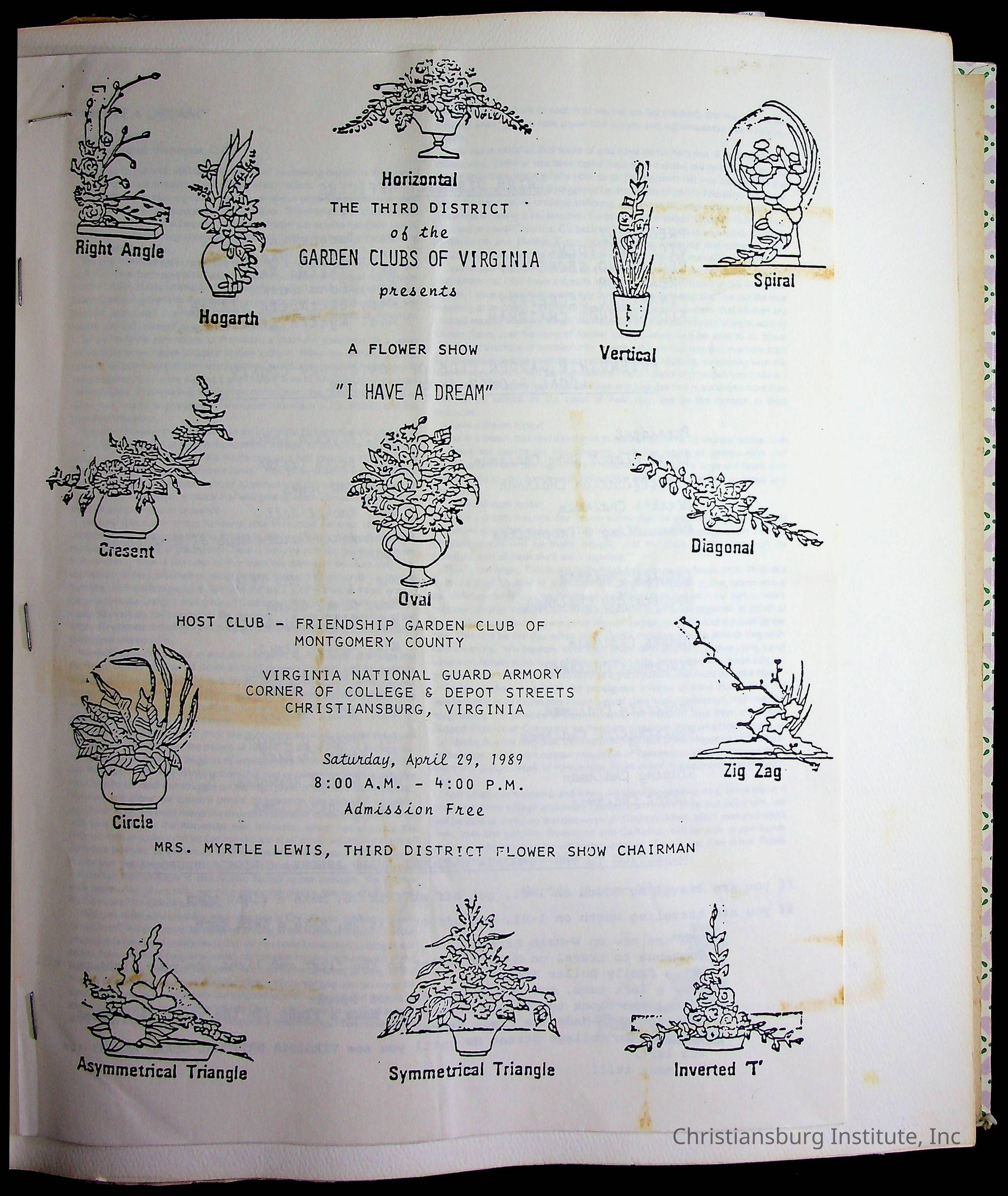 A scrapbook compiled by Amanda DeHart for the Gem City Garden Club of Pulaski, Virginia dated 1985-1989.
