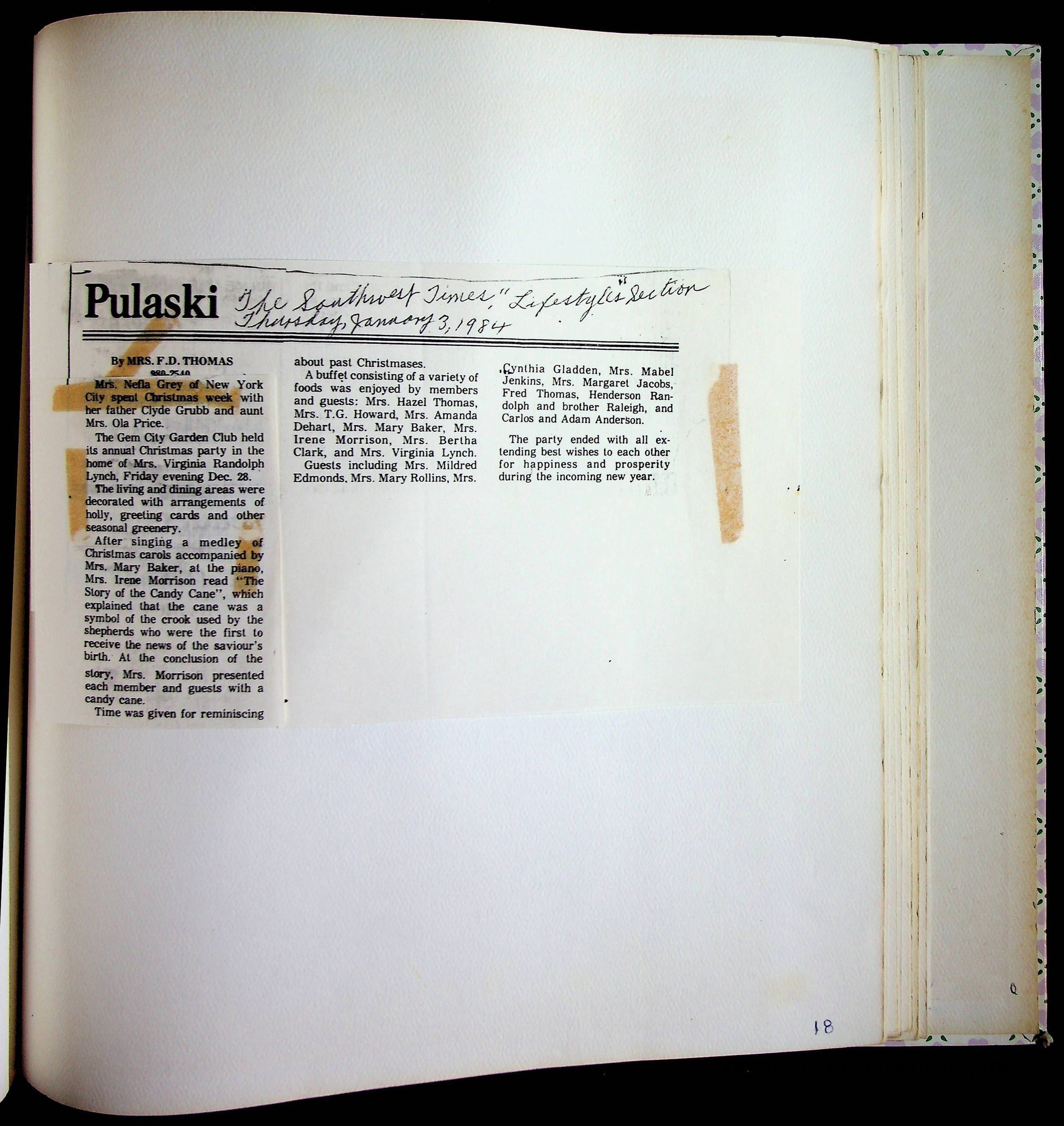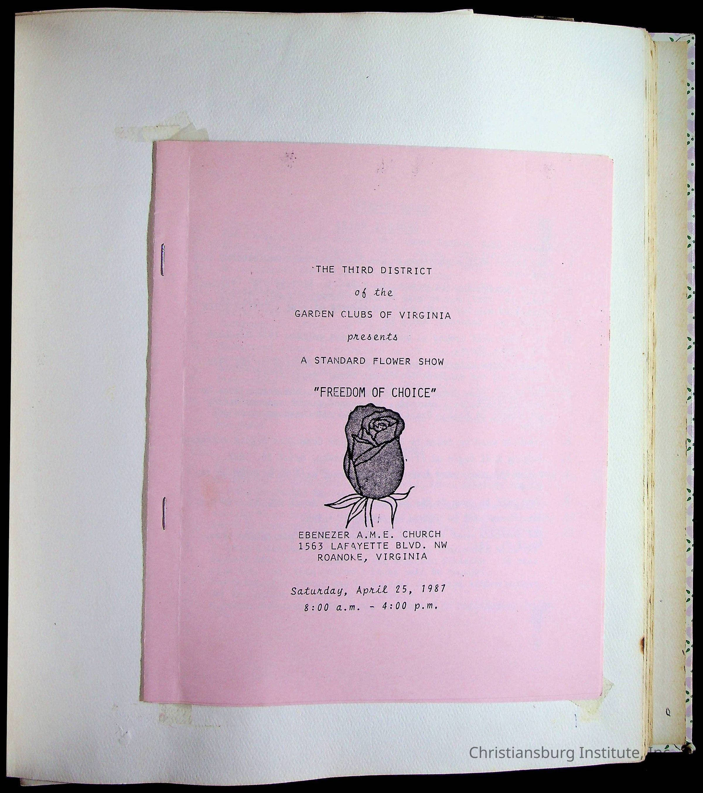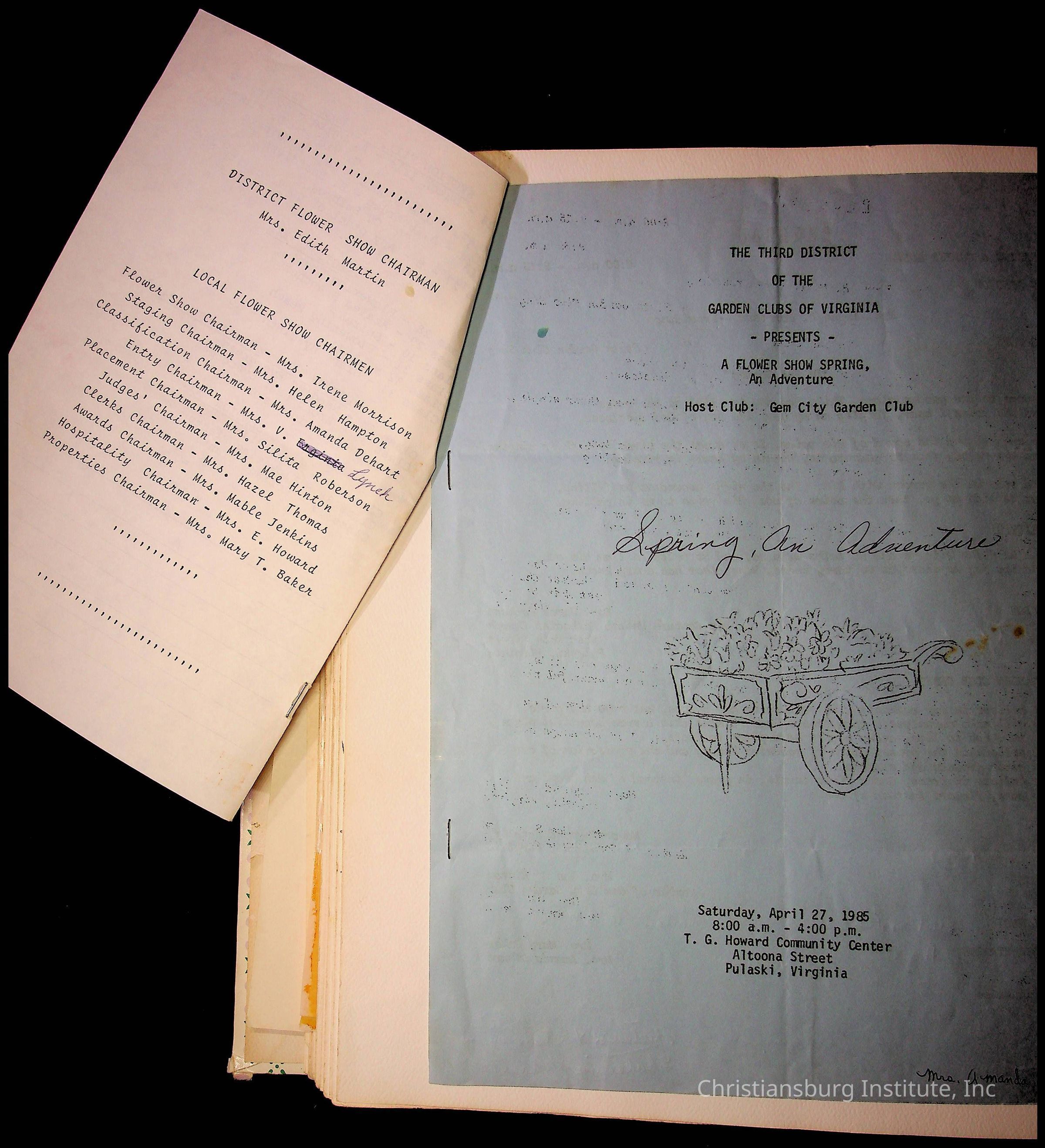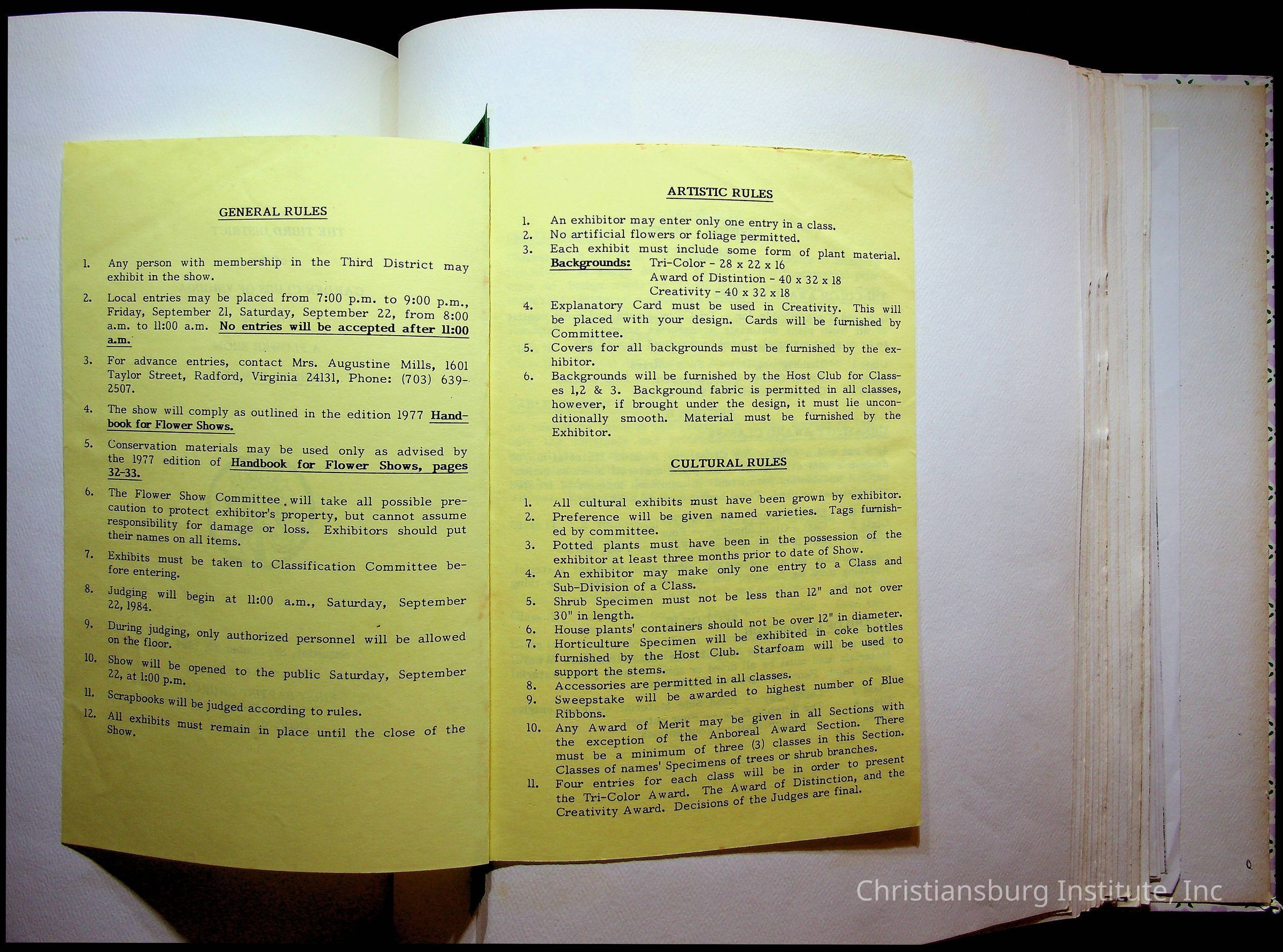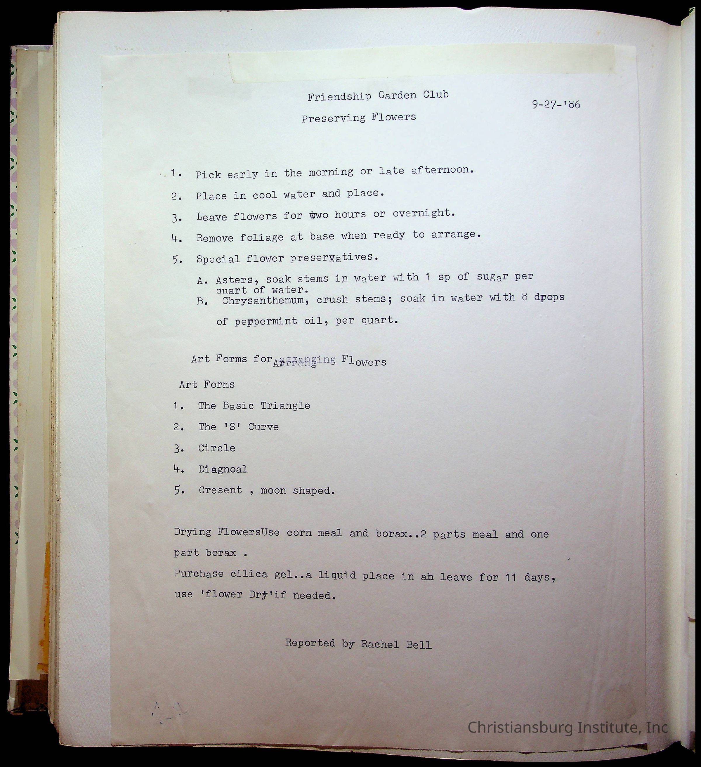 A scrapbook compiled by Amanda DeHart for the Gem City Garden Club of Pulaski, Virginia dated 1985-1989.