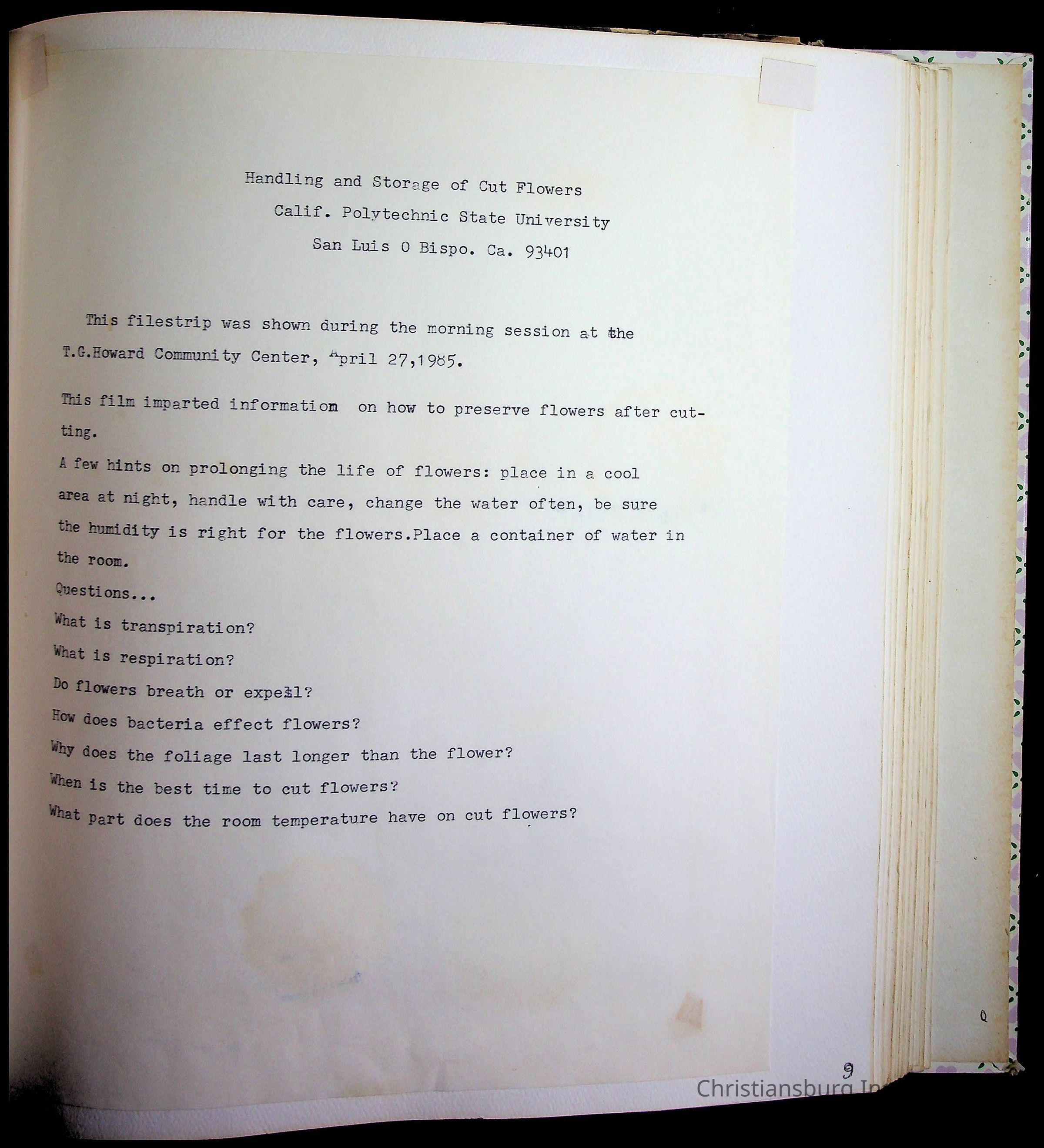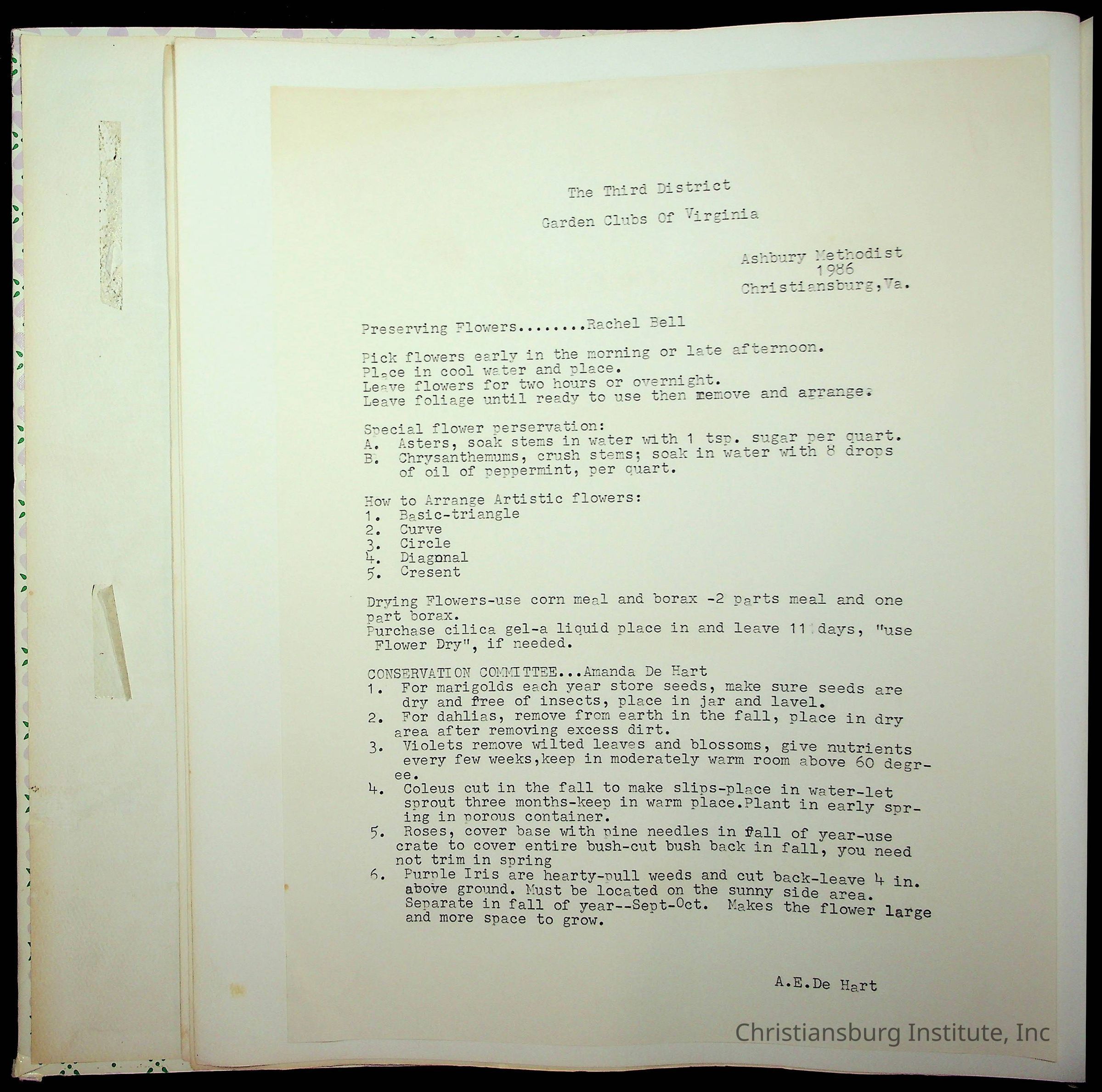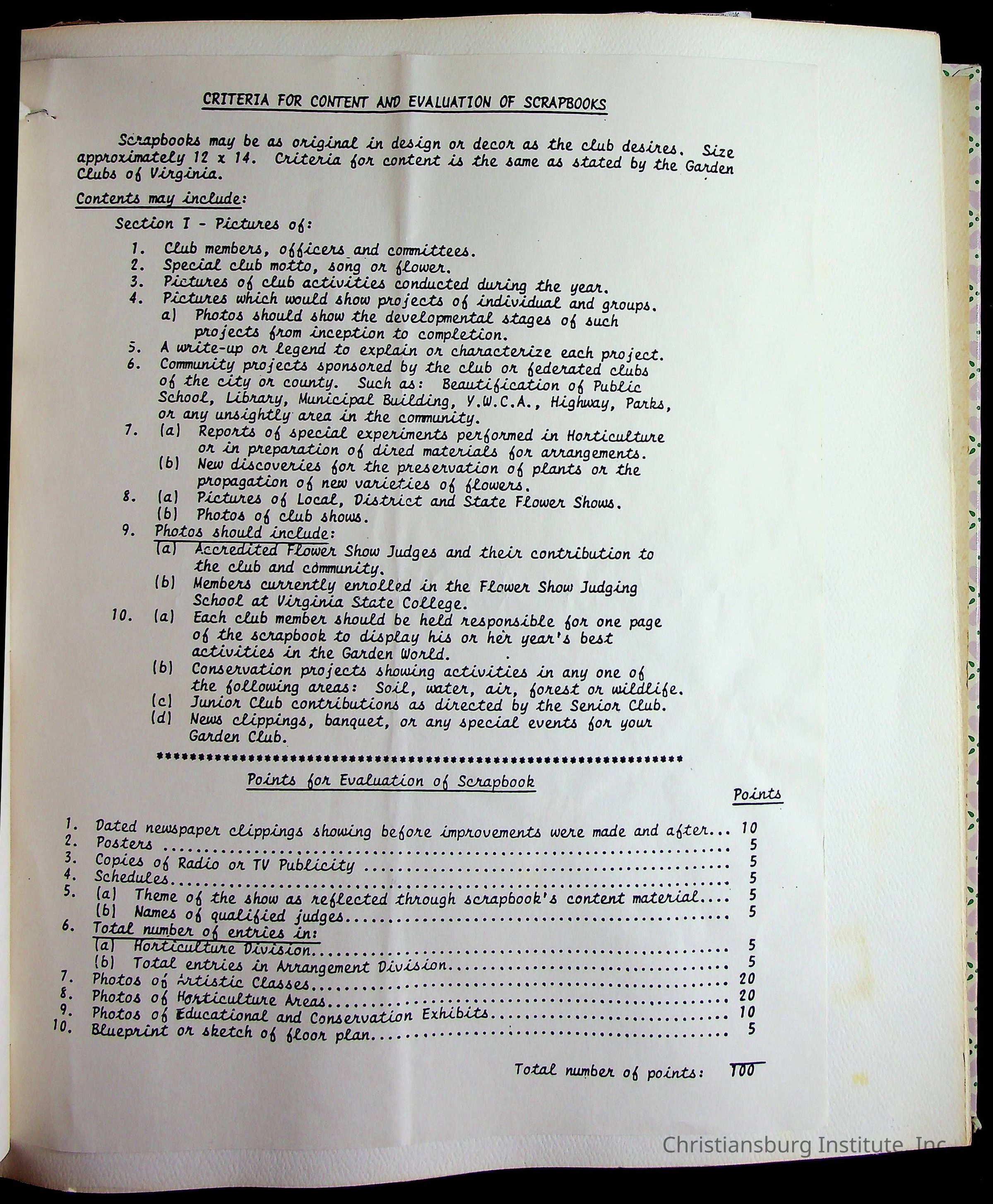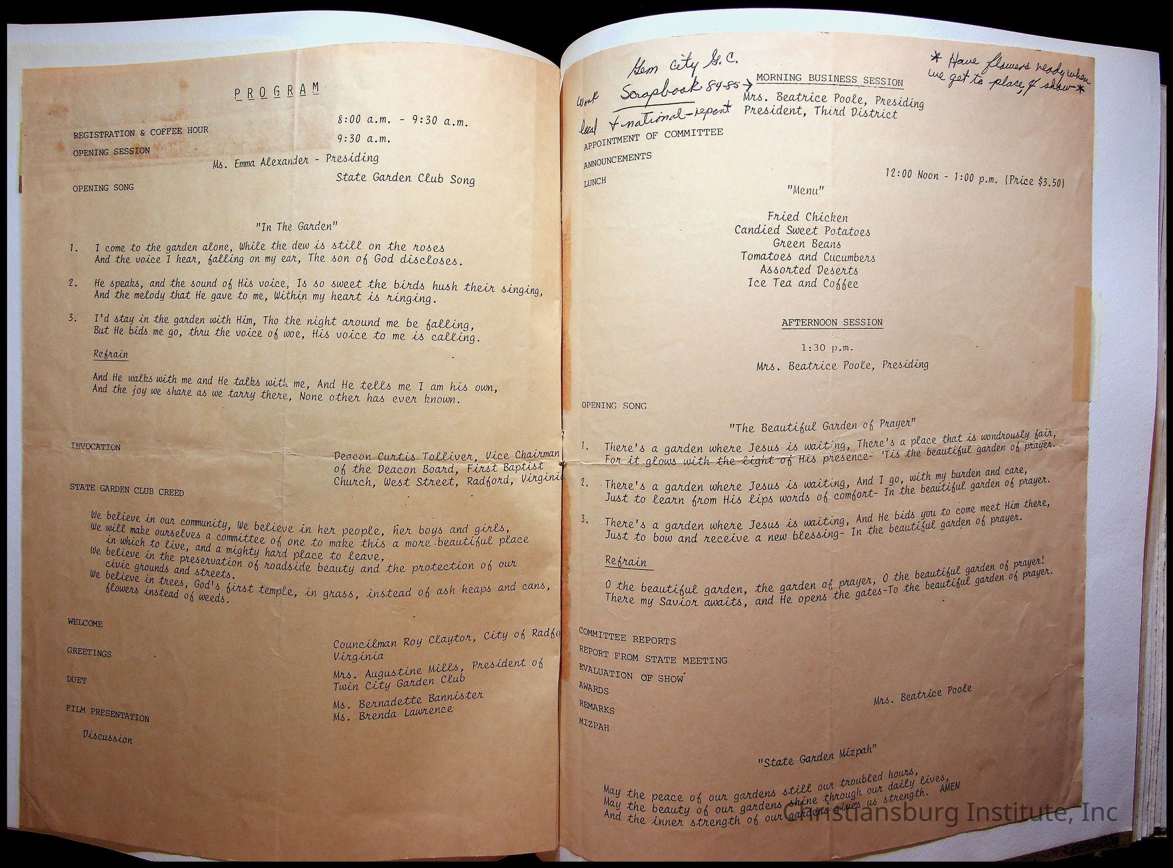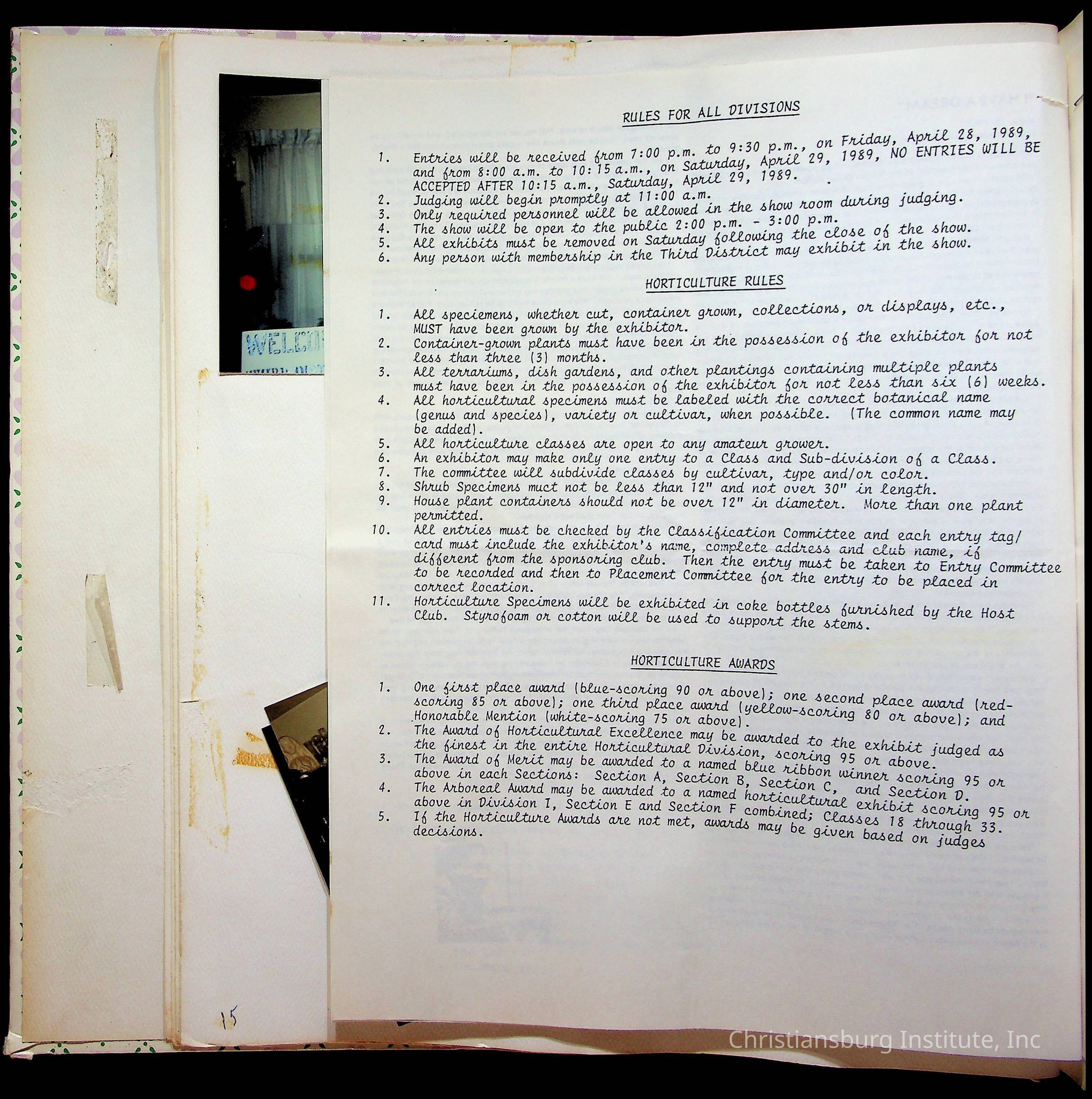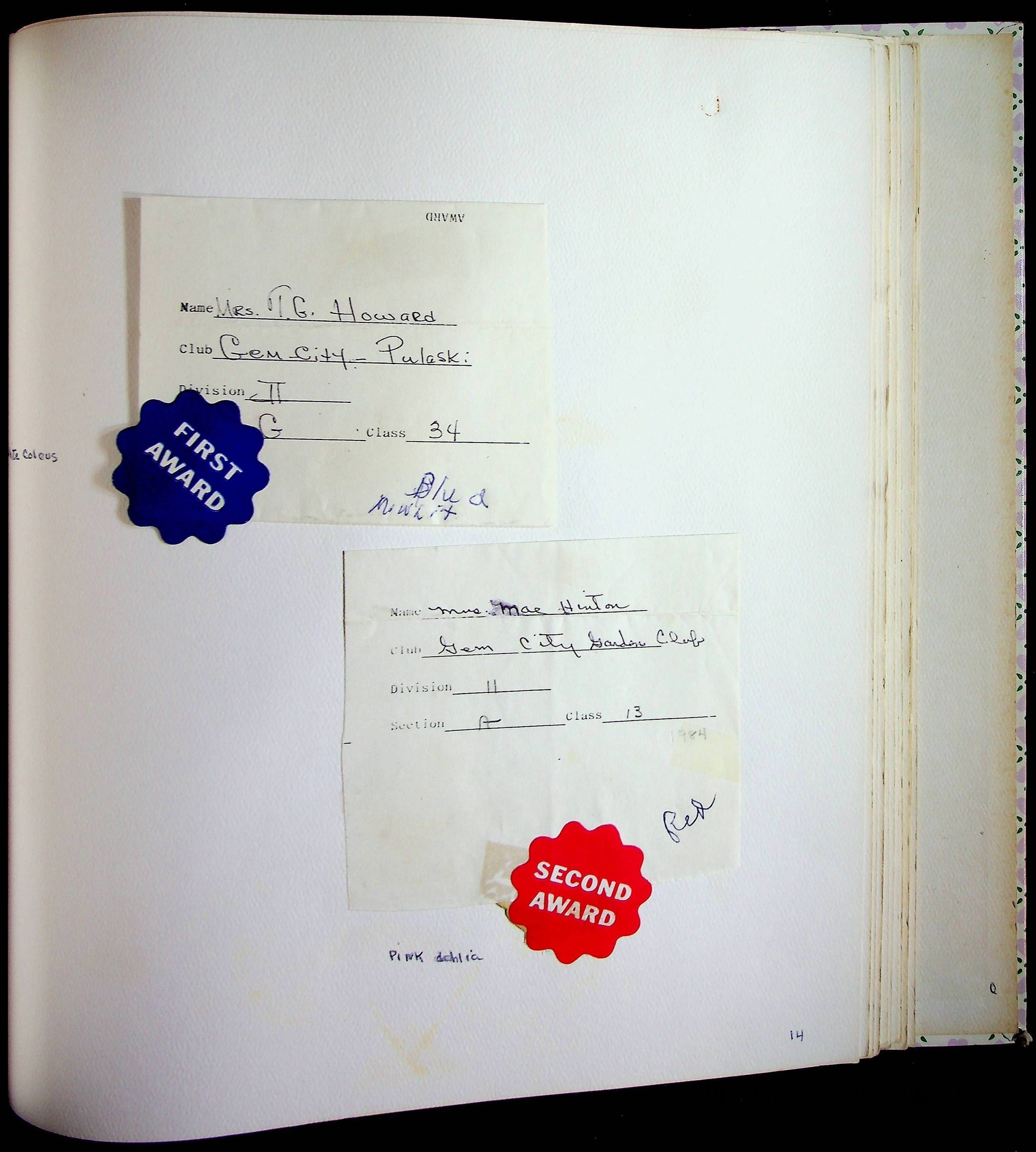 A scrapbook compiled by Amanda DeHart for the Gem City Garden Club of Pulaski, Virginia dated 1985-1989.