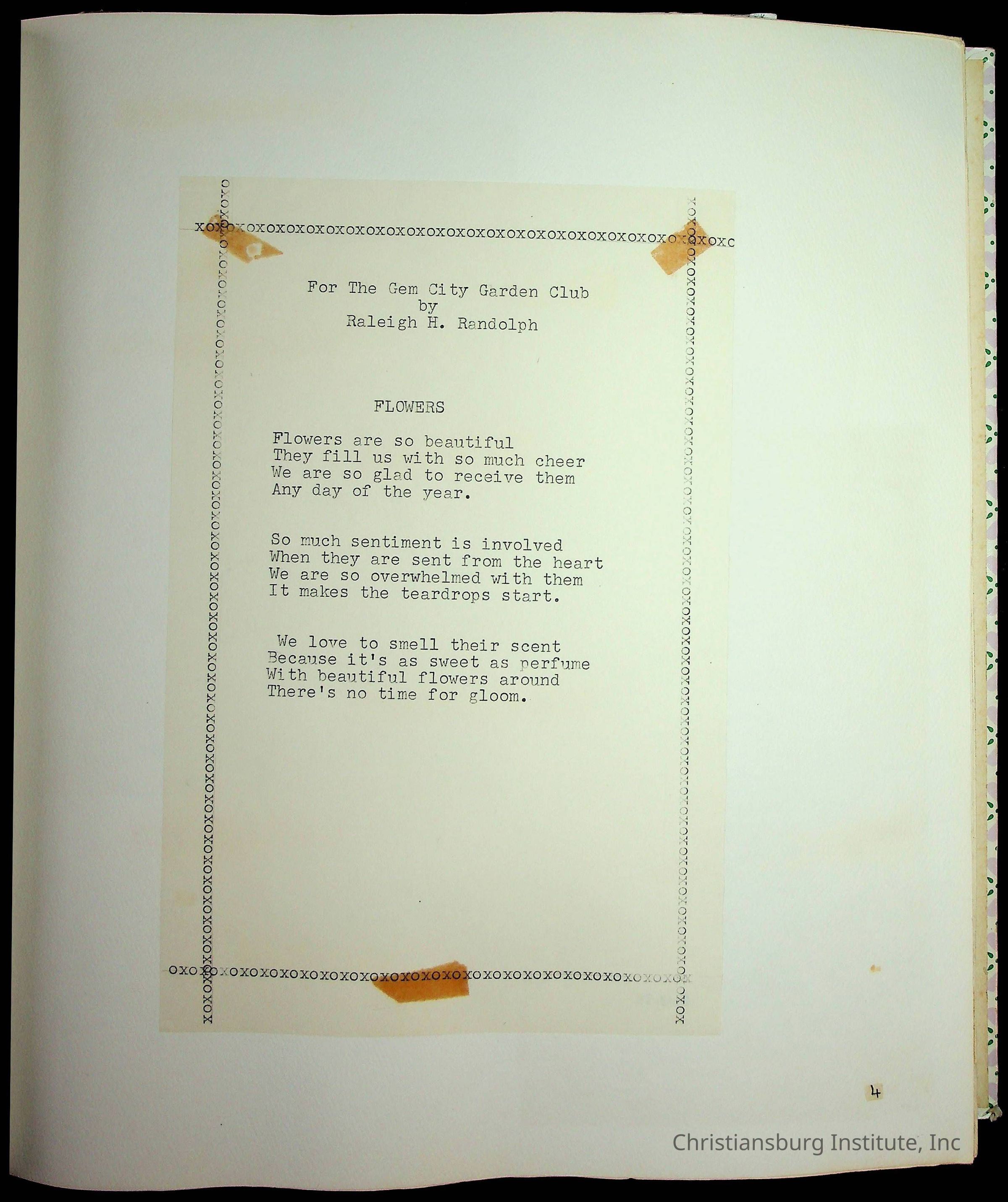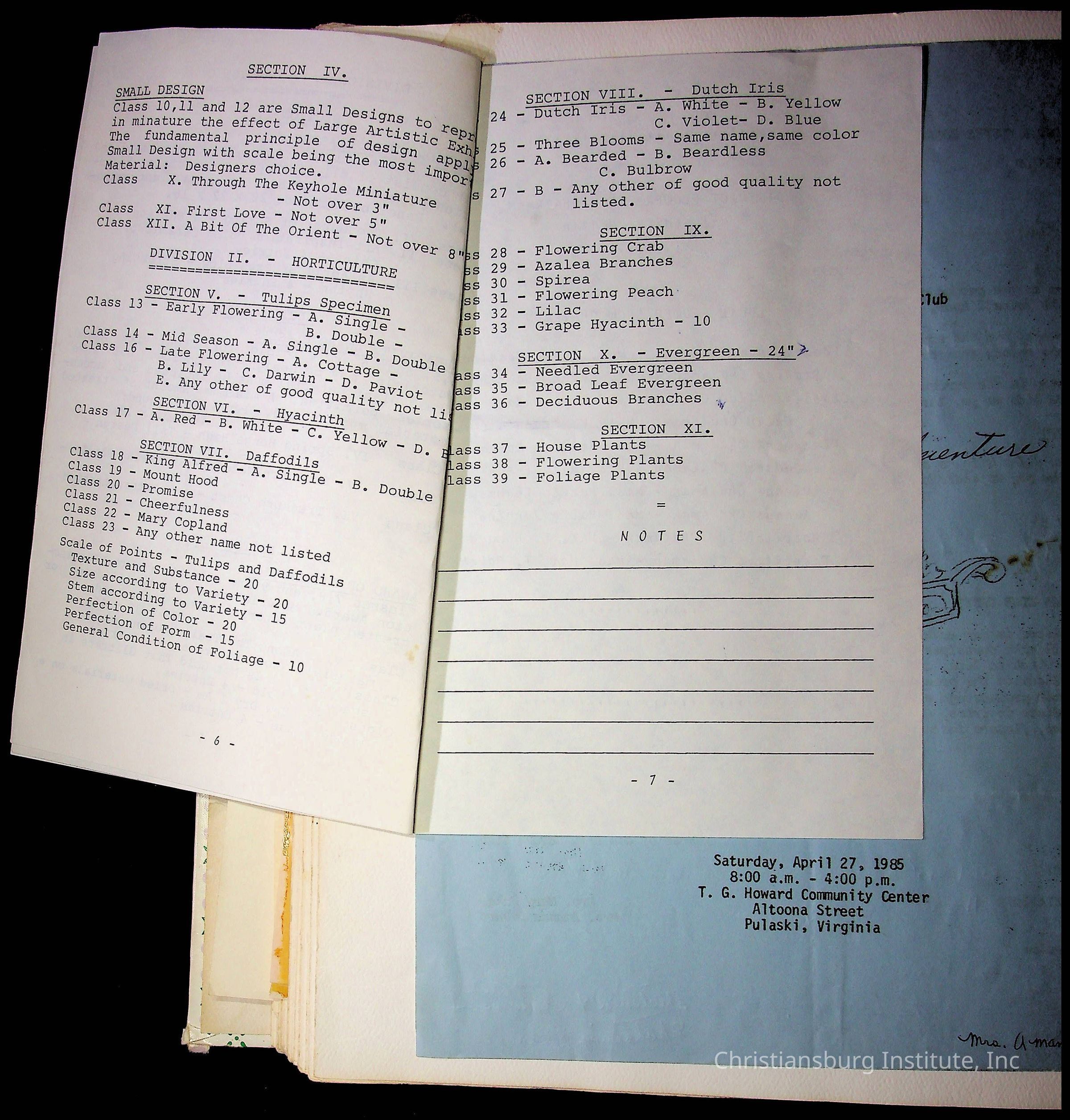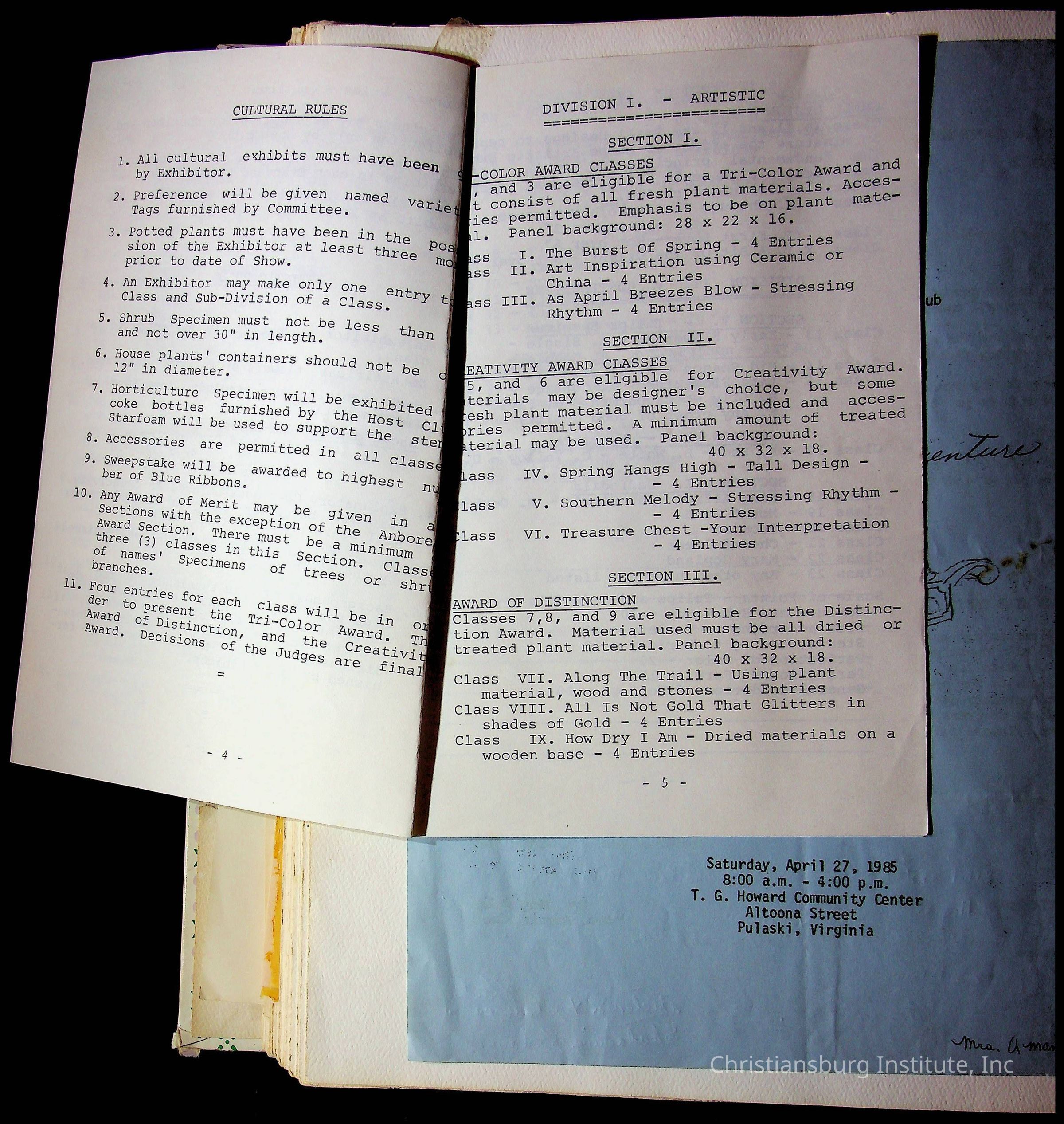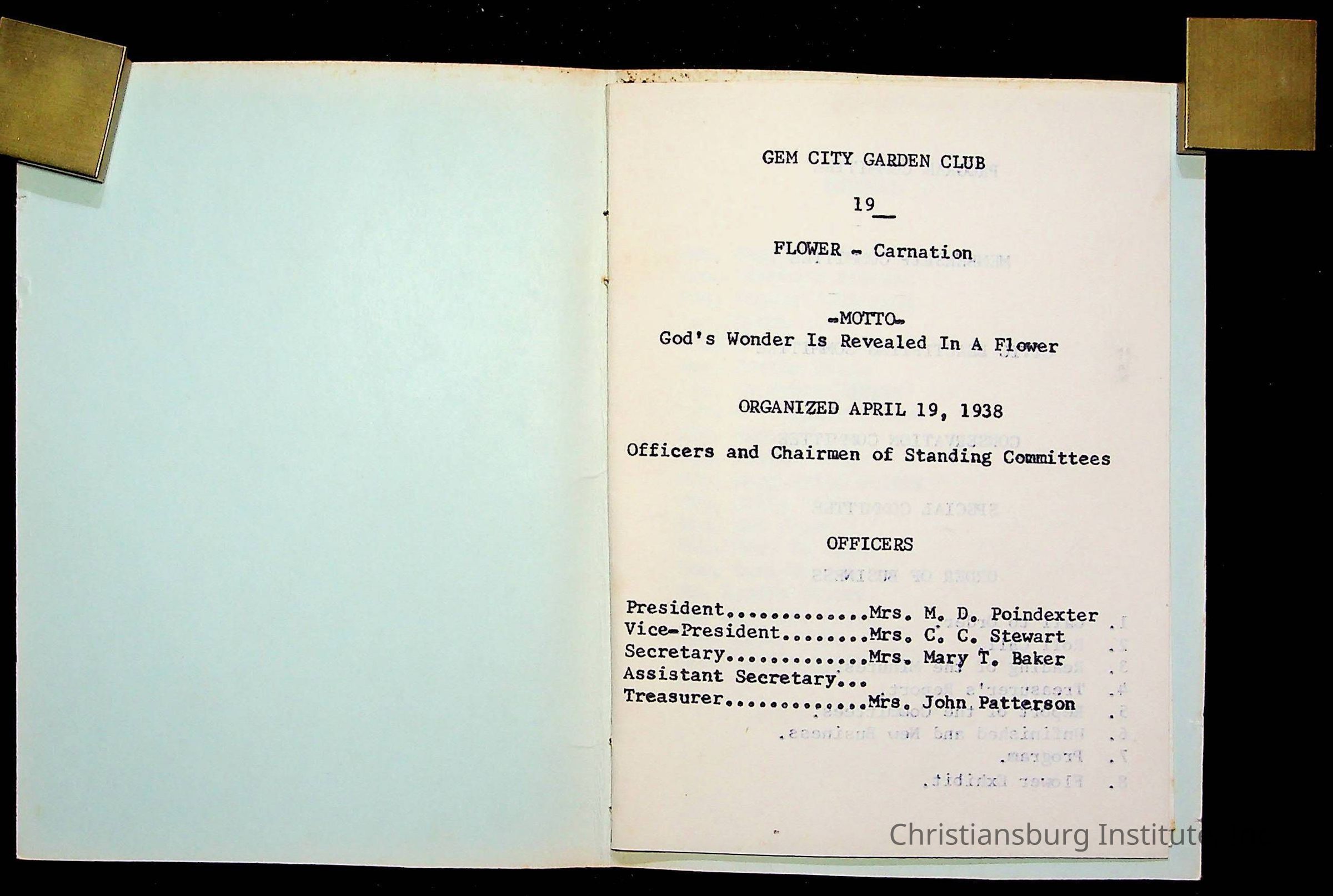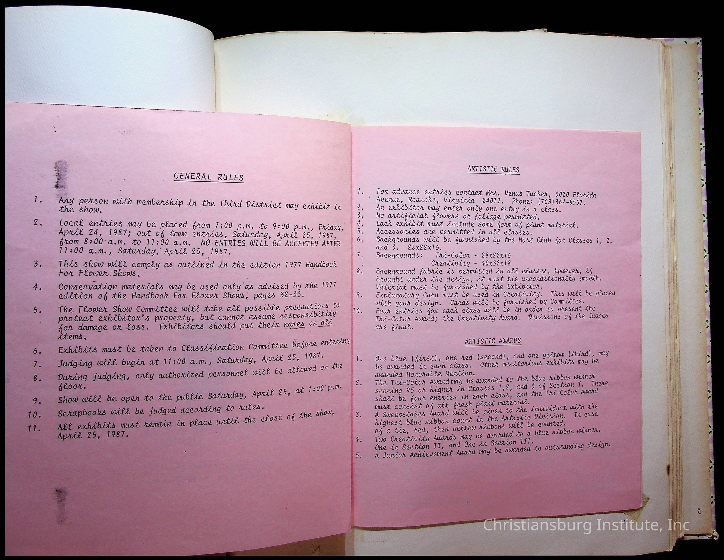 A scrapbook compiled by Amanda DeHart for the Gem City Garden Club of Pulaski, Virginia dated 1985-1989.