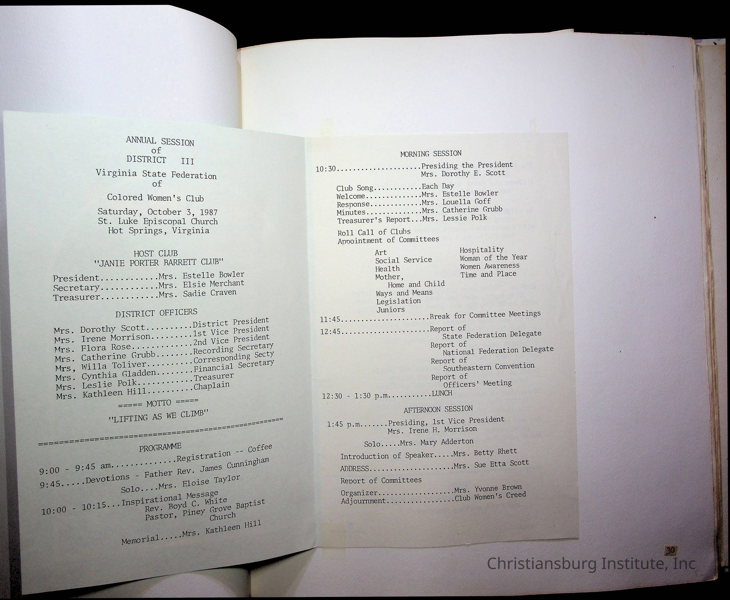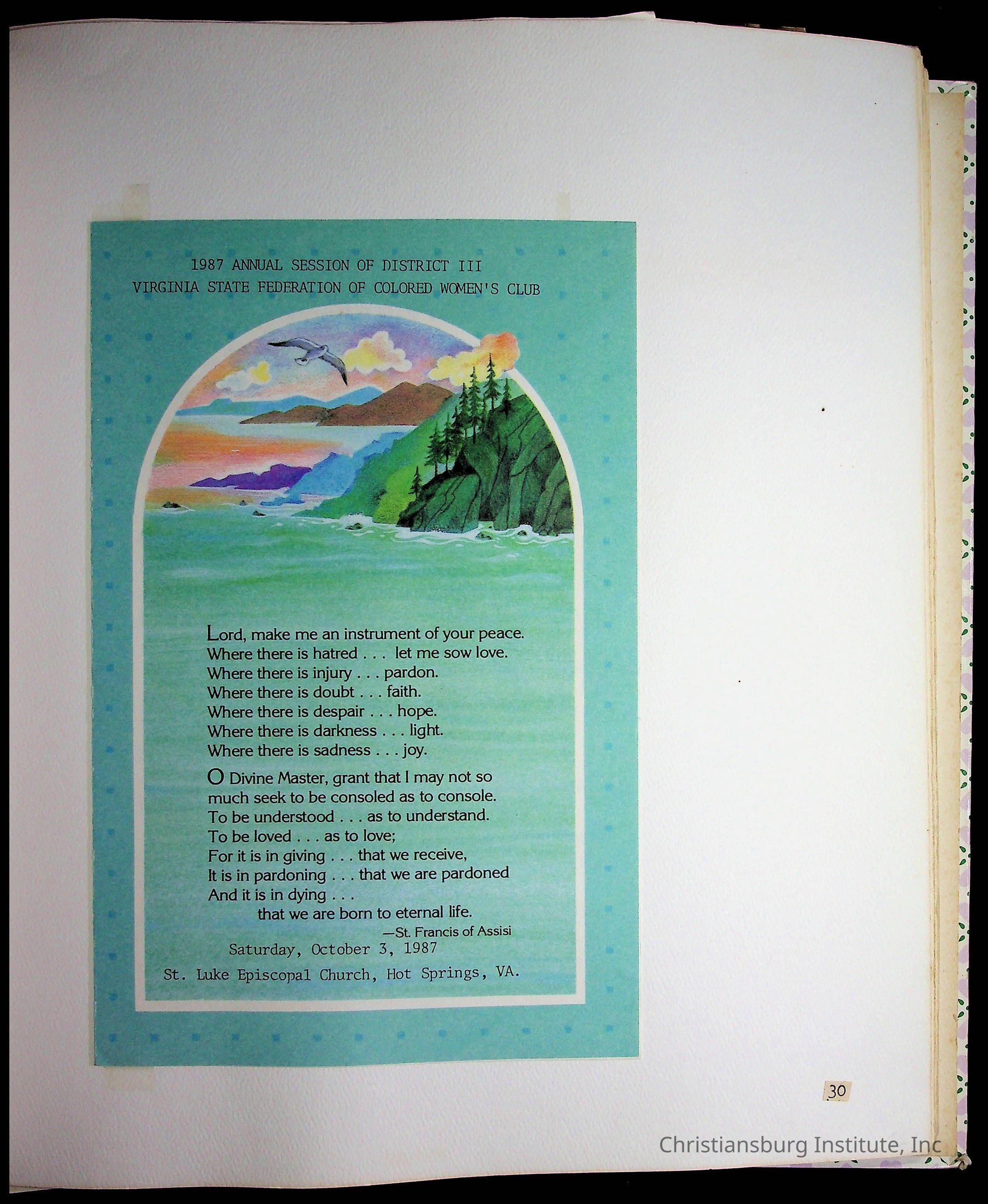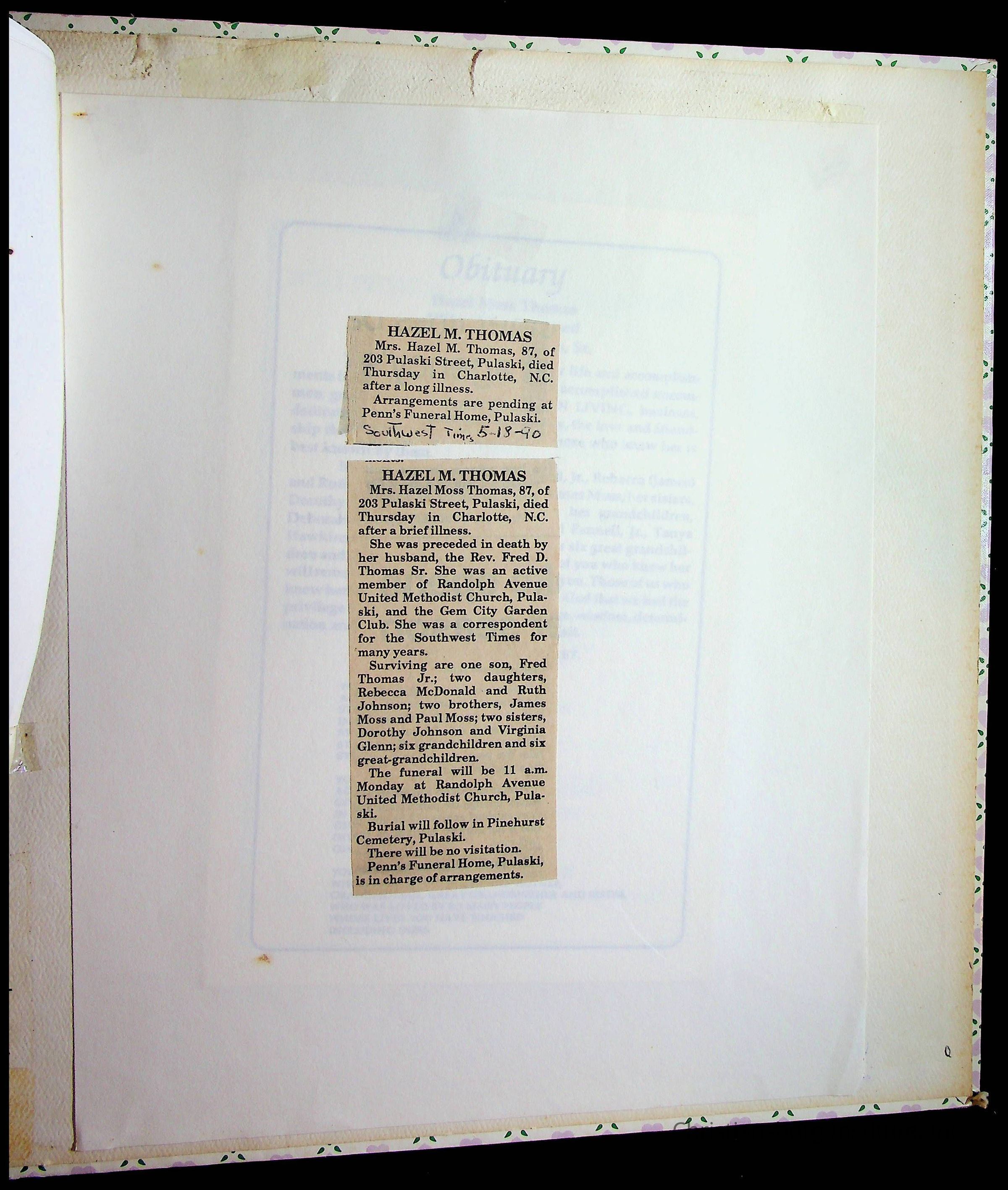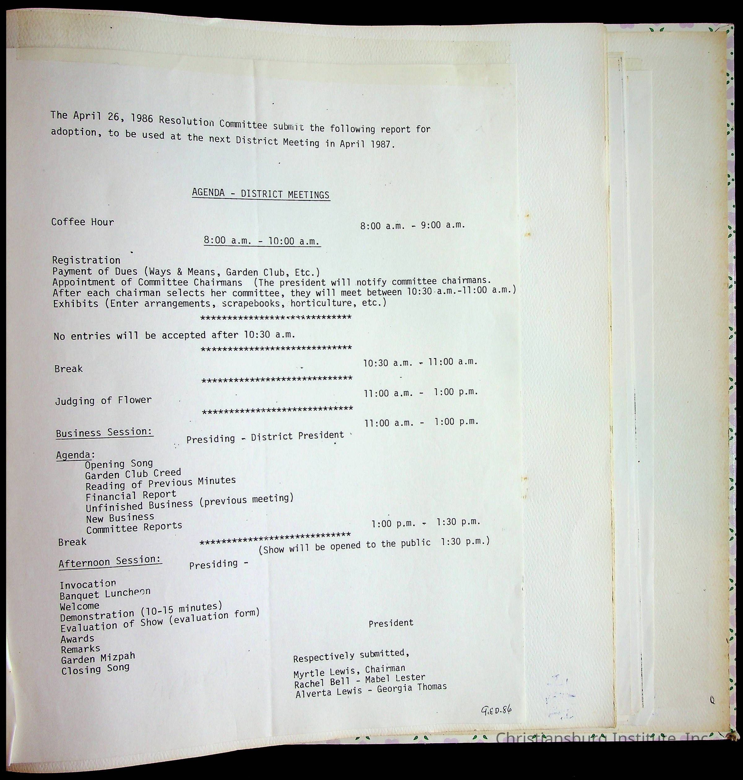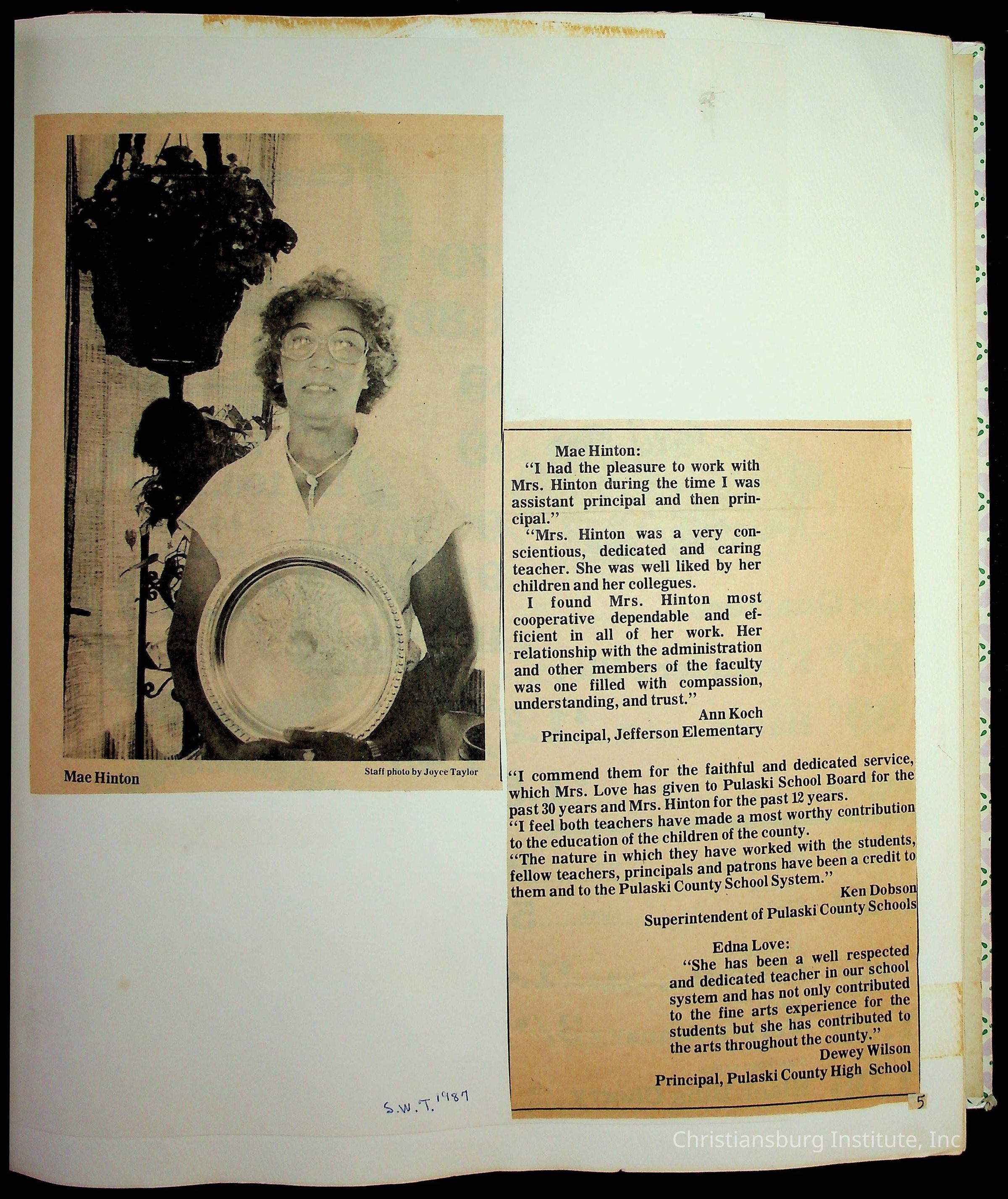 A scrapbook compiled by Amanda DeHart for the Gem City Garden Club of Pulaski, Virginia dated 1985-1989.
