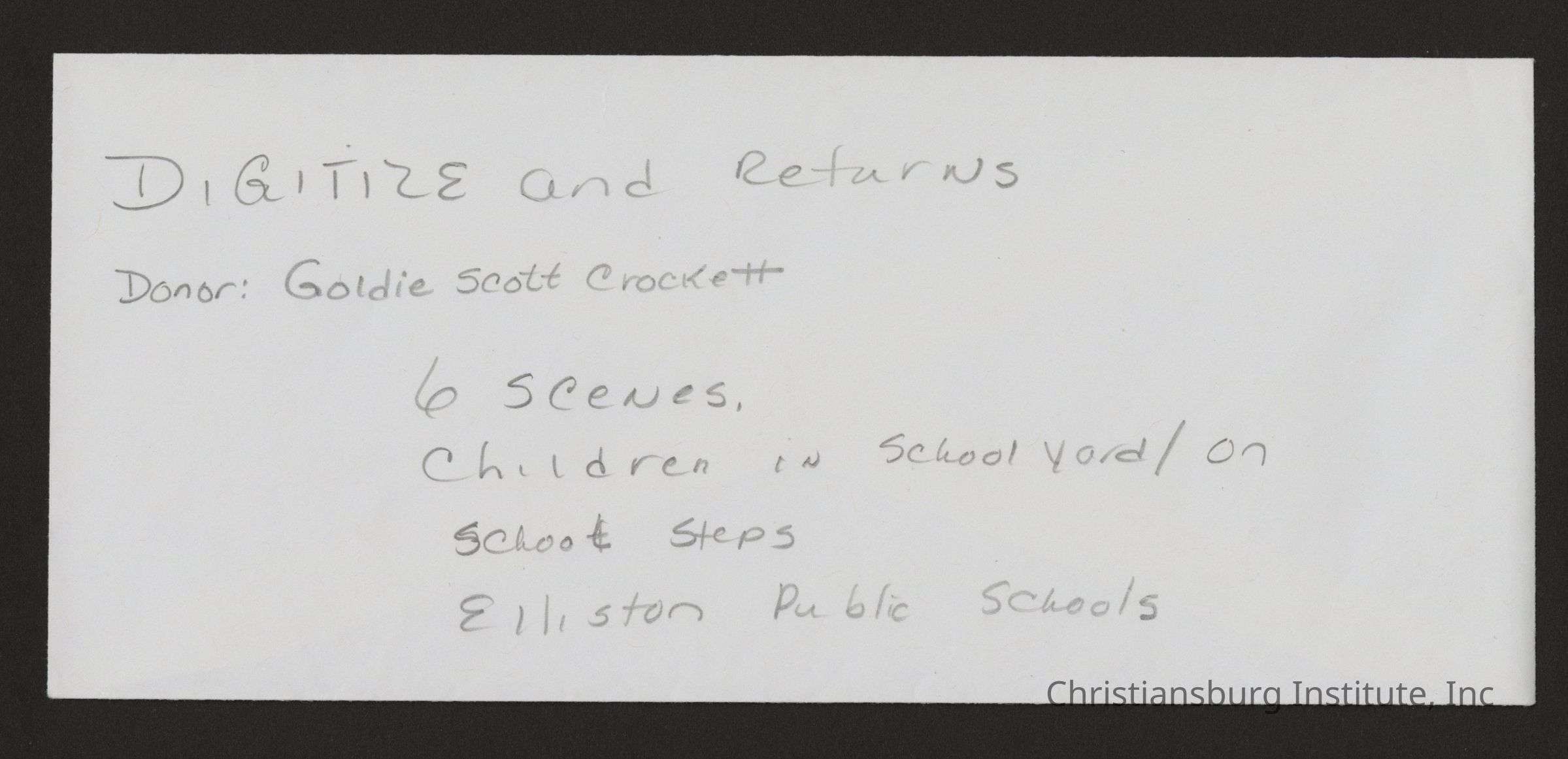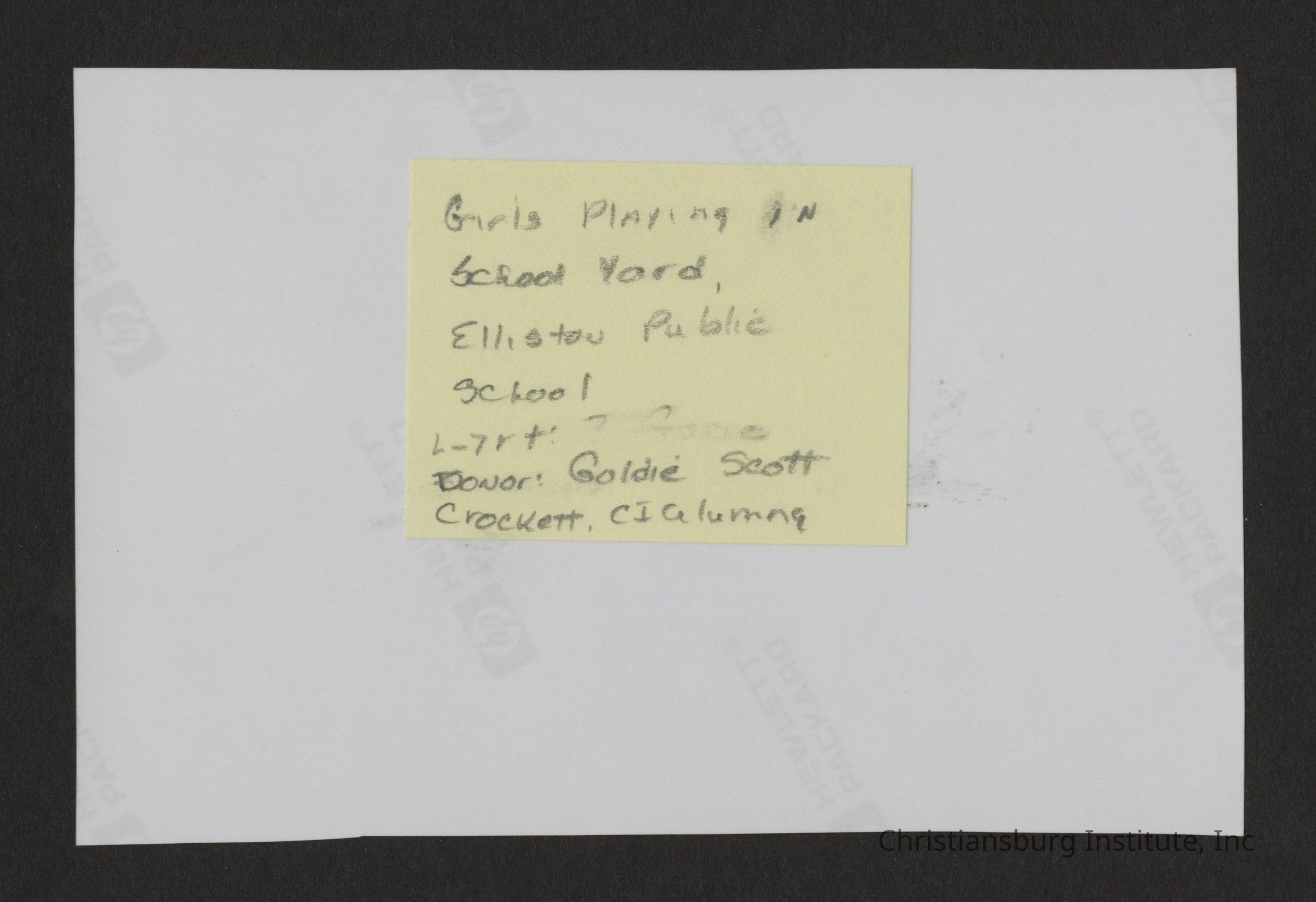 Several images captured by CI alumni, Goldie Scott Crockett, of children at the Elliston Colored School, circa 1950s.