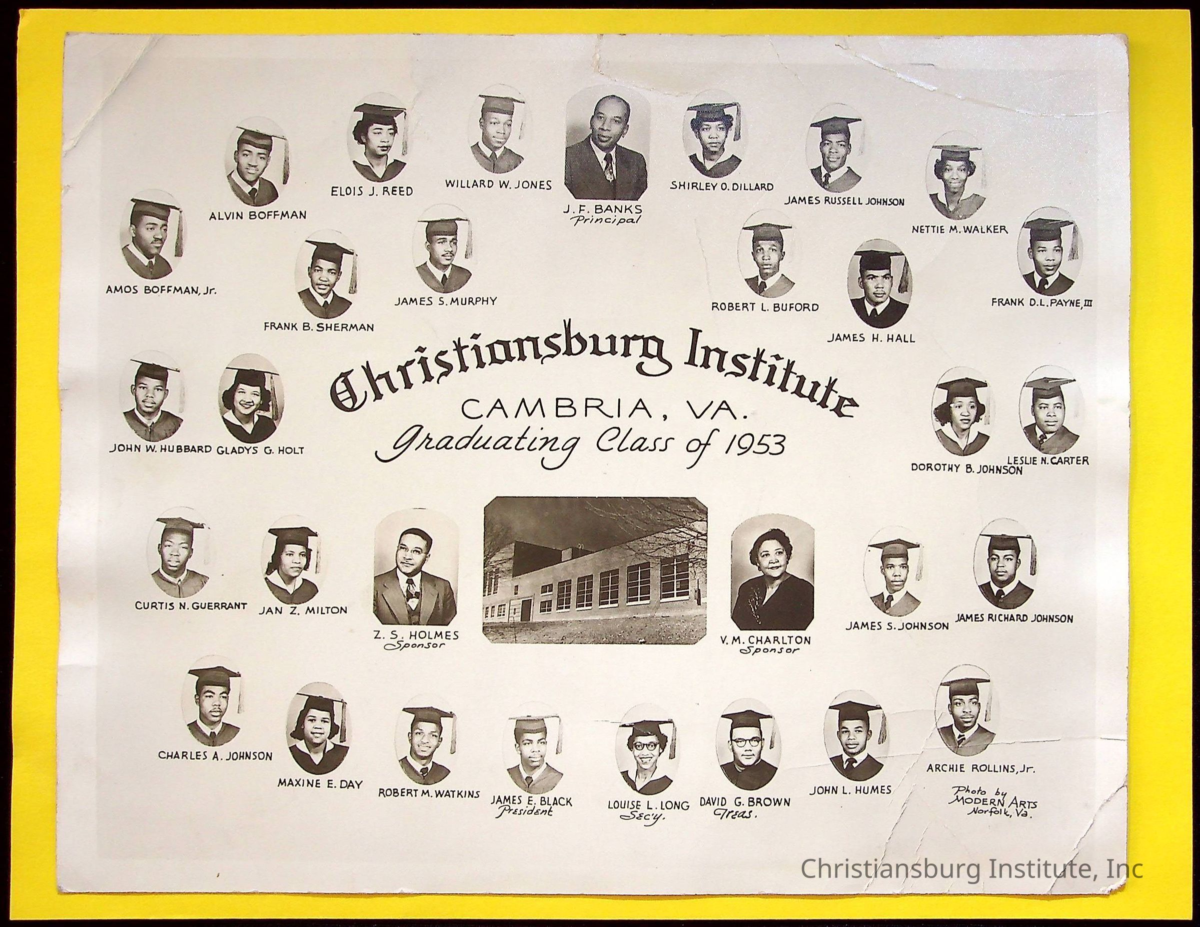 A photograph of the Christiansburg Institute senior graduating class of 1953. Composite photograph made by Modern Arts of Norfolk, Virginia.Collection