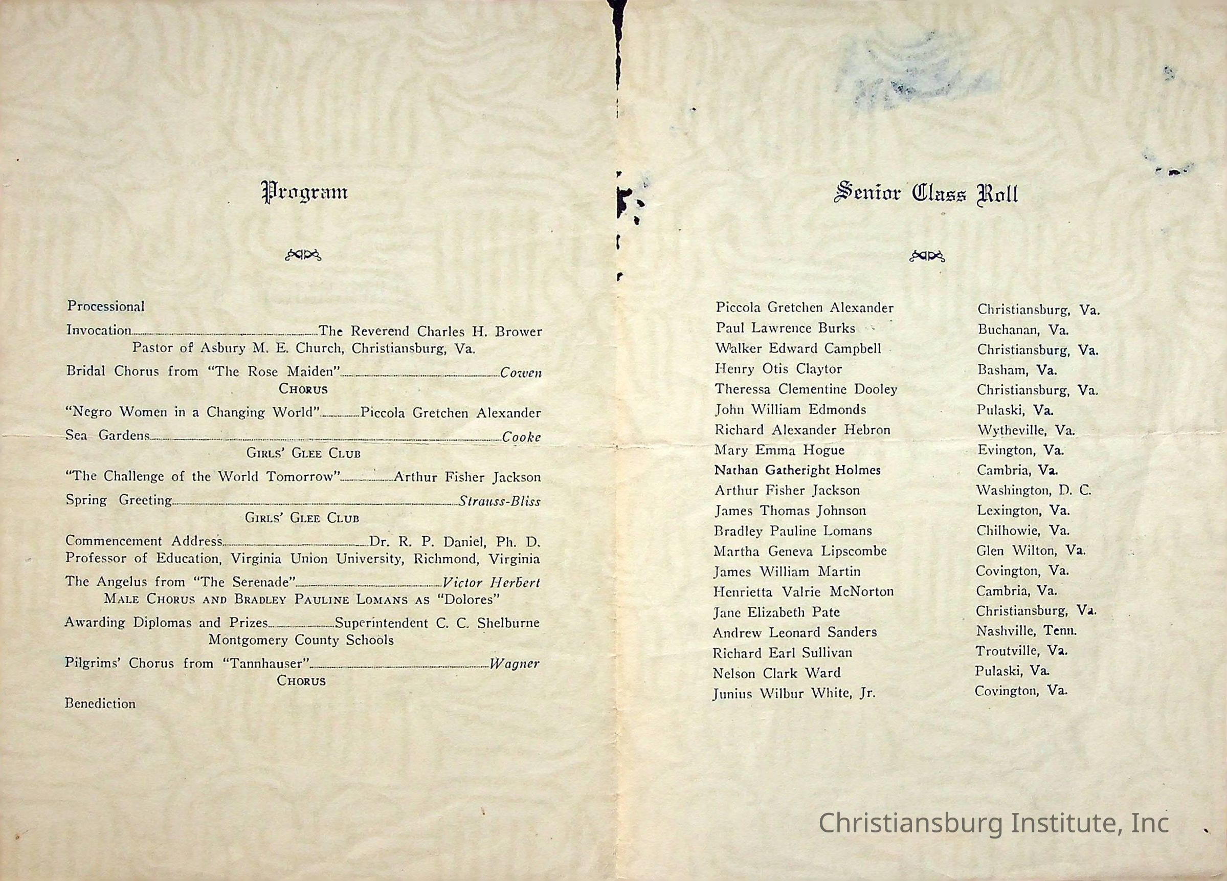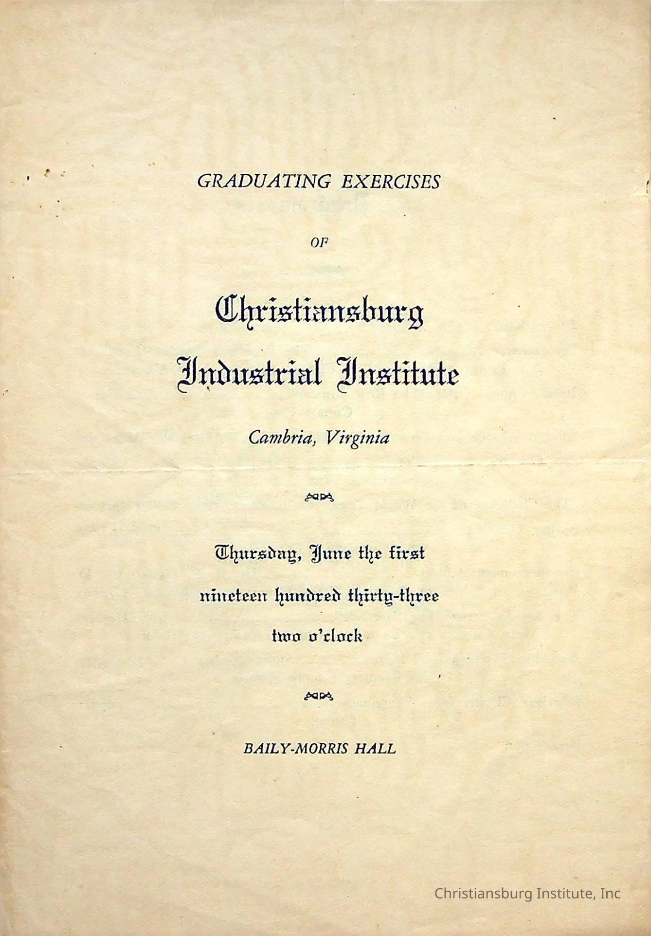 Christiansburg Industrial InstitutePlace Printed