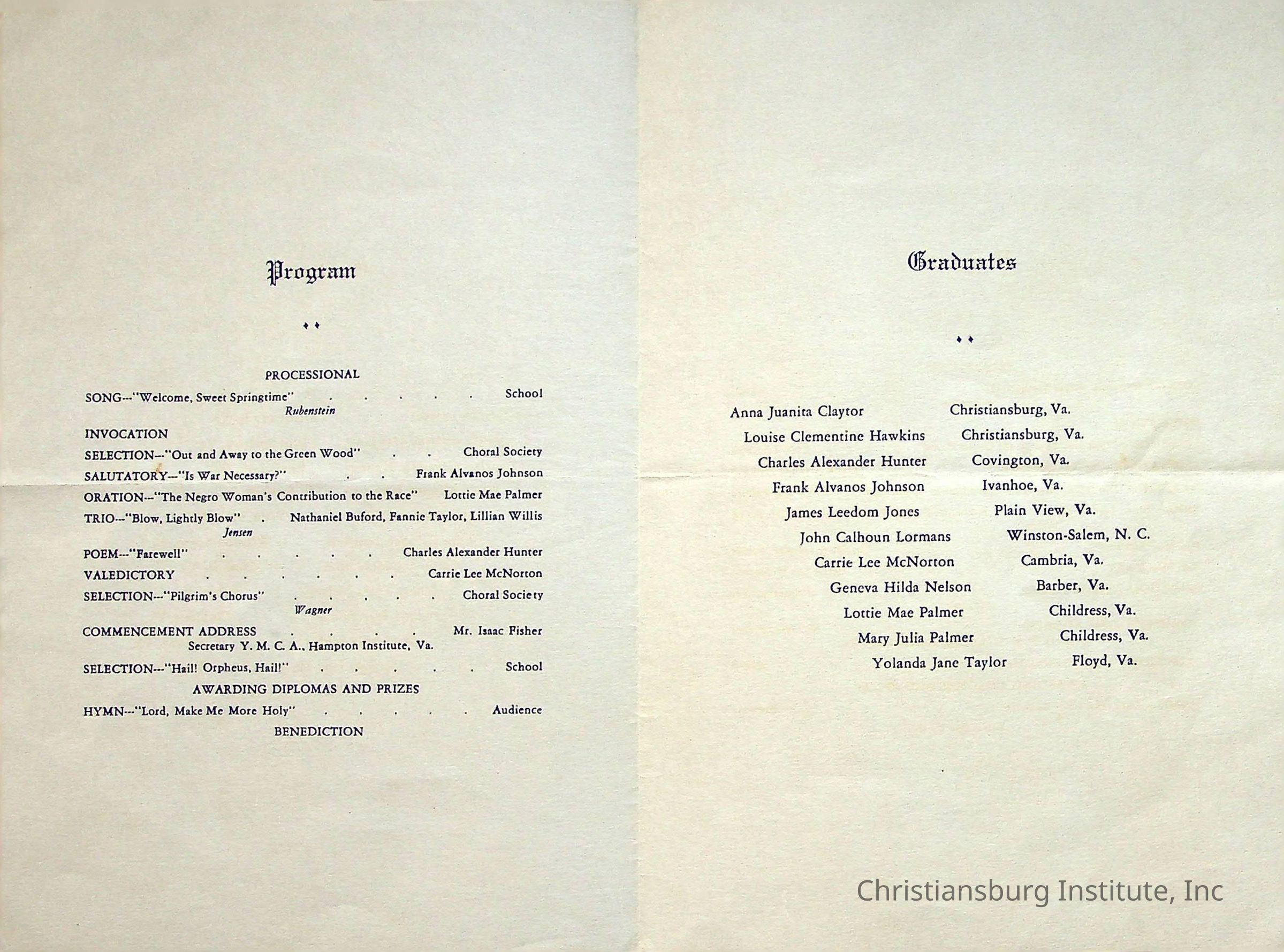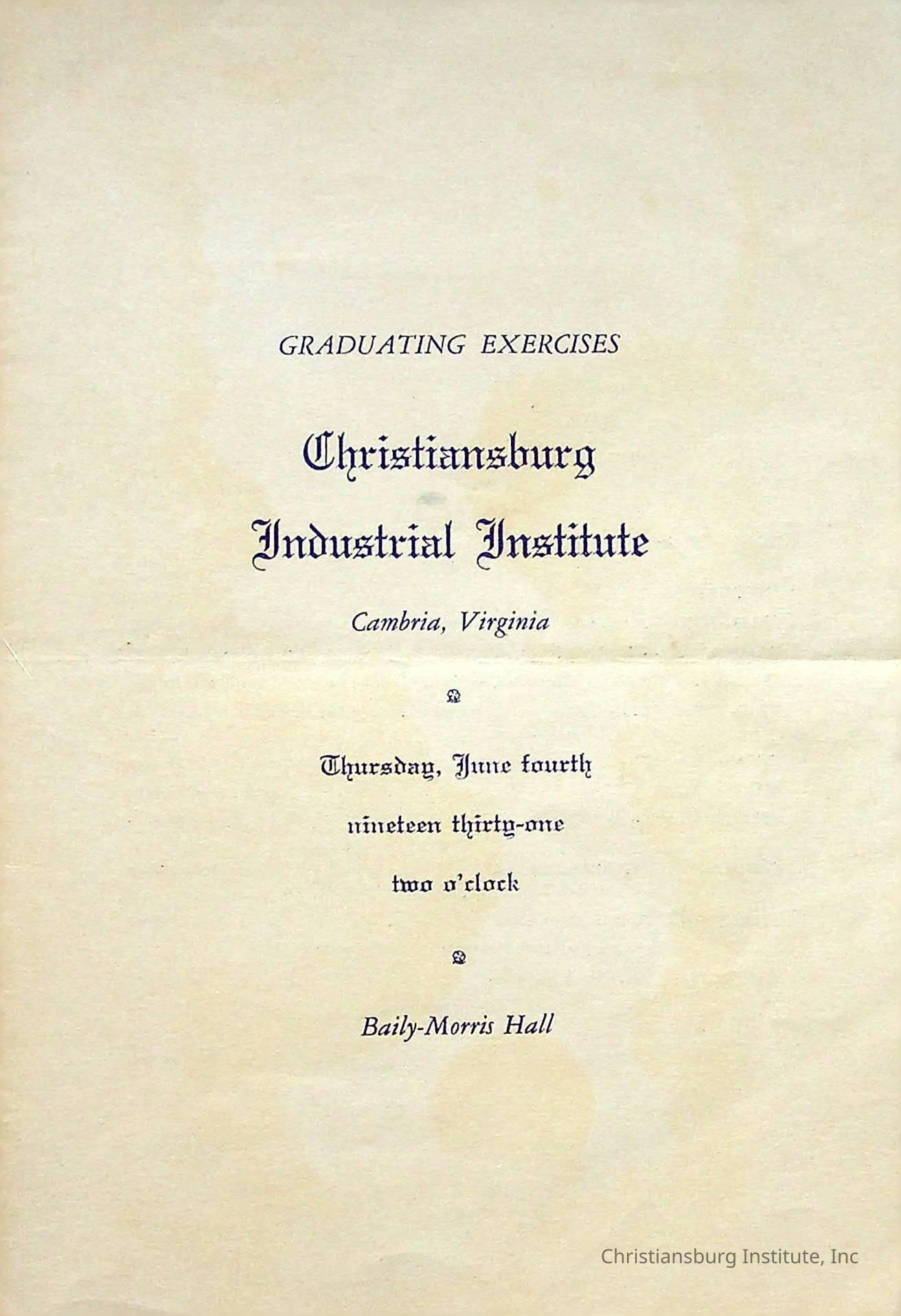 Christiansburg Industrial InstitutePlace Printed