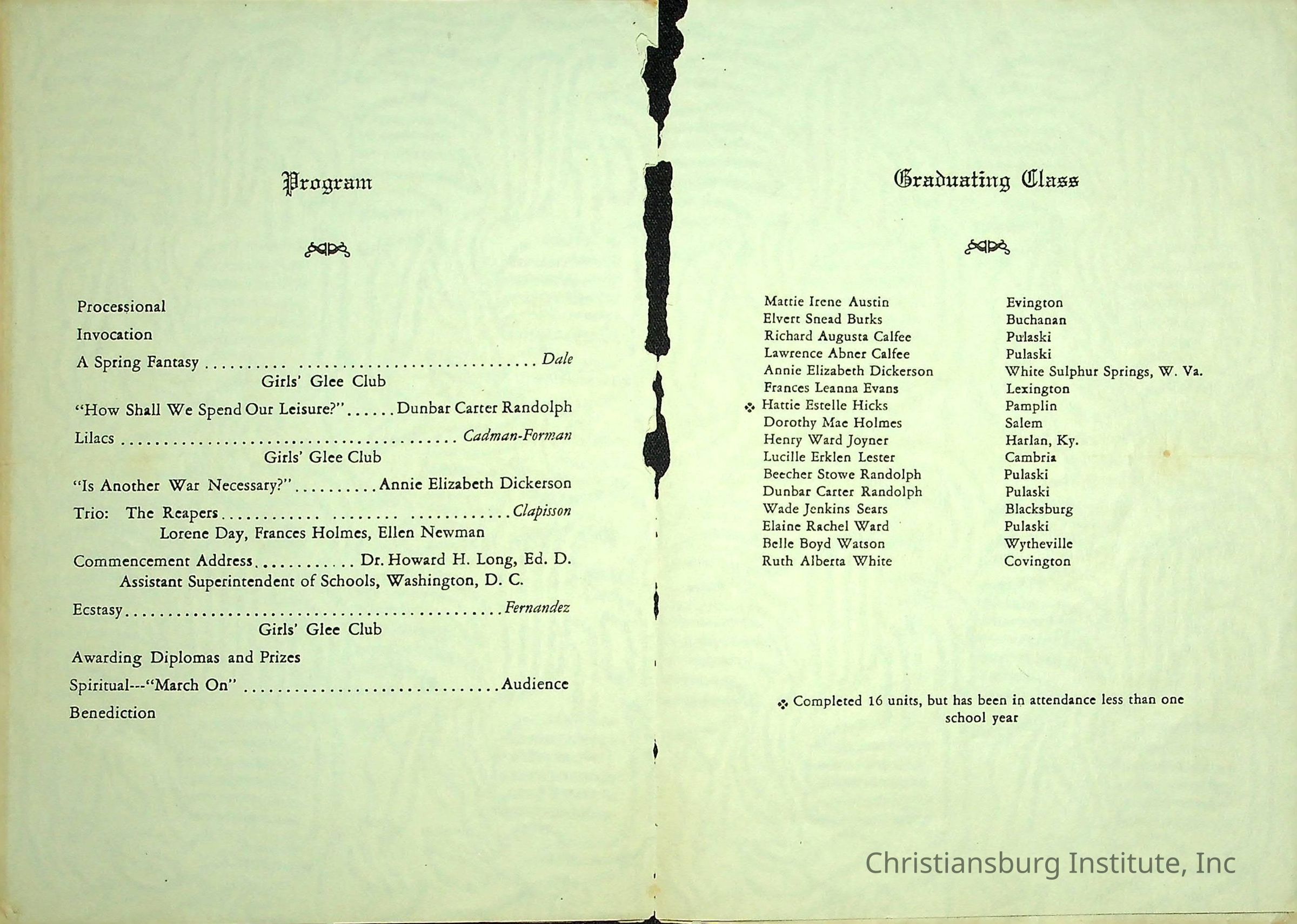 Christiansburg Industrial InstitutePlace Printed