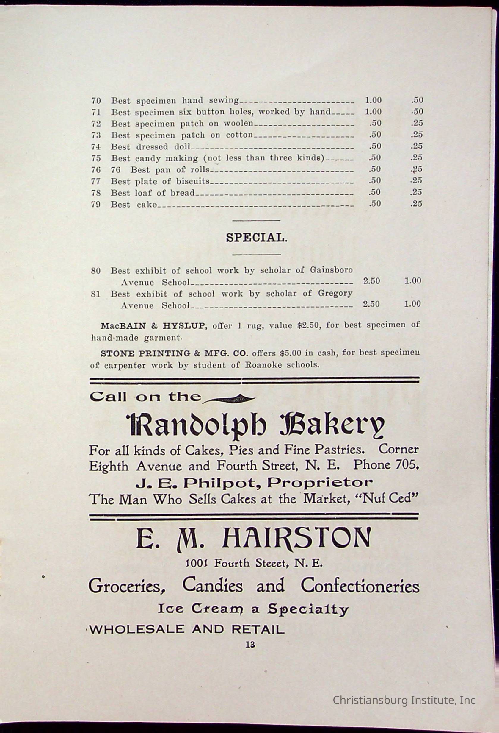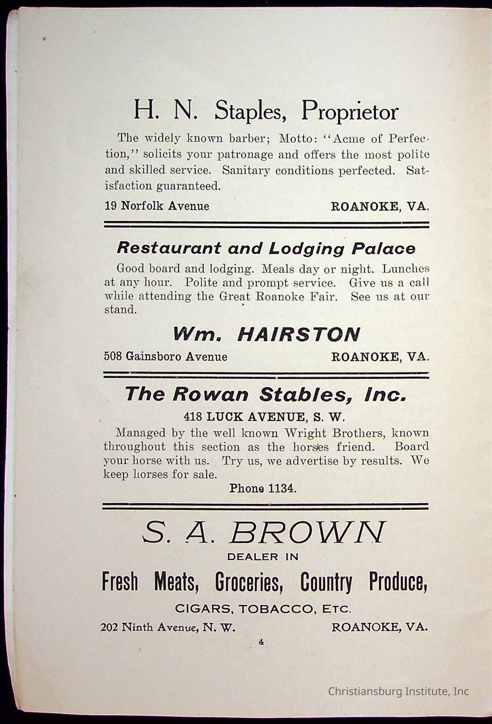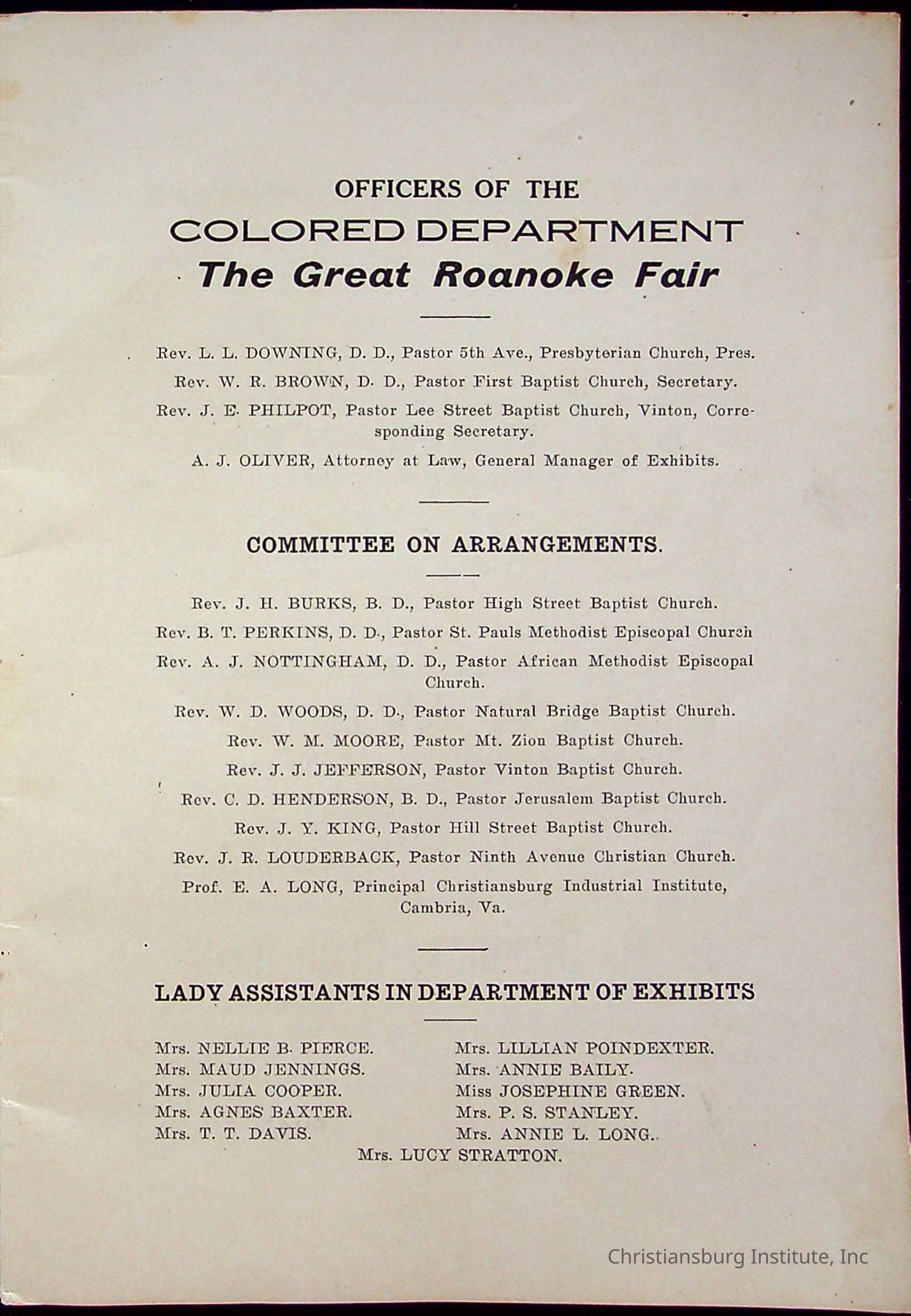 Great Roanoke Fair, Colored Peoples' Day Brochure, 1910