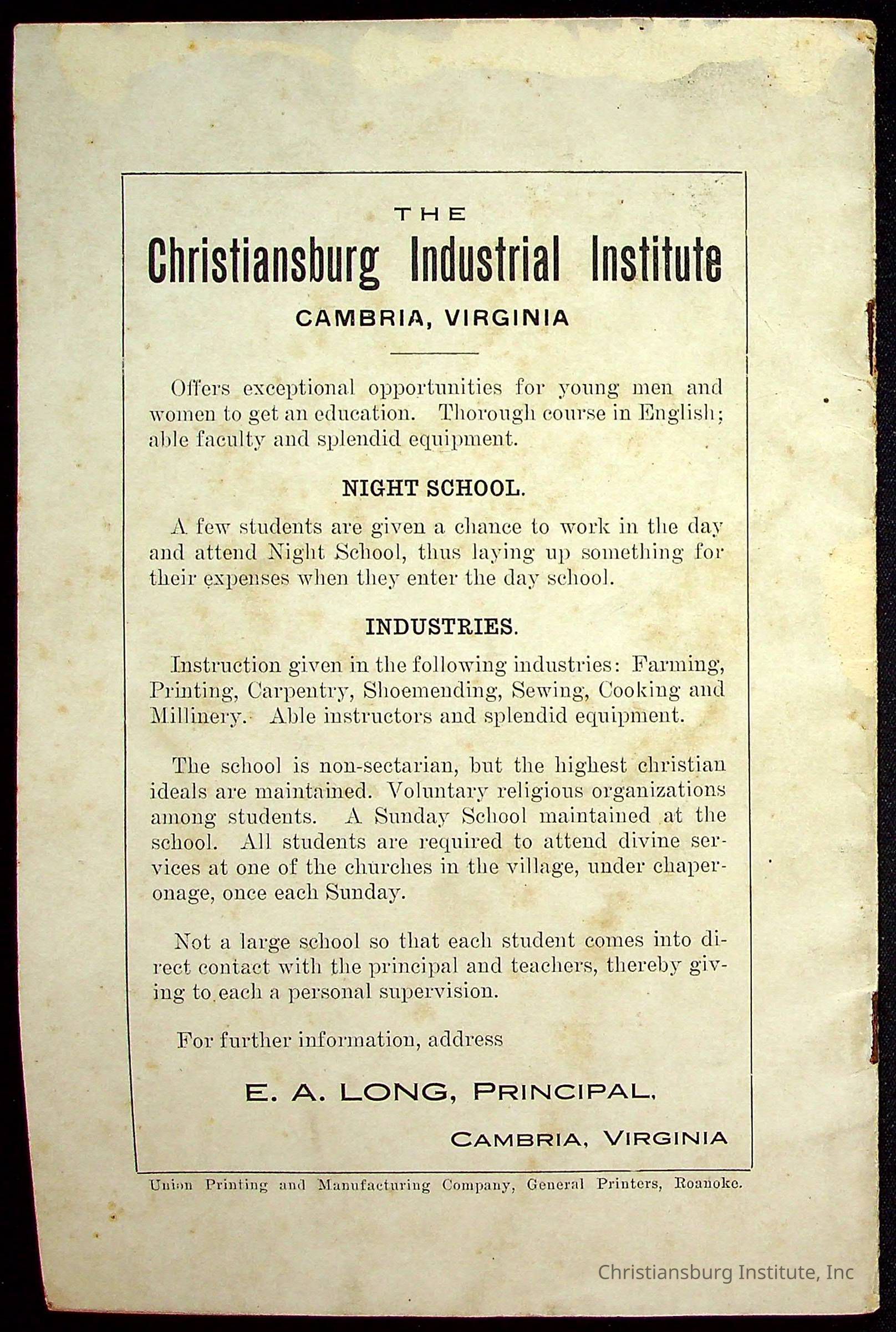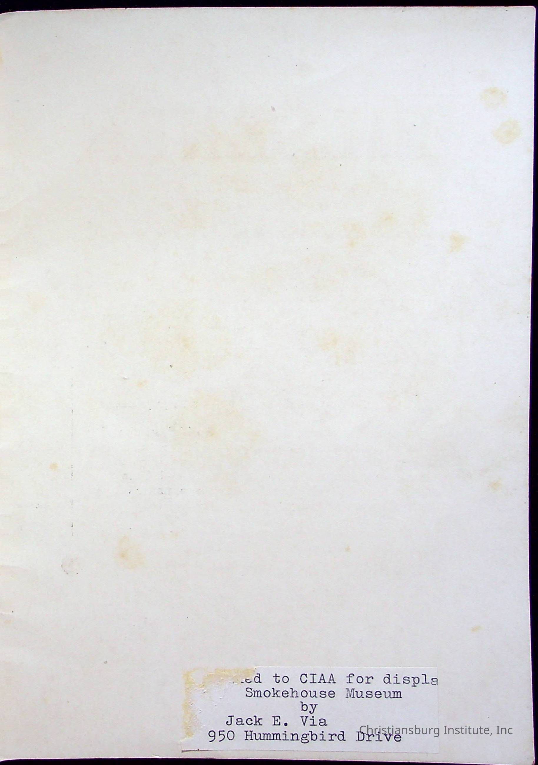 Copyright has been assigned to Christiansburg Institute Museum & Archives. For permission to publish materials created by the donor, contact CIMA@christiansburginstitute.com. Materials not created by Christiansburg Institute Museum and Archives may still be under copyright.