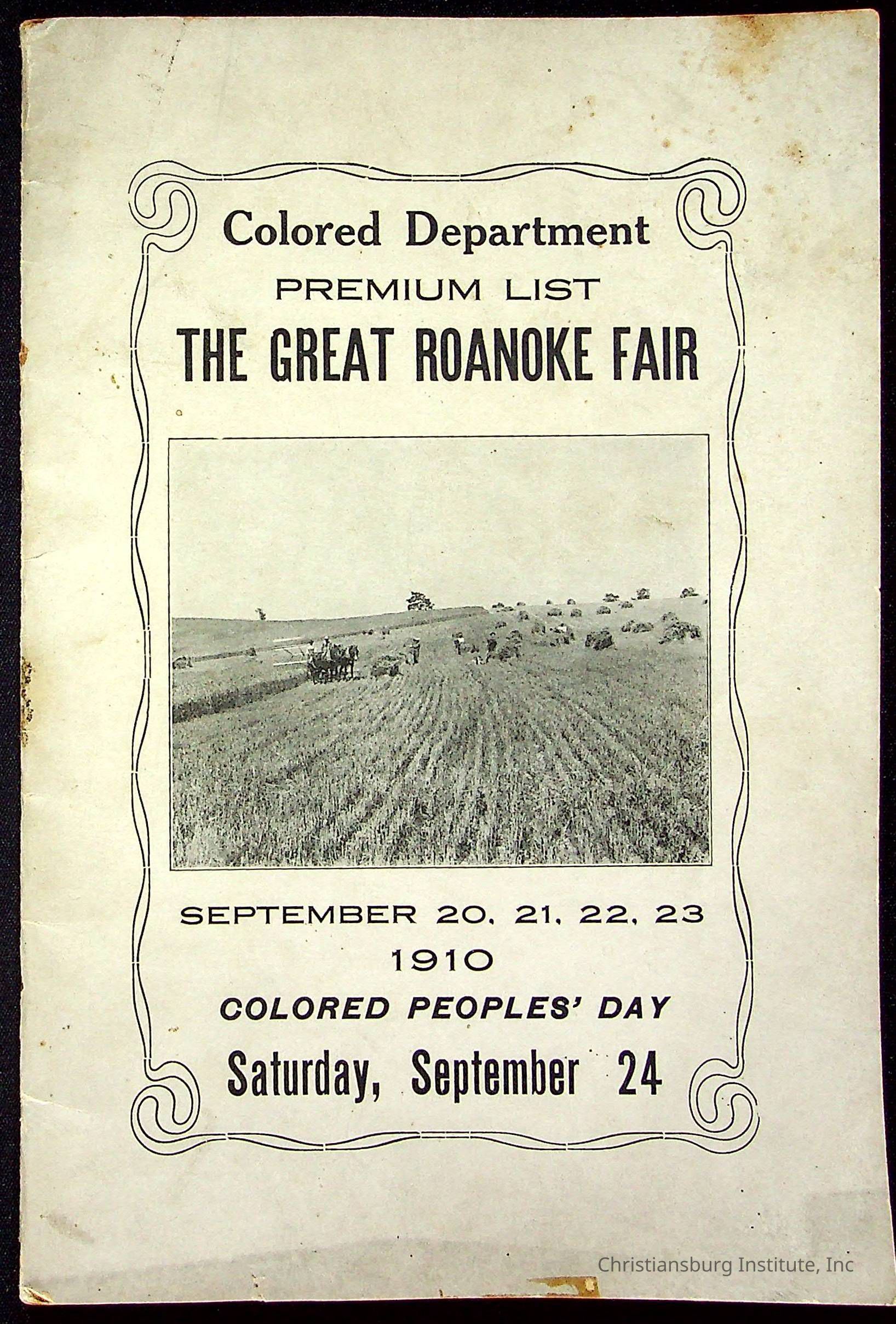 An event program for the Colored Peoples' Day at the Great Roanoke Fair on Saturday, September 24th, 1910.
