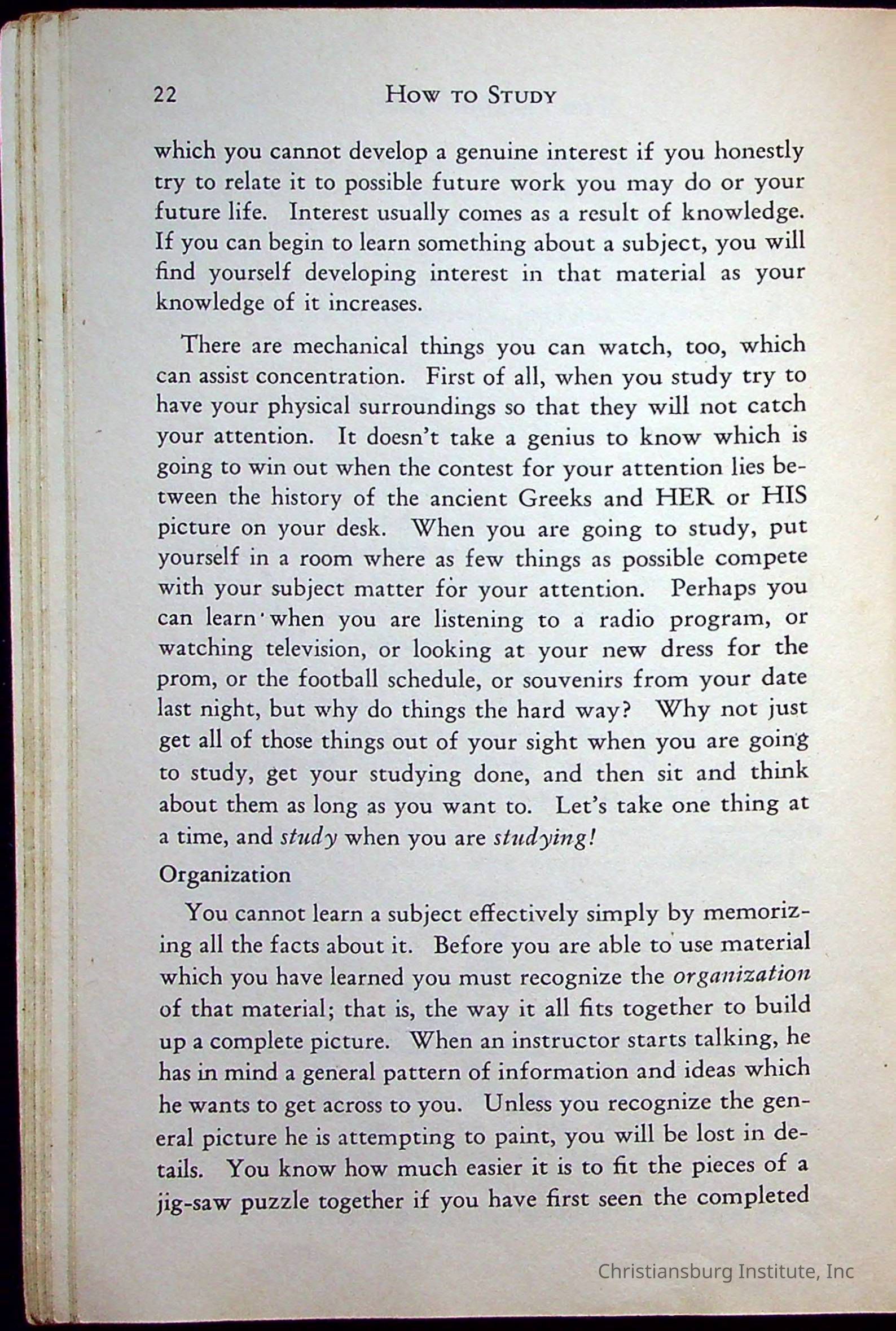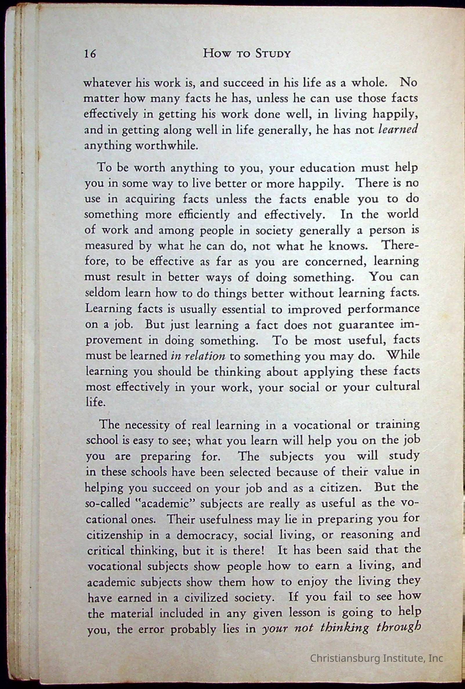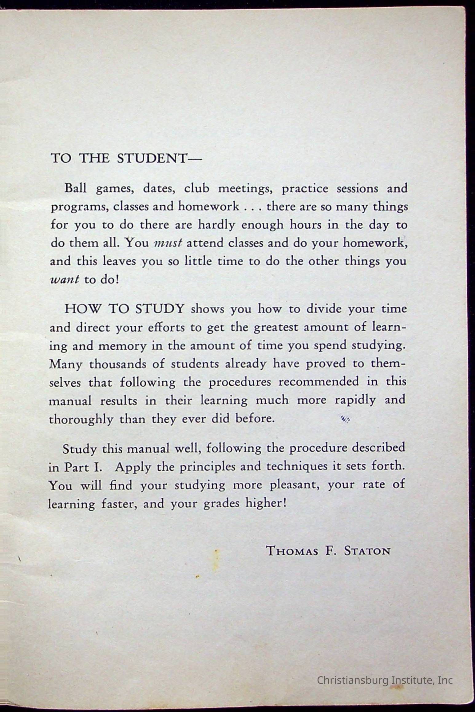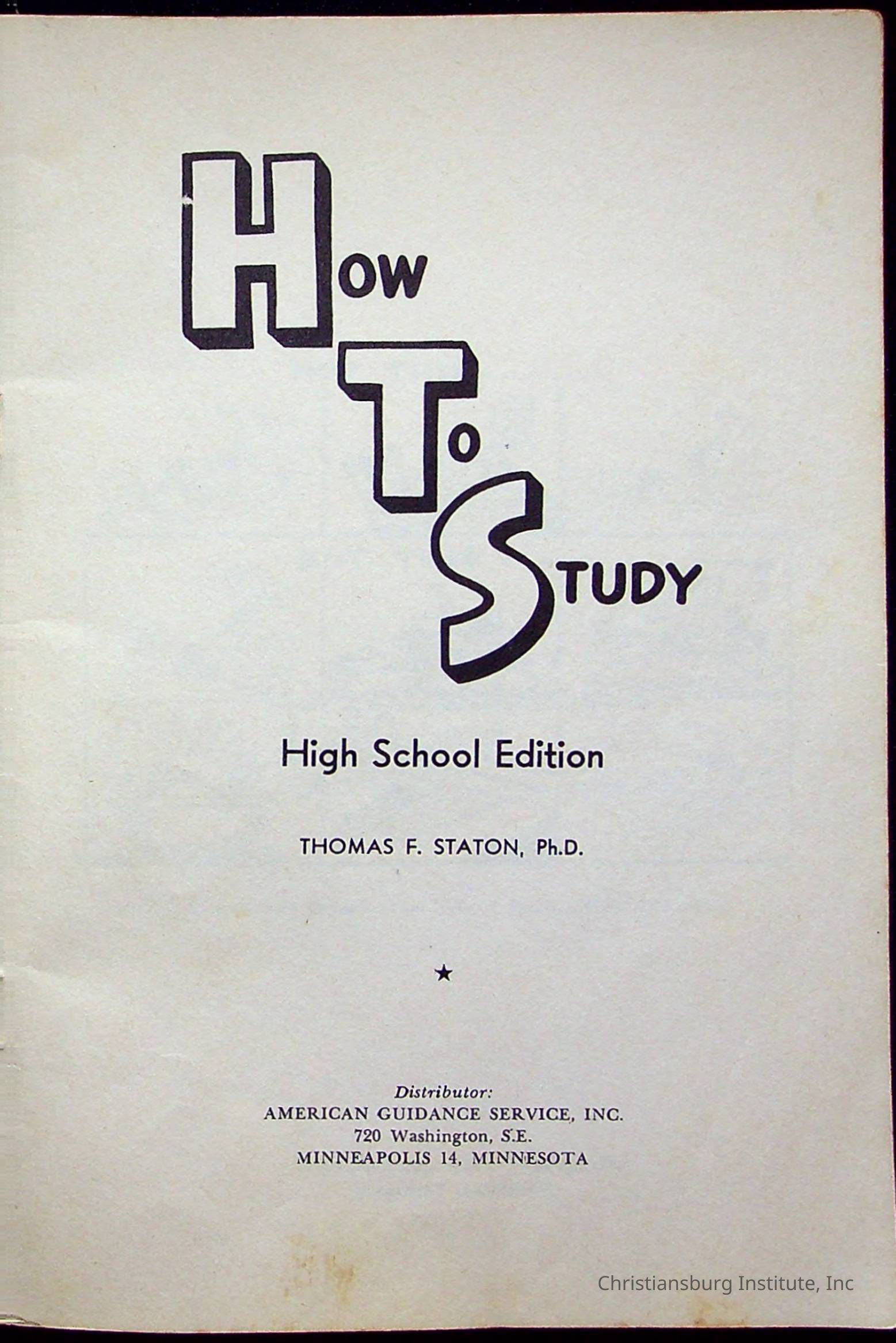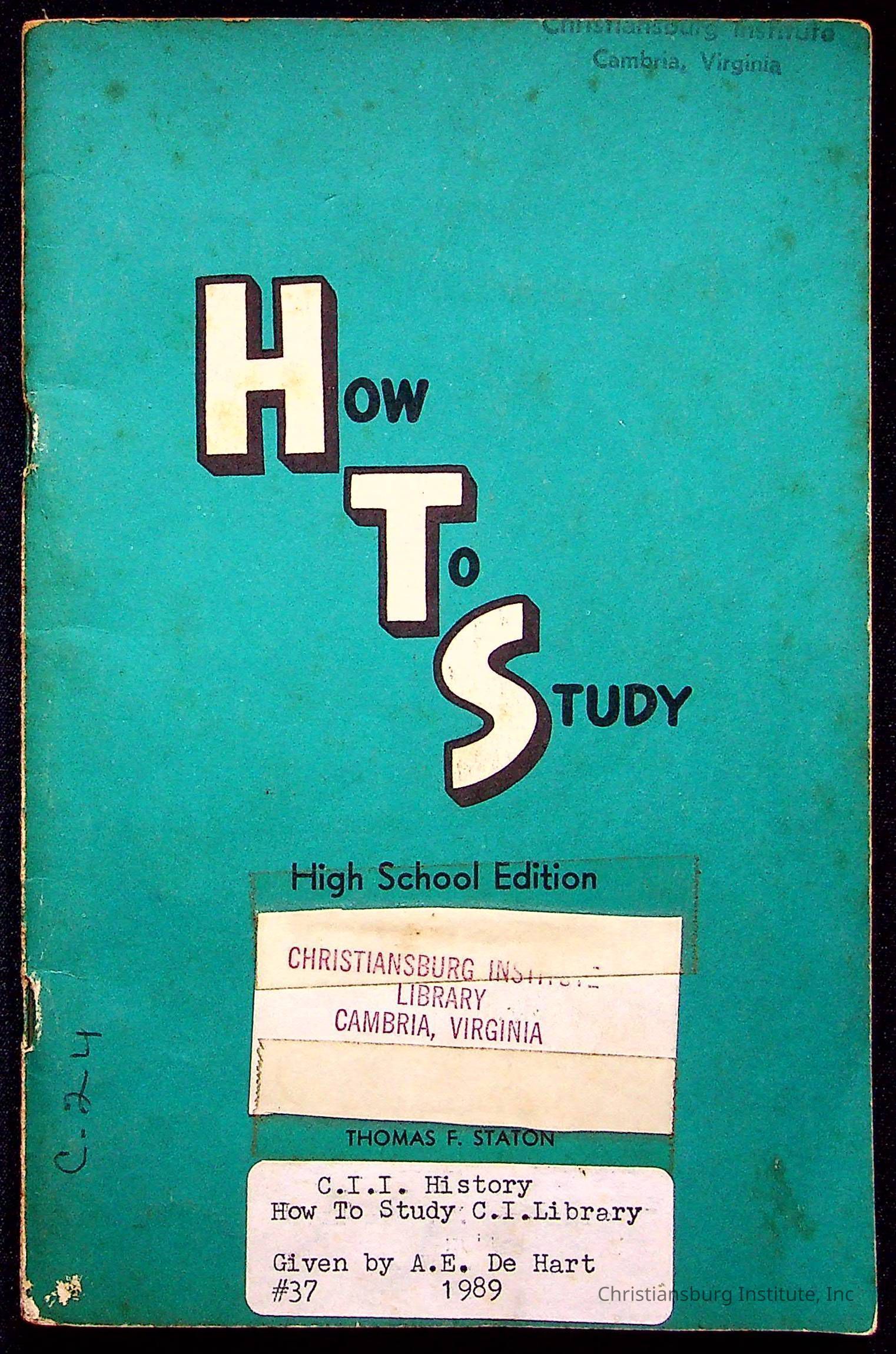 "How To Study" written by Thomas F. Staton and published by McQuiddy Printing Company in the year 1959. This book was a part of the Christiansburg Institute library.Context