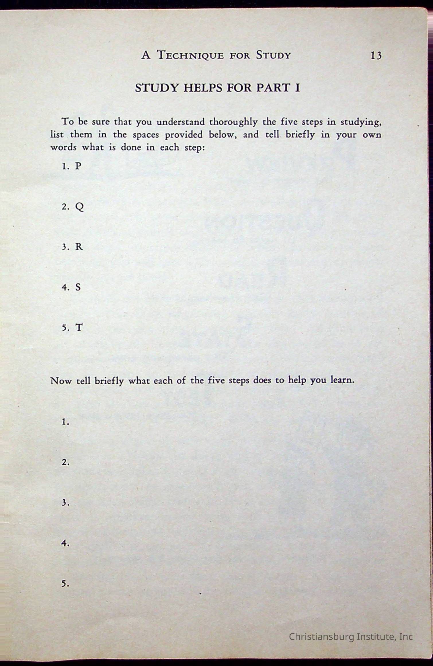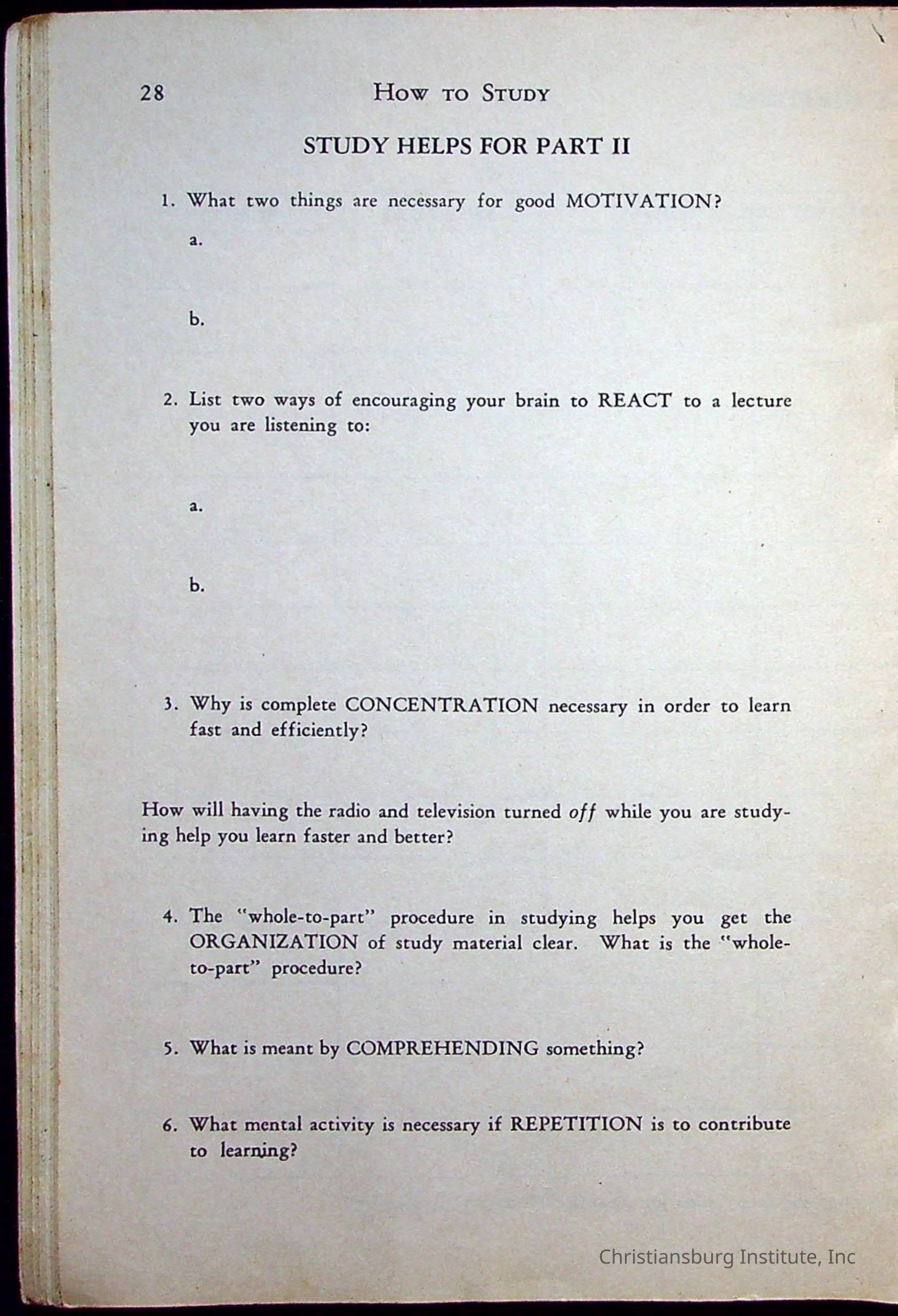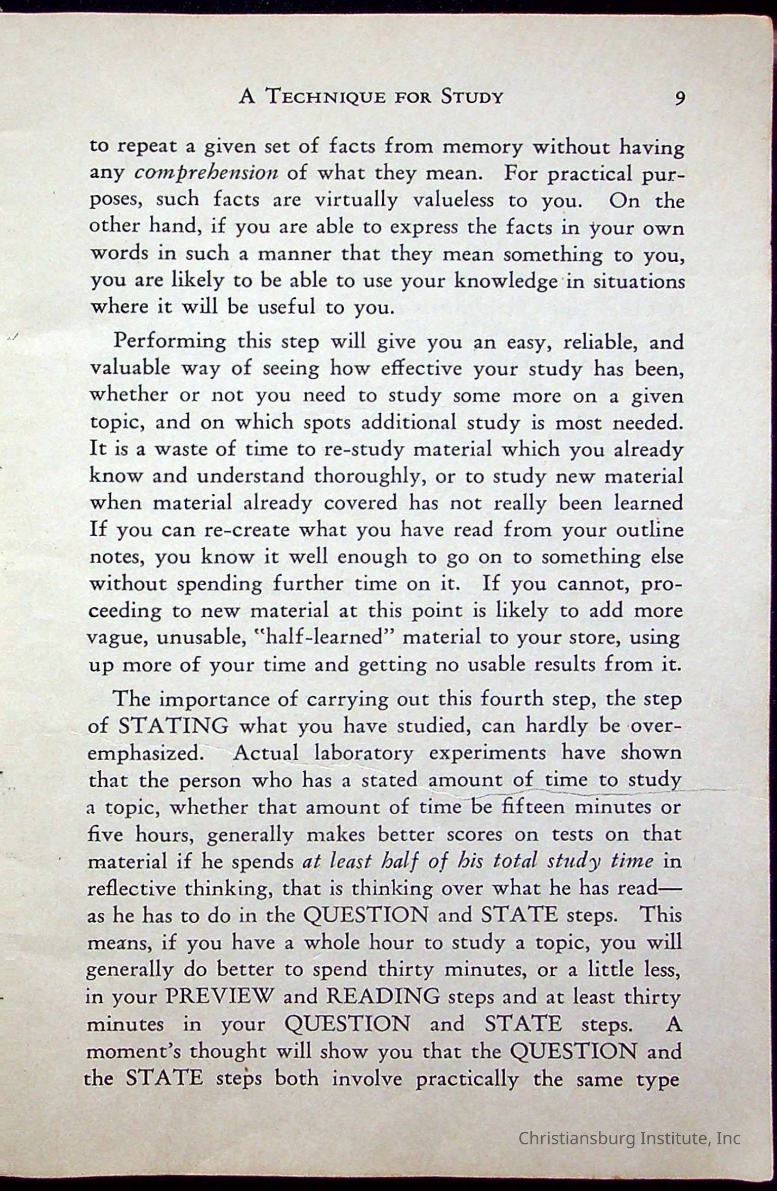 How To Study, Staton 1959Description