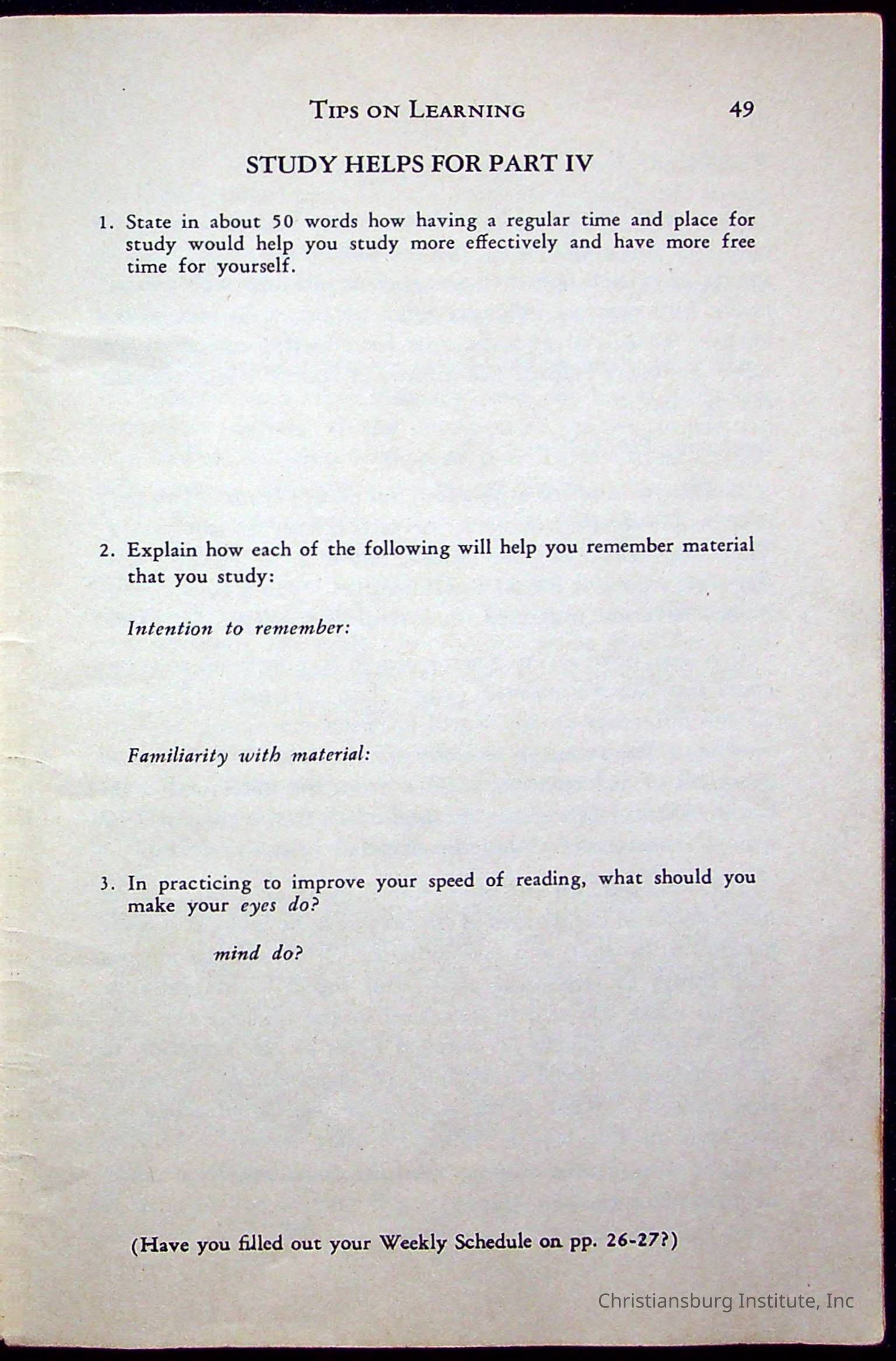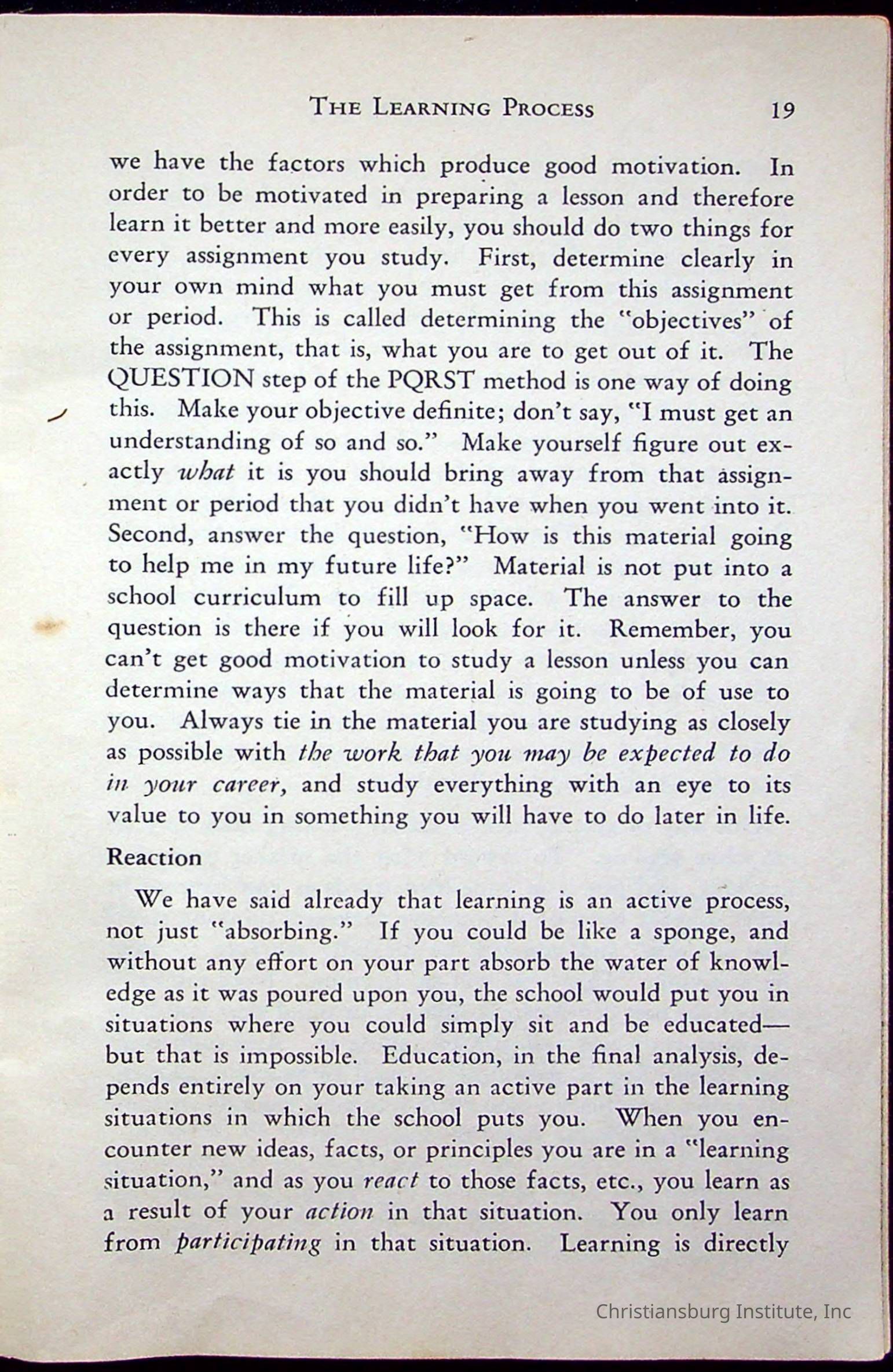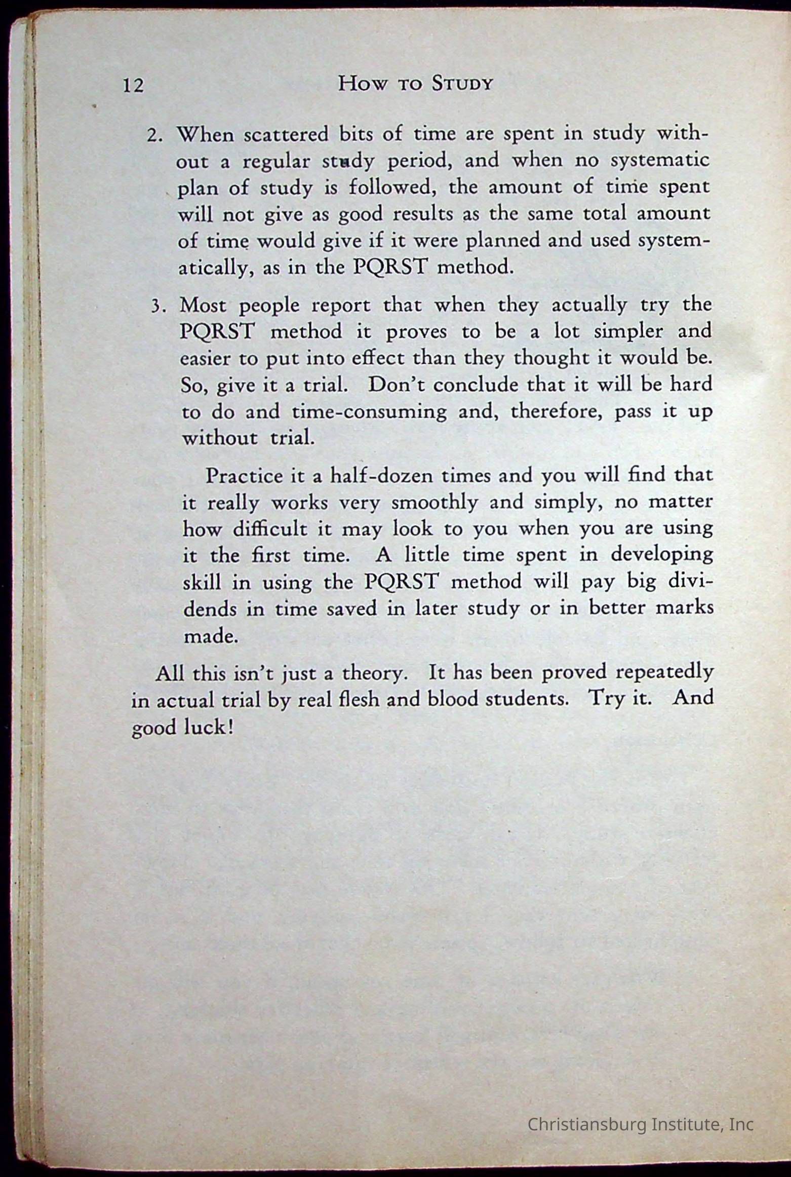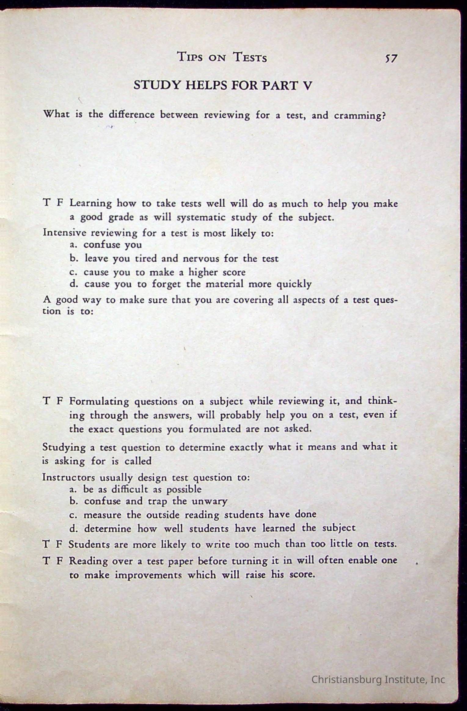 How To Study, Staton 1959Description