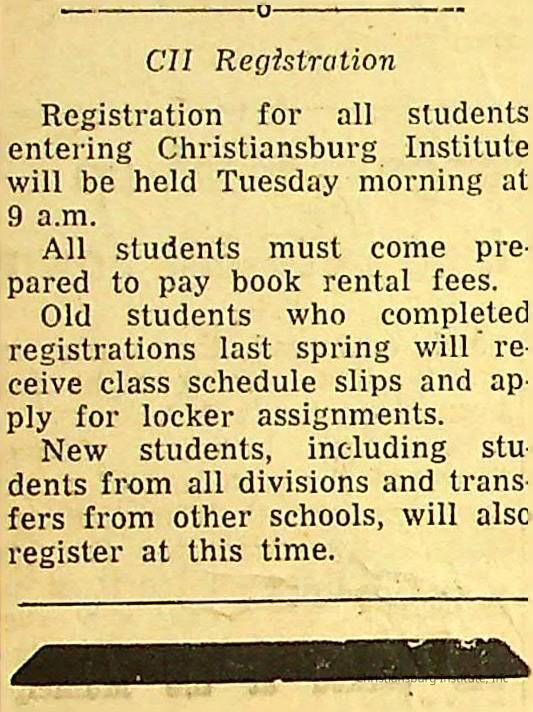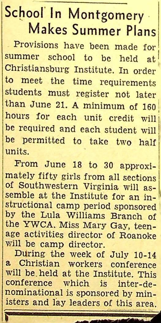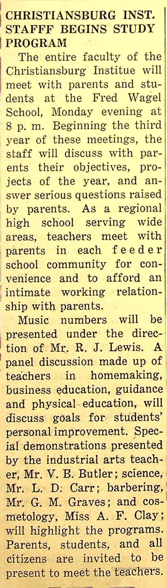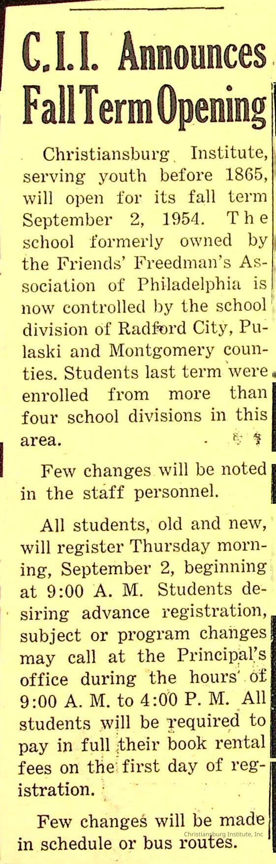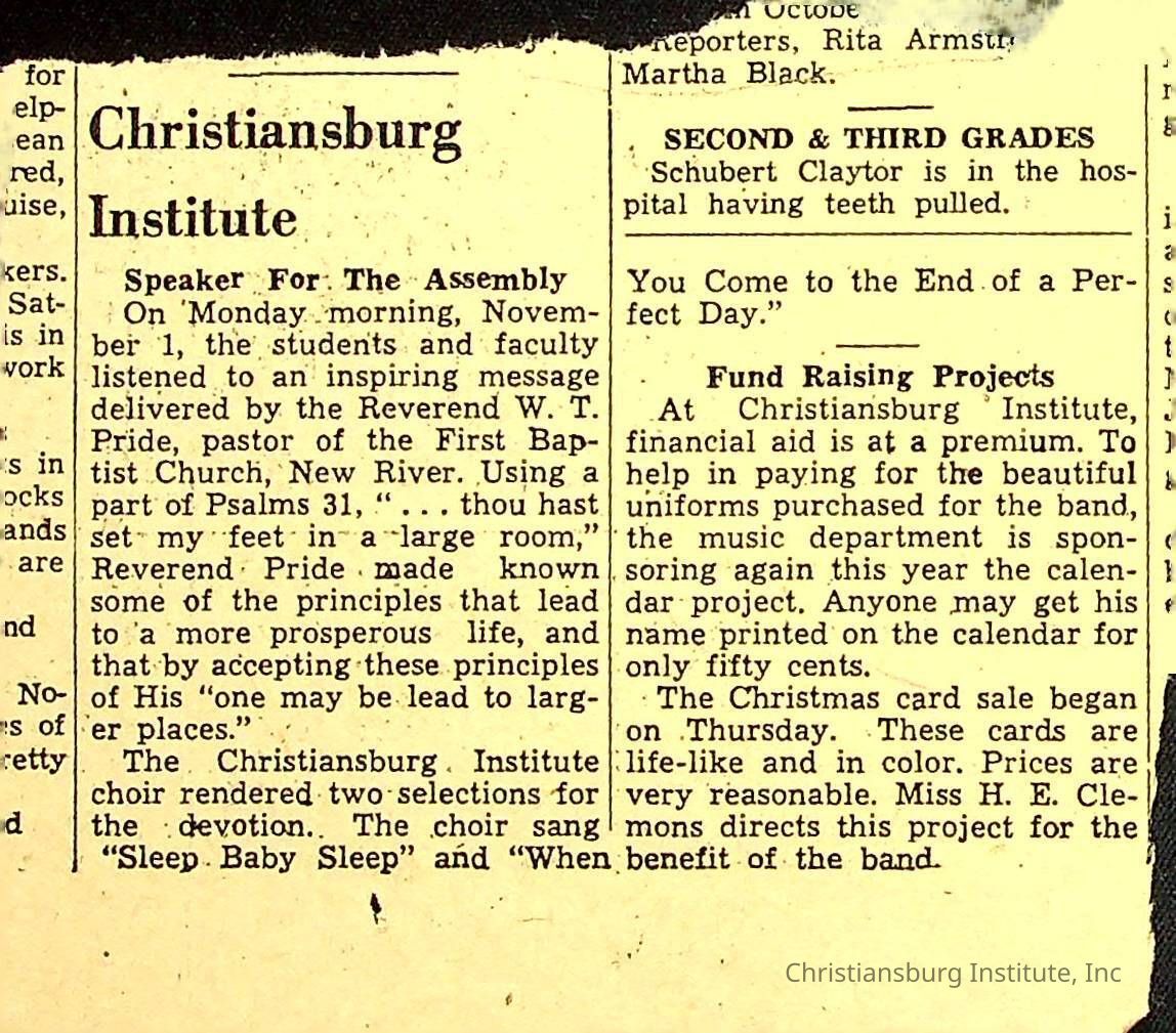 A series of newspaper clippings that feature stories about administrative news in regards to Christiansburg Institute circa 1950s-1960s.