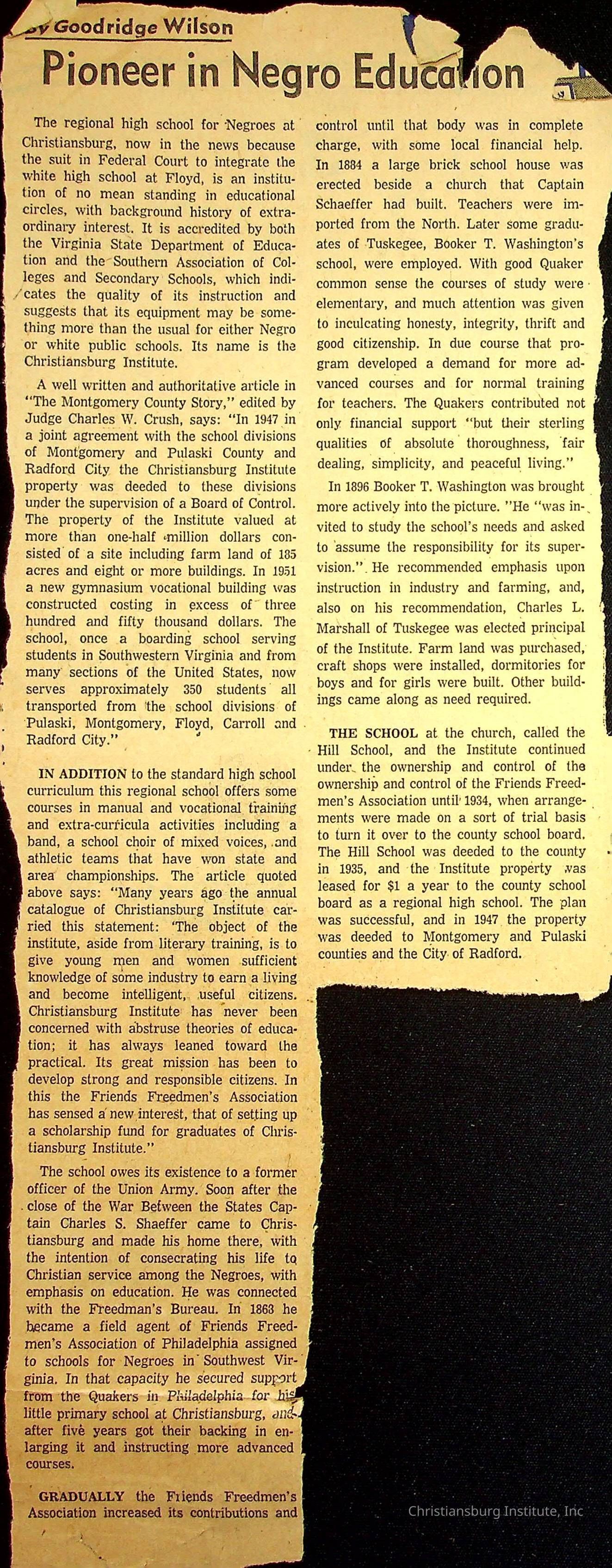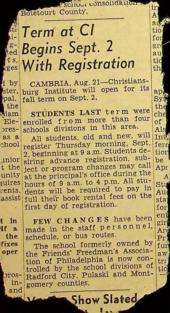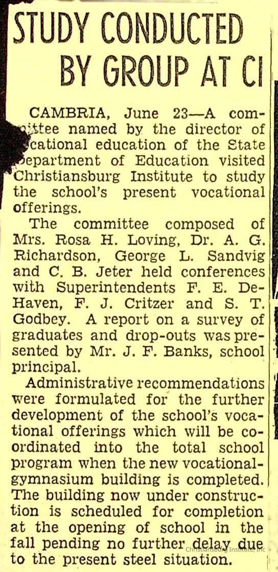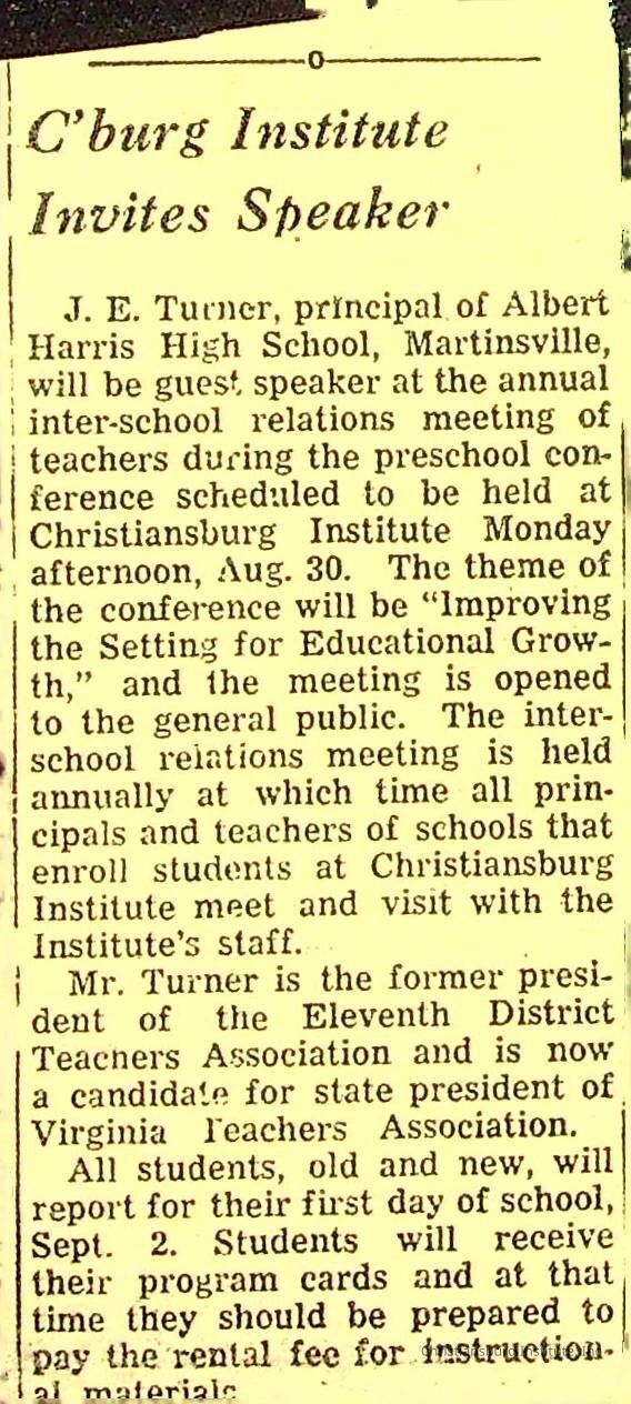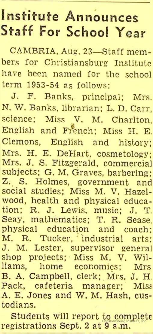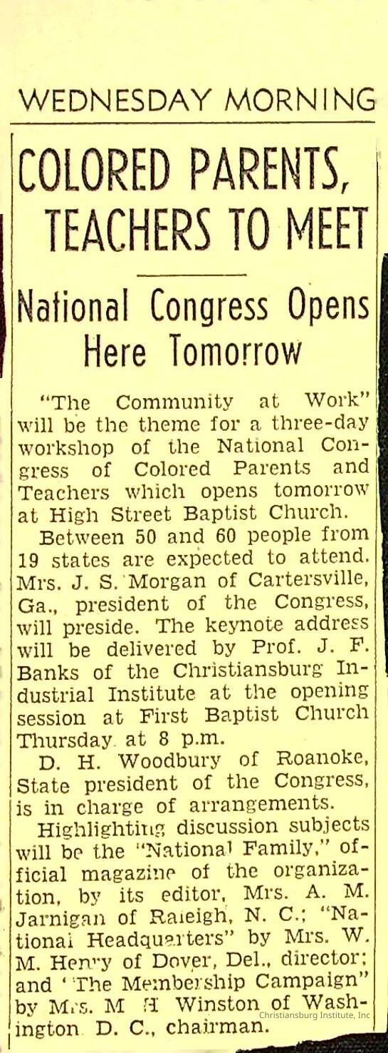 John F. Banks: Christiansburg Institute Administrative Information Newspaper Clippings