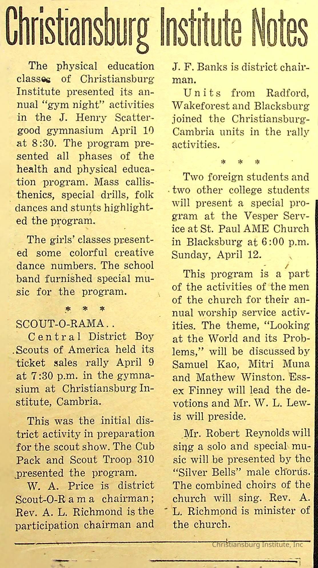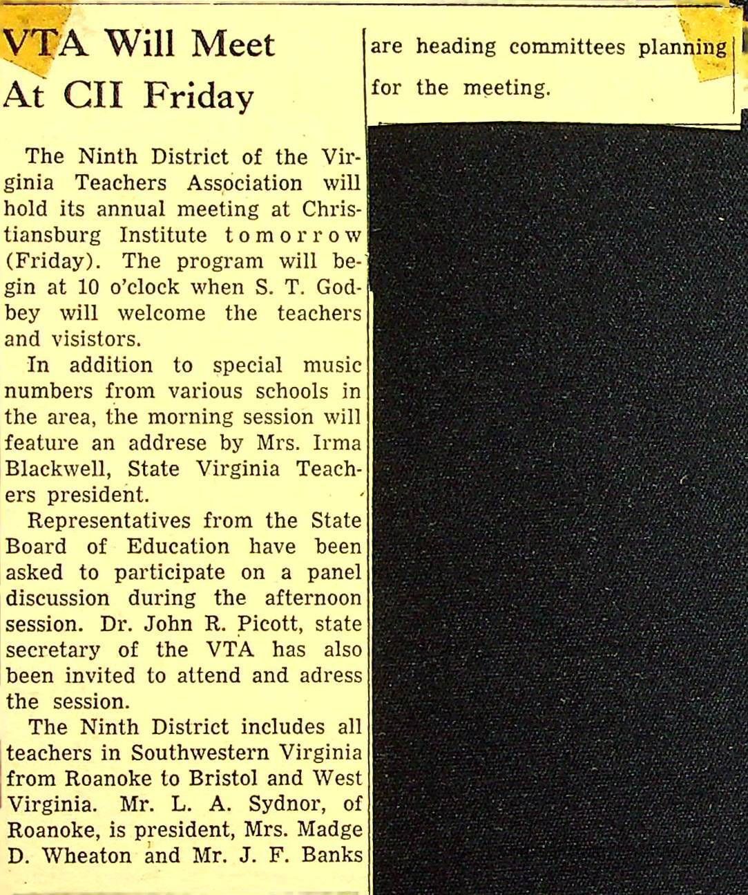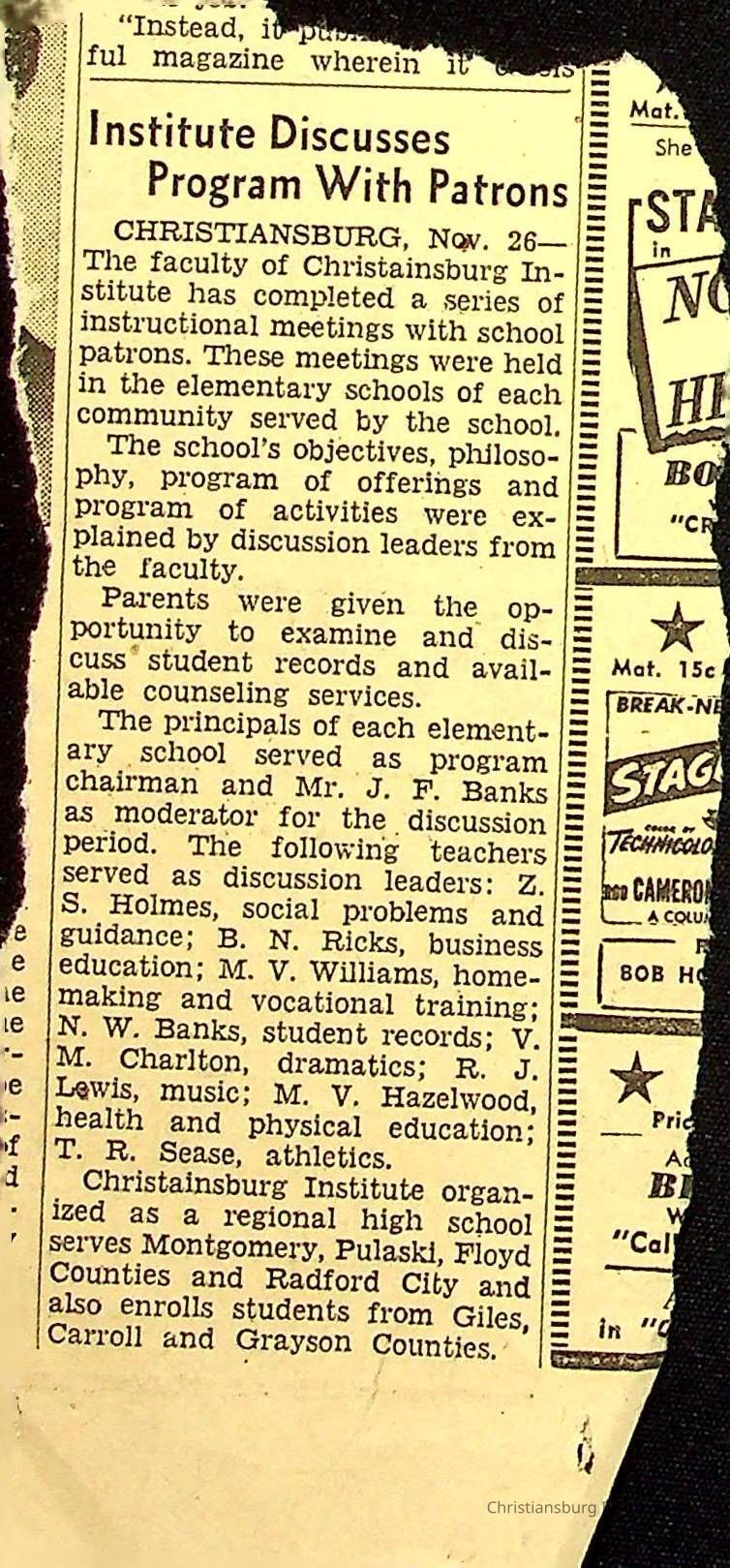 John F. Banks: Christiansburg Institute Administrative Information Newspaper Clippings