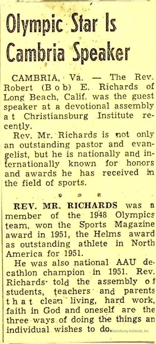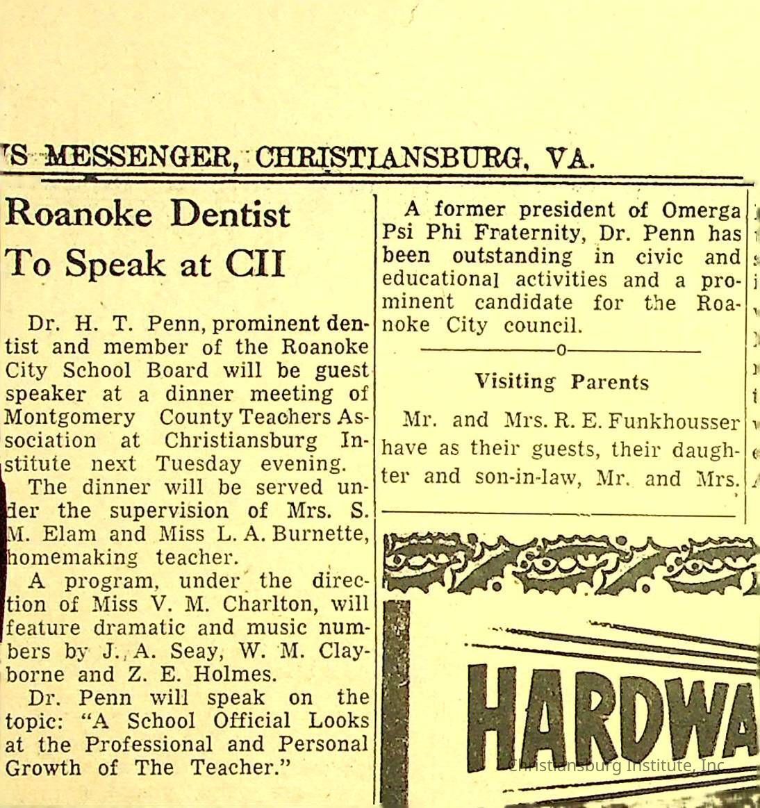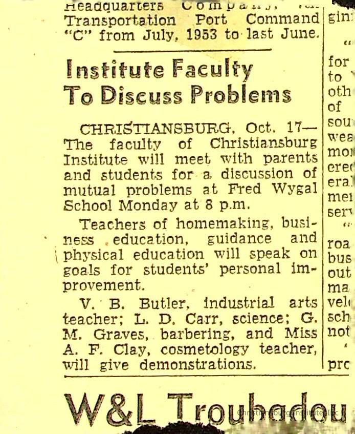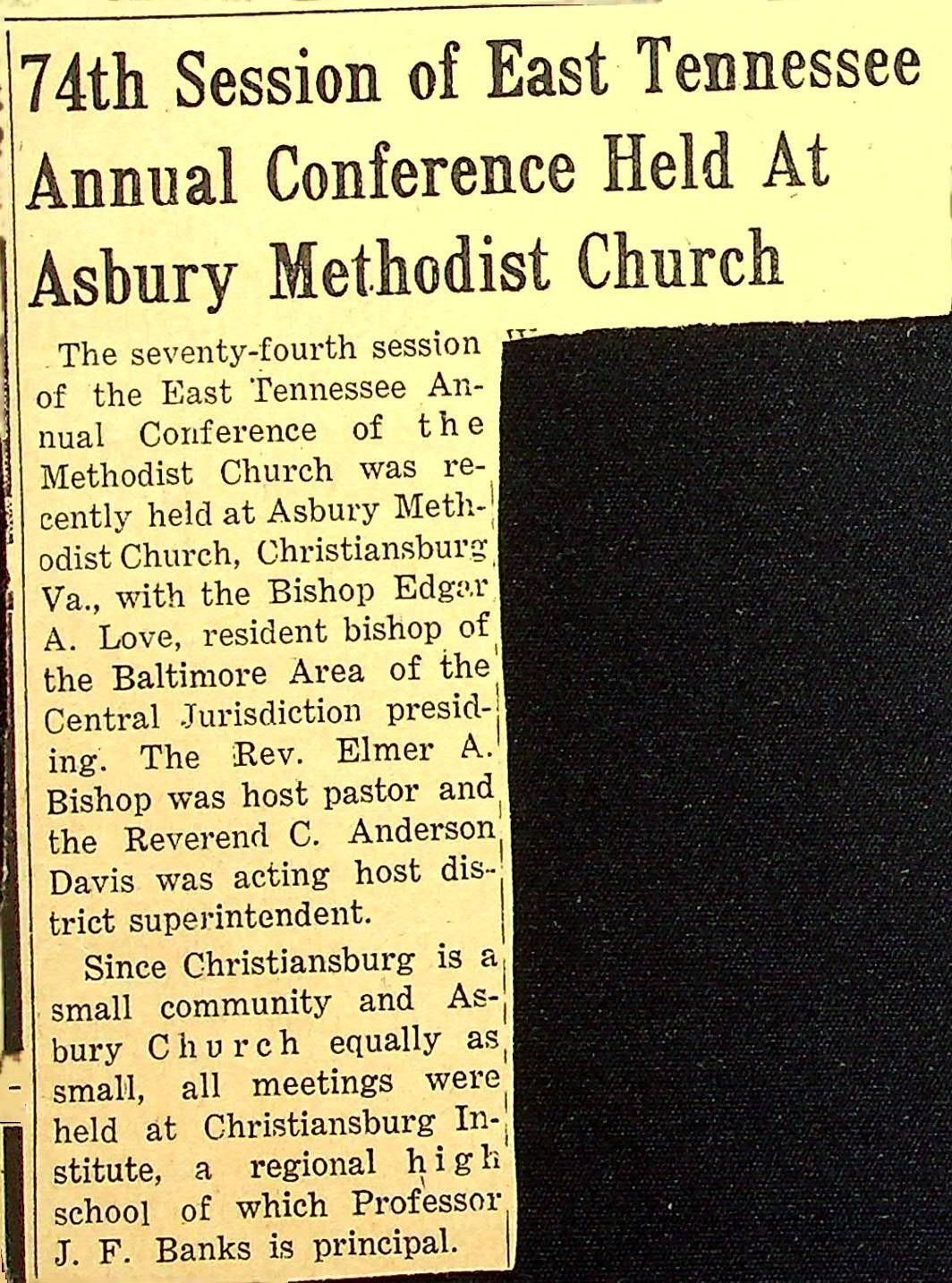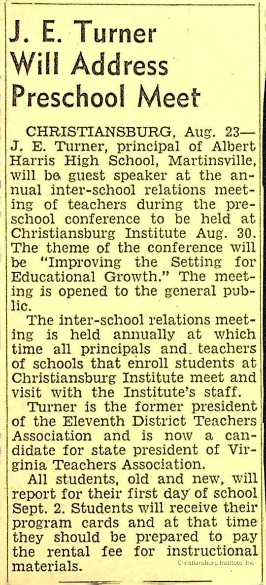 John F. Banks: Christiansburg Institute Administrative Information Newspaper Clippings