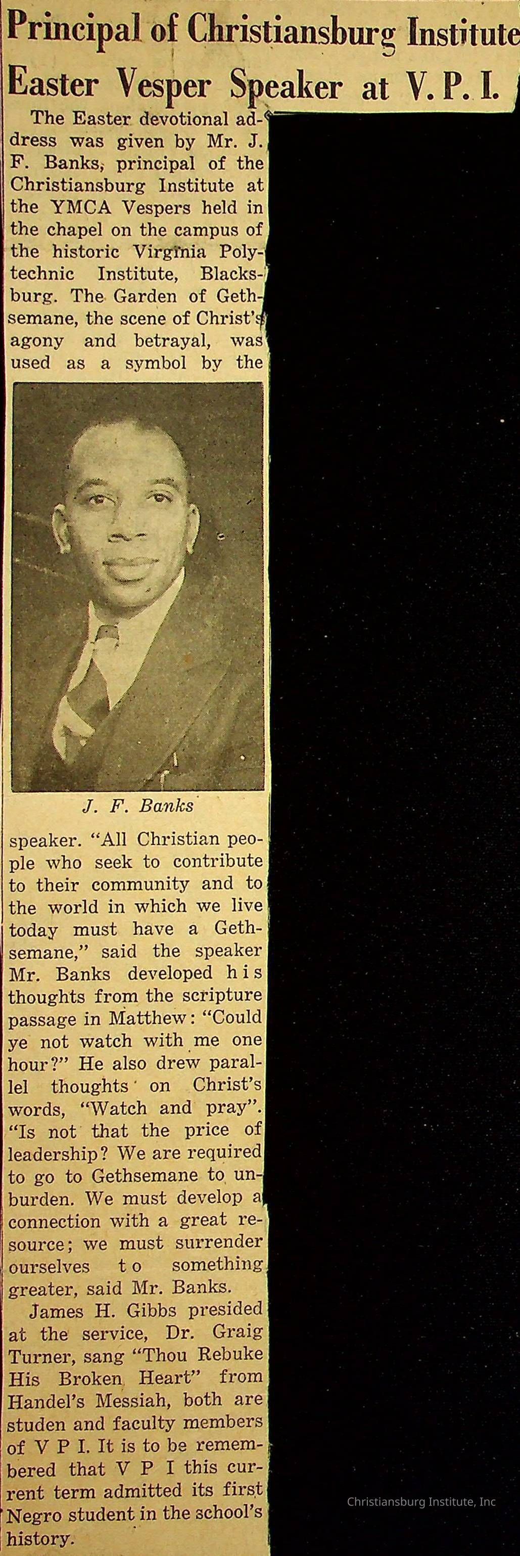 Banks, John F., Christiansburg Institute