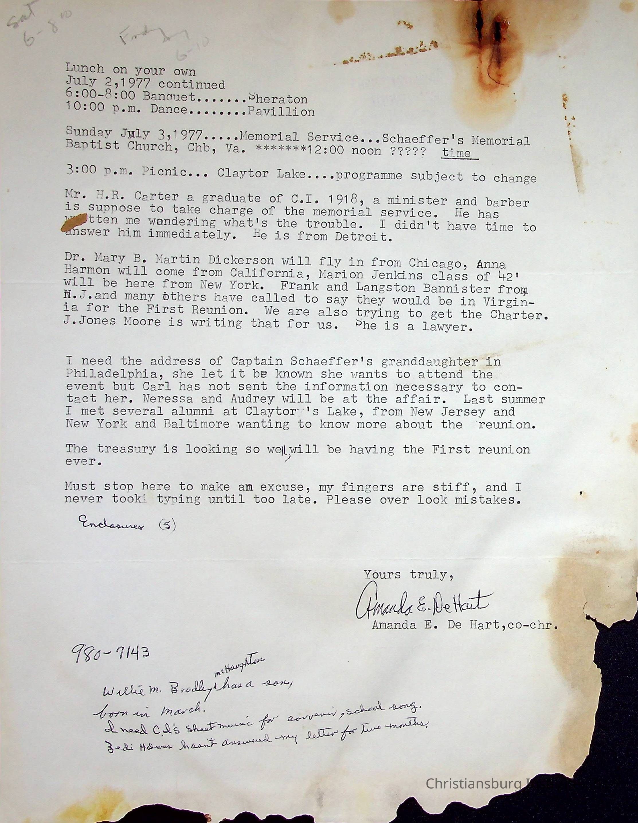 A letter from Amanda DeHart of the Christiansburg Institute Alumni Association to the former Christiansburg Institute principal, John F. Banks dated May 10th, 1977.Creator