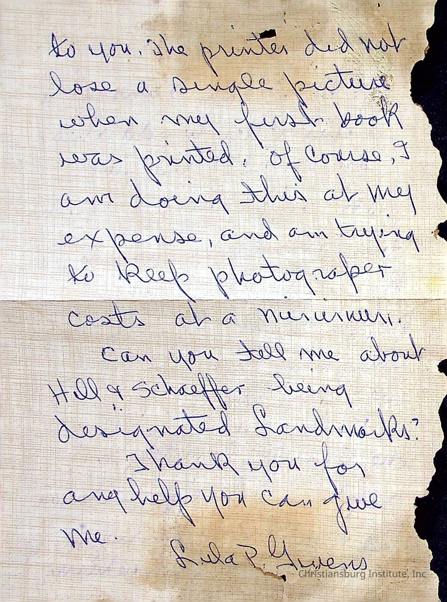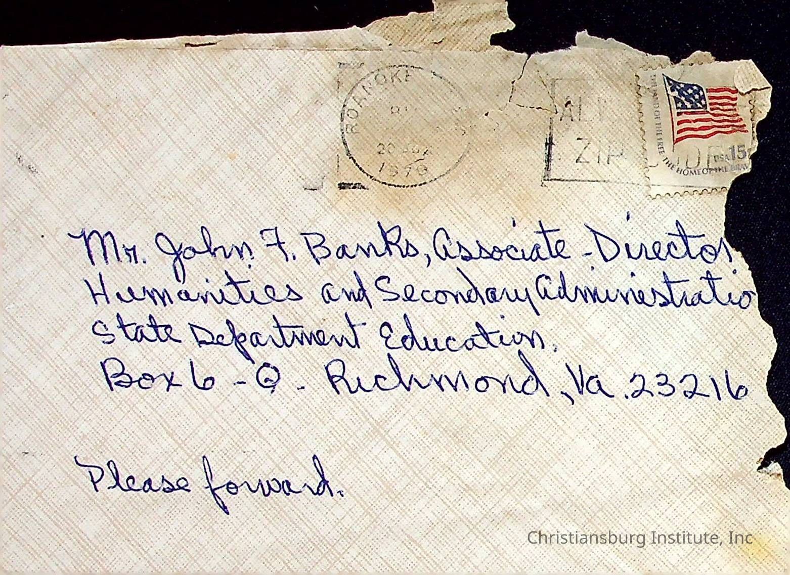 A letter from Lula P. Givens to the former Christiansburg Institute principal, John F. Banks circa 1979.